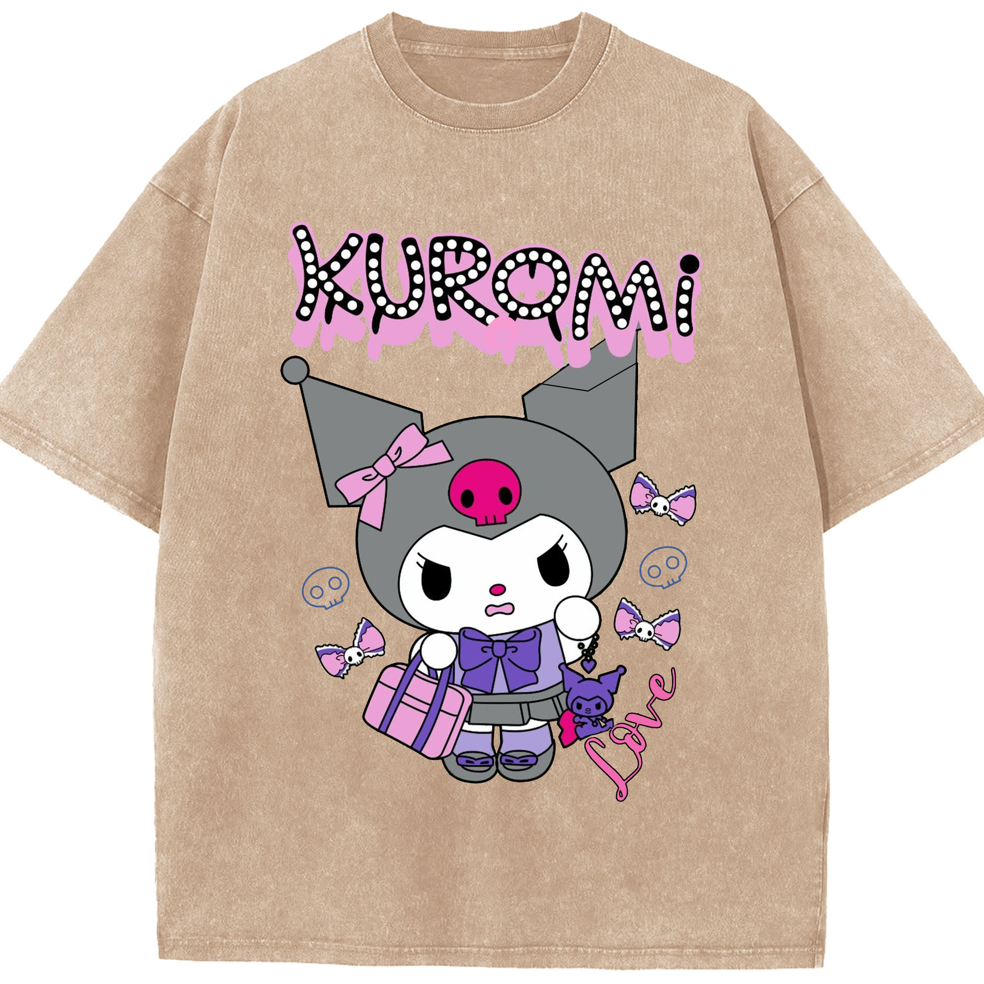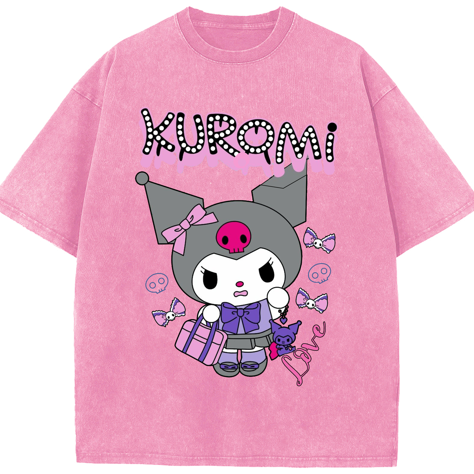 かわいいクロミ - 綿100% ヴィンテージ風 半袖Tシャツ ・ フロントプリント ・ 柔らか肌触り ・ 通気性 快適 ・ スポーツ カジュアル 外出用