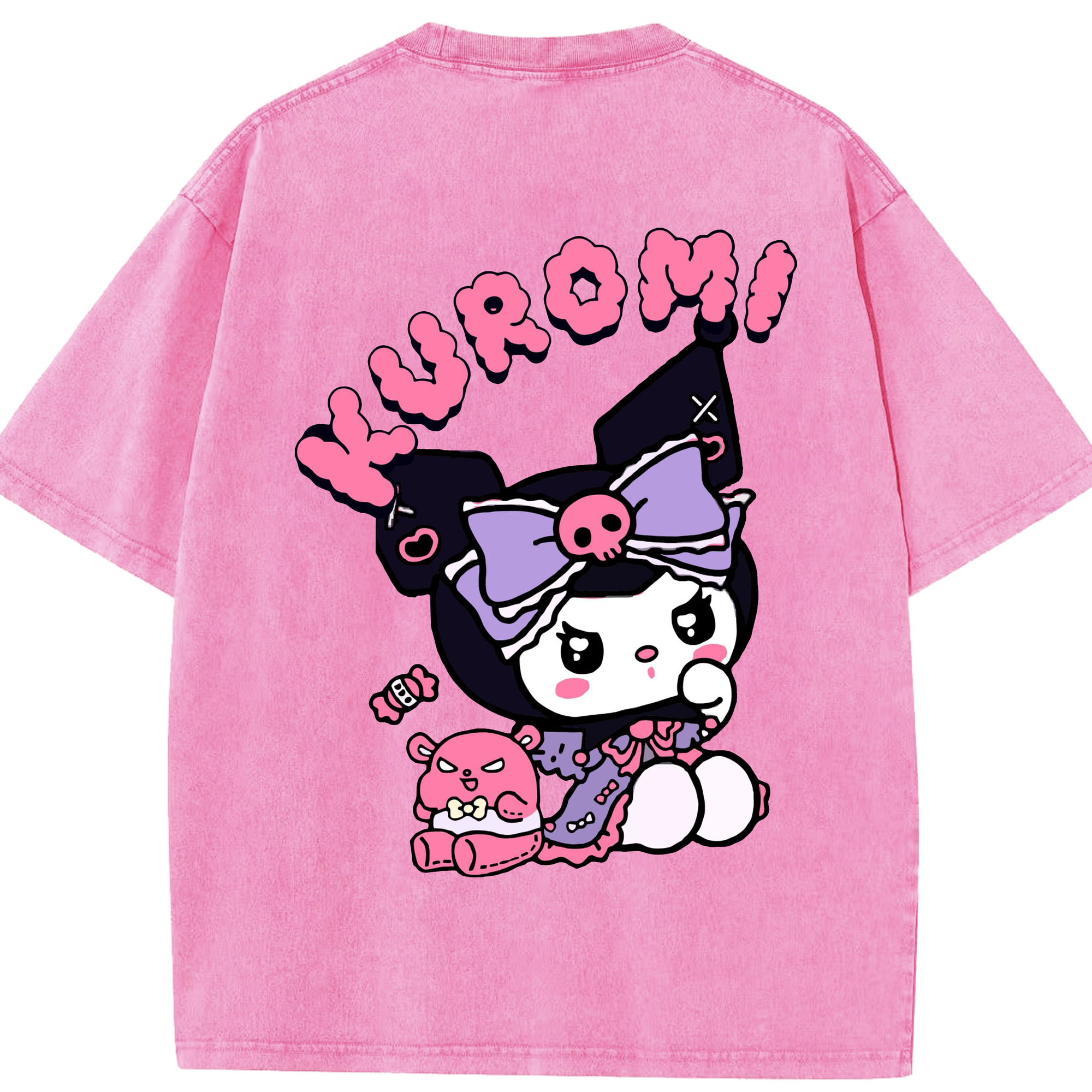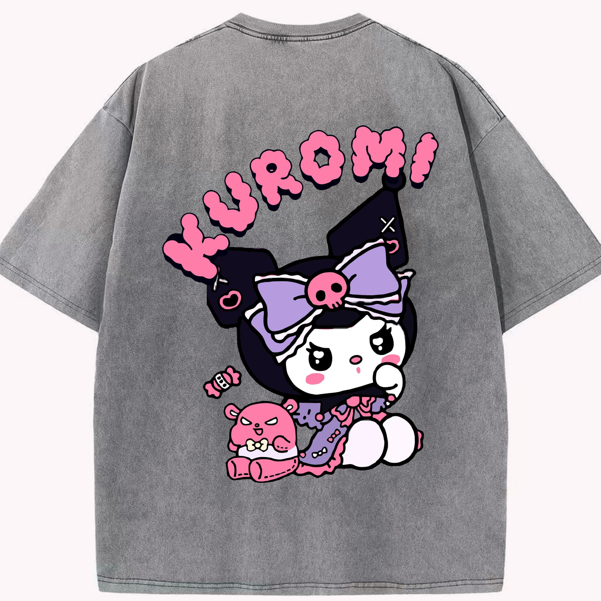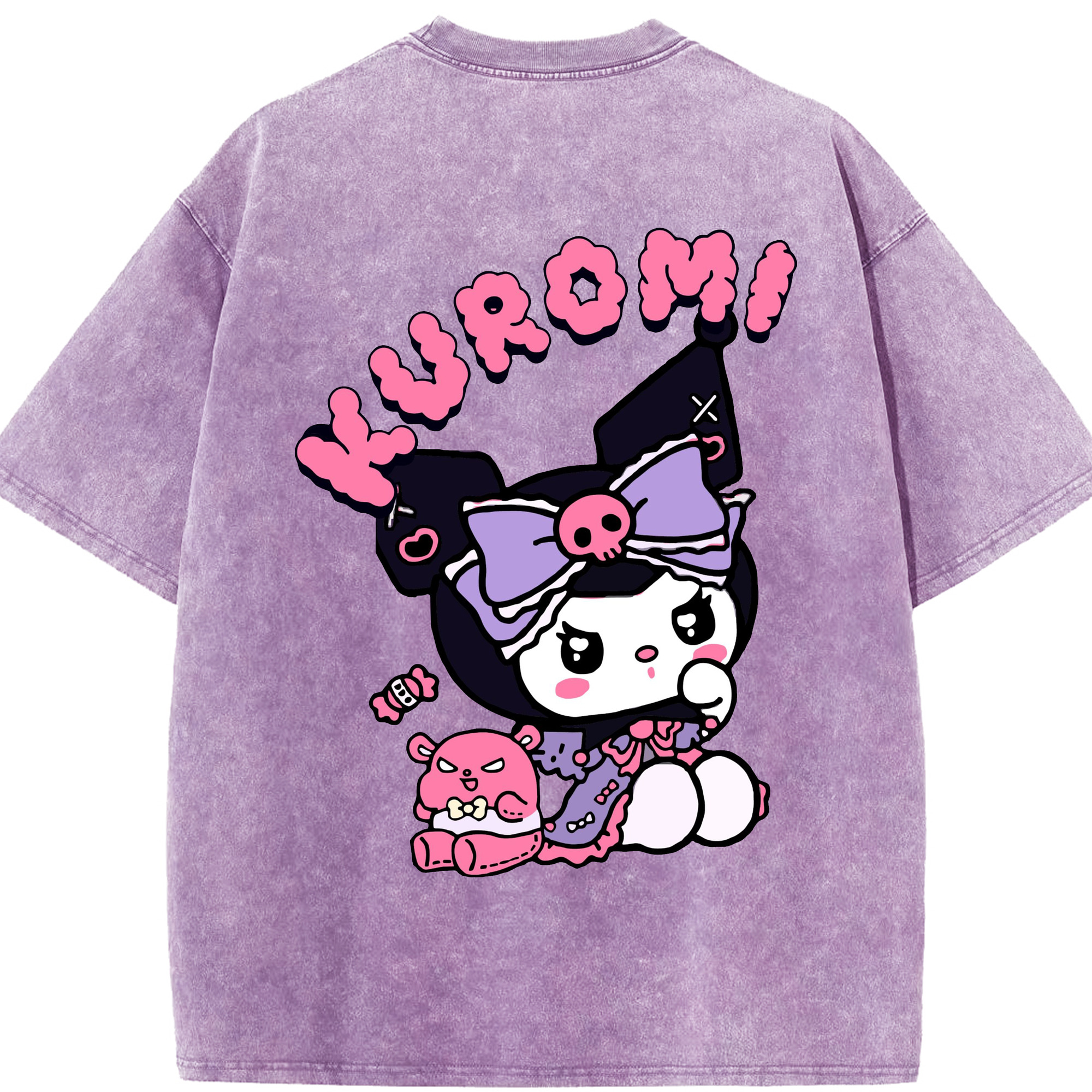 サンリオクロミ - 綿100% ヴィンテージ風 半袖Tシャツ ・ 背面プリント ・ 柔らか肌触り ・ 通気性 快適 ・ スポーツ カジュアル 外出用