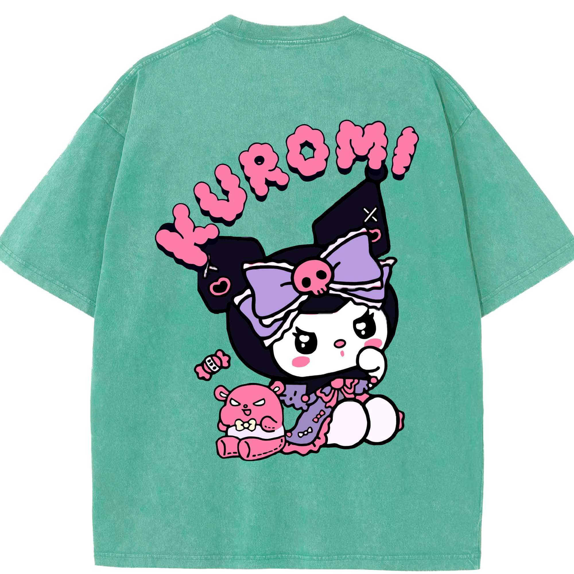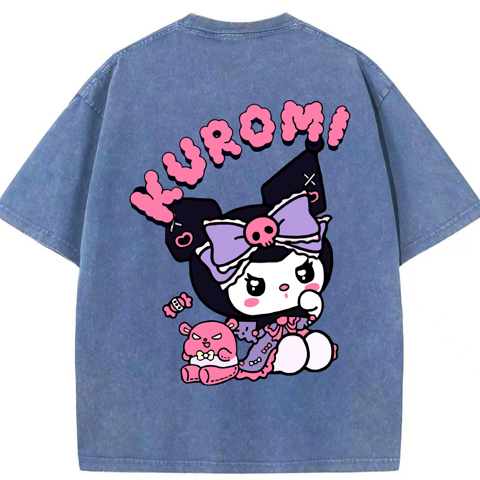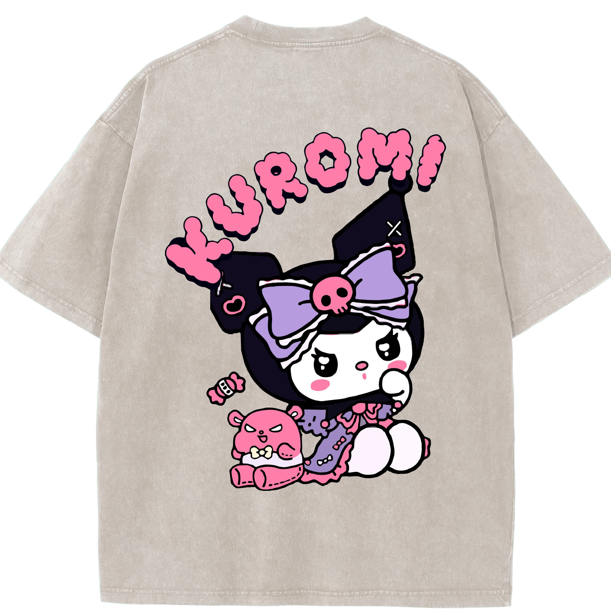 サンリオクロミ - 綿100% ヴィンテージ風 半袖Tシャツ ・ 背面プリント ・ 柔らか肌触り ・ 通気性 快適 ・ スポーツ カジュアル 外出用