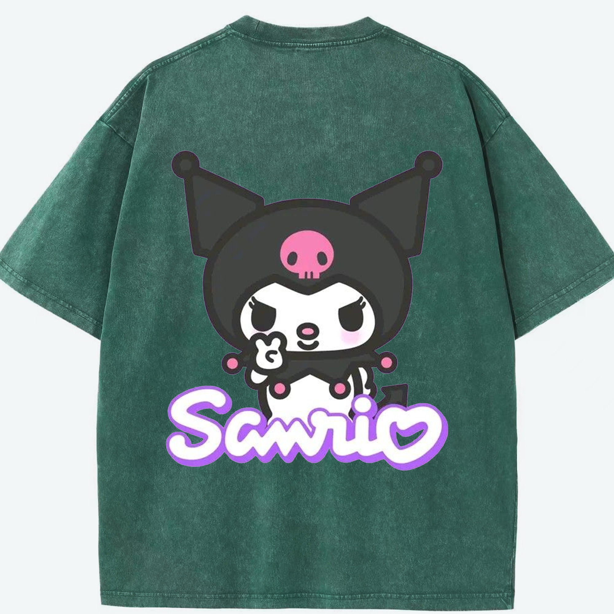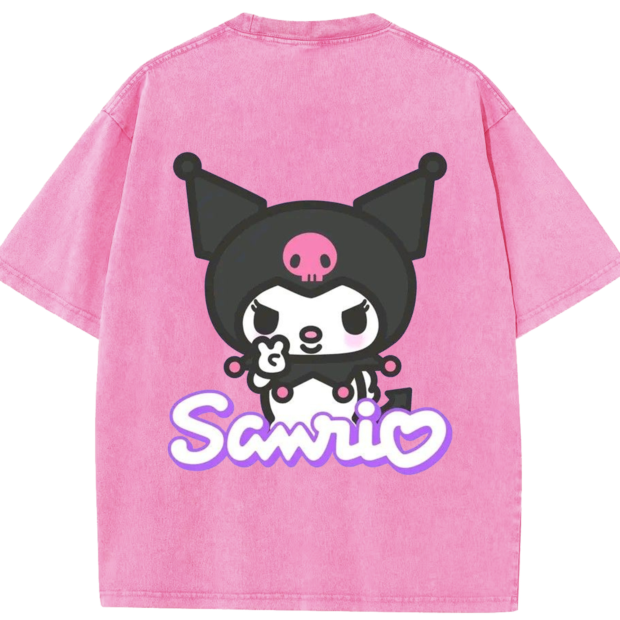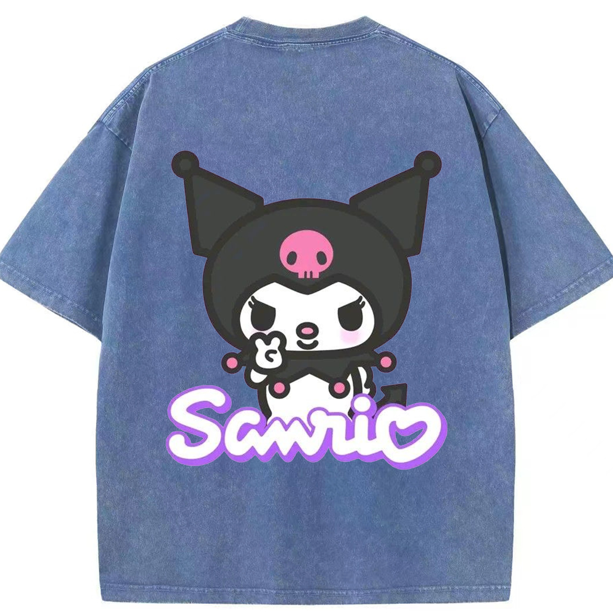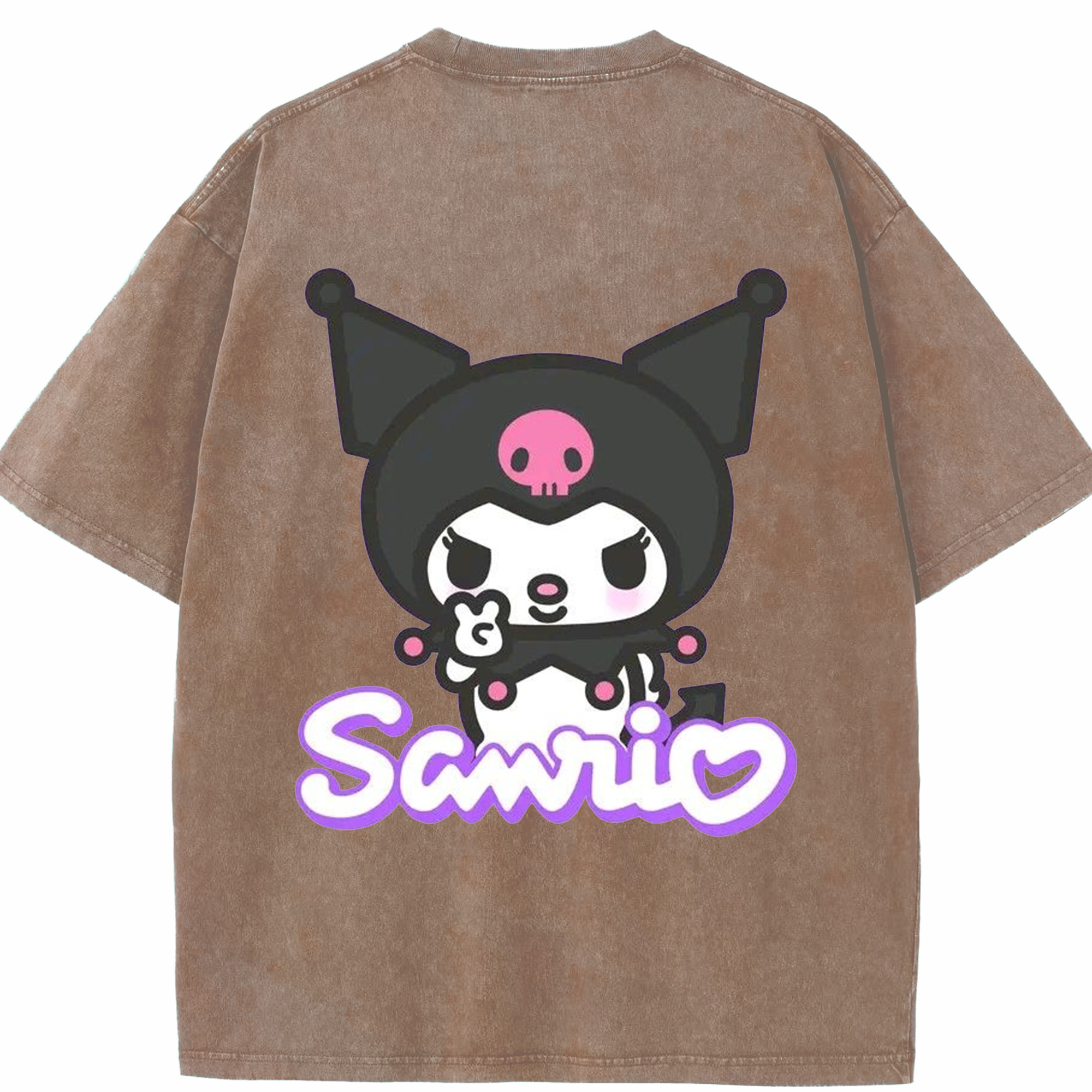 かわいいクロミ - 綿100% ヴィンテージ風 半袖Tシャツ ・ 背面プリント ・ 柔らか肌触り ・ 通気性 快適 ・ スポーツ カジュアル 外出用
