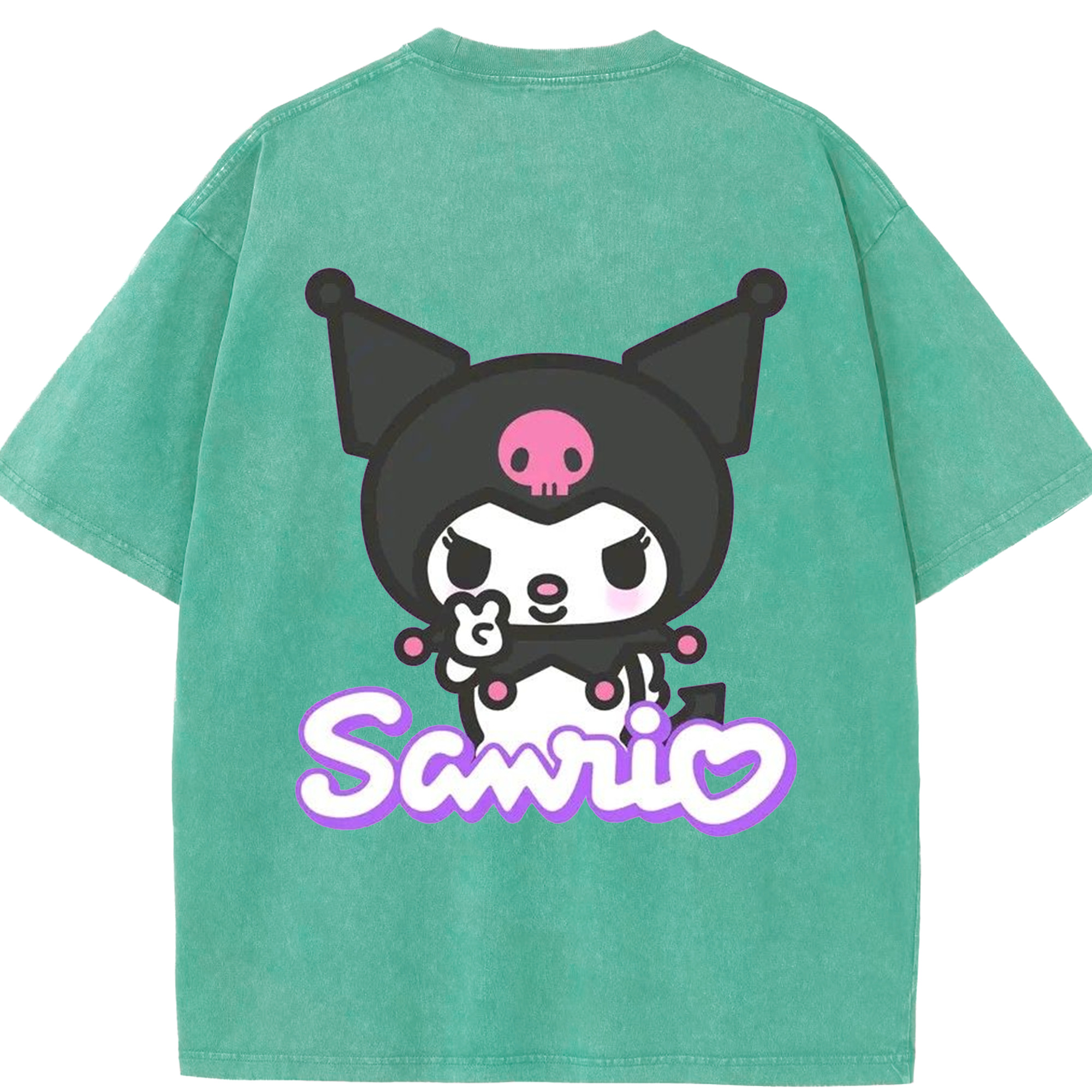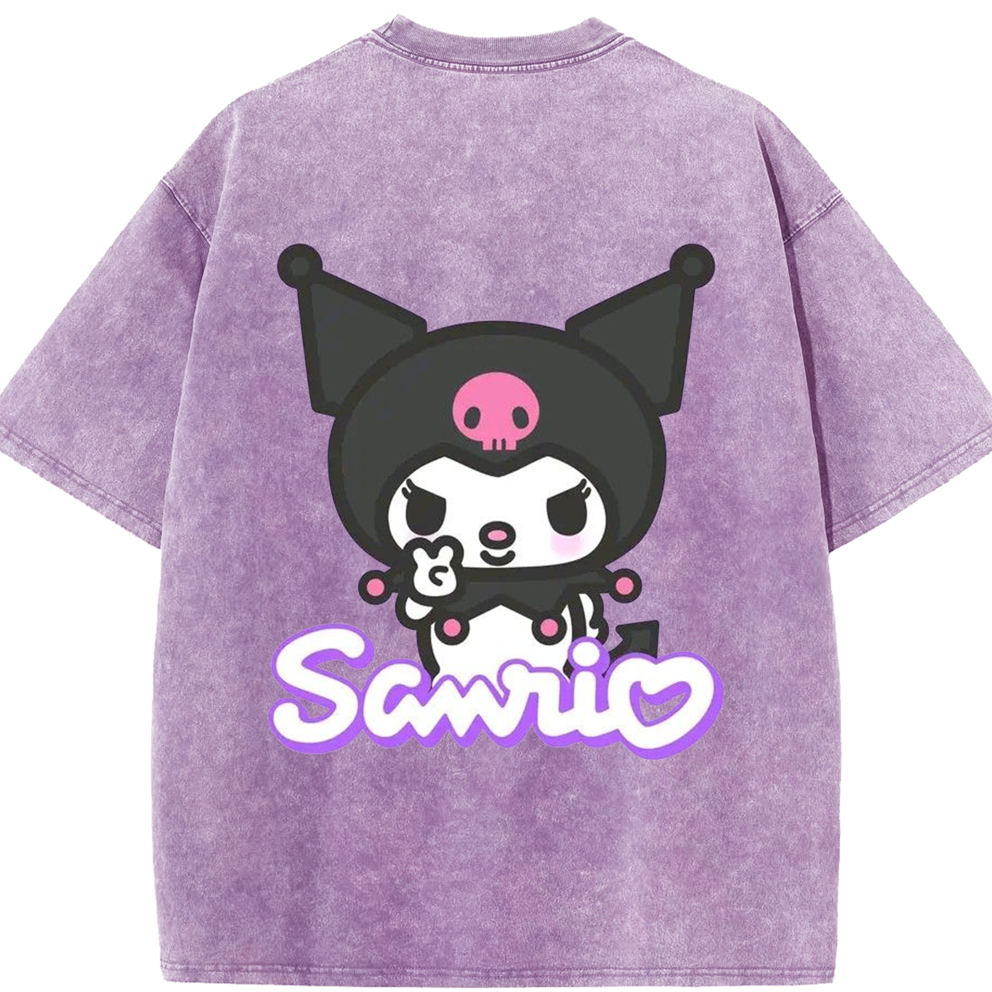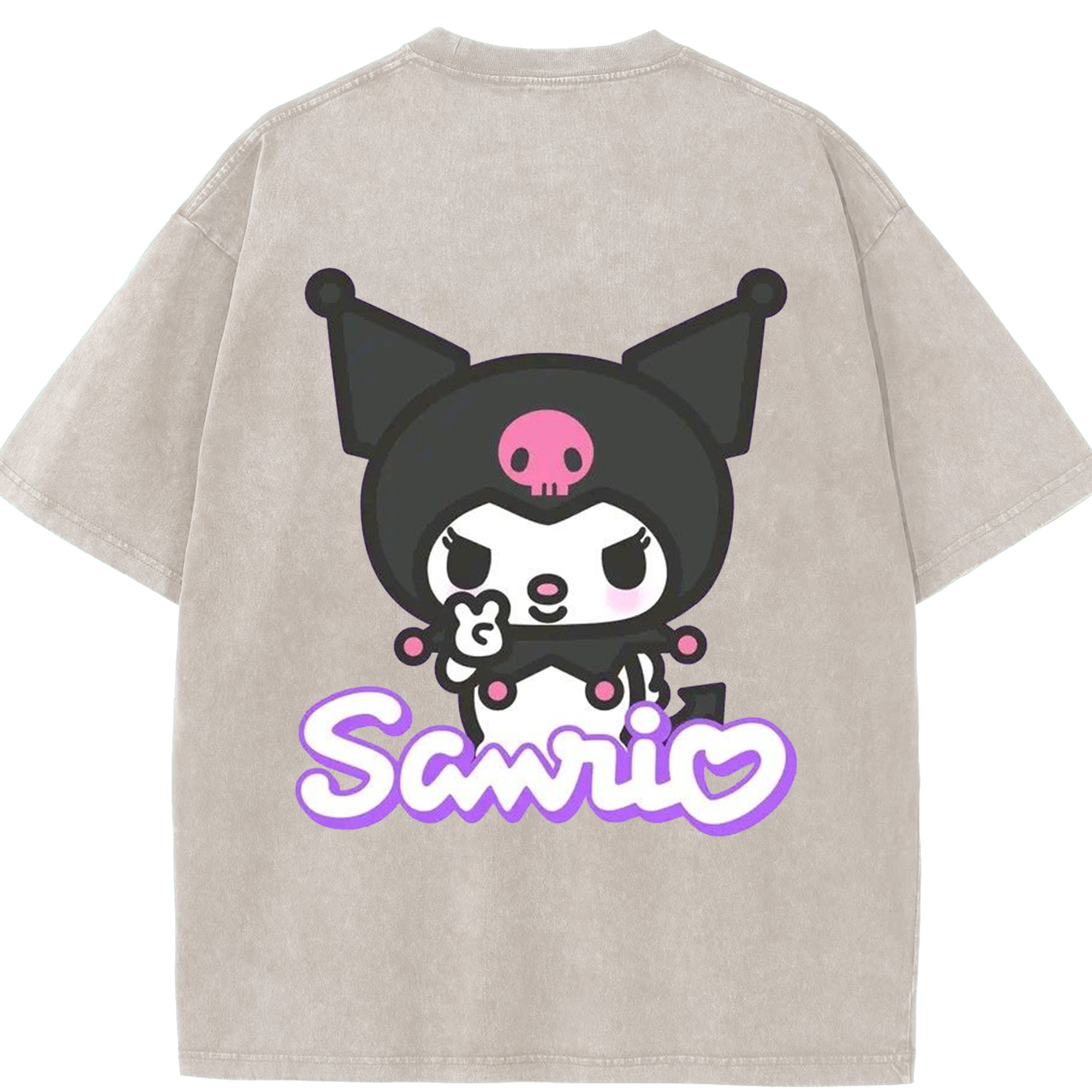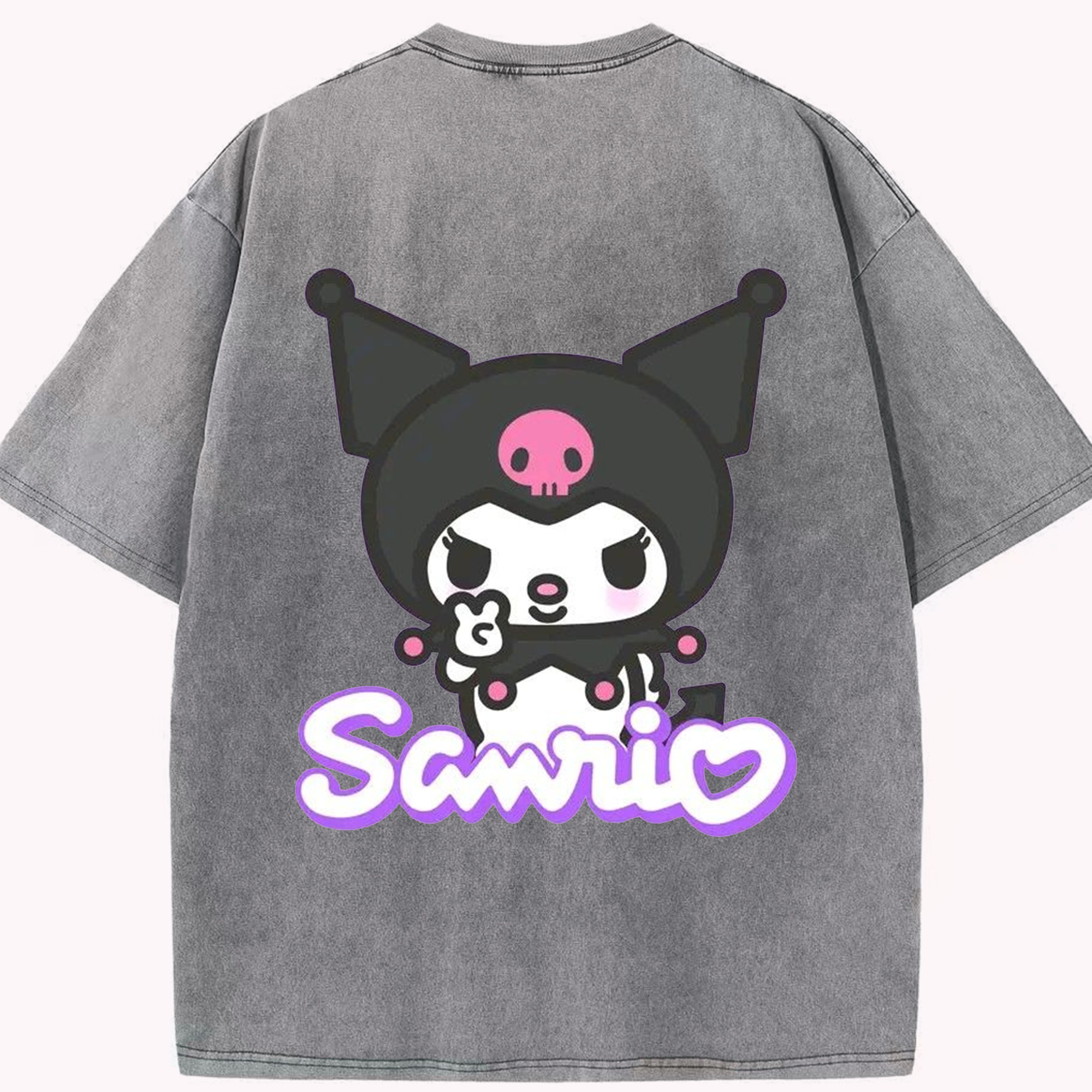 サンリオクロミ - 綿100% ヴィンテージ風 半袖Tシャツ ・ 背面プリント ・ 柔らか肌触り ・ 通気性 快適 ・ スポーツ カジュアル 外出用