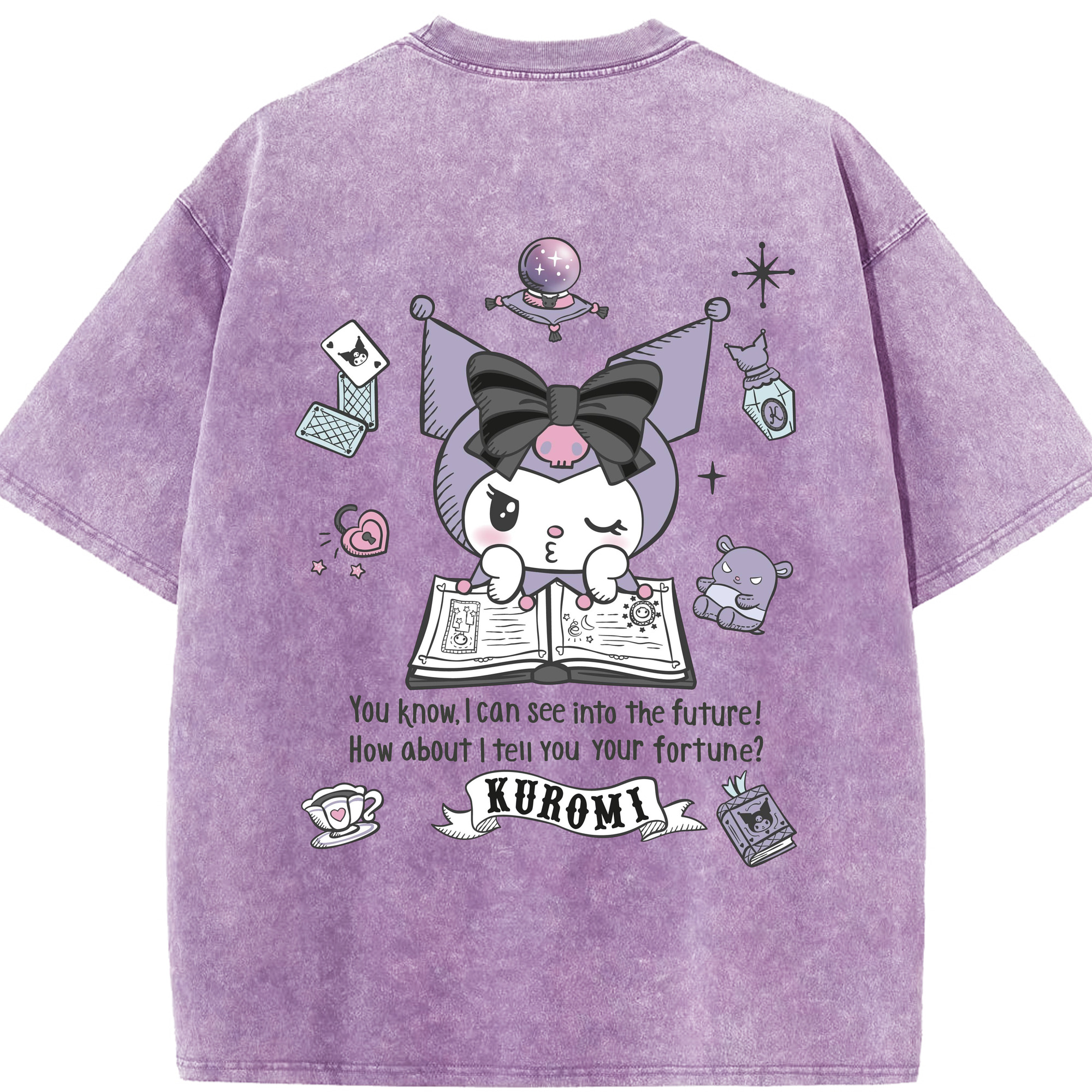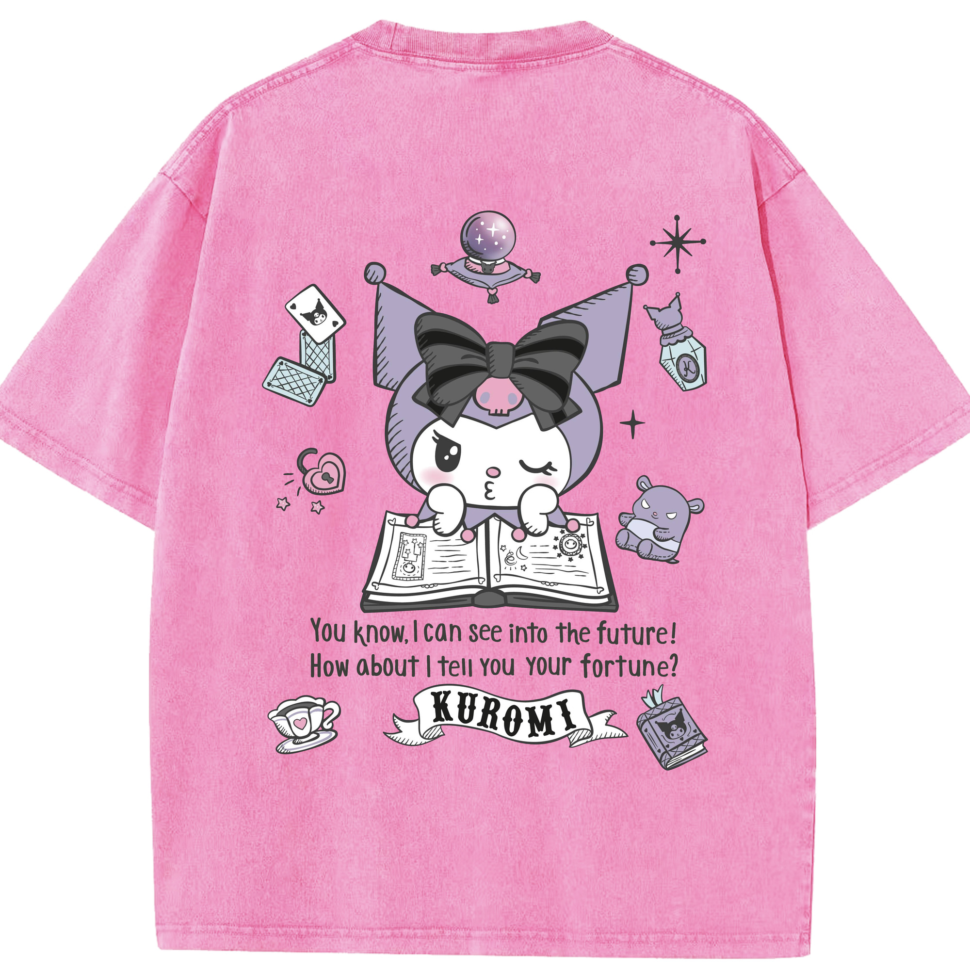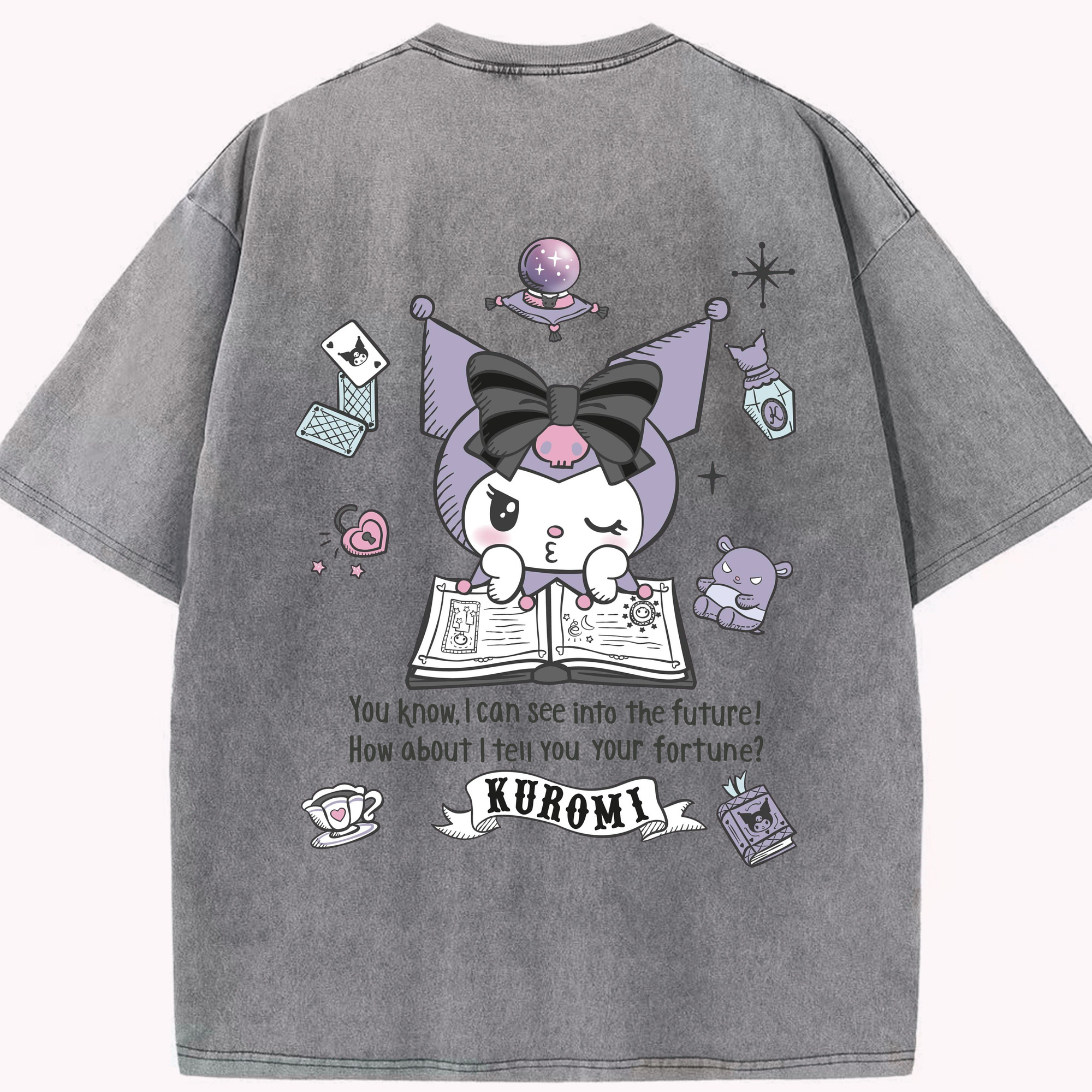 かわいいクロミ - 綿100% ヴィンテージ風 半袖Tシャツ ・ 背面プリント ・ 柔らか肌触り ・ 通気性 快適 ・ スポーツ カジュアル 外出用