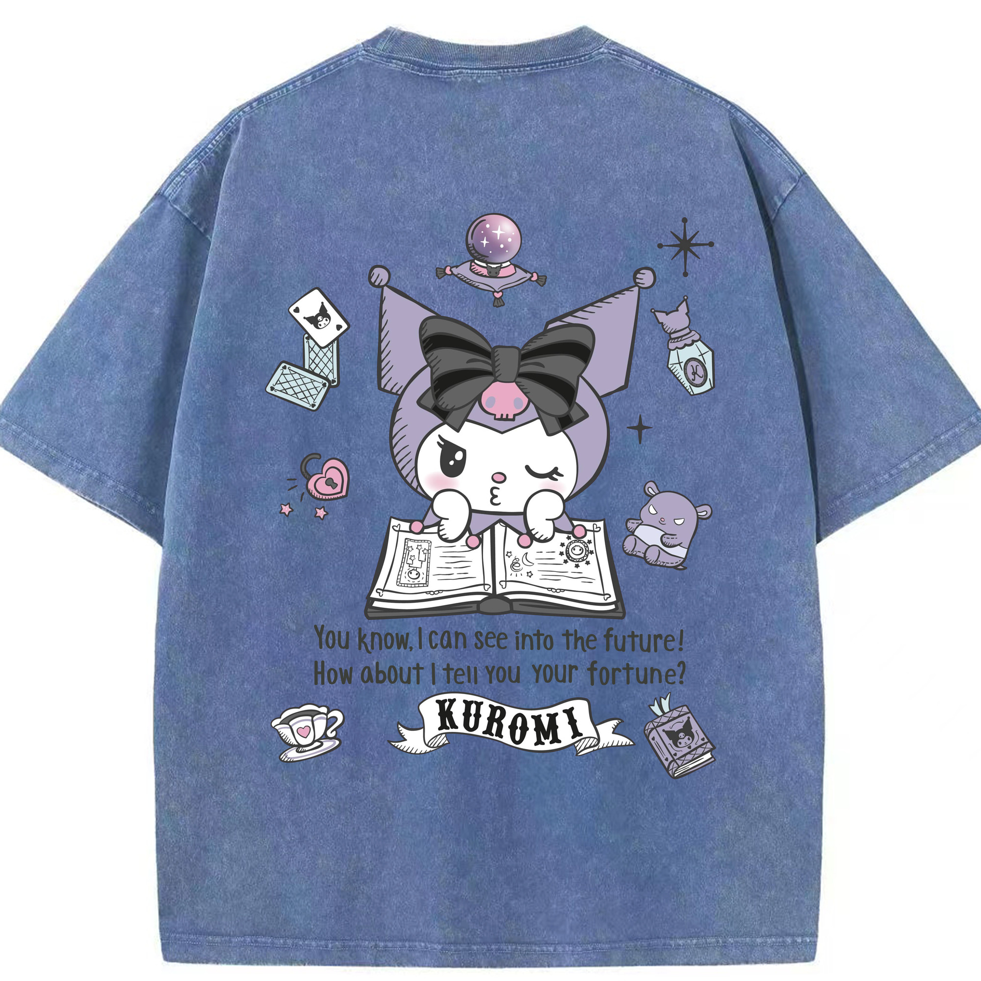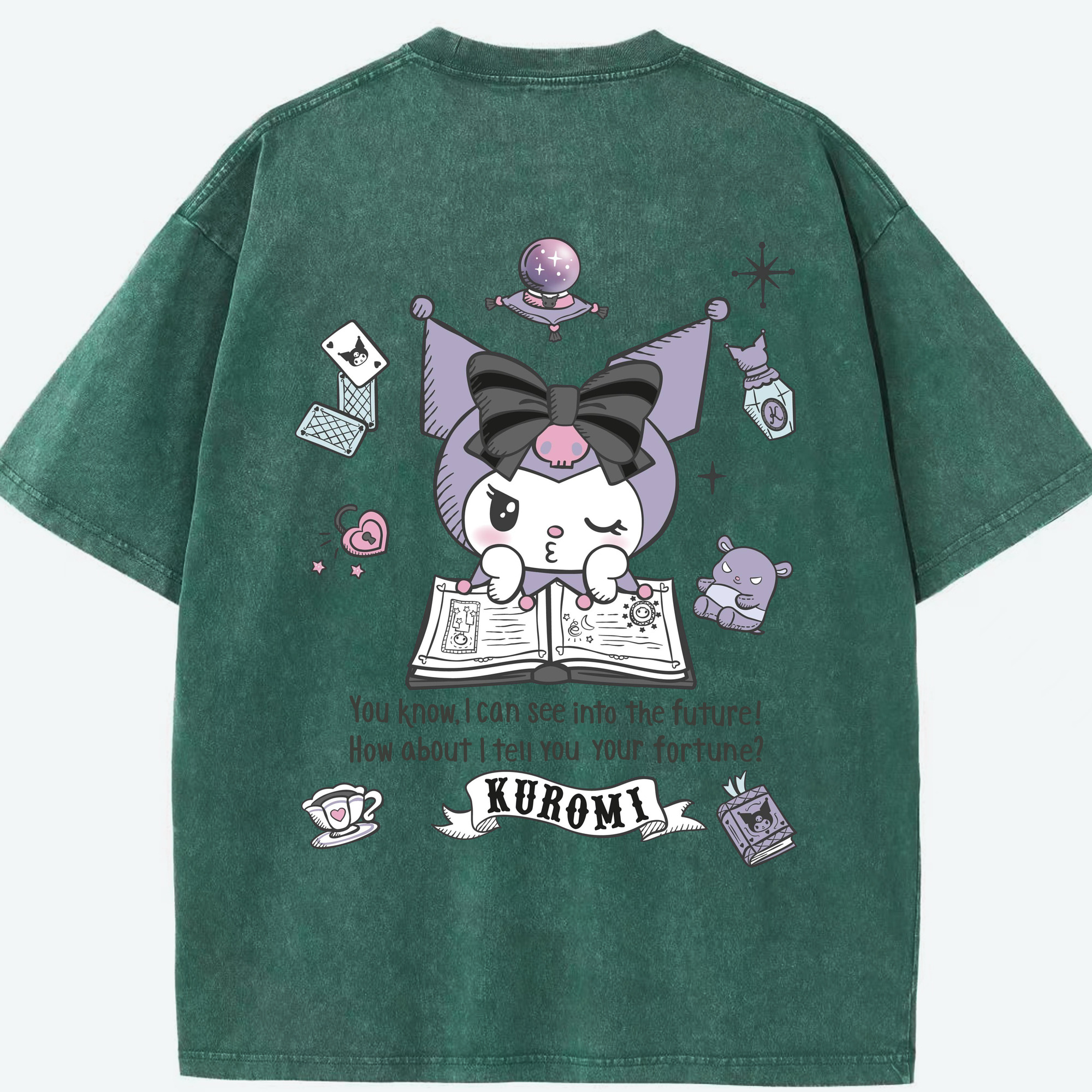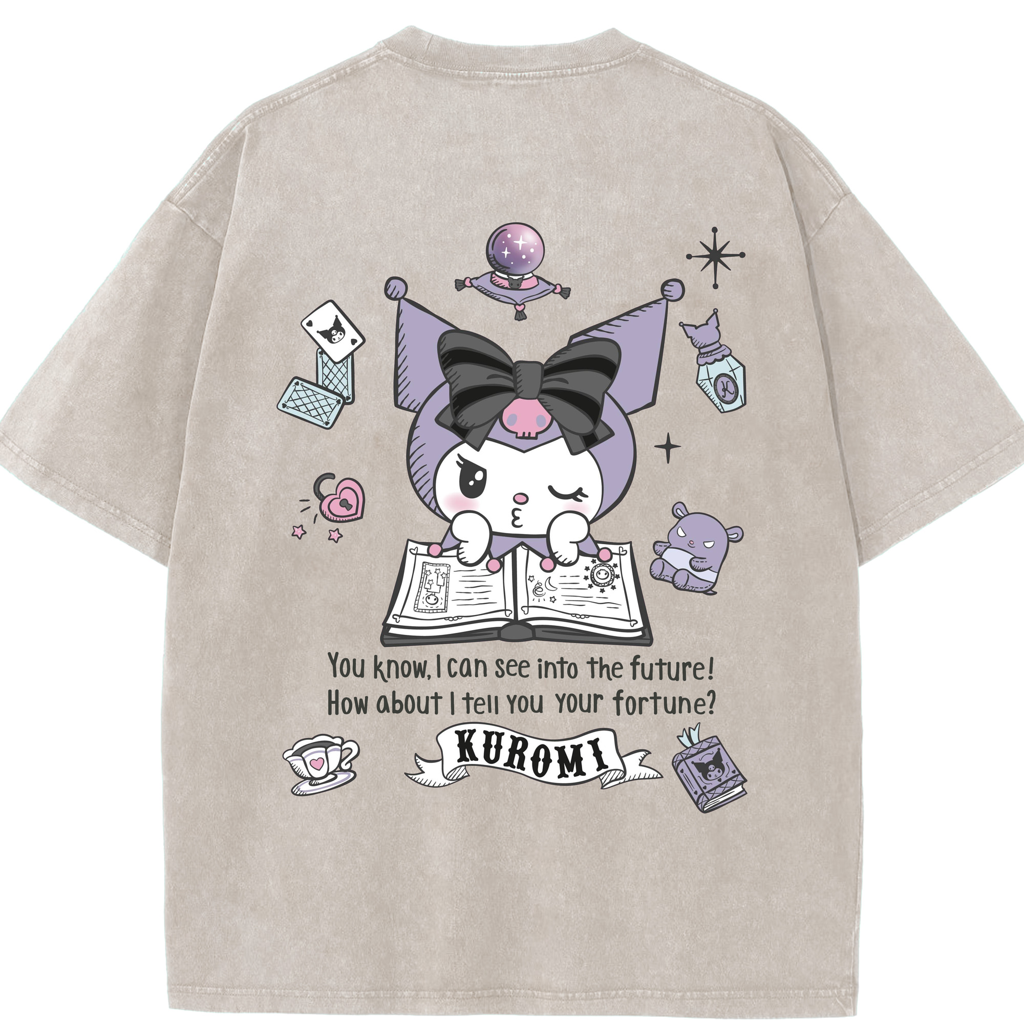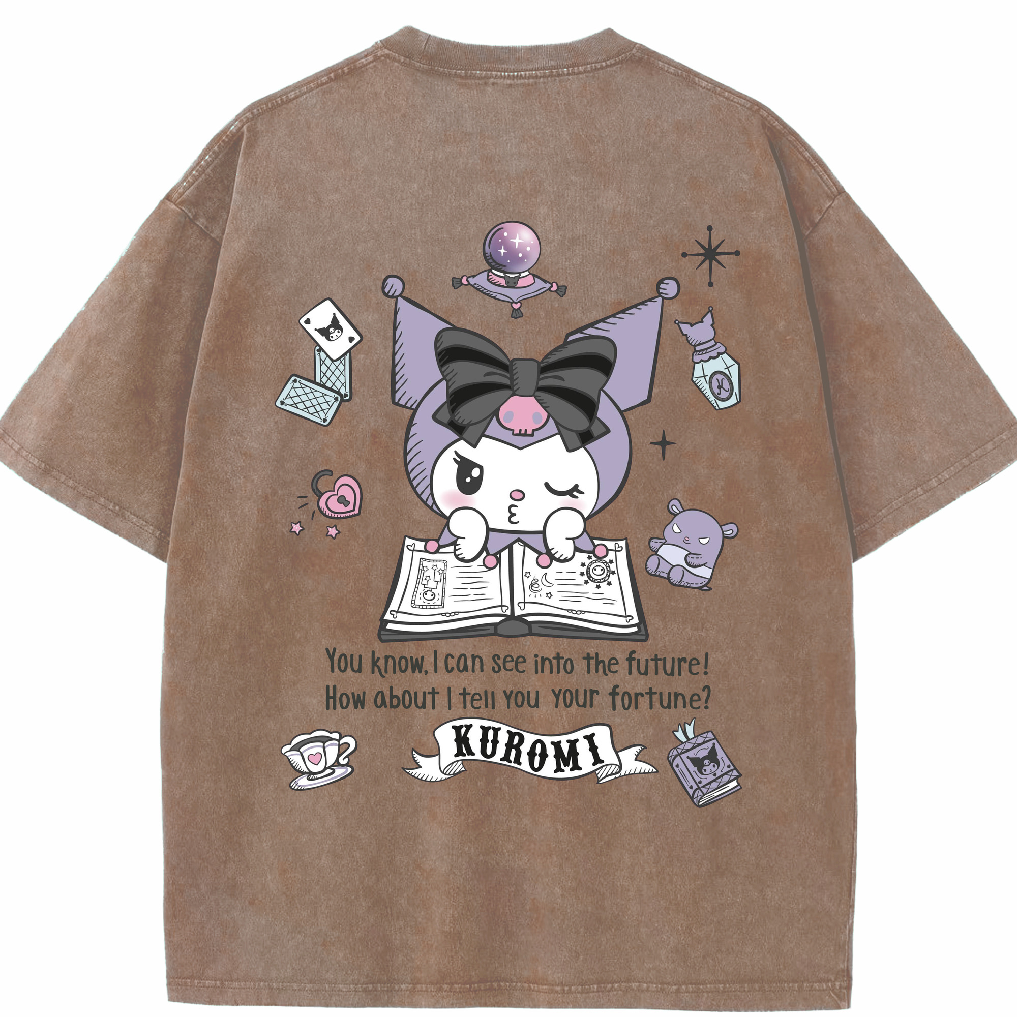 かわいいクロミ - 綿100% ヴィンテージ風 半袖Tシャツ ・ 背面プリント ・ 柔らか肌触り ・ 通気性 快適 ・ スポーツ カジュアル 外出用