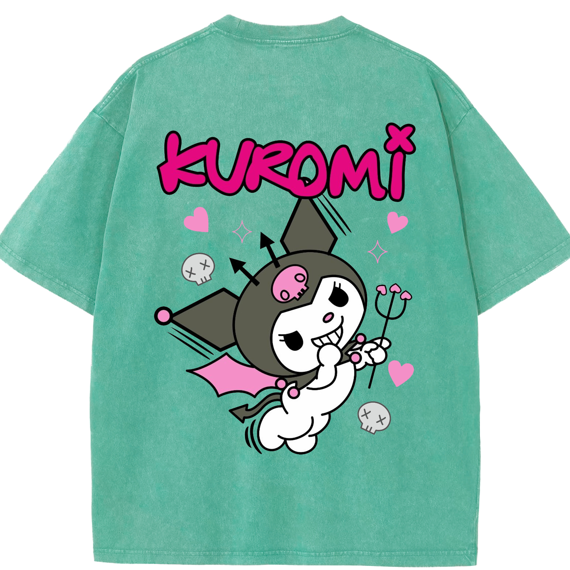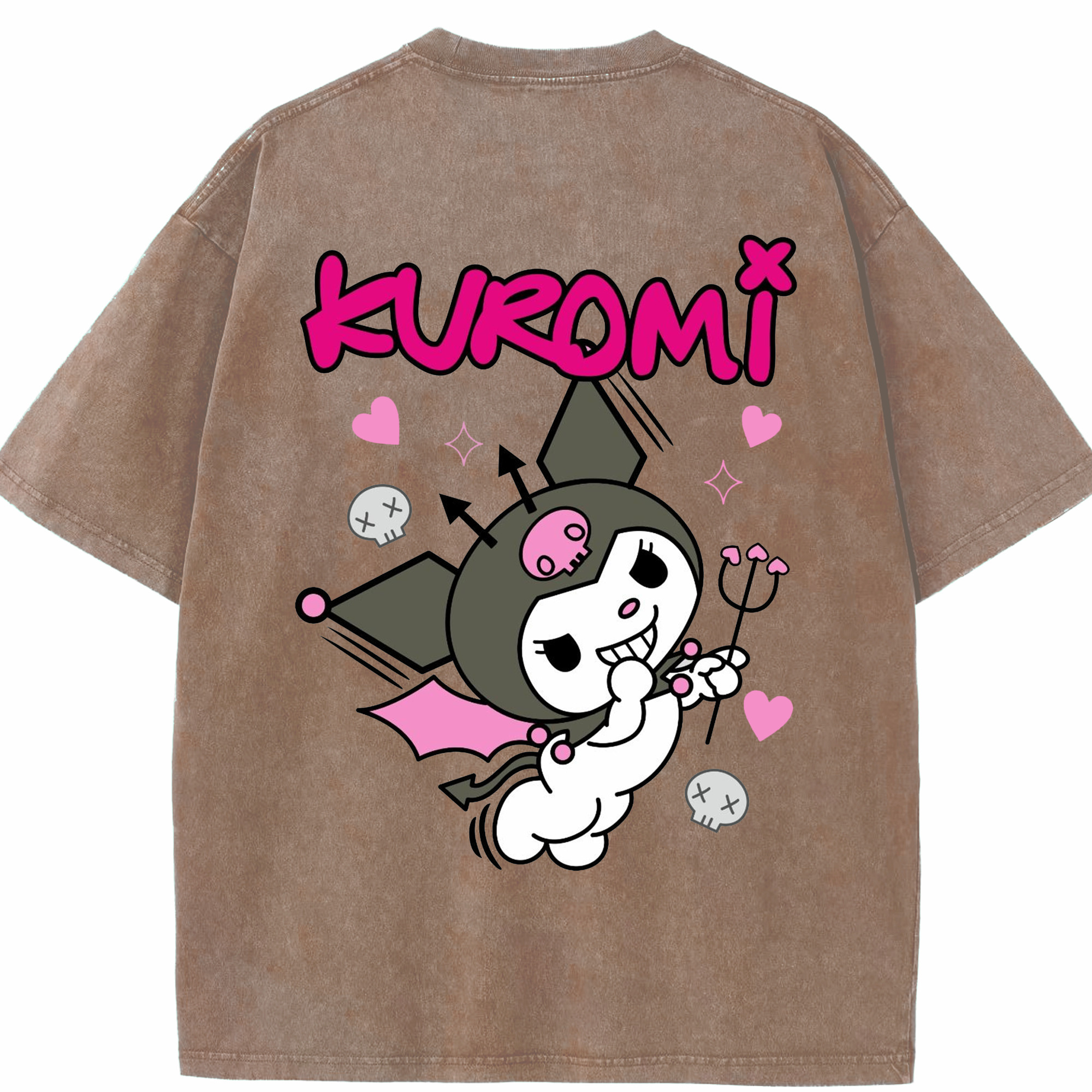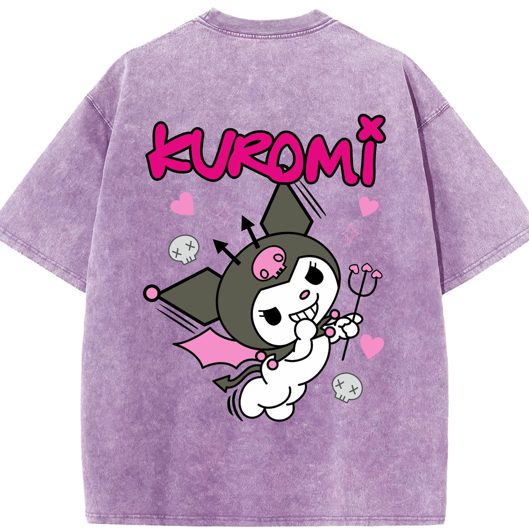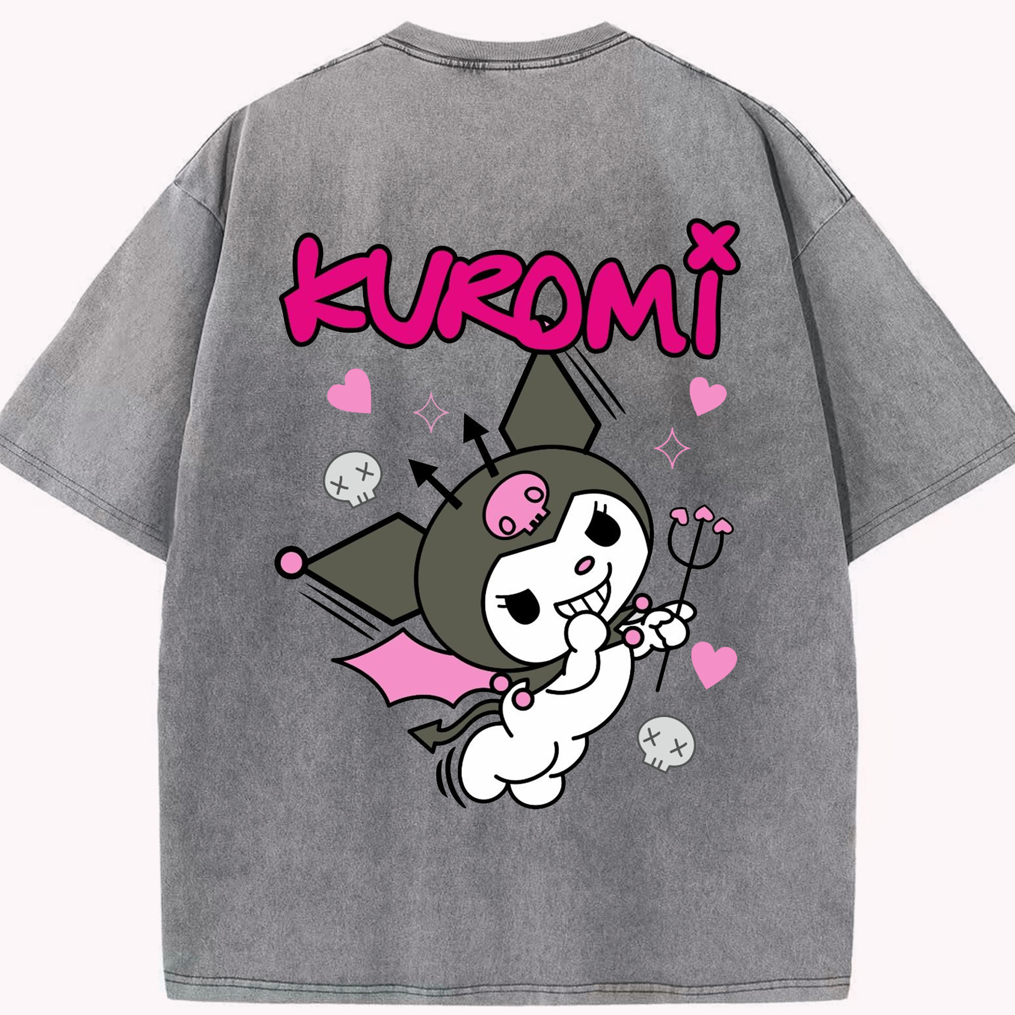 かわいいクロミ - 綿100% ヴィンテージ風 半袖Tシャツ ・ 背面プリント ・ 柔らか肌触り ・ 通気性 快適 ・ スポーツ カジュアル 外出用