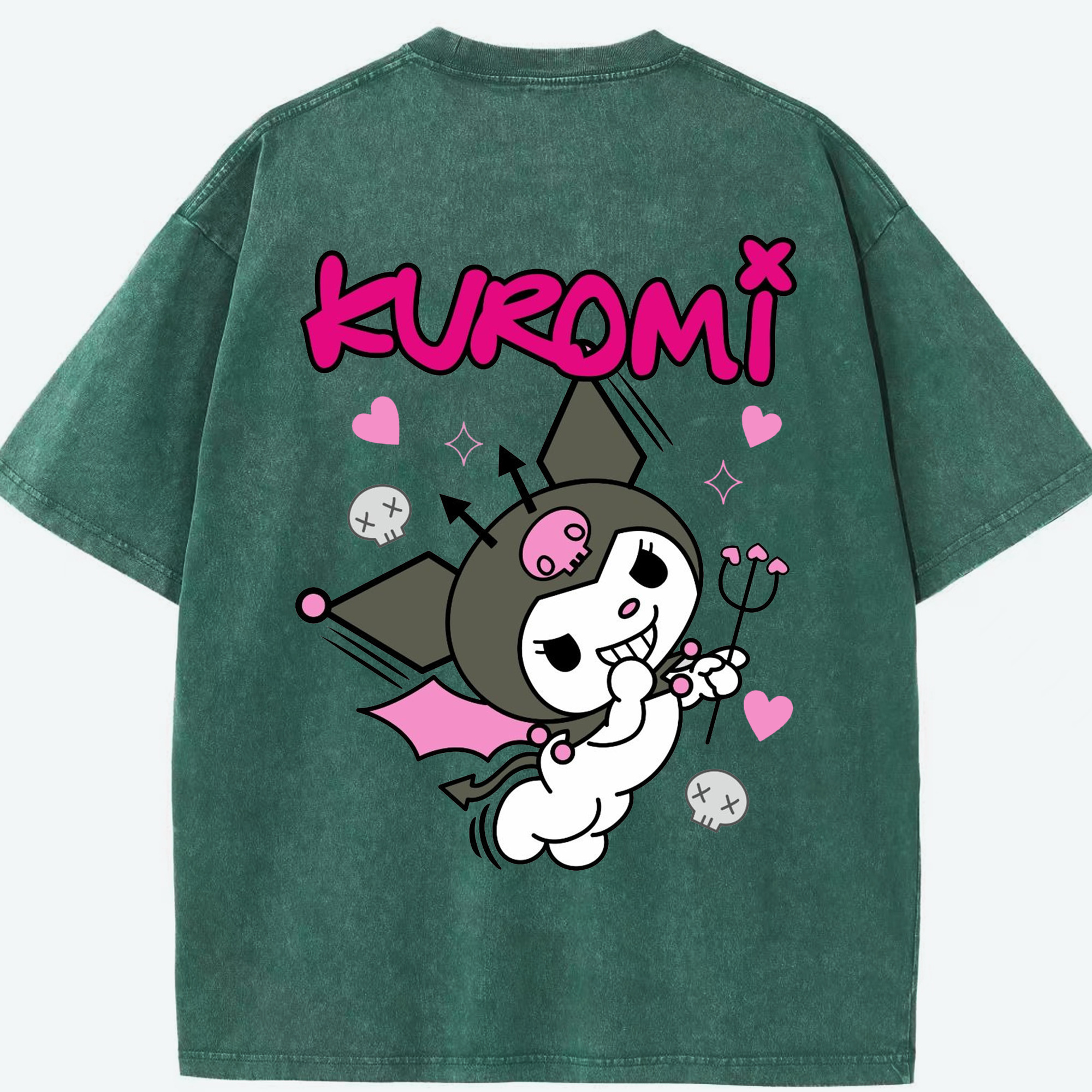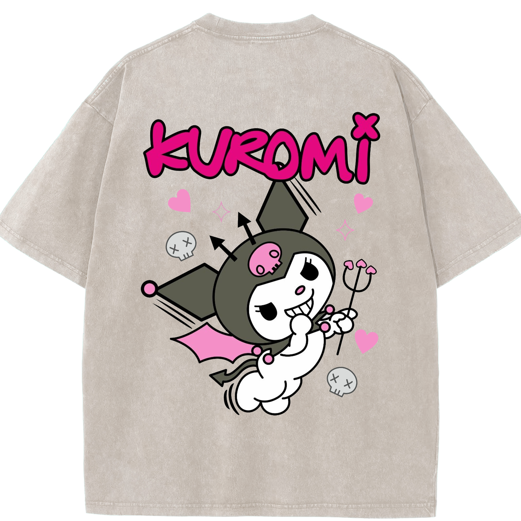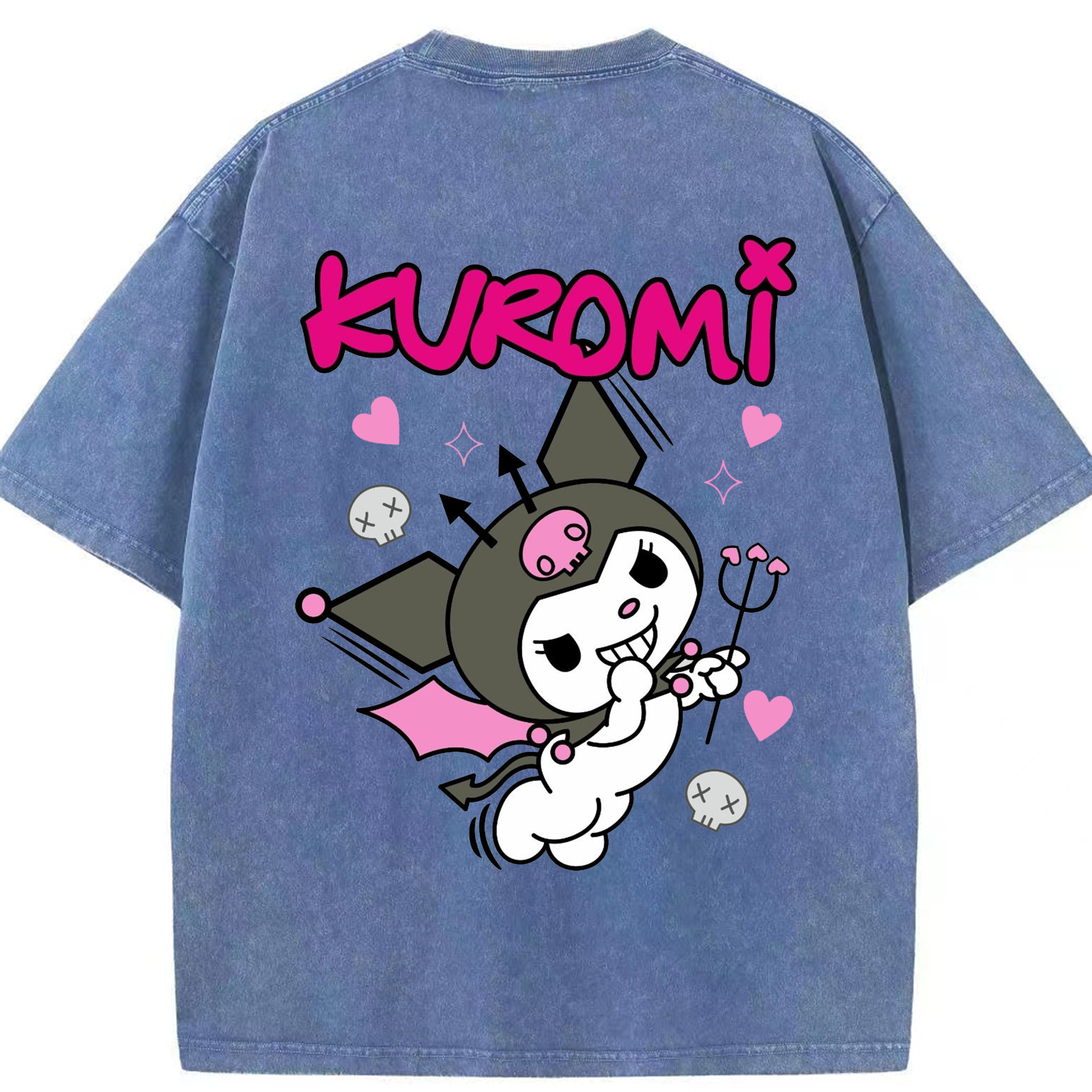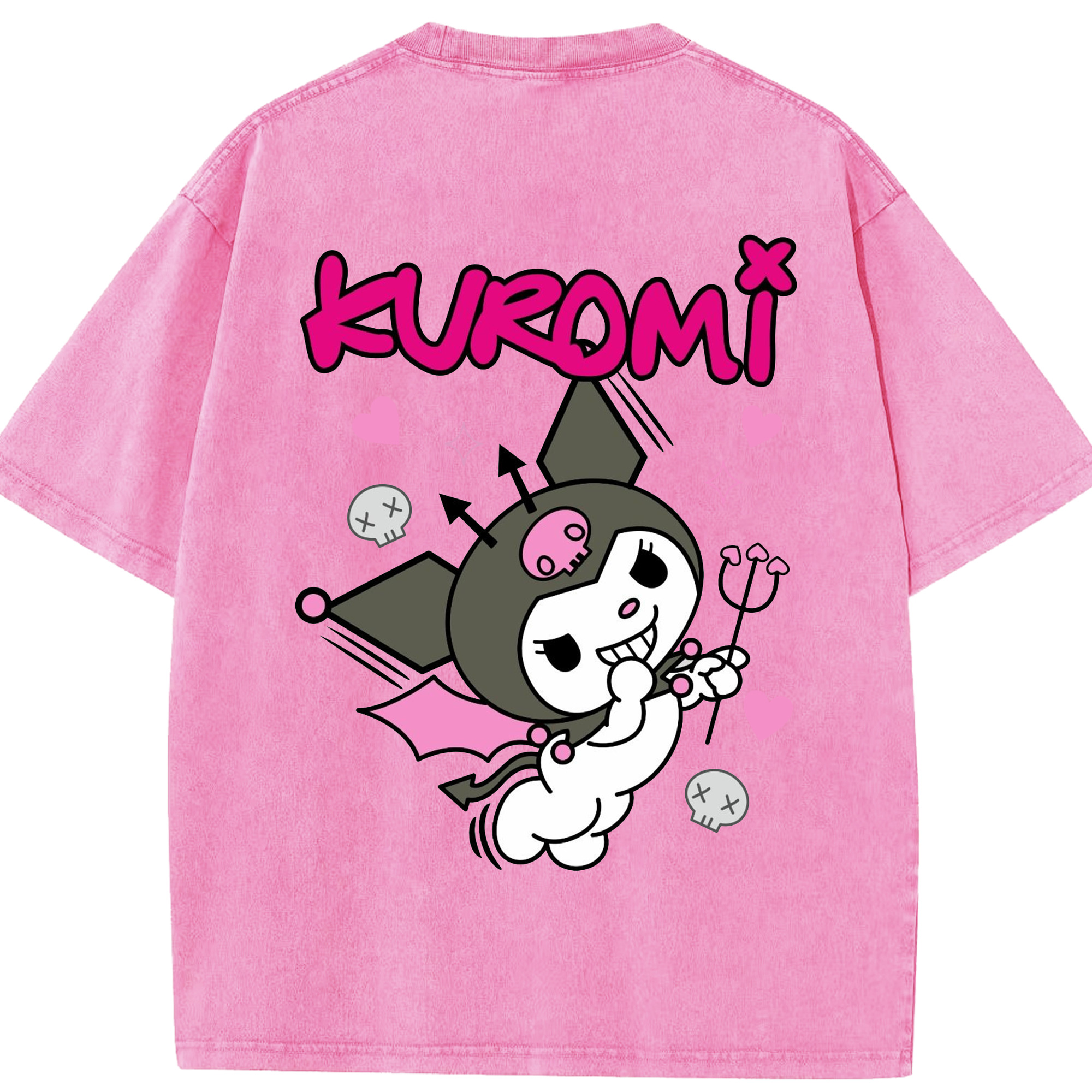 かわいいクロミ - 綿100% ヴィンテージ風 半袖Tシャツ ・ 背面プリント ・ 柔らか肌触り ・ 通気性 快適 ・ スポーツ カジュアル 外出用