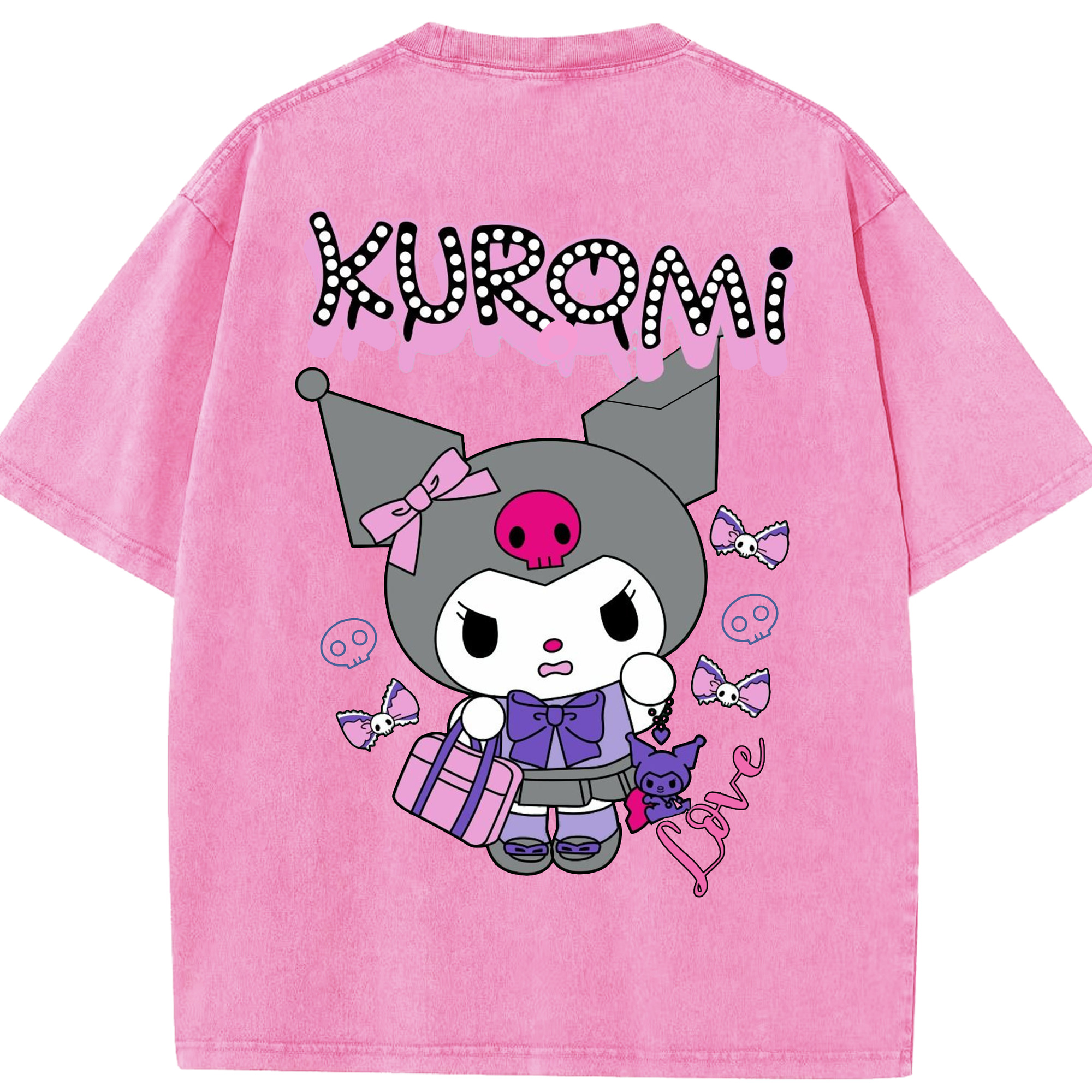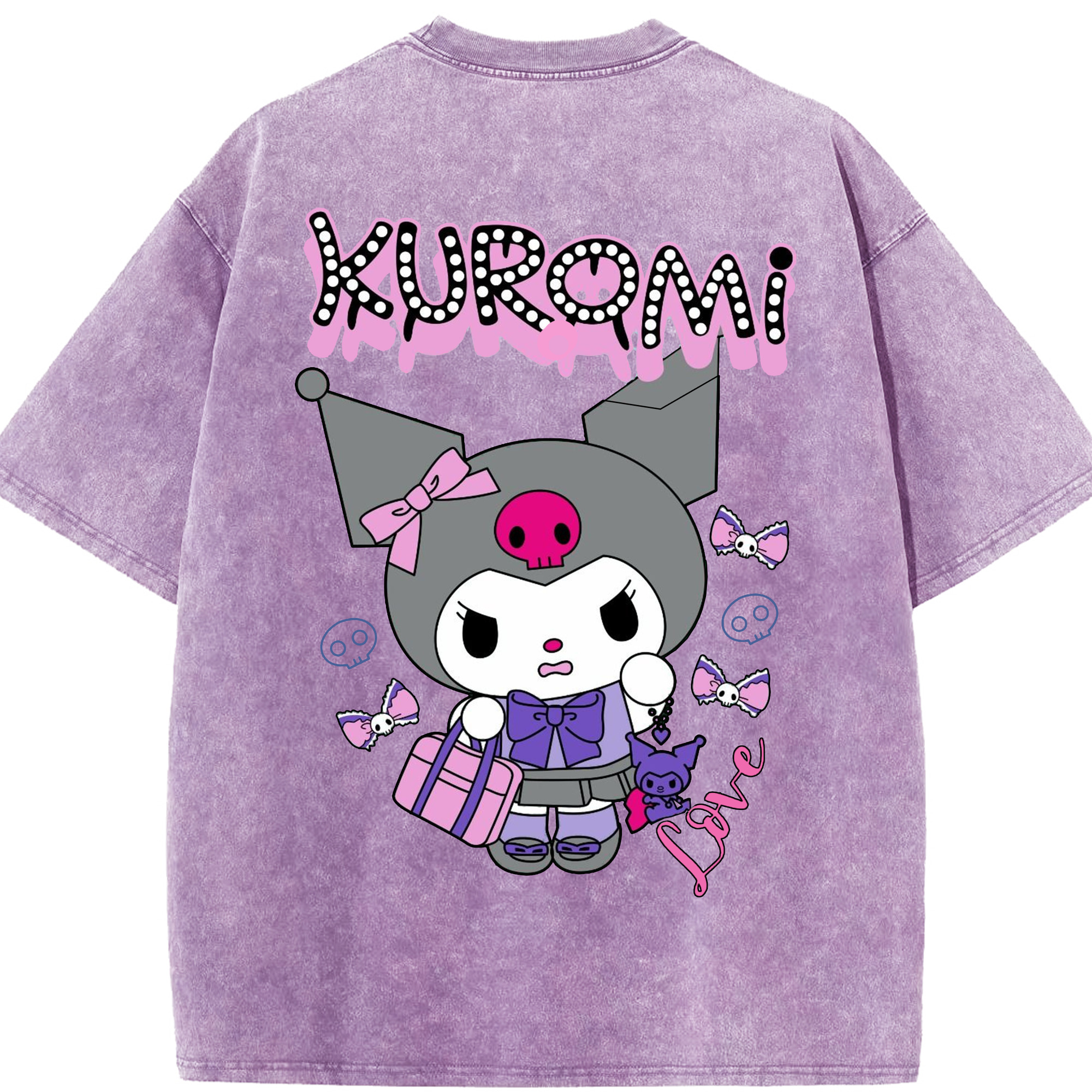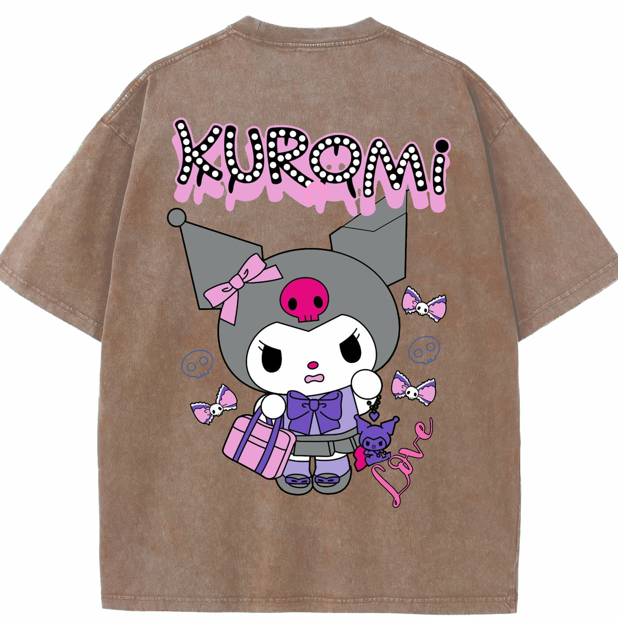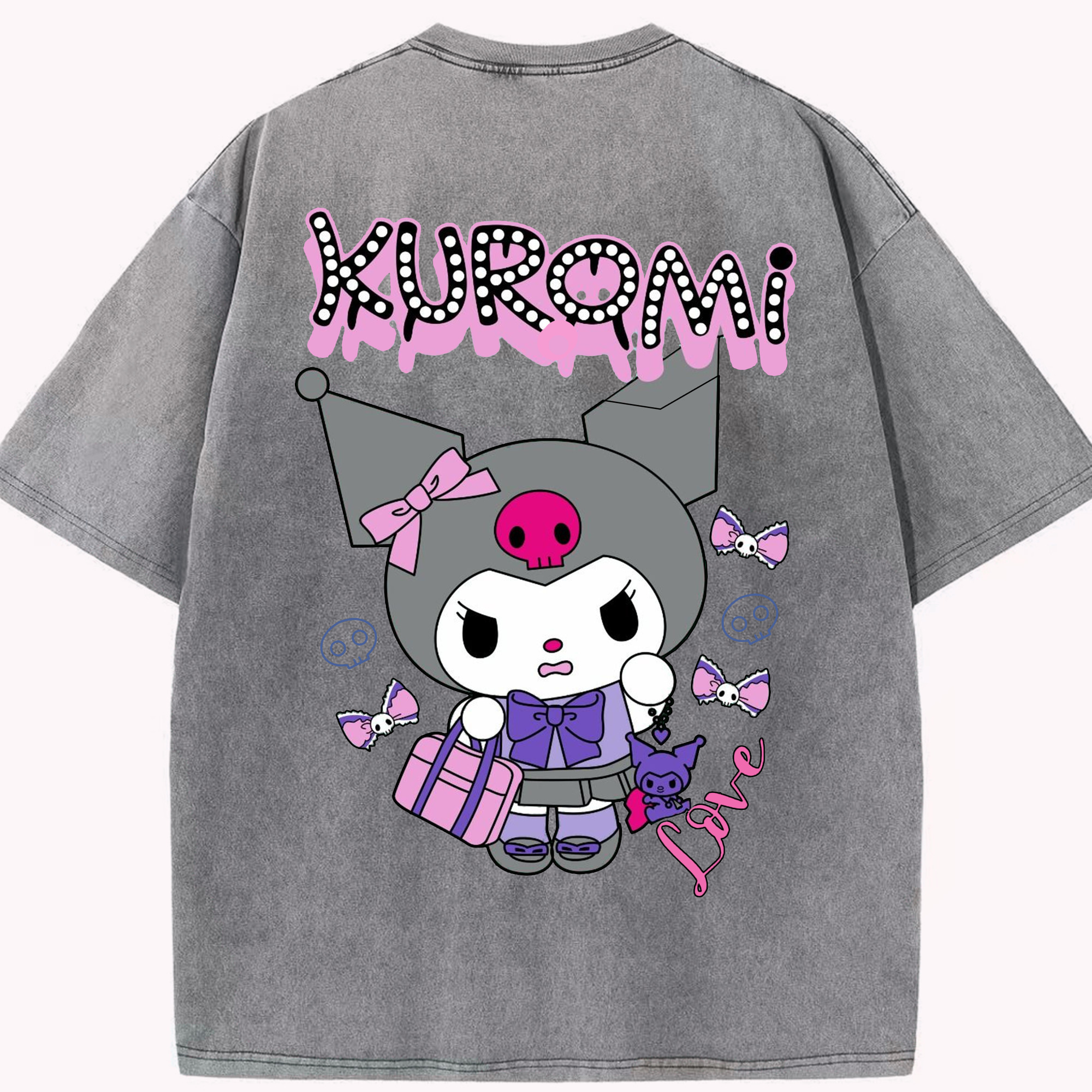 かわいいクロミ - 綿100% ヴィンテージ風 半袖Tシャツ ・ 背面プリント ・ 柔らか肌触り ・ 通気性 快適 ・ スポーツ カジュアル 外出用
