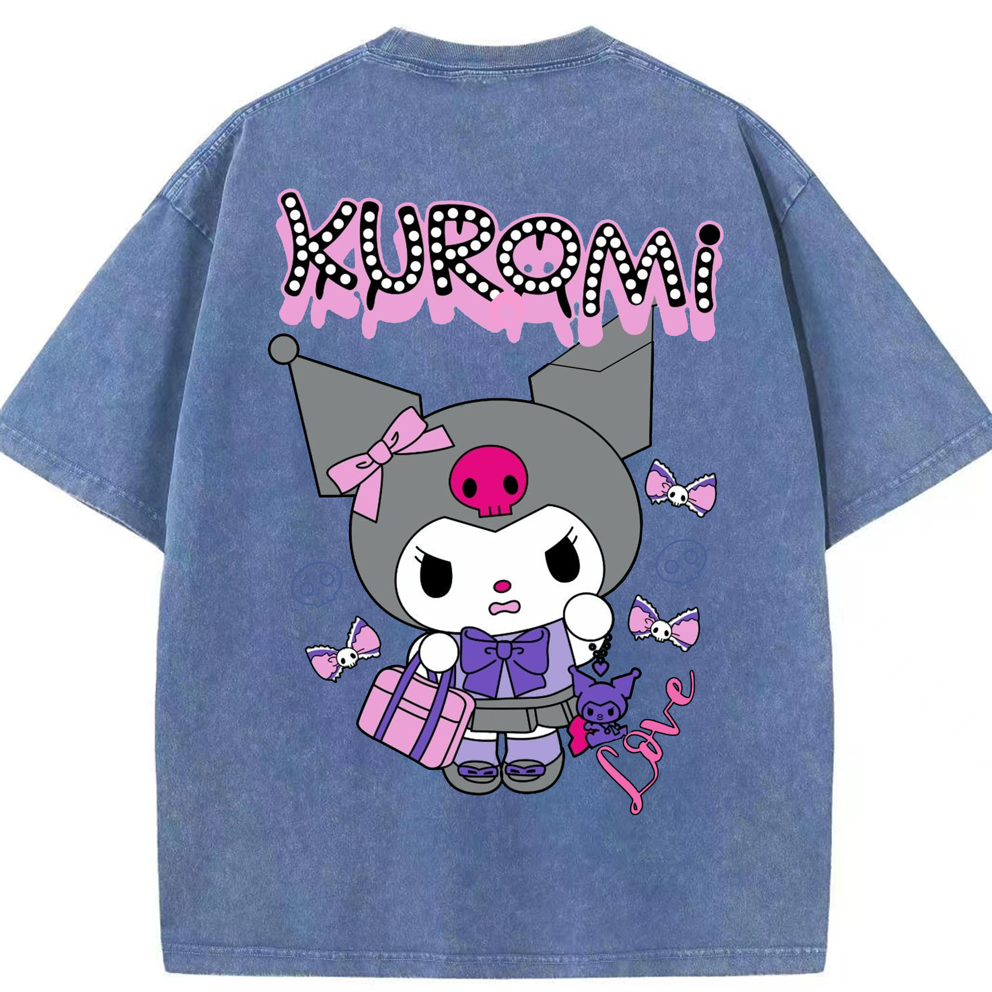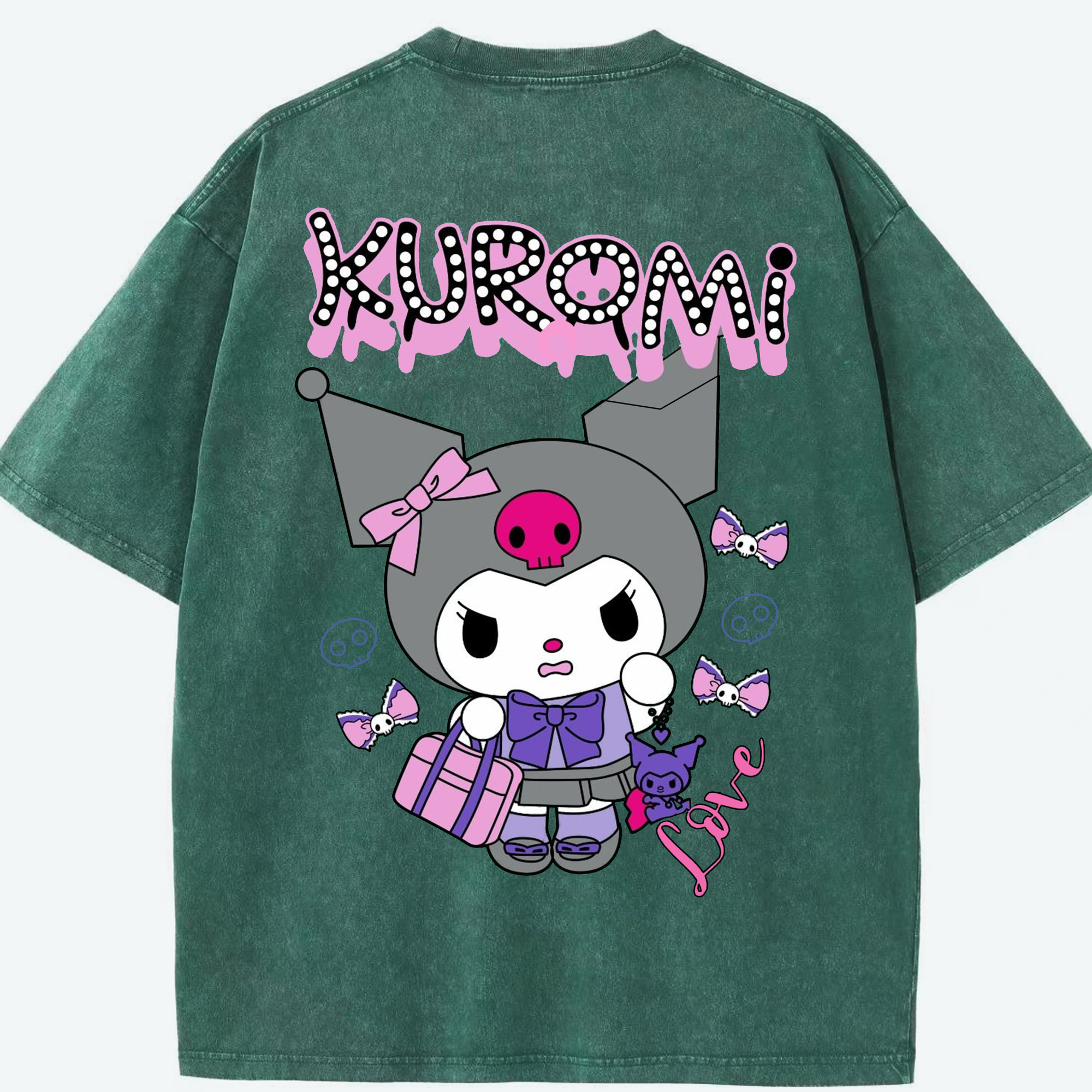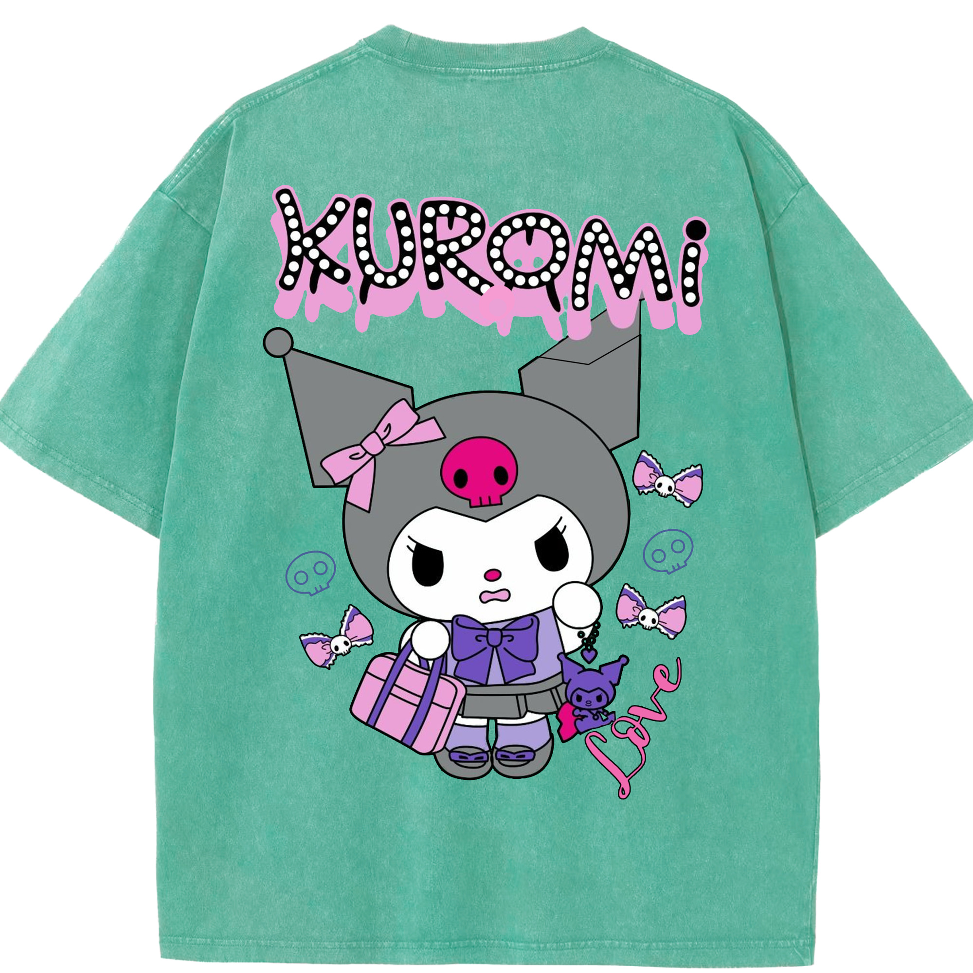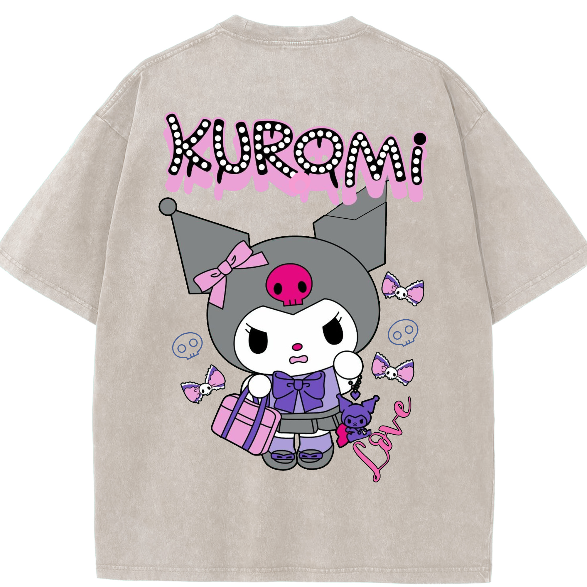 かわいいクロミ - 綿100% ヴィンテージ風 半袖Tシャツ ・ 背面プリント ・ 柔らか肌触り ・ 通気性 快適 ・ スポーツ カジュアル 外出用