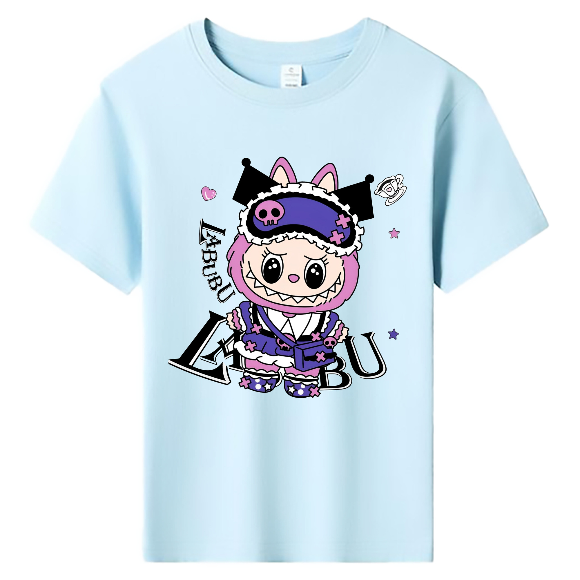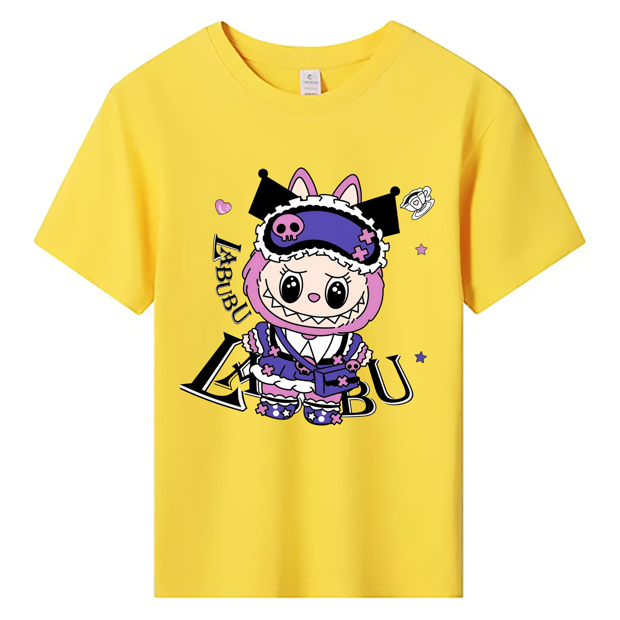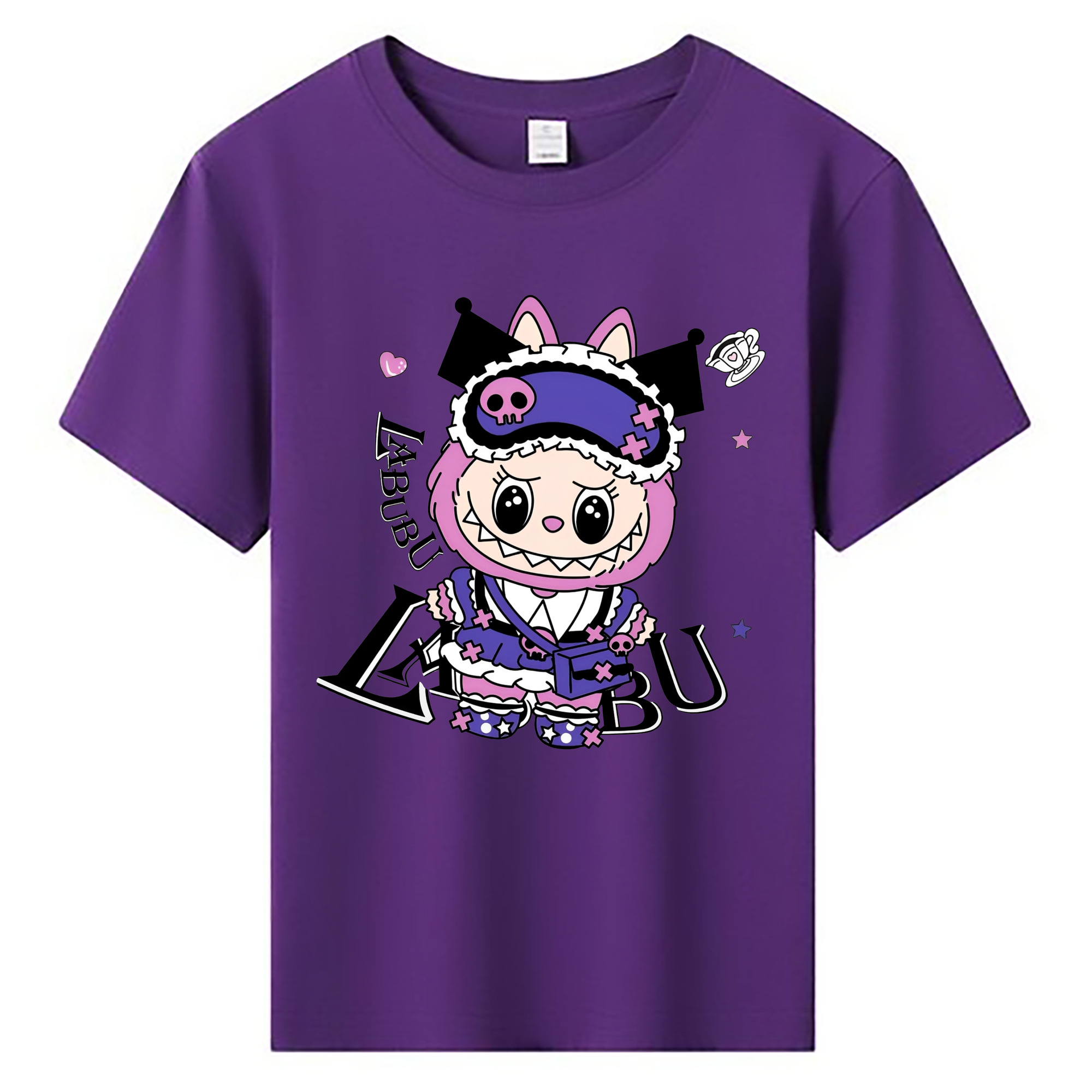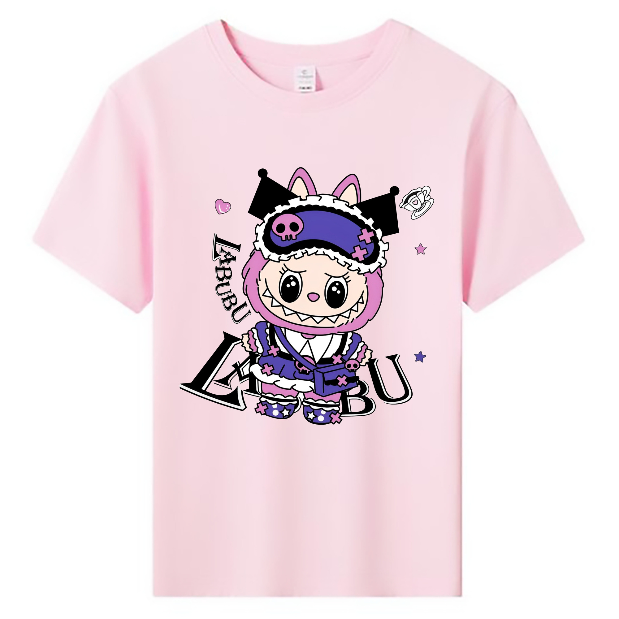 サンリオクロミ&LABUBU ラブブ - 綿100% ヴィンテージ風 半袖Tシャツ ・ フロントプリント ・ 柔らか肌触り ・ 通気性 快適 ・ スポーツ カジュアル 外出用