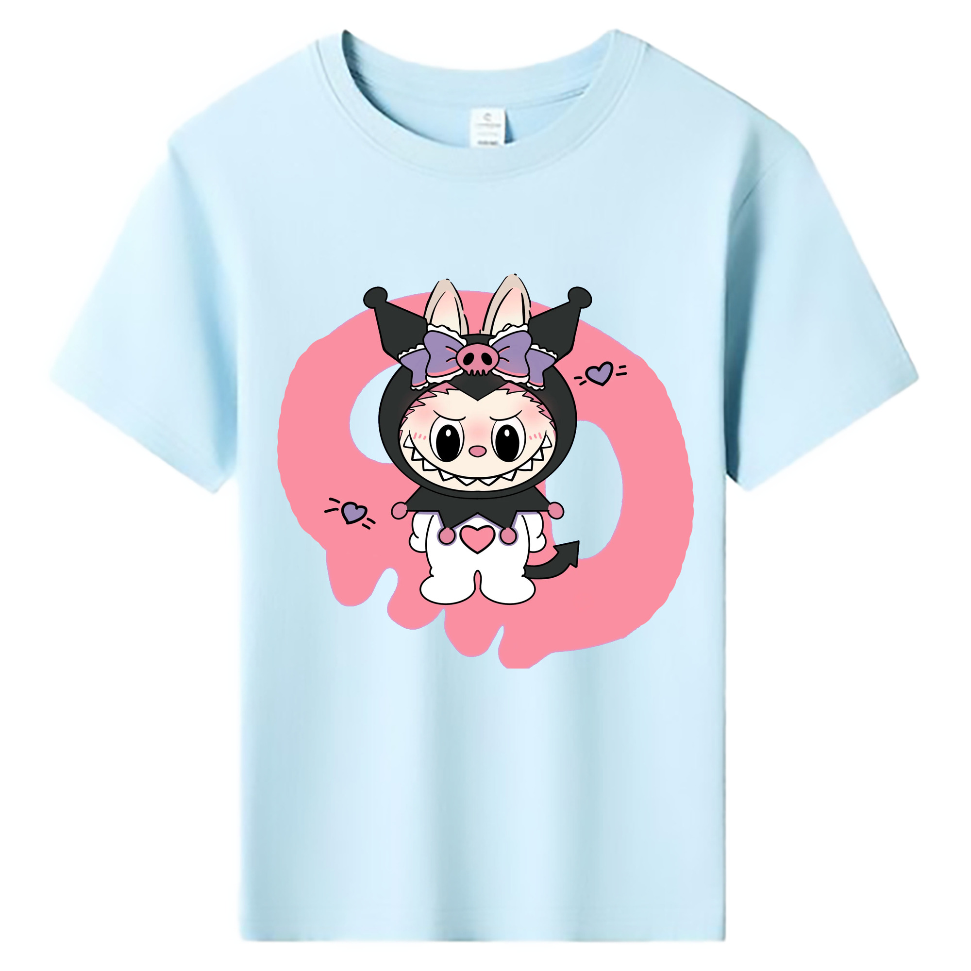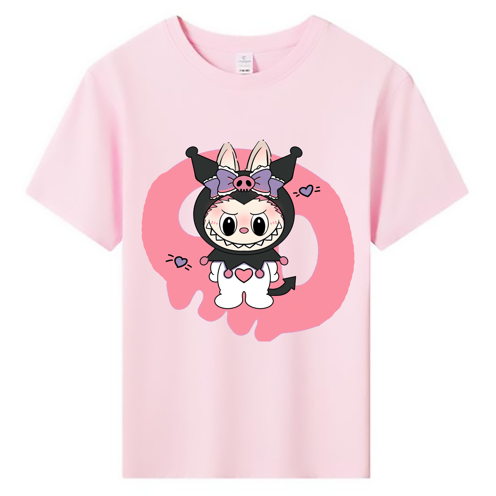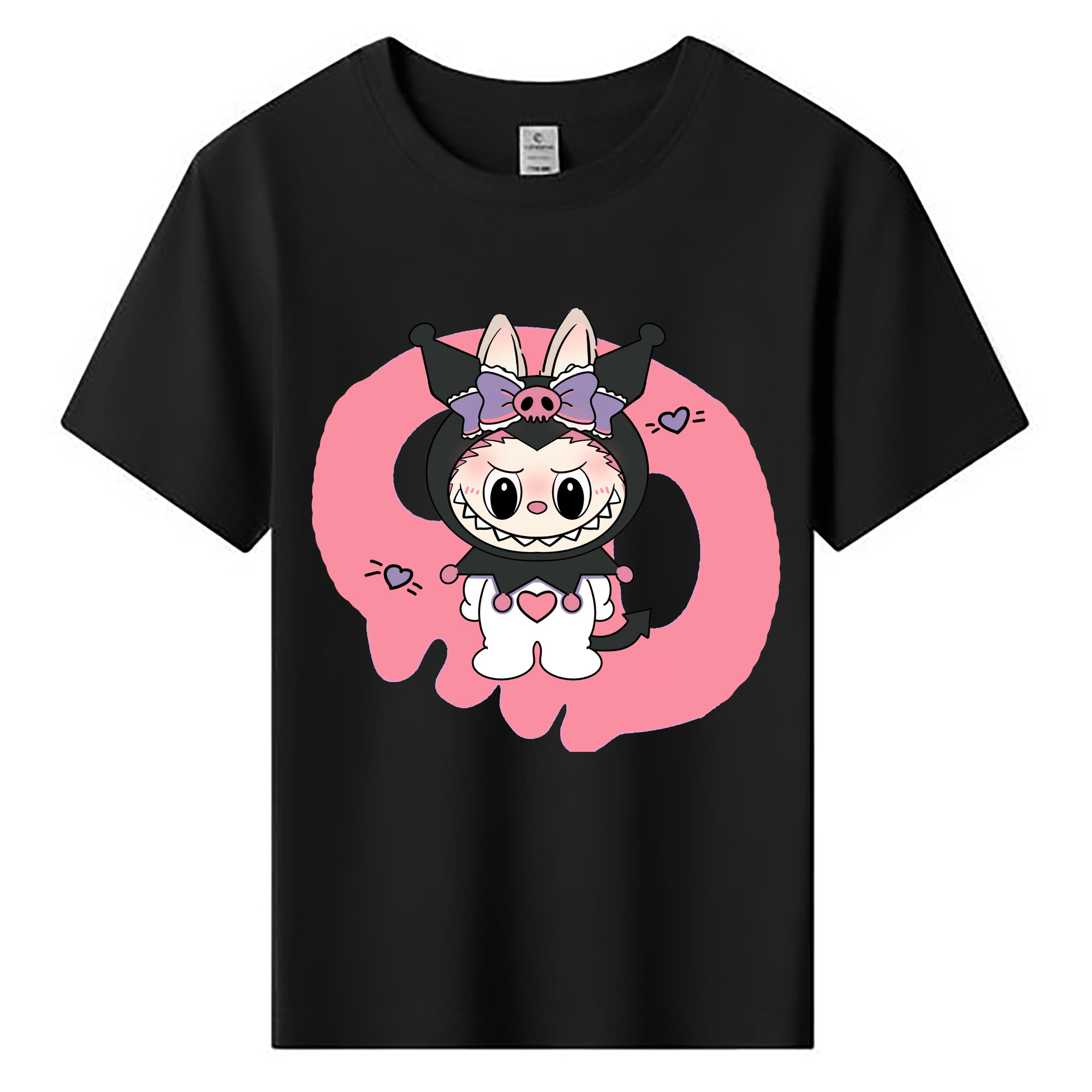 サンリオクロミ&LABUBU ラブブ - 綿100% ヴィンテージ風 半袖Tシャツ ・ フロントプリント ・ 柔らか肌触り ・ 通気性 快適 ・ スポーツ カジュアル 外出用