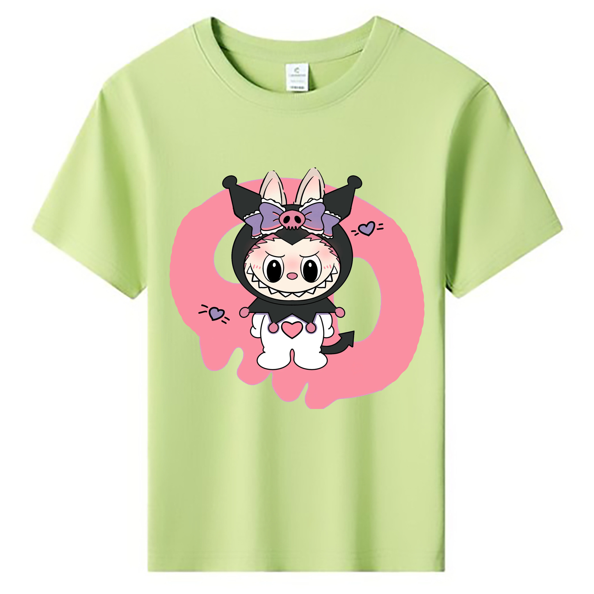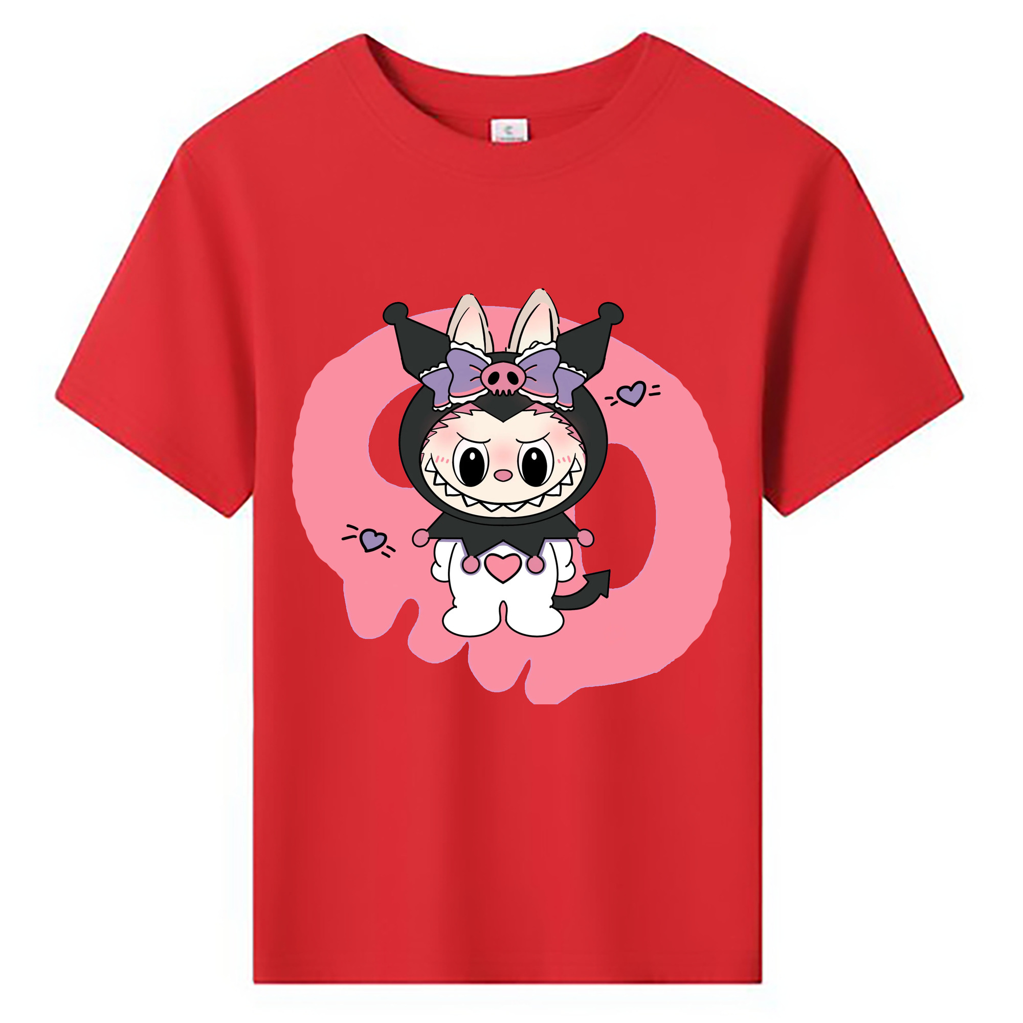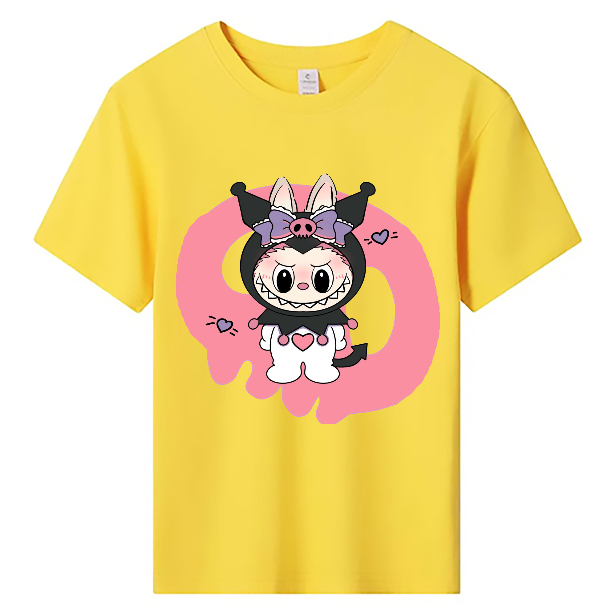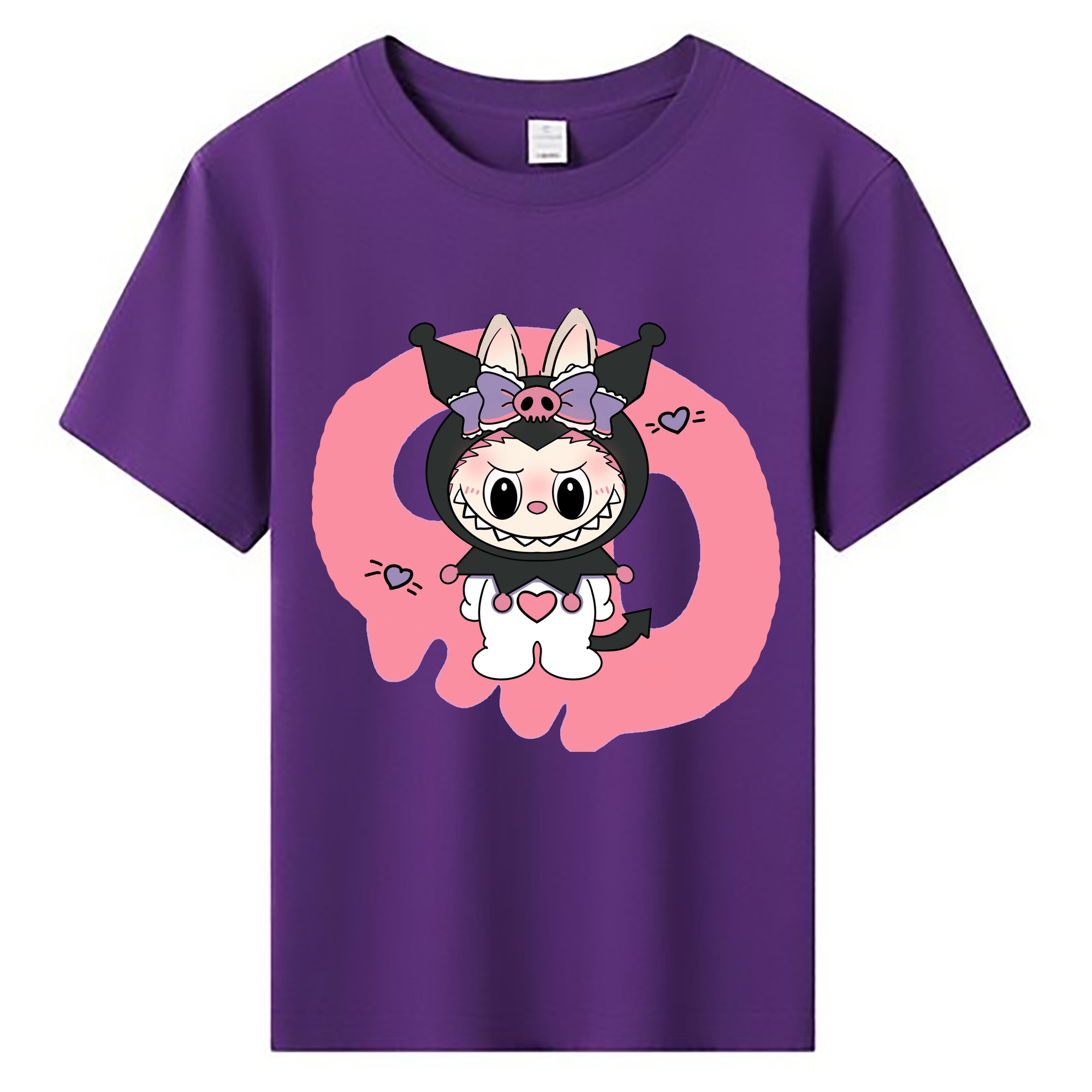 サンリオクロミ&LABUBU ラブブ - 綿100% ヴィンテージ風 半袖Tシャツ ・ フロントプリント ・ 柔らか肌触り ・ 通気性 快適 ・ スポーツ カジュアル 外出用