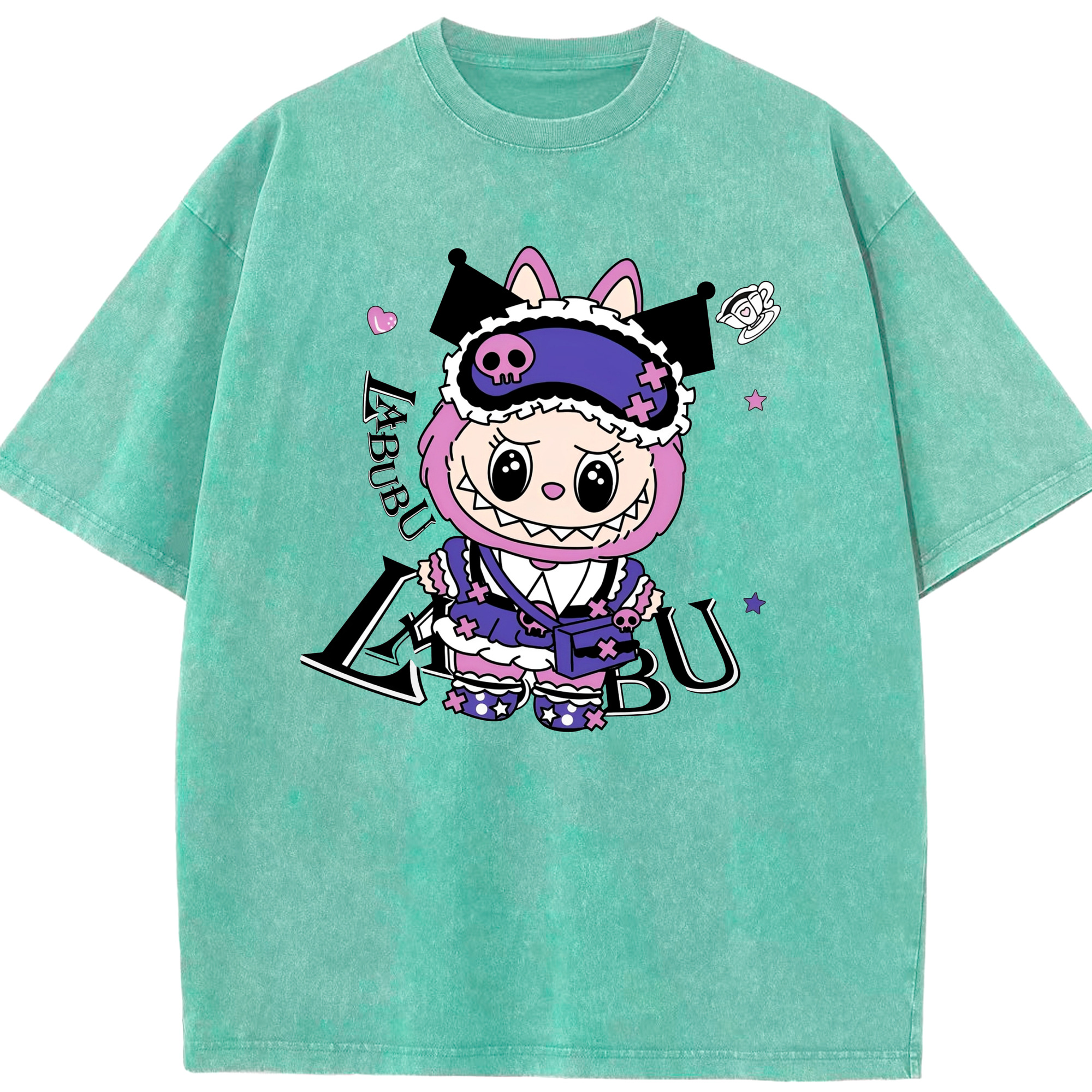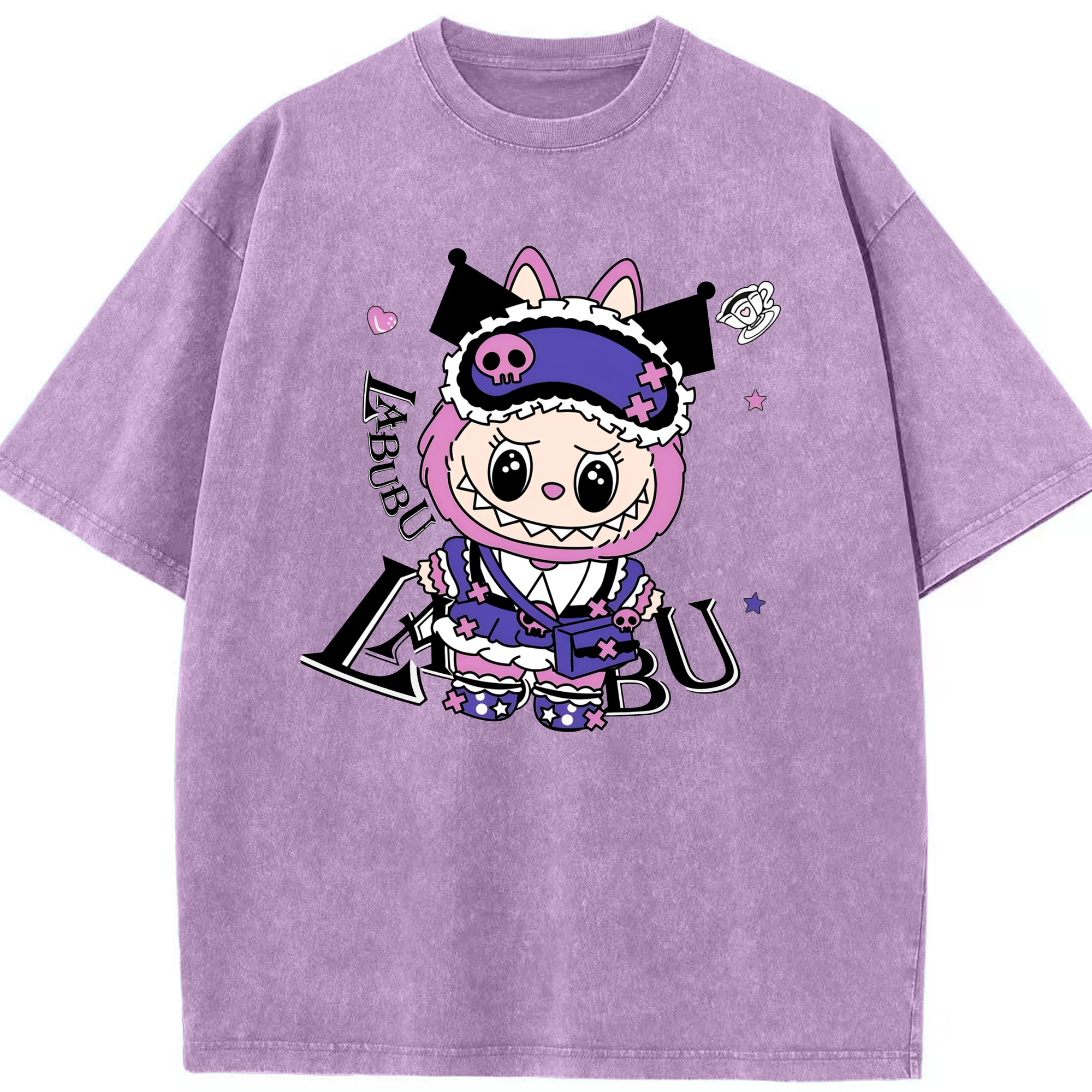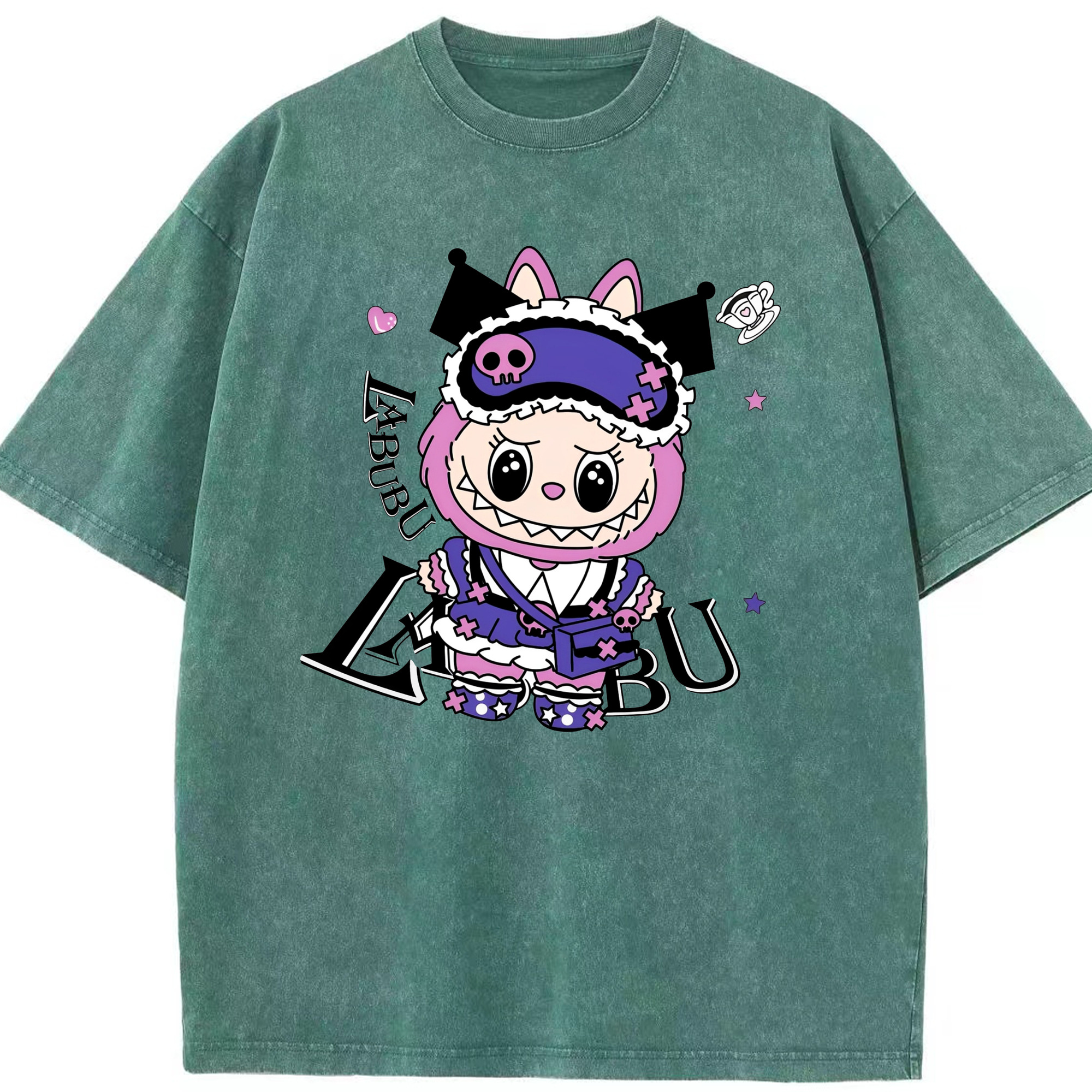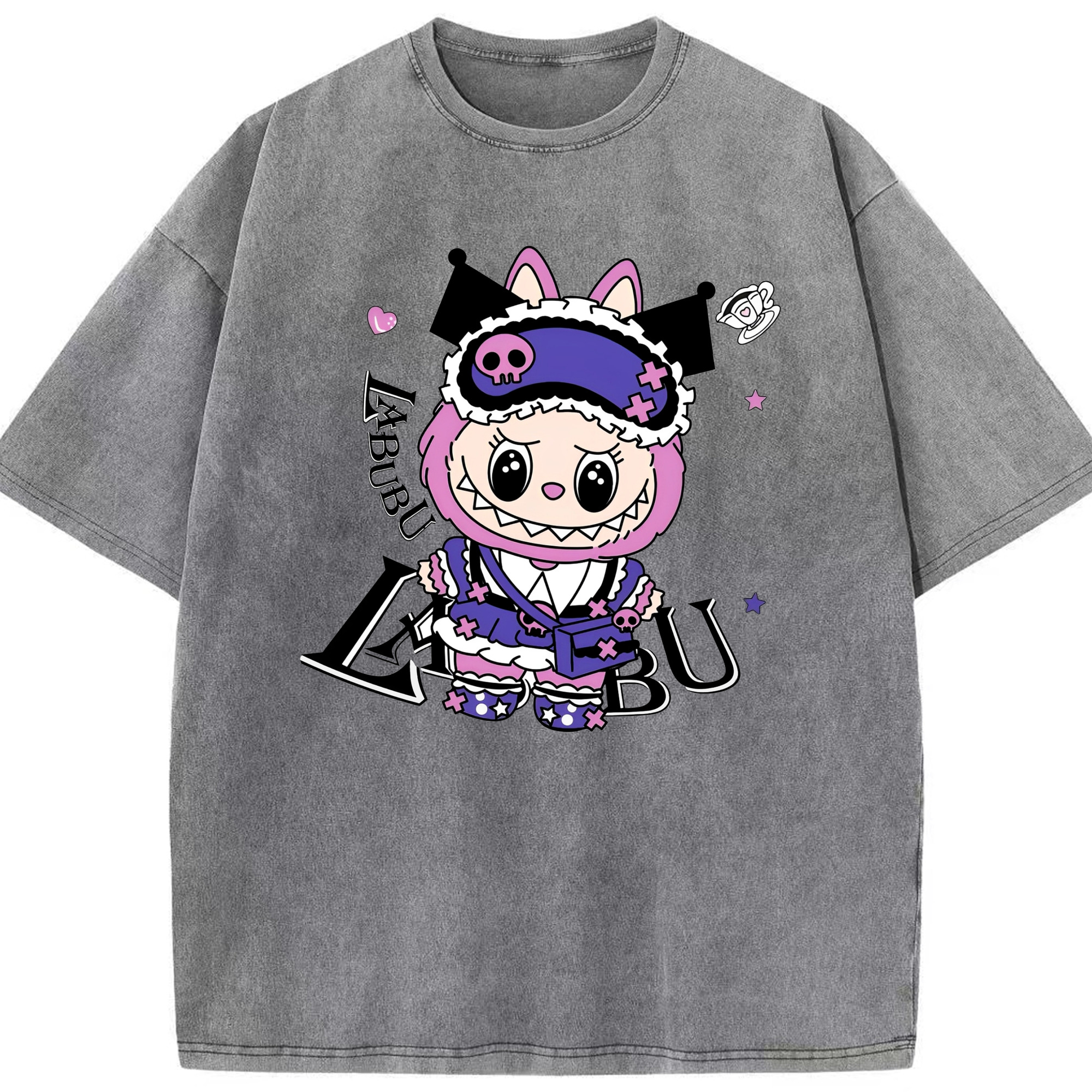 サンリオクロミ&LABUBU ラブブ - 綿100% ヴィンテージ風 半袖Tシャツ ・ 背面プリント ・ 柔らか肌触り ・ 通気性 快適 ・ スポーツ カジュアル 外出用