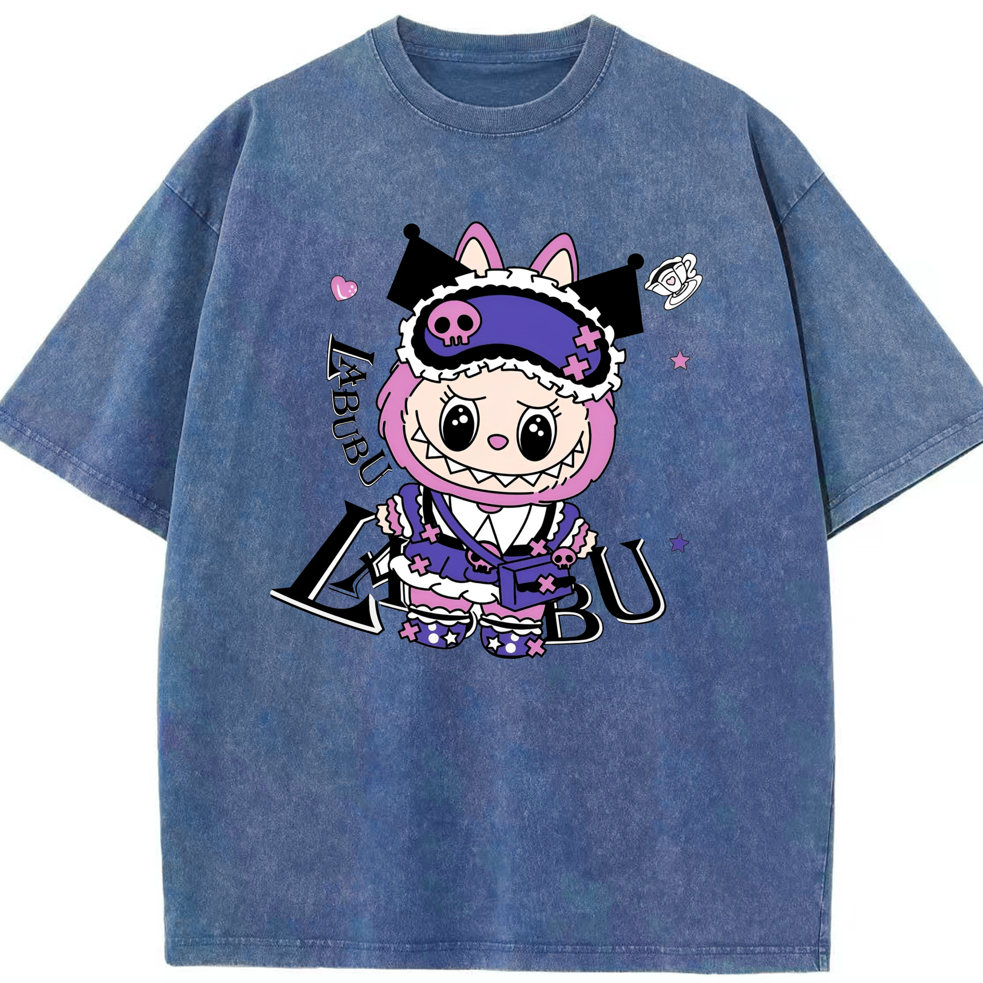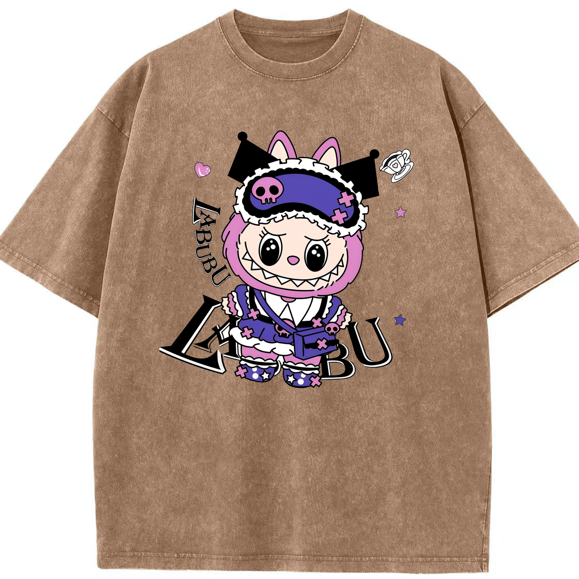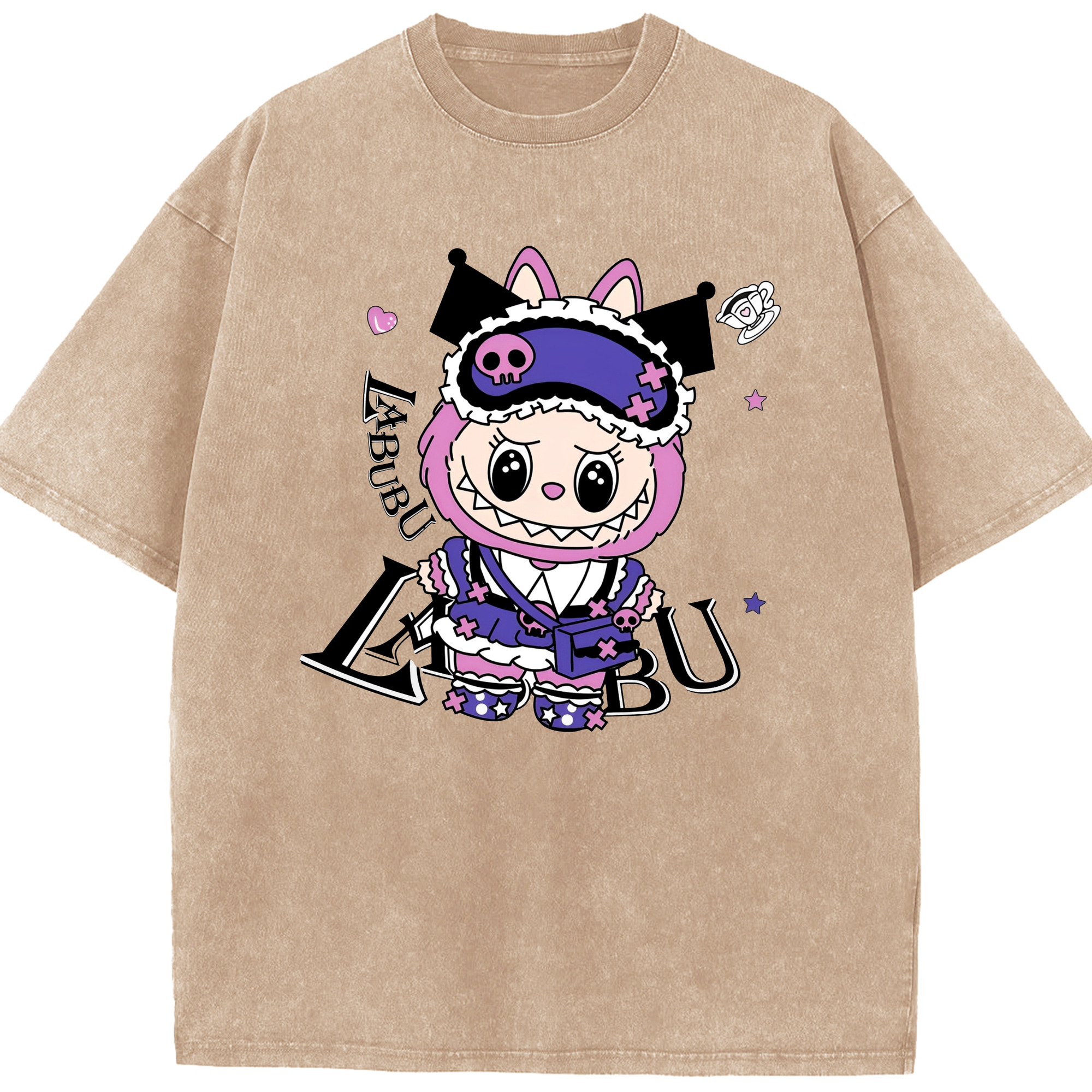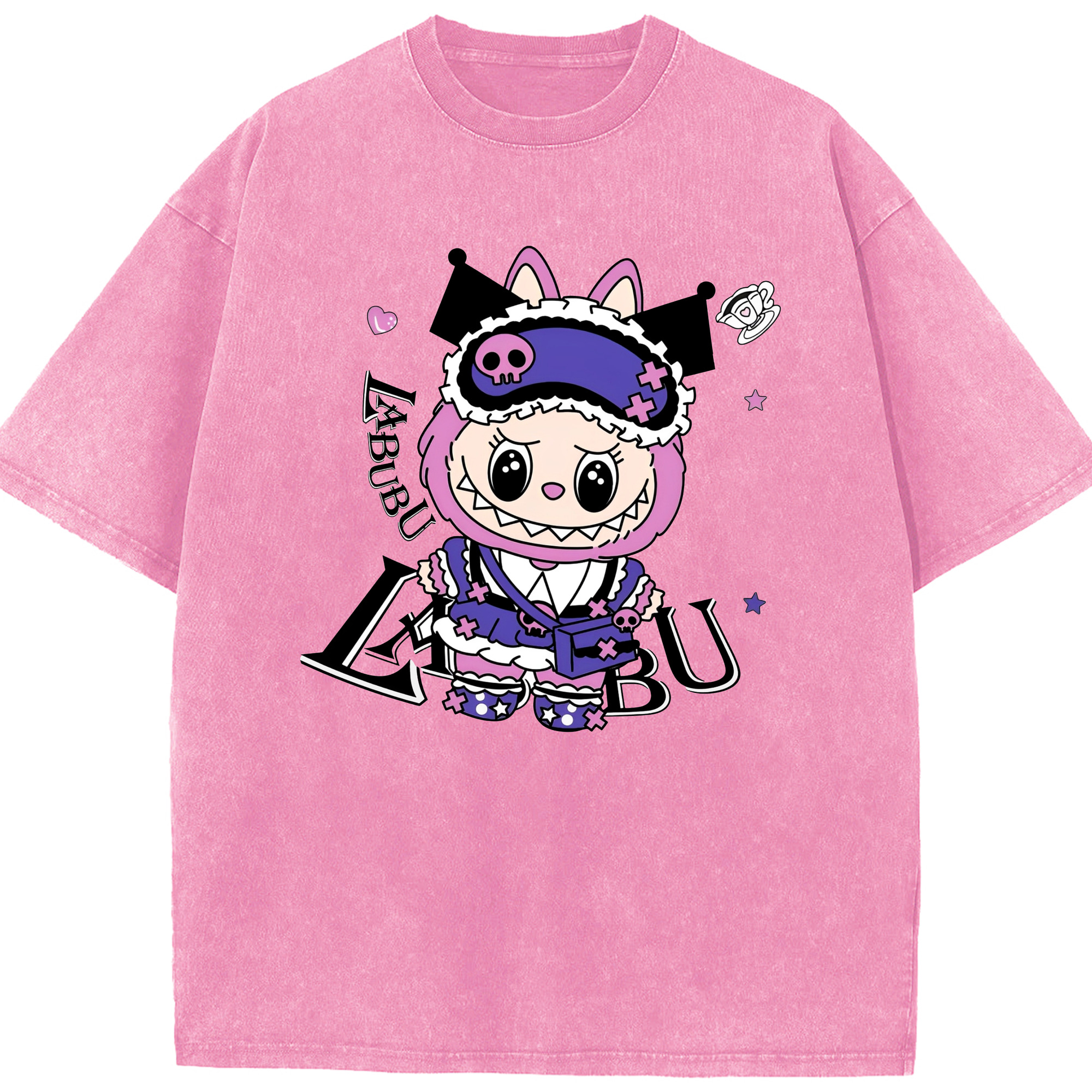 サンリオクロミ&LABUBU ラブブ - 綿100% ヴィンテージ風 半袖Tシャツ ・ 背面プリント ・ 柔らか肌触り ・ 通気性 快適 ・ スポーツ カジュアル 外出用