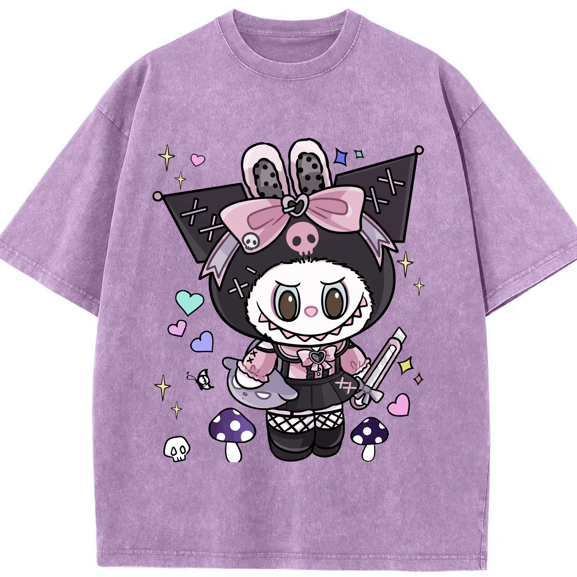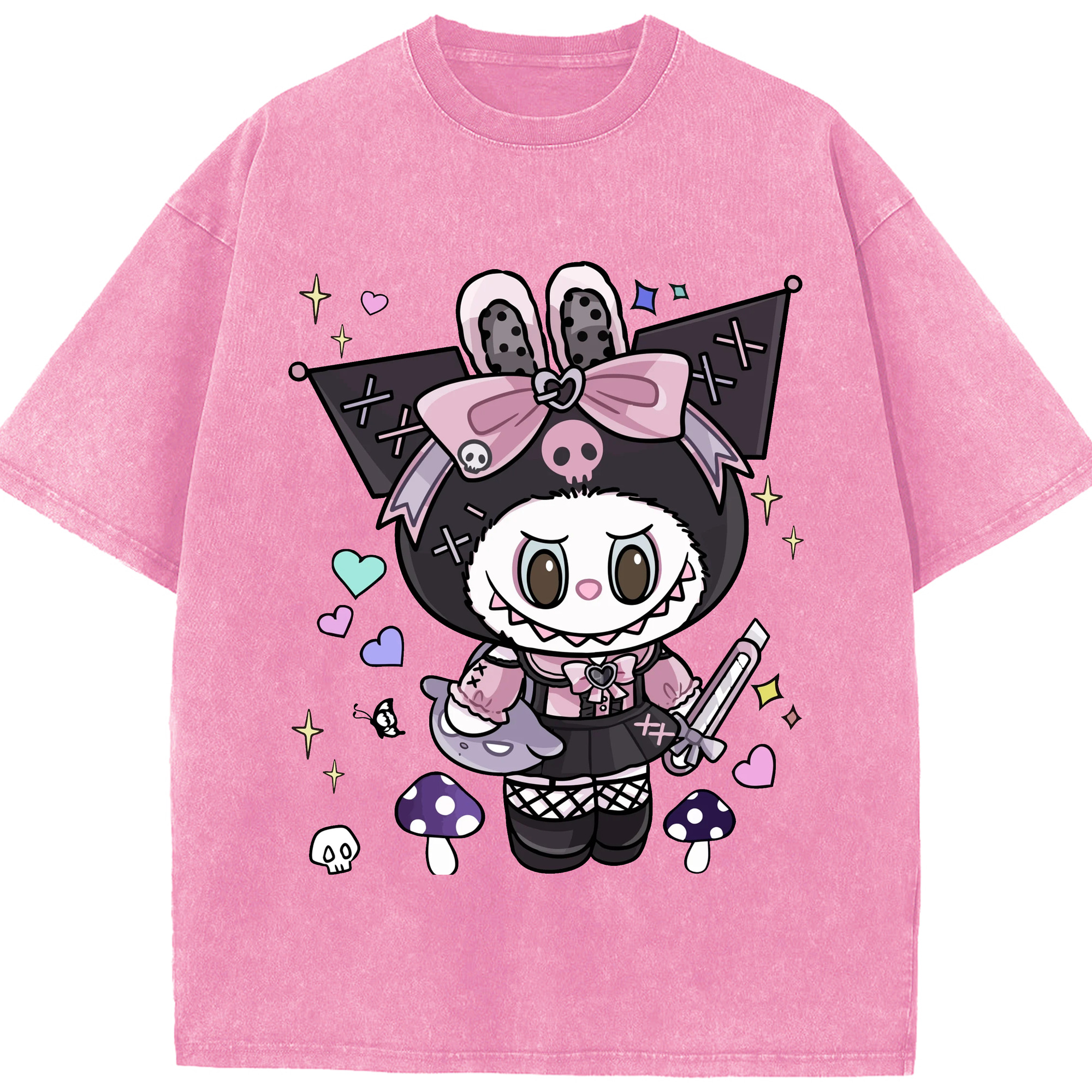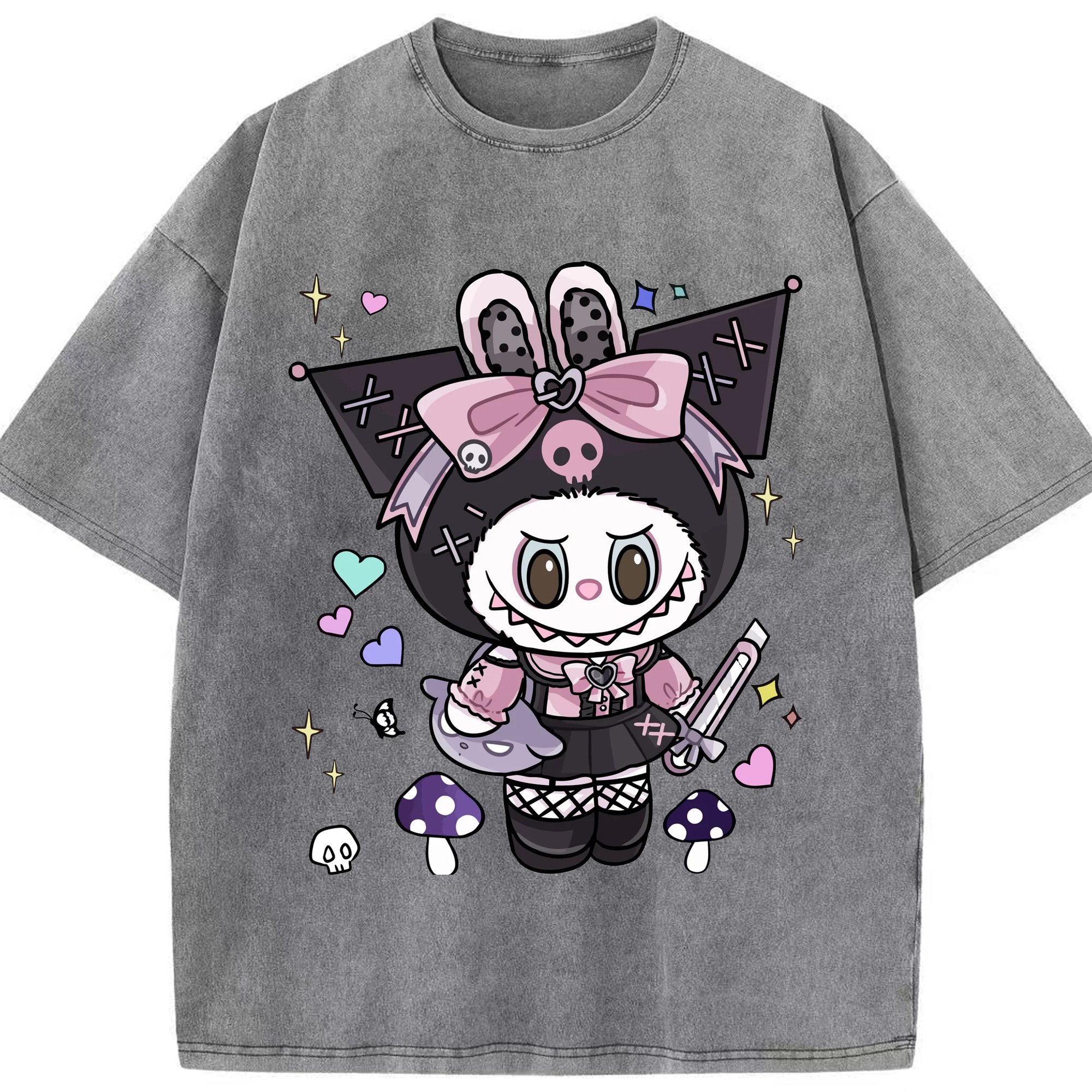 サンリオクロミ&LABUBU ラブブ - 綿100% ヴィンテージ風 半袖Tシャツ ・ 背面プリント ・ 柔らか肌触り ・ 通気性 快適 ・ スポーツ カジュアル 外出用