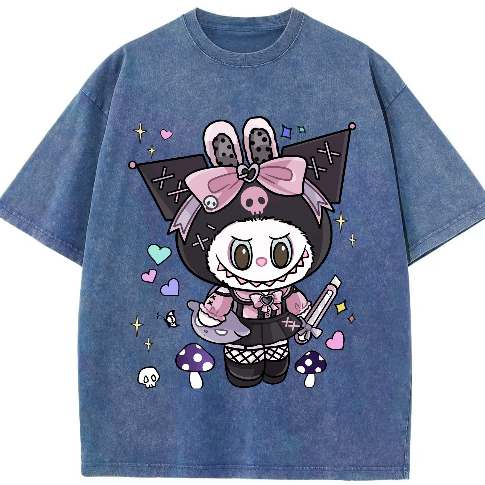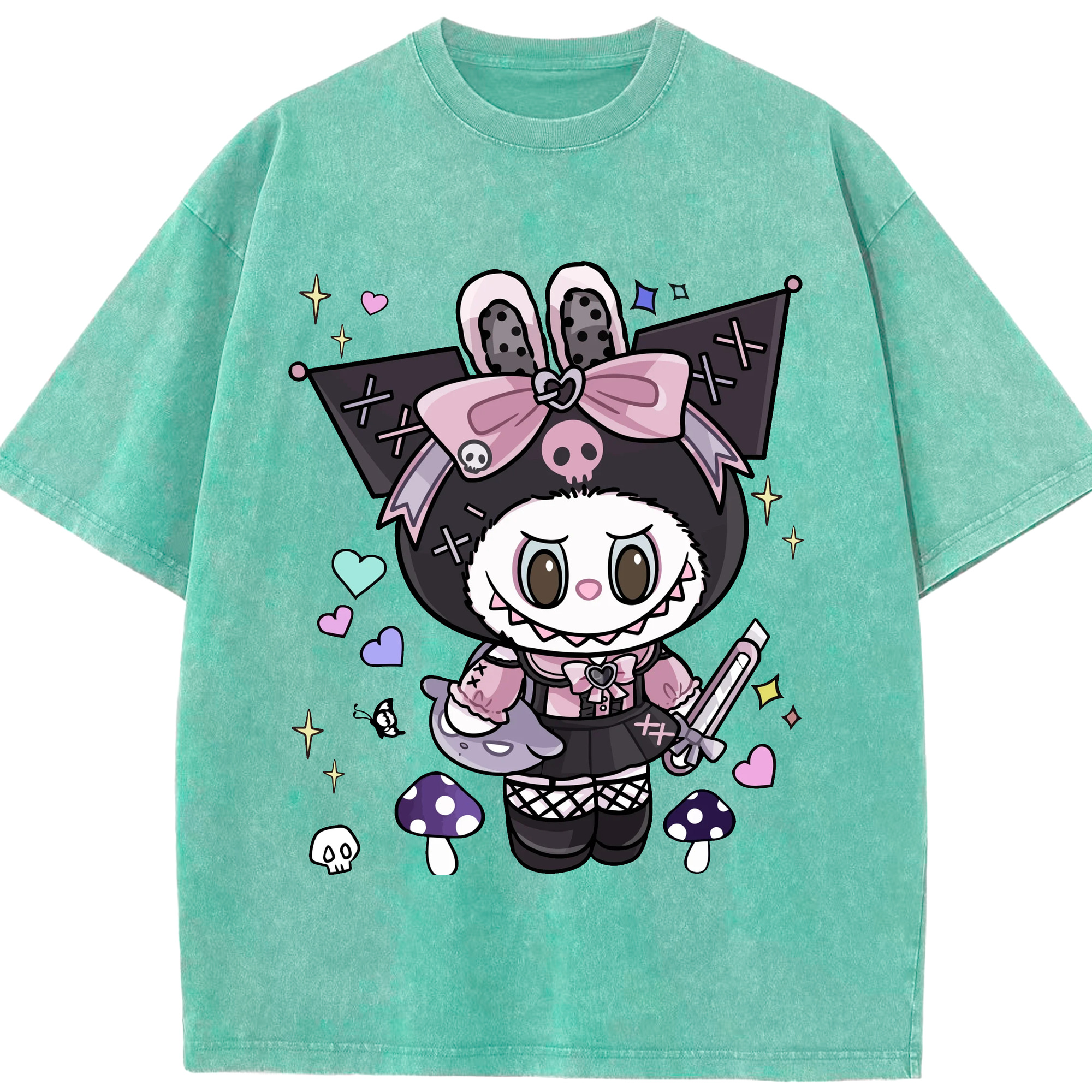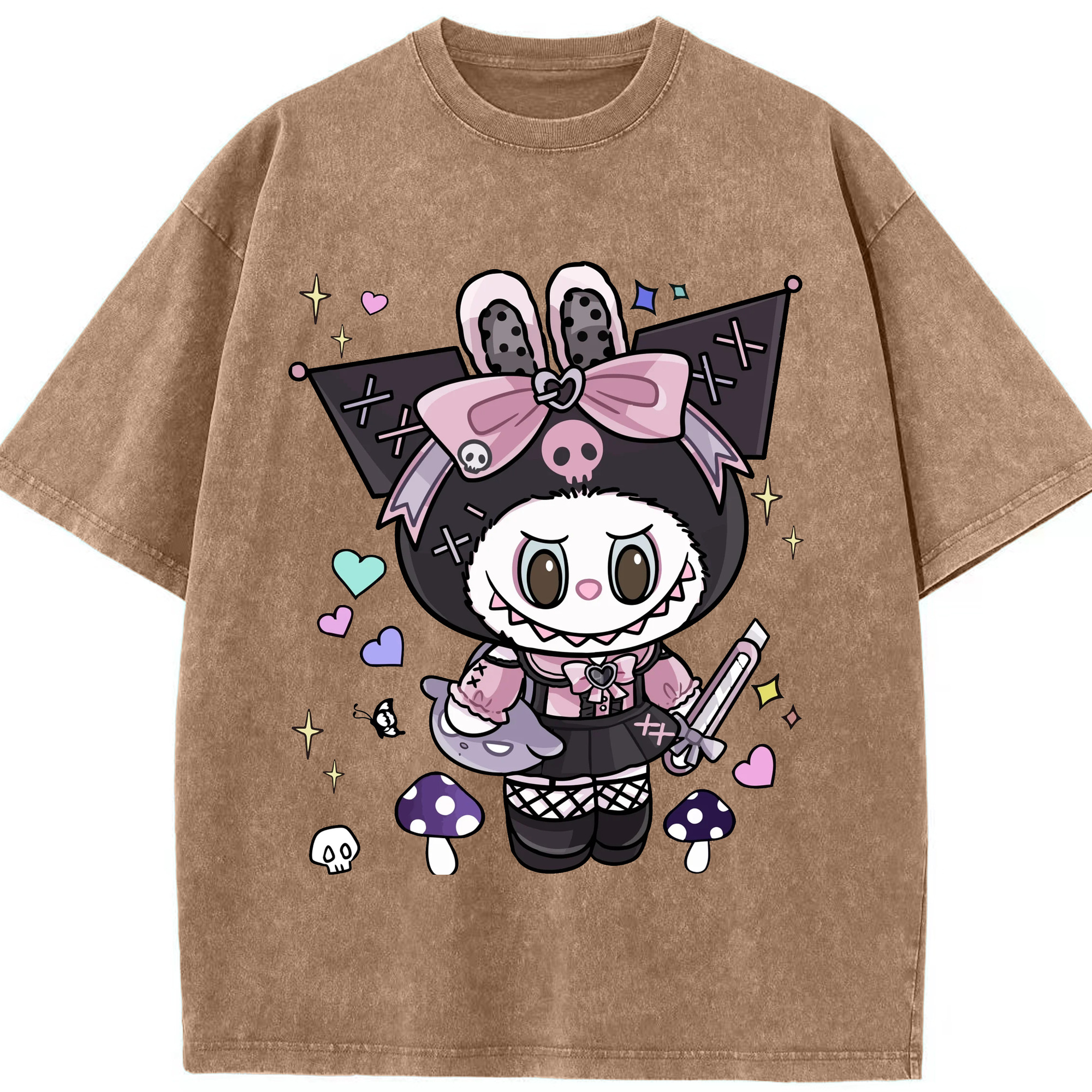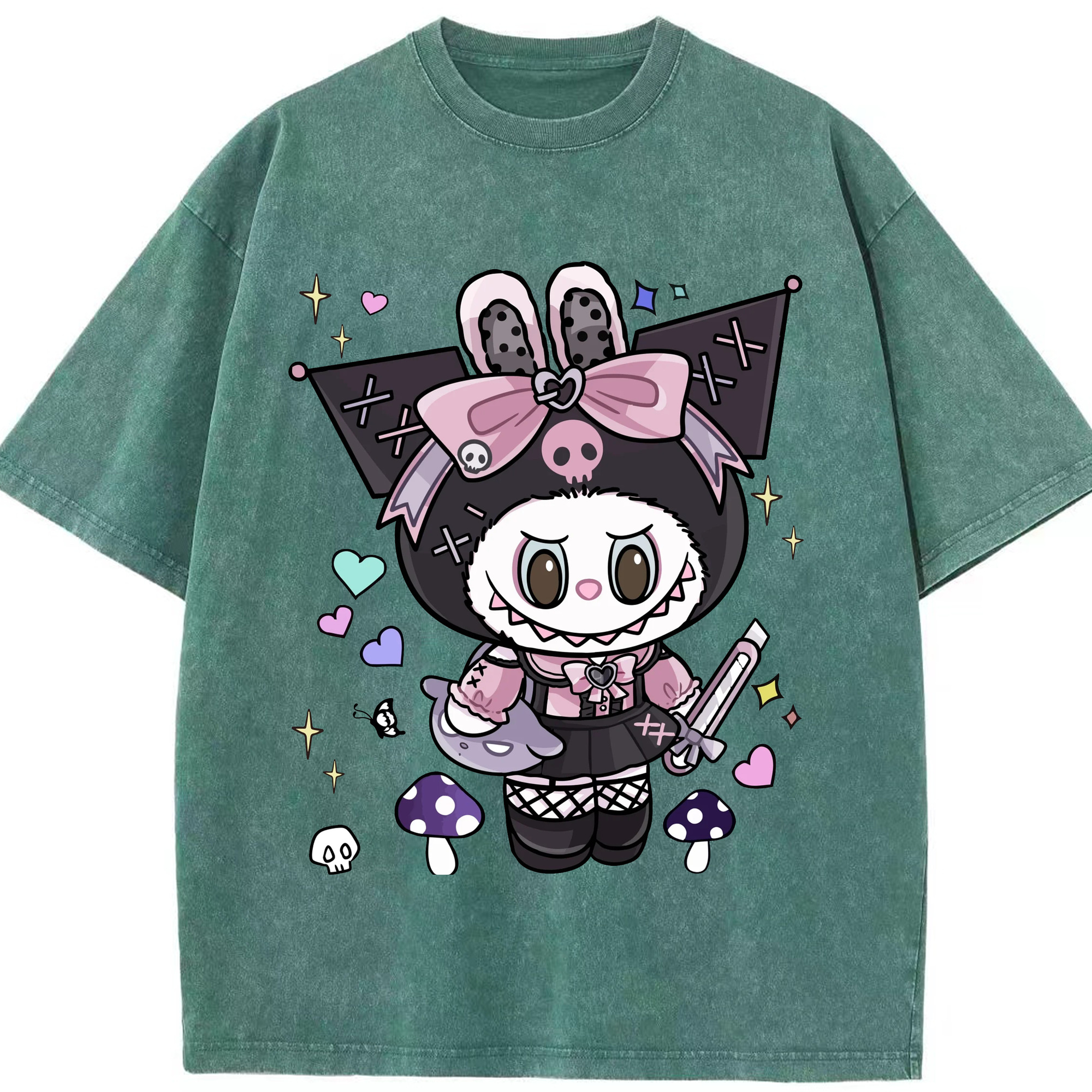 サンリオクロミ&LABUBU ラブブ - 綿100% ヴィンテージ風 半袖Tシャツ ・ 背面プリント ・ 柔らか肌触り ・ 通気性 快適 ・ スポーツ カジュアル 外出用