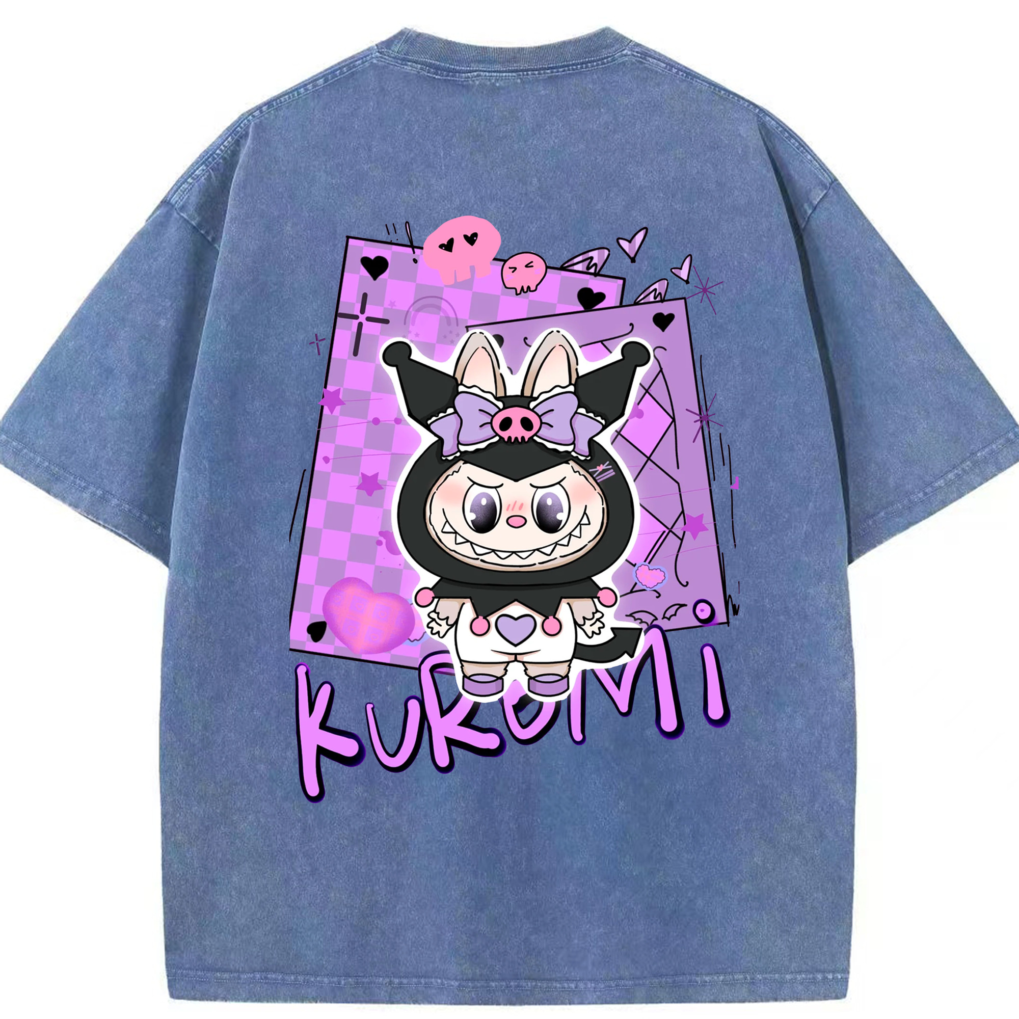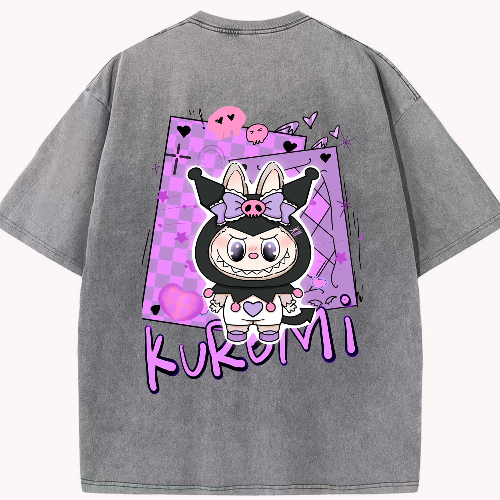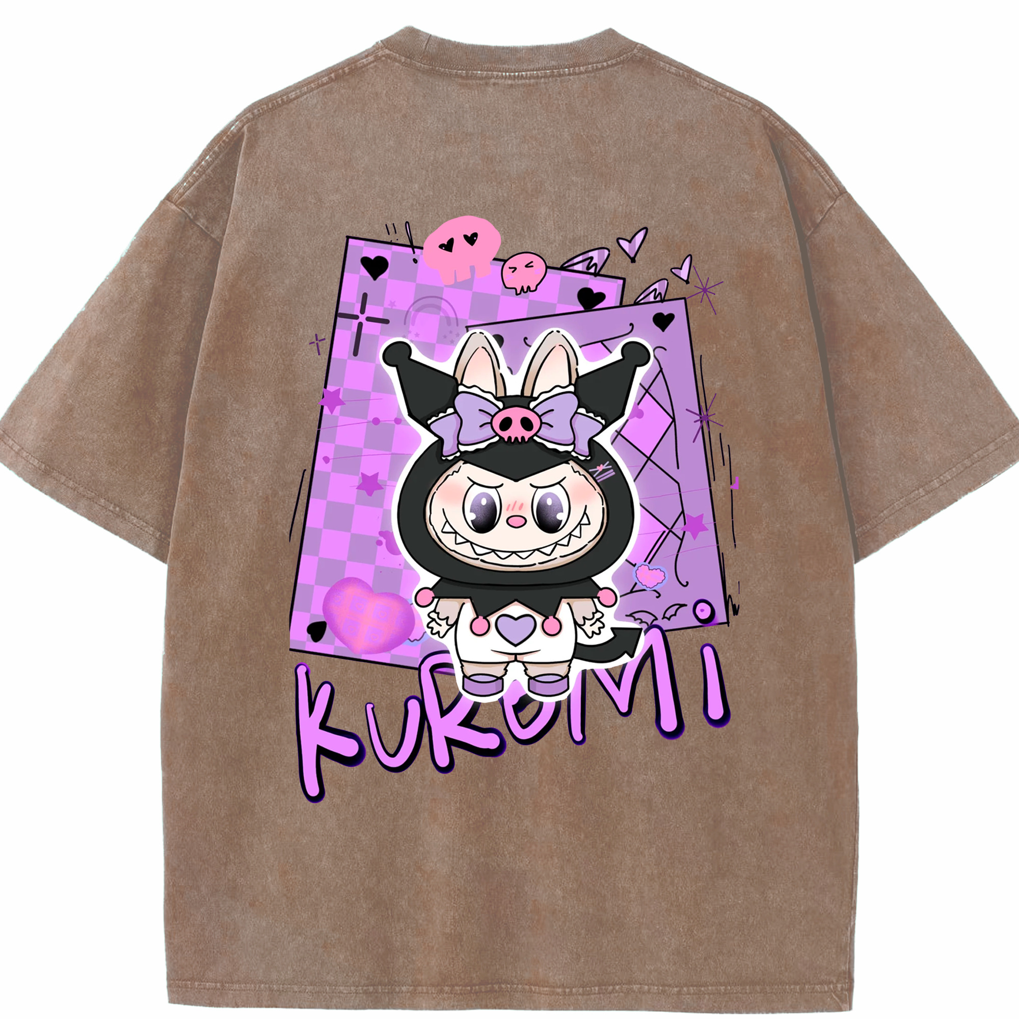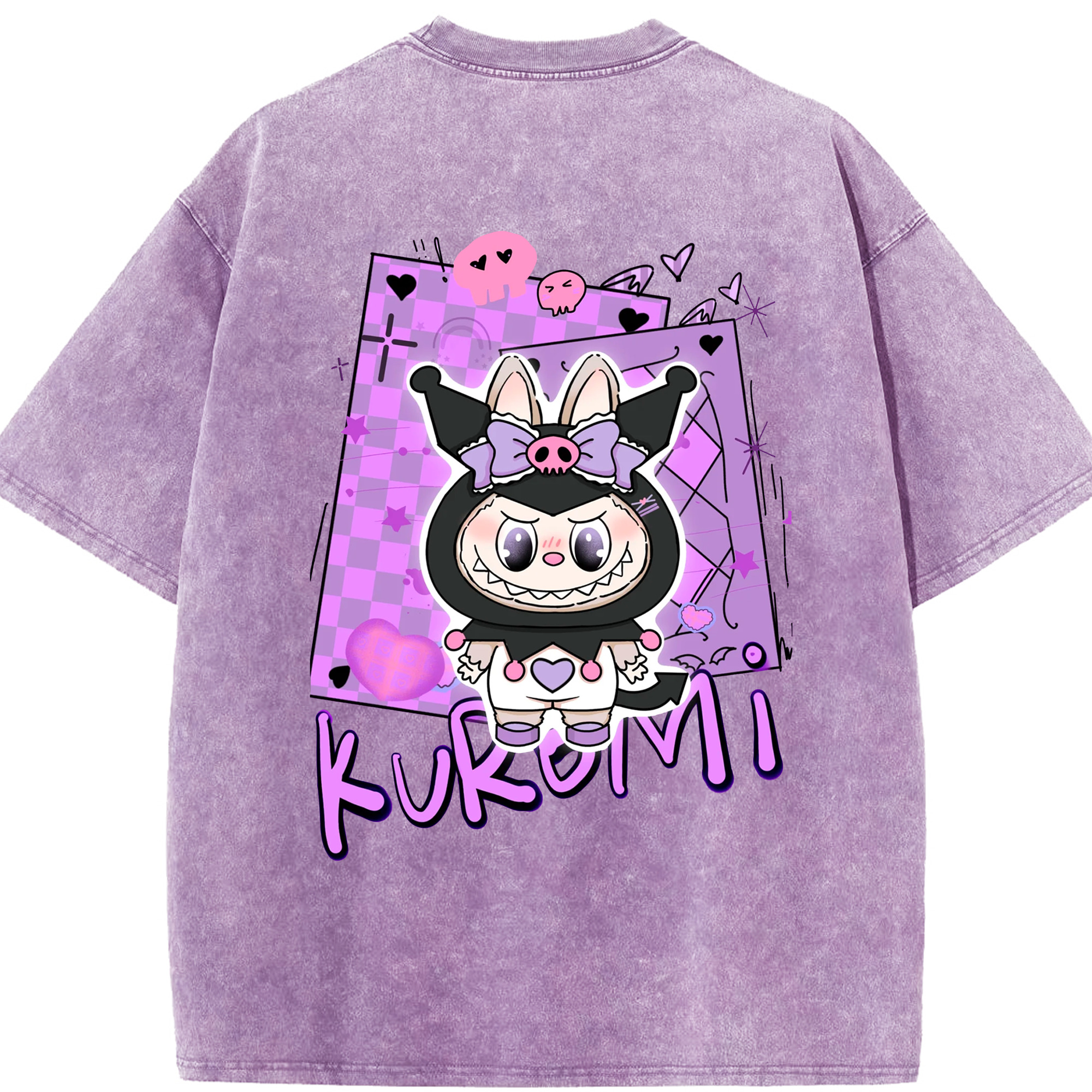 サンリオクロミ&LABUBU ラブブ - 綿100% ヴィンテージ風 半袖Tシャツ ・ フロントプリント ・ 柔らか肌触り ・ 通気性 快適 ・ スポーツ カジュアル 外出用