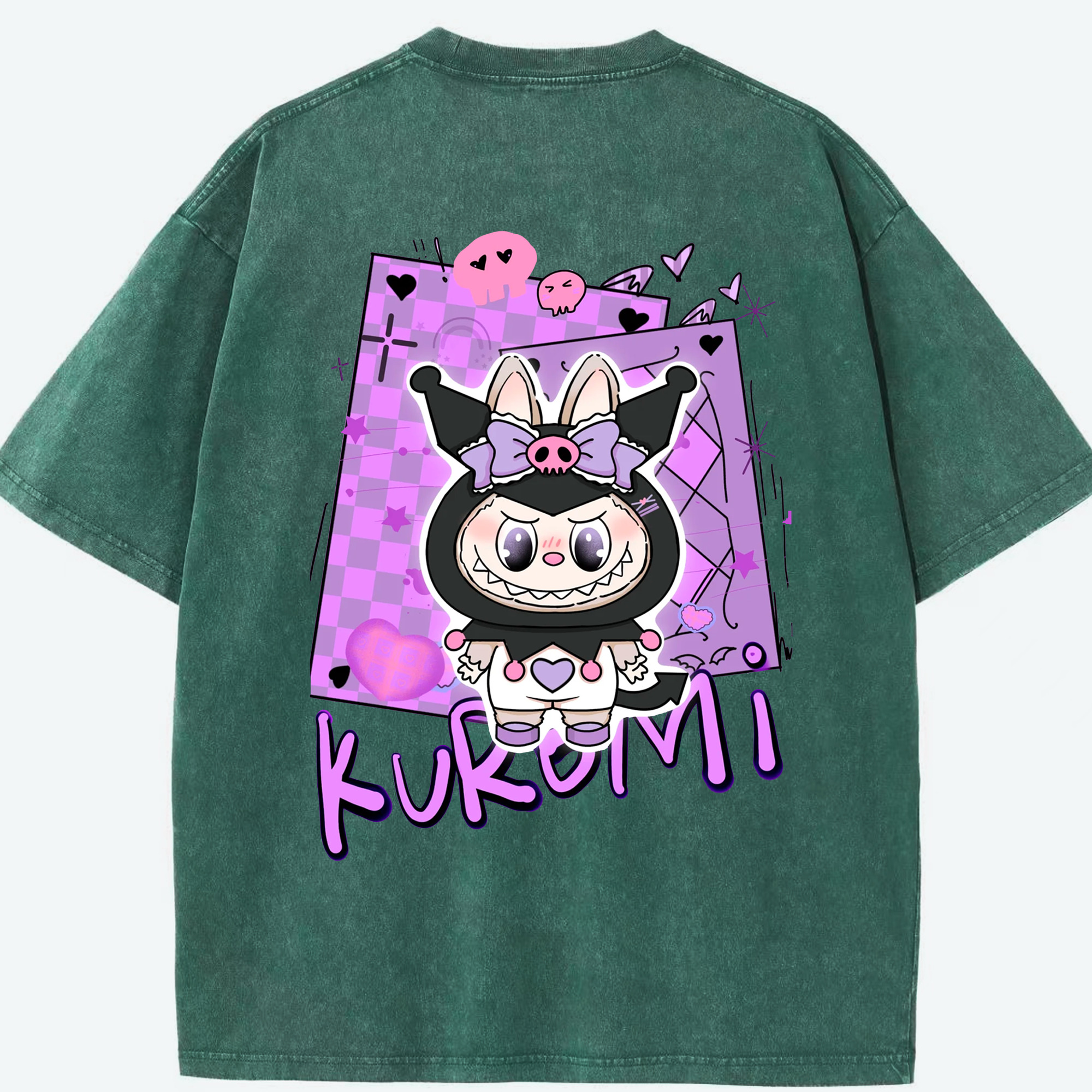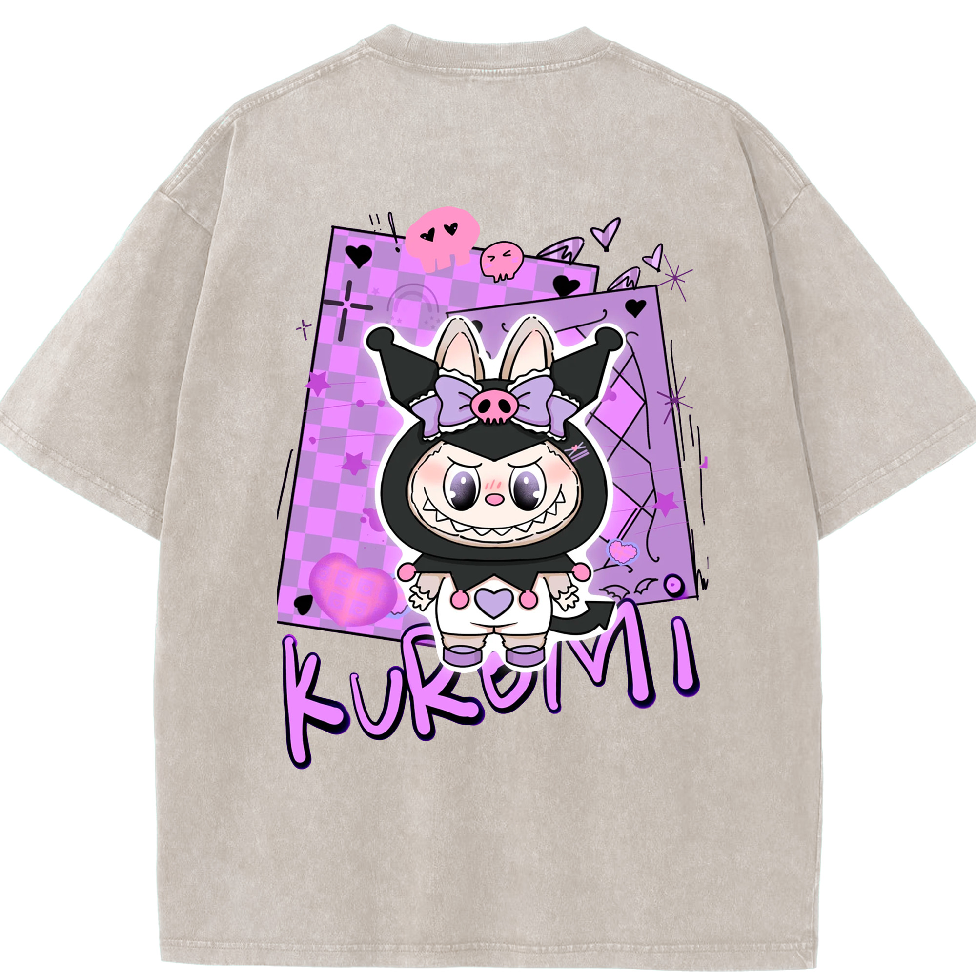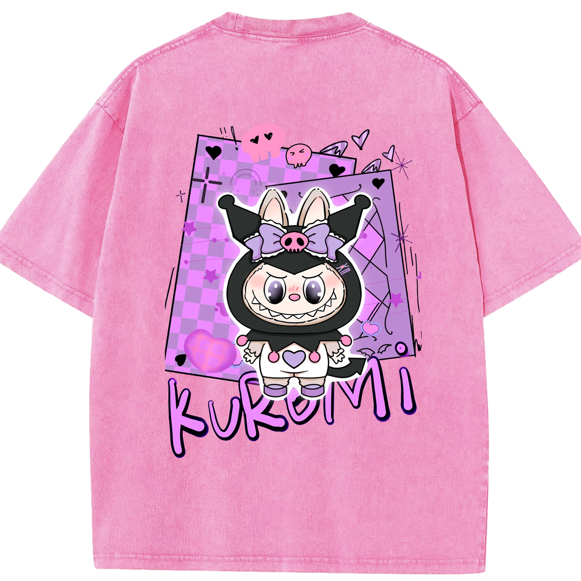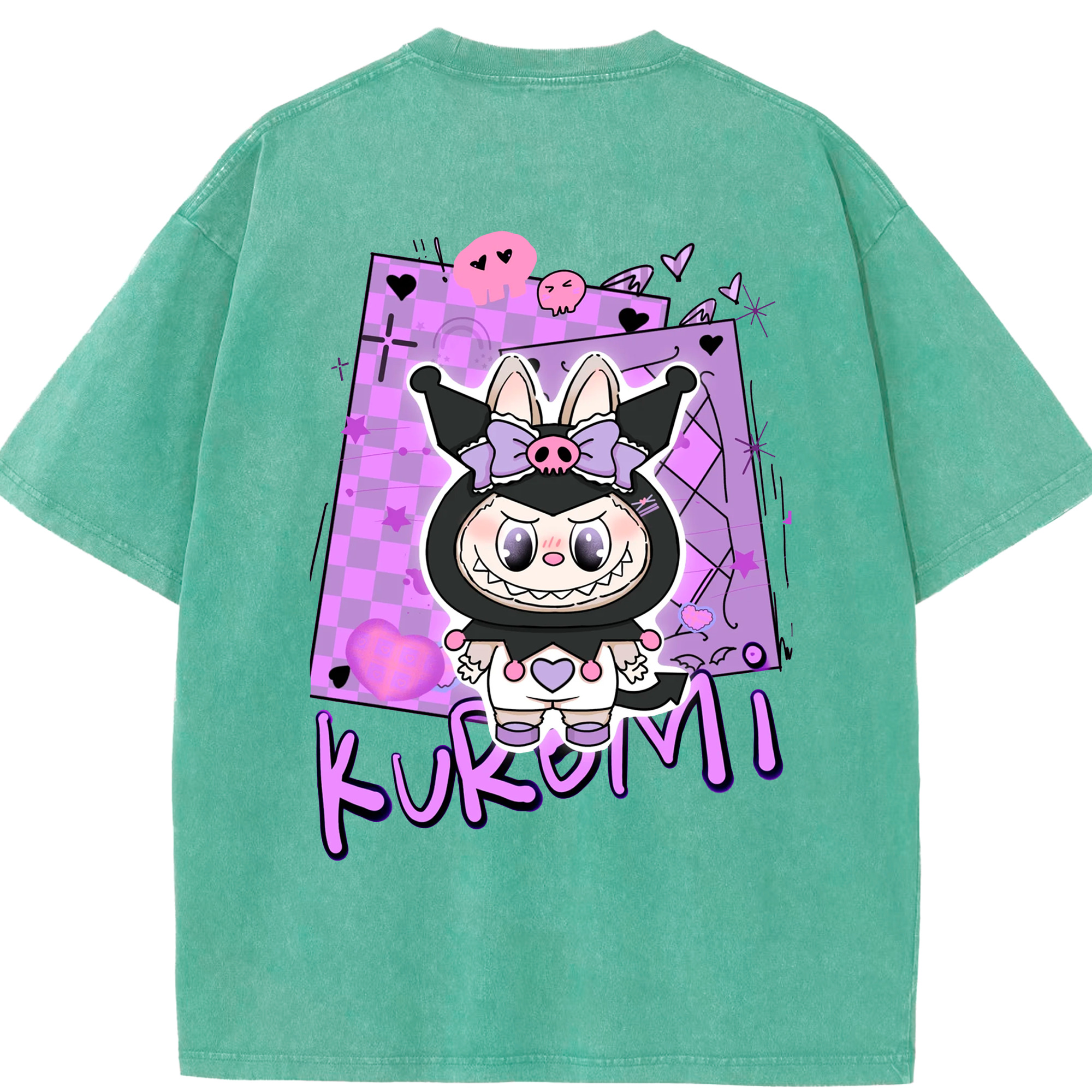 サンリオクロミ&LABUBU ラブブ - 綿100% ヴィンテージ風 半袖Tシャツ ・ フロントプリント ・ 柔らか肌触り ・ 通気性 快適 ・ スポーツ カジュアル 外出用