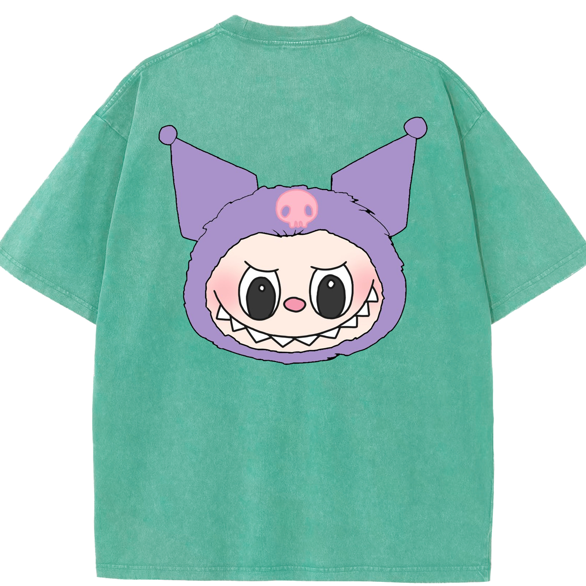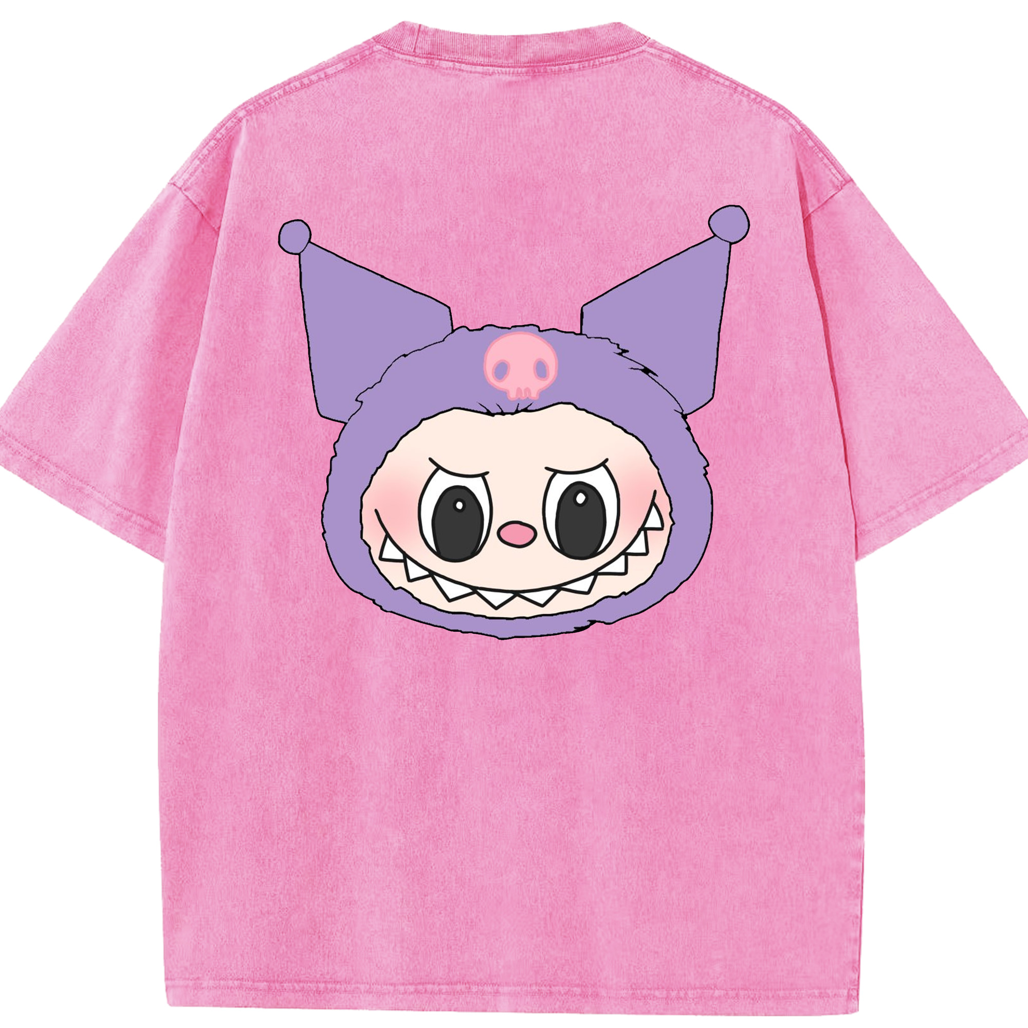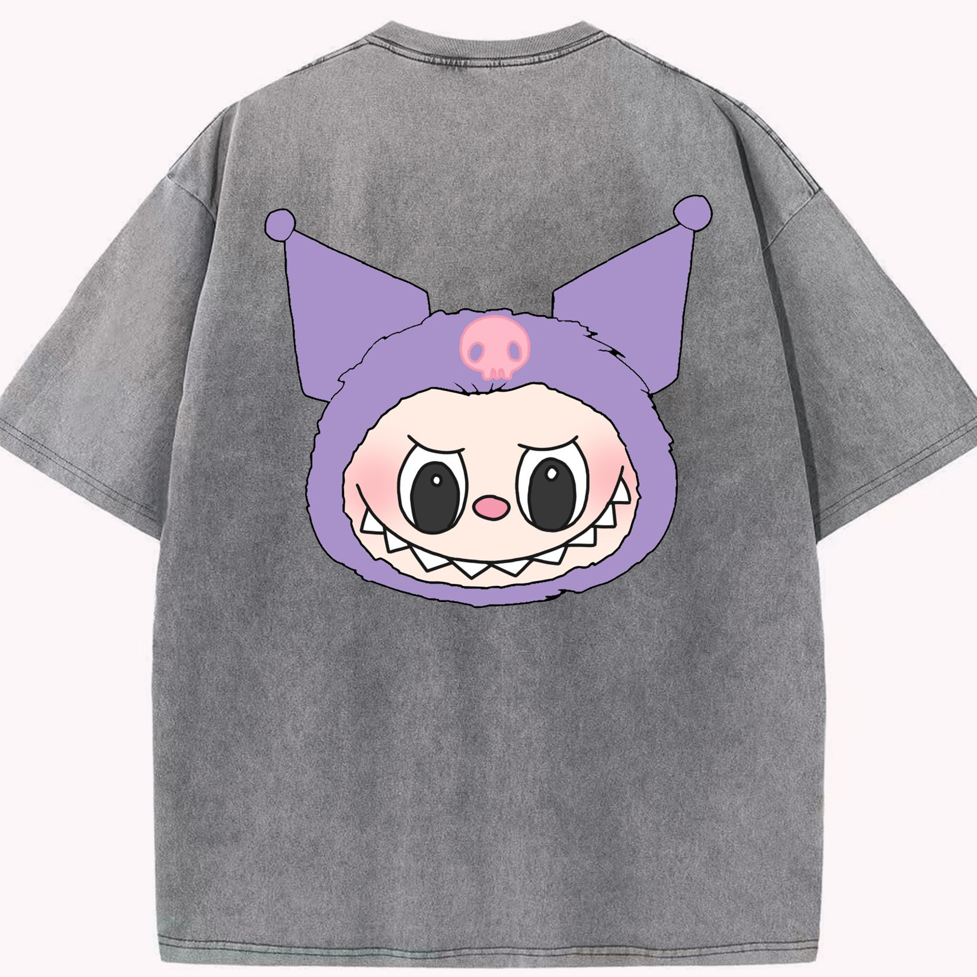 サンリオクロミ&LABUBU ラブブ - 綿100% ヴィンテージ風 半袖Tシャツ ・ フロントプリント ・ 柔らか肌触り ・ 通気性 快適 ・ スポーツ カジュアル 外出用