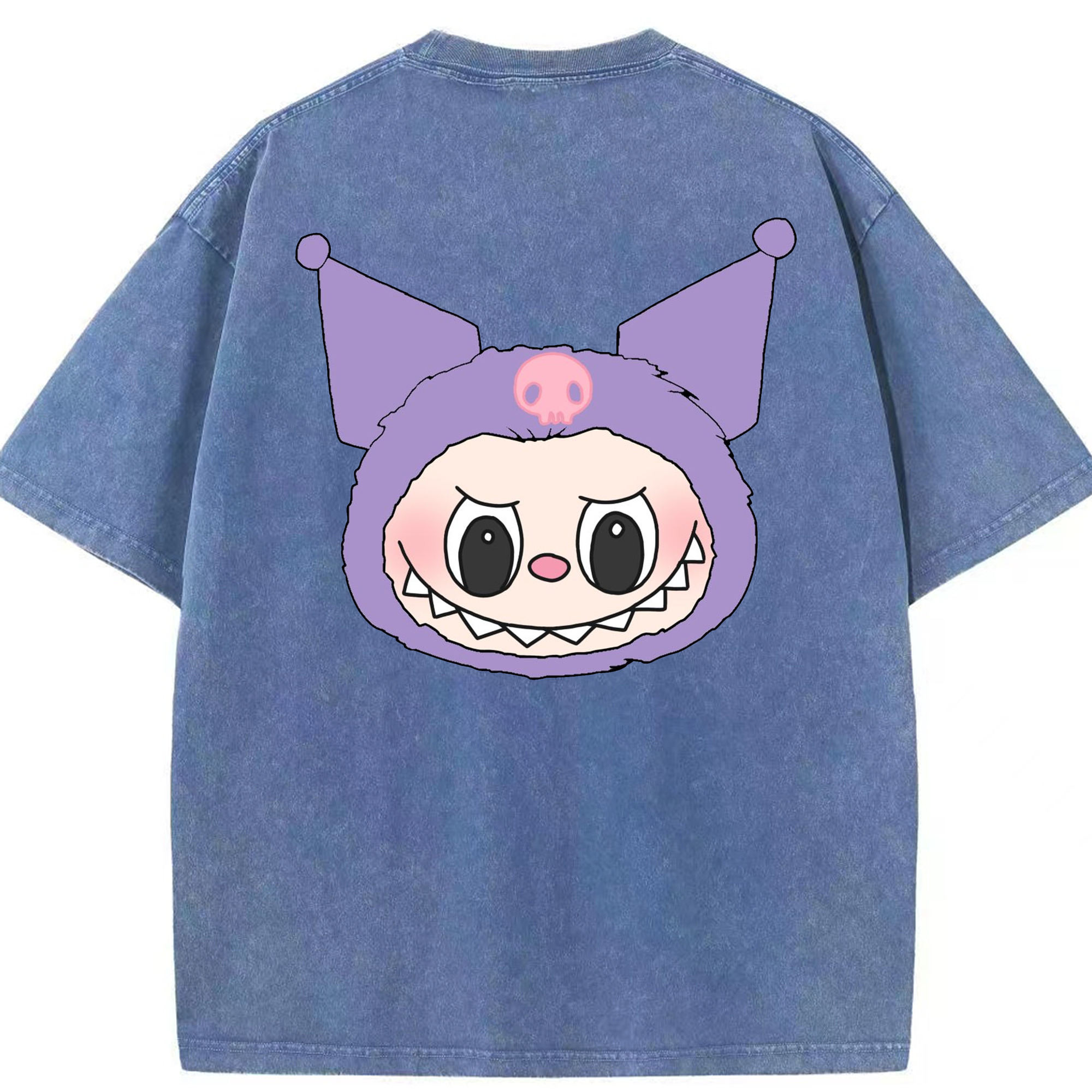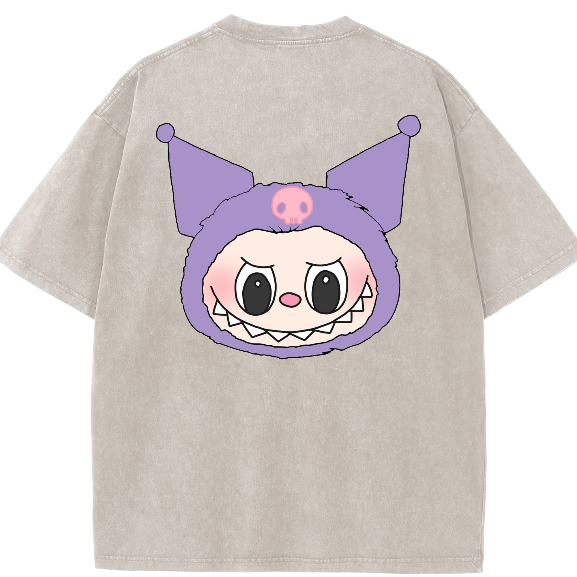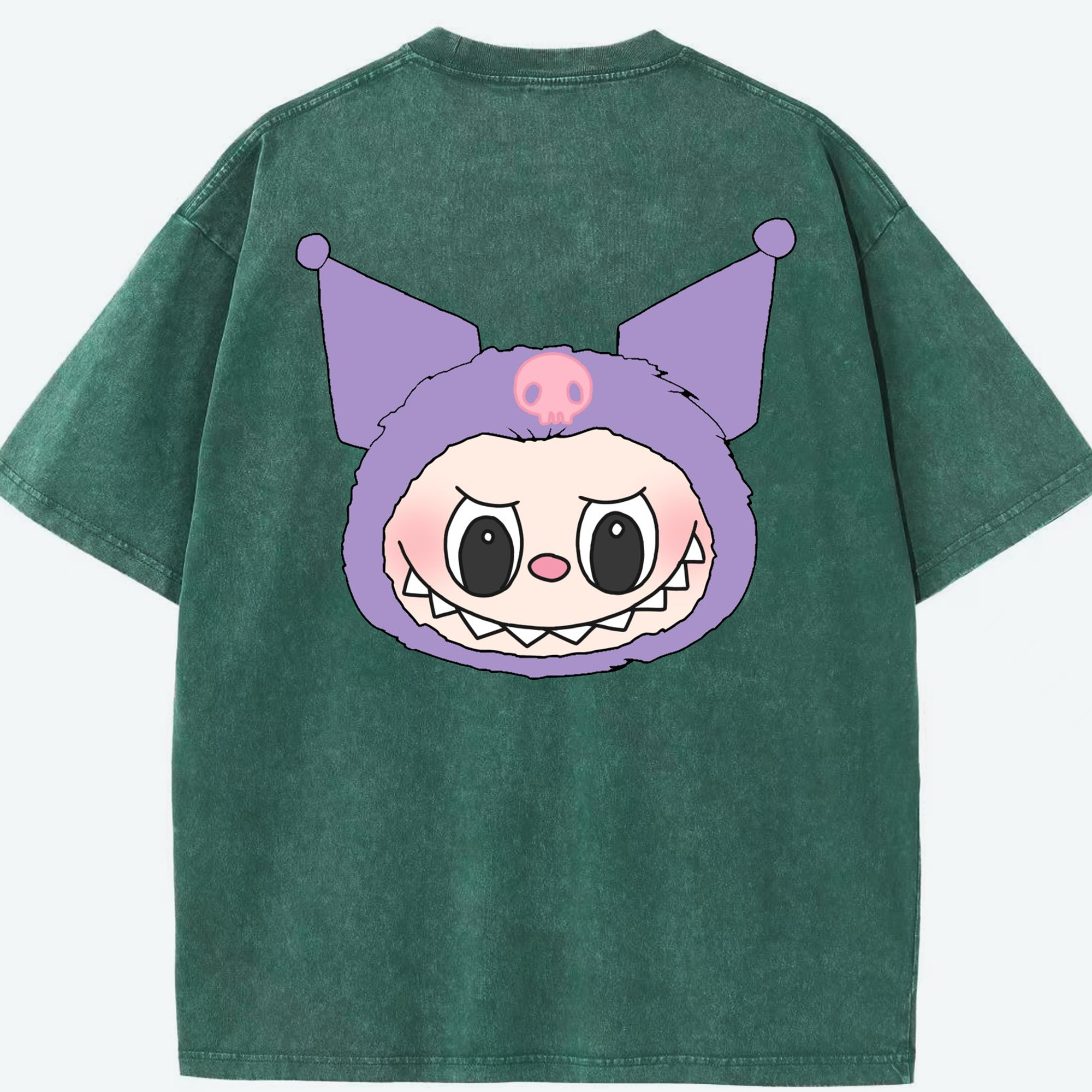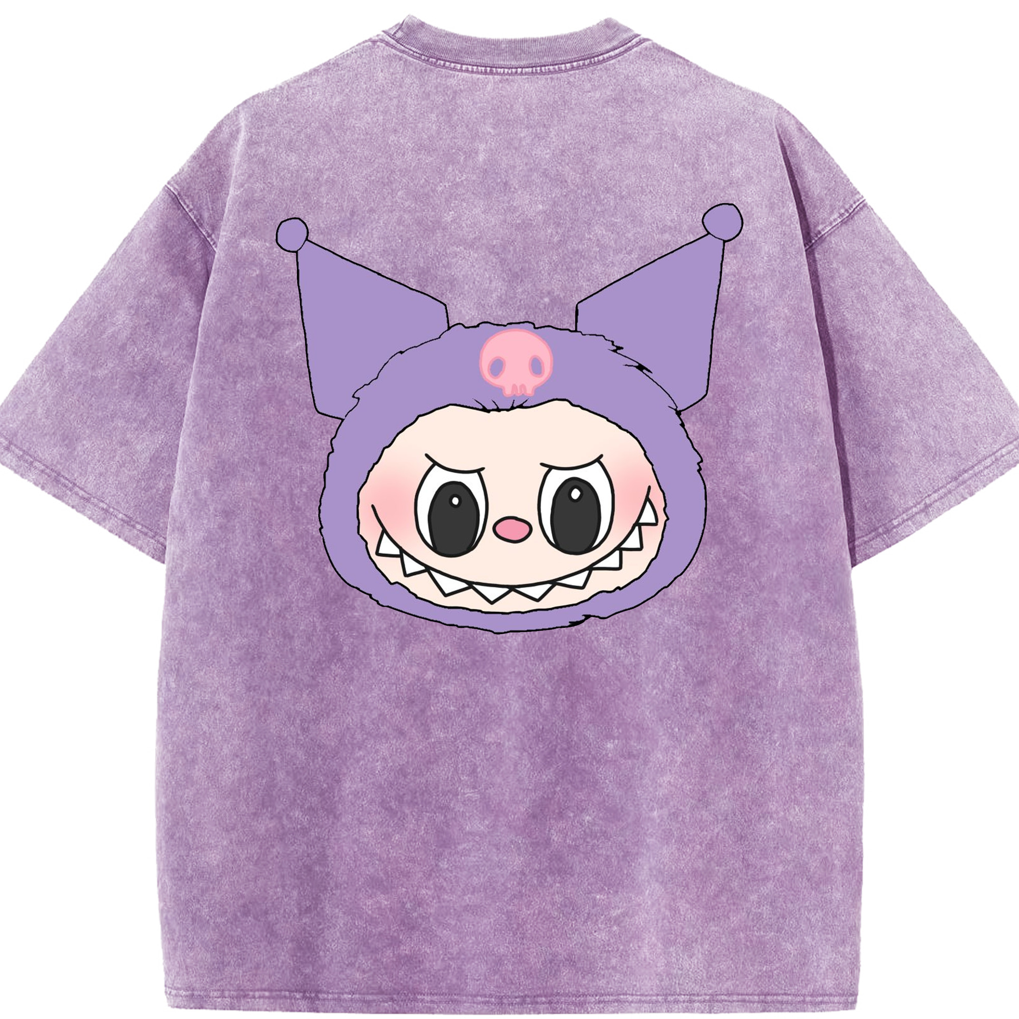 サンリオクロミ&LABUBU ラブブ - 綿100% ヴィンテージ風 半袖Tシャツ ・ フロントプリント ・ 柔らか肌触り ・ 通気性 快適 ・ スポーツ カジュアル 外出用