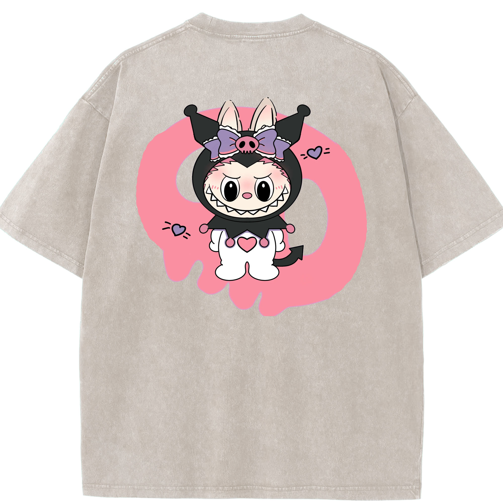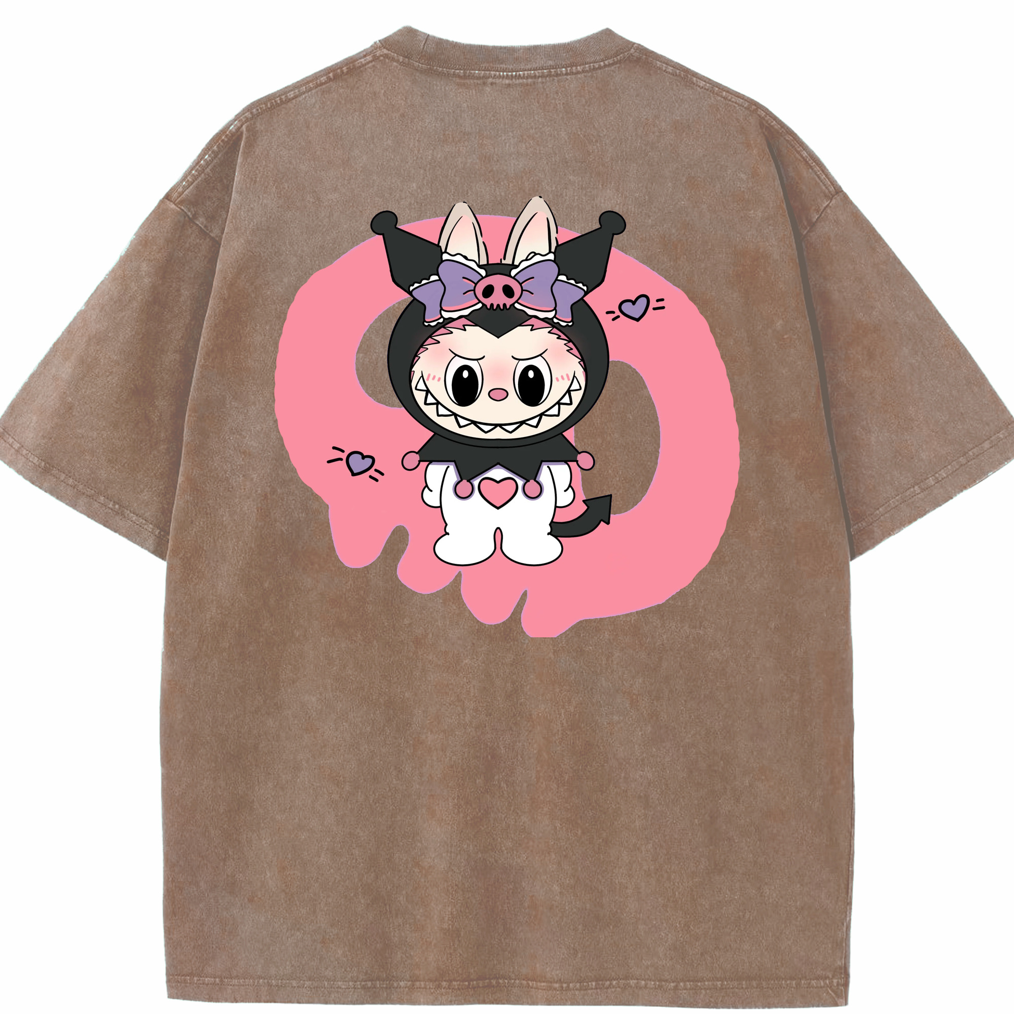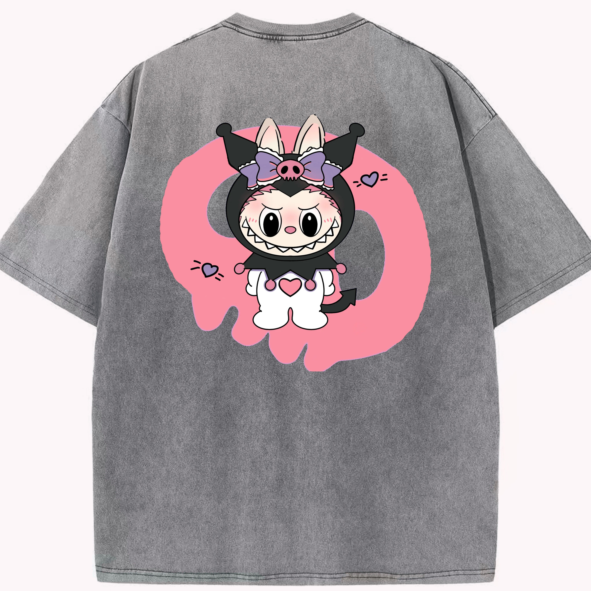 サンリオクロミ&LABUBU ラブブ - 綿100% ヴィンテージ風 半袖Tシャツ ・ フロントプリント ・ 柔らか肌触り ・ 通気性 快適 ・ スポーツ カジュアル 外出用