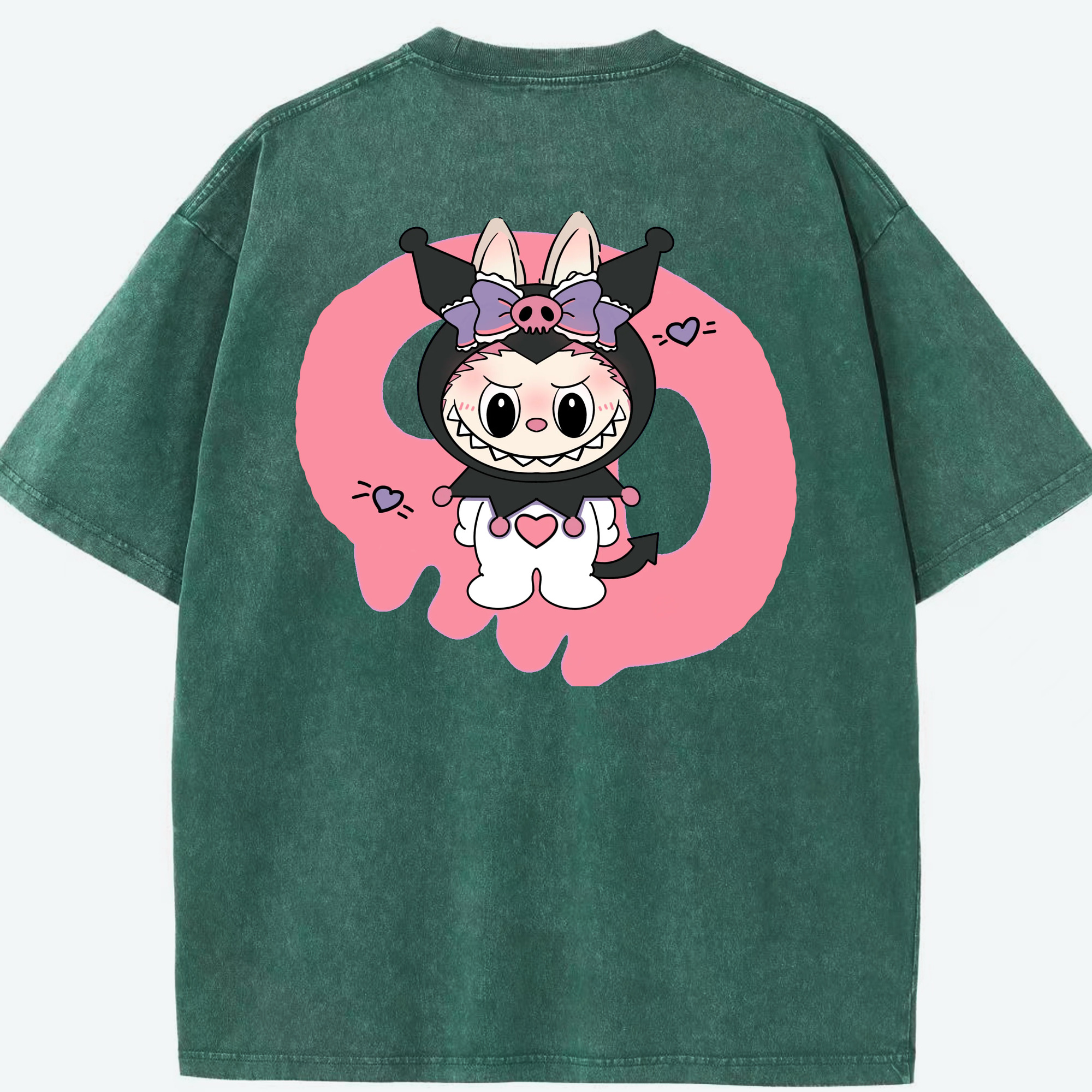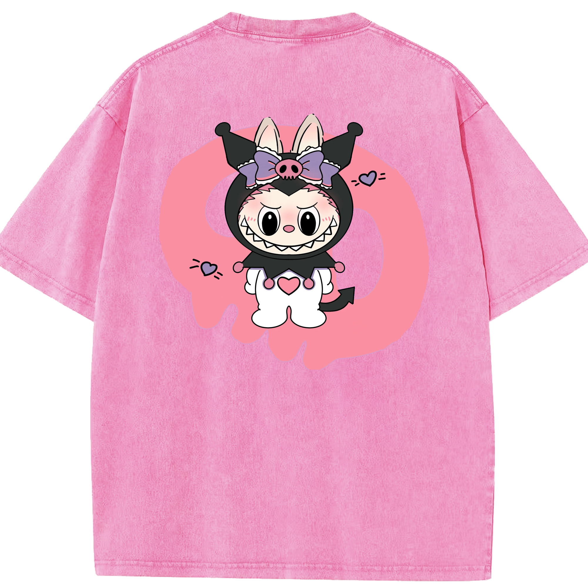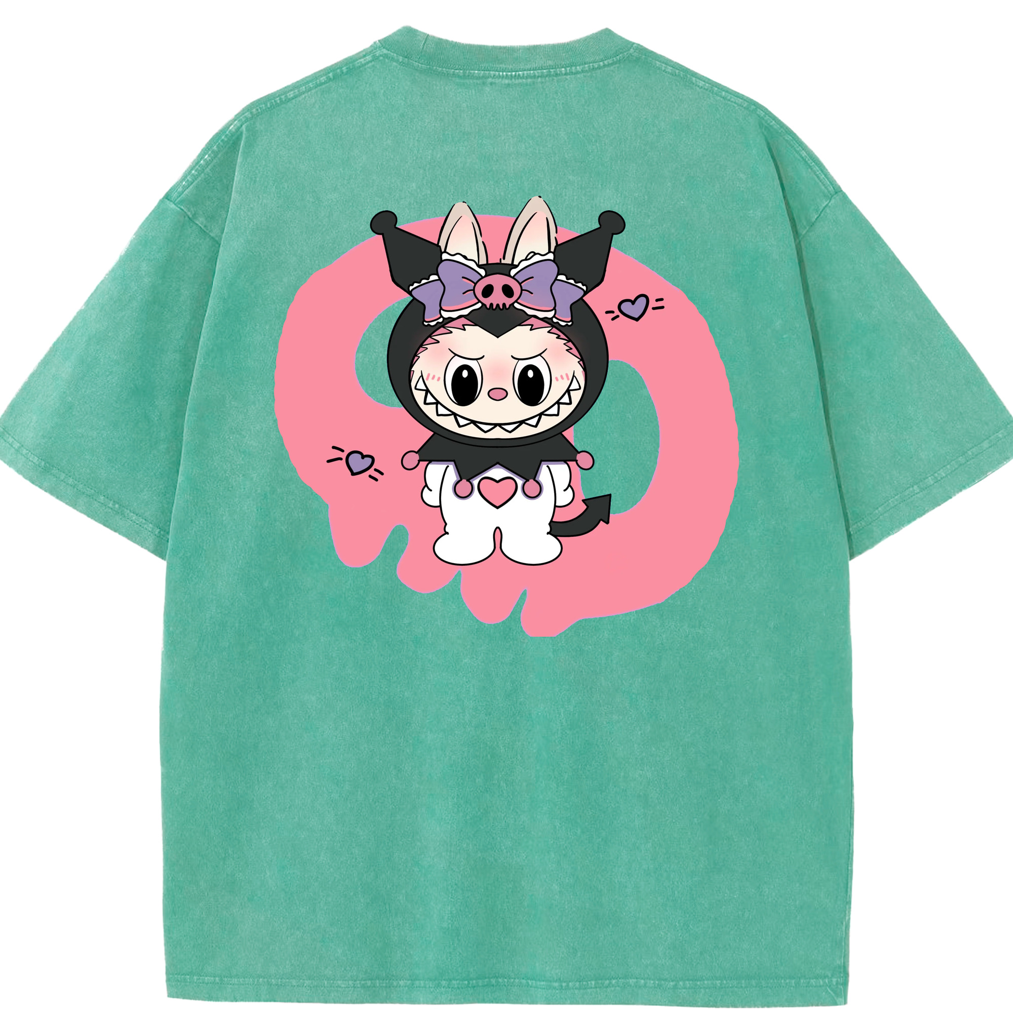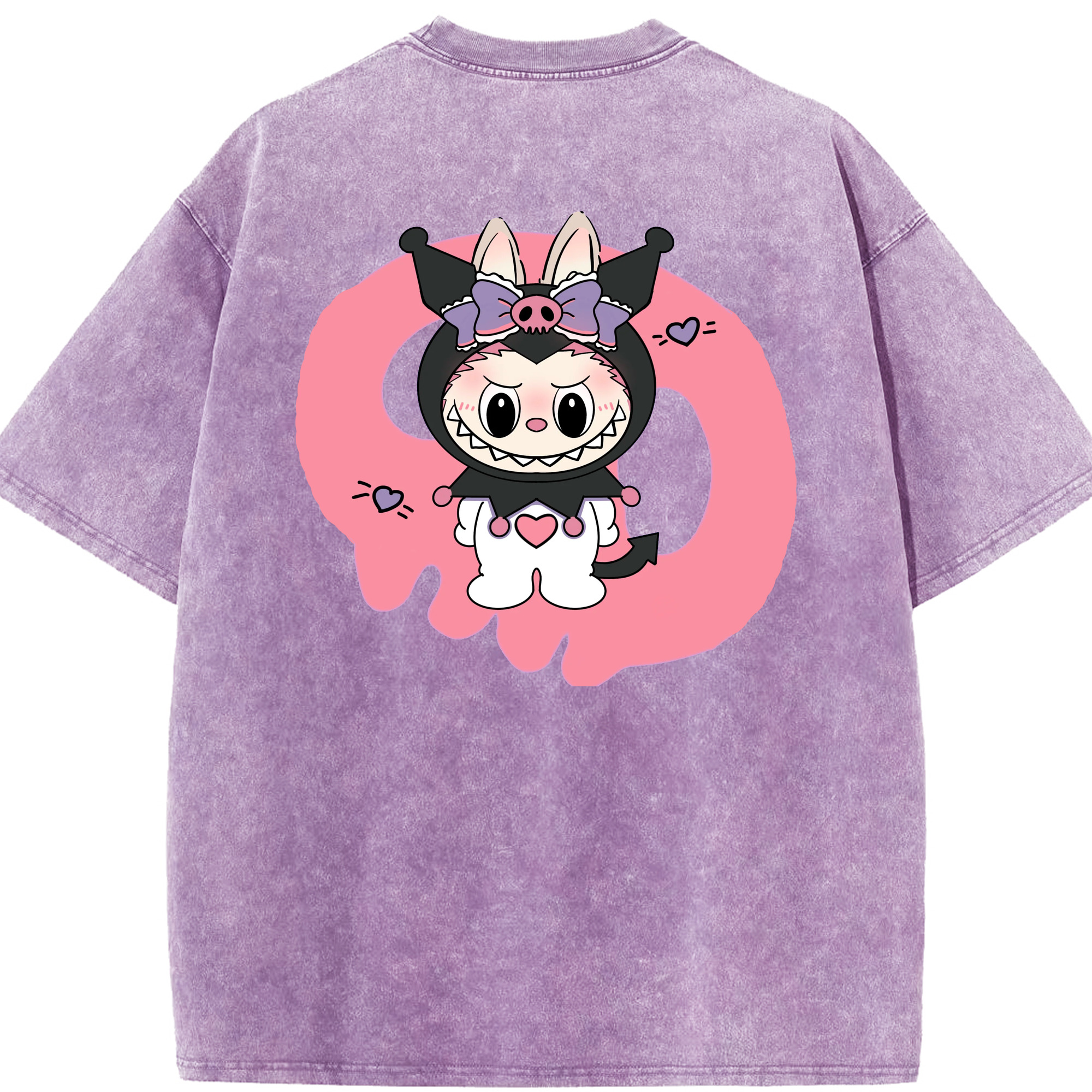 サンリオクロミ&LABUBU ラブブ - 綿100% ヴィンテージ風 半袖Tシャツ ・ フロントプリント ・ 柔らか肌触り ・ 通気性 快適 ・ スポーツ カジュアル 外出用