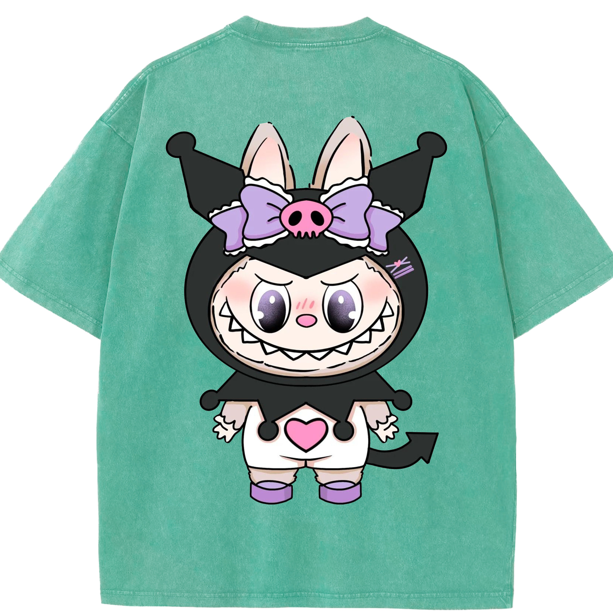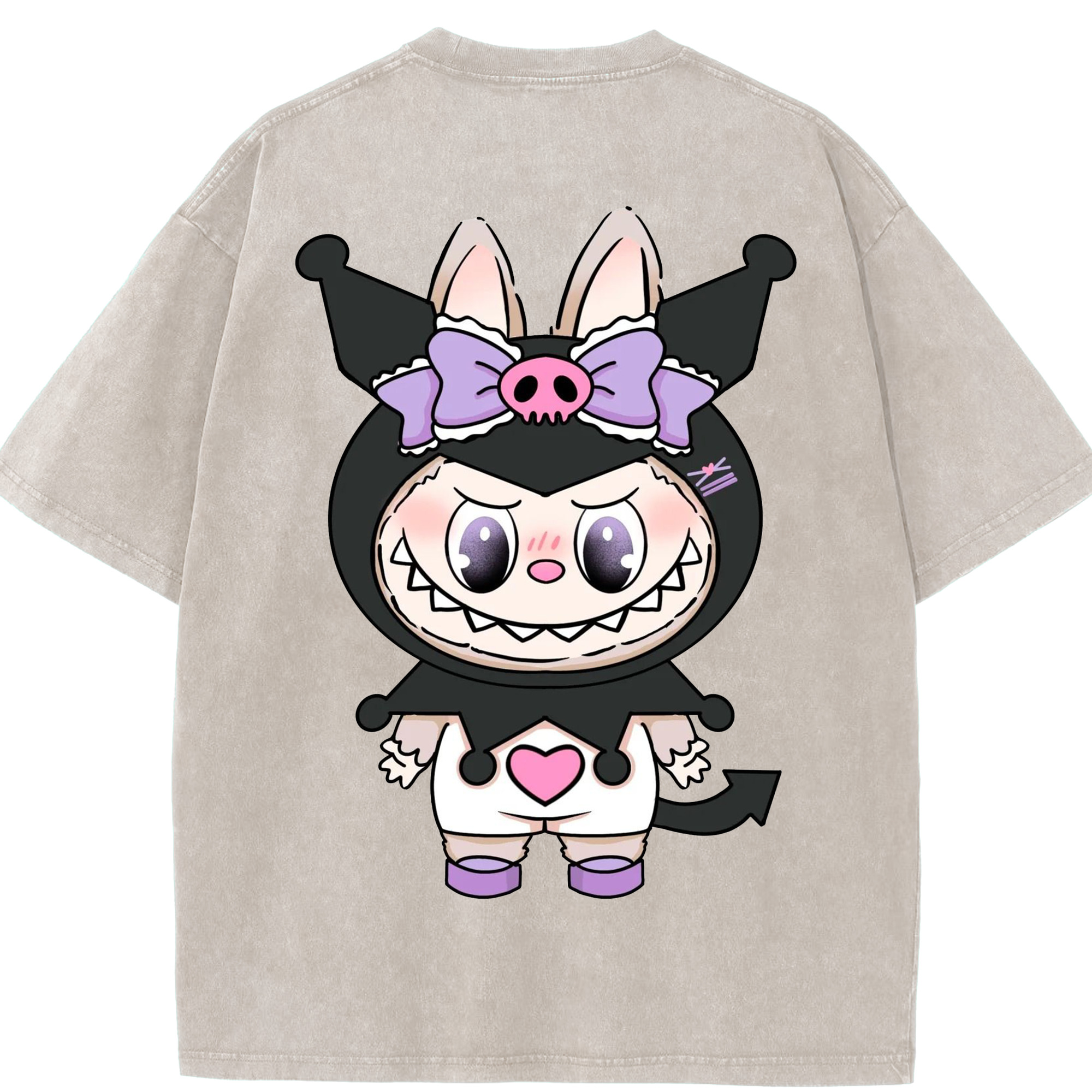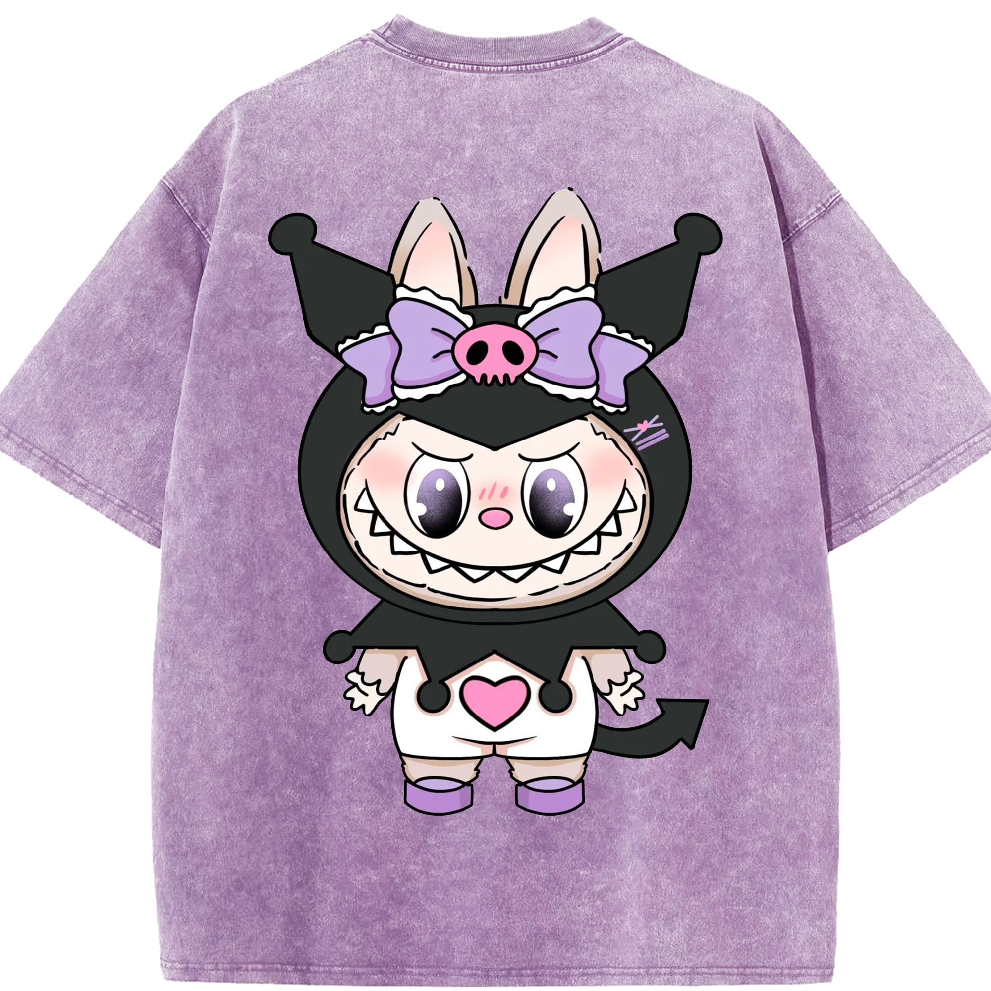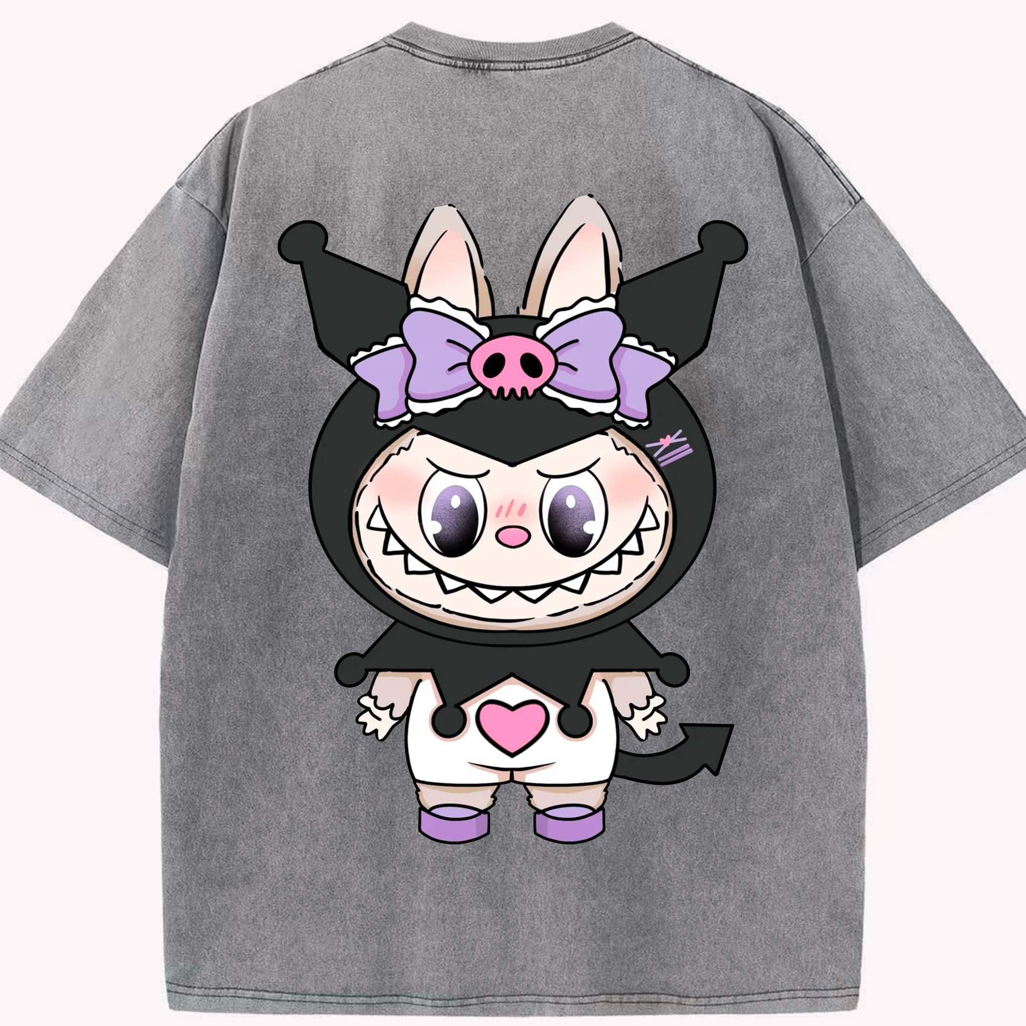 サンリオクロミ&LABUBU ラブブ - 綿100% ヴィンテージ風 半袖Tシャツ ・ フロントプリント ・ 柔らか肌触り ・ 通気性 快適 ・ スポーツ カジュアル 外出用