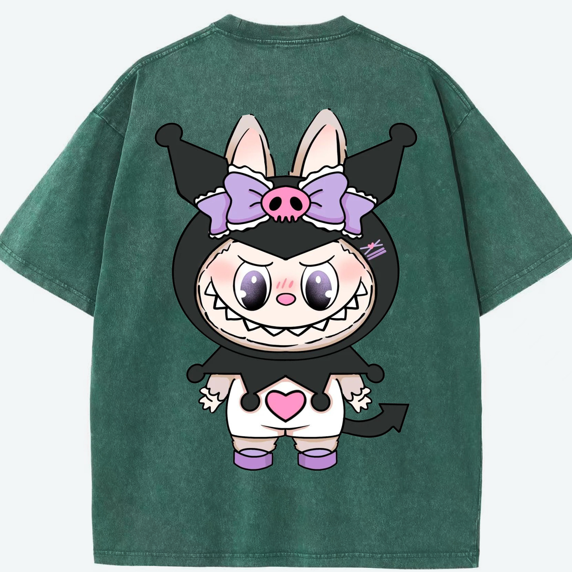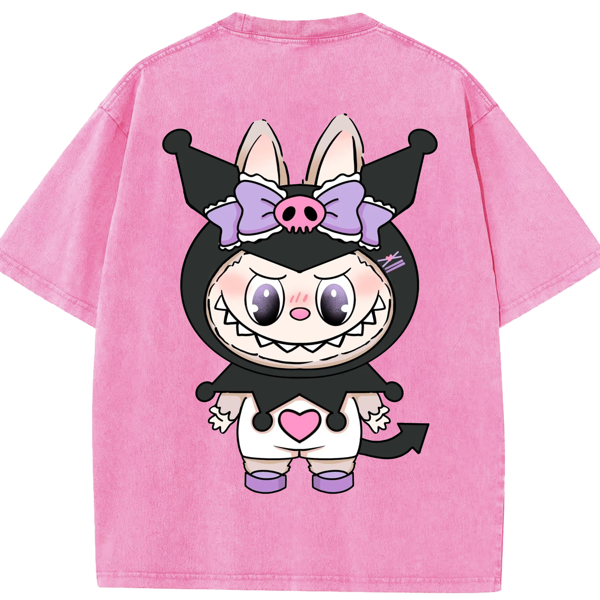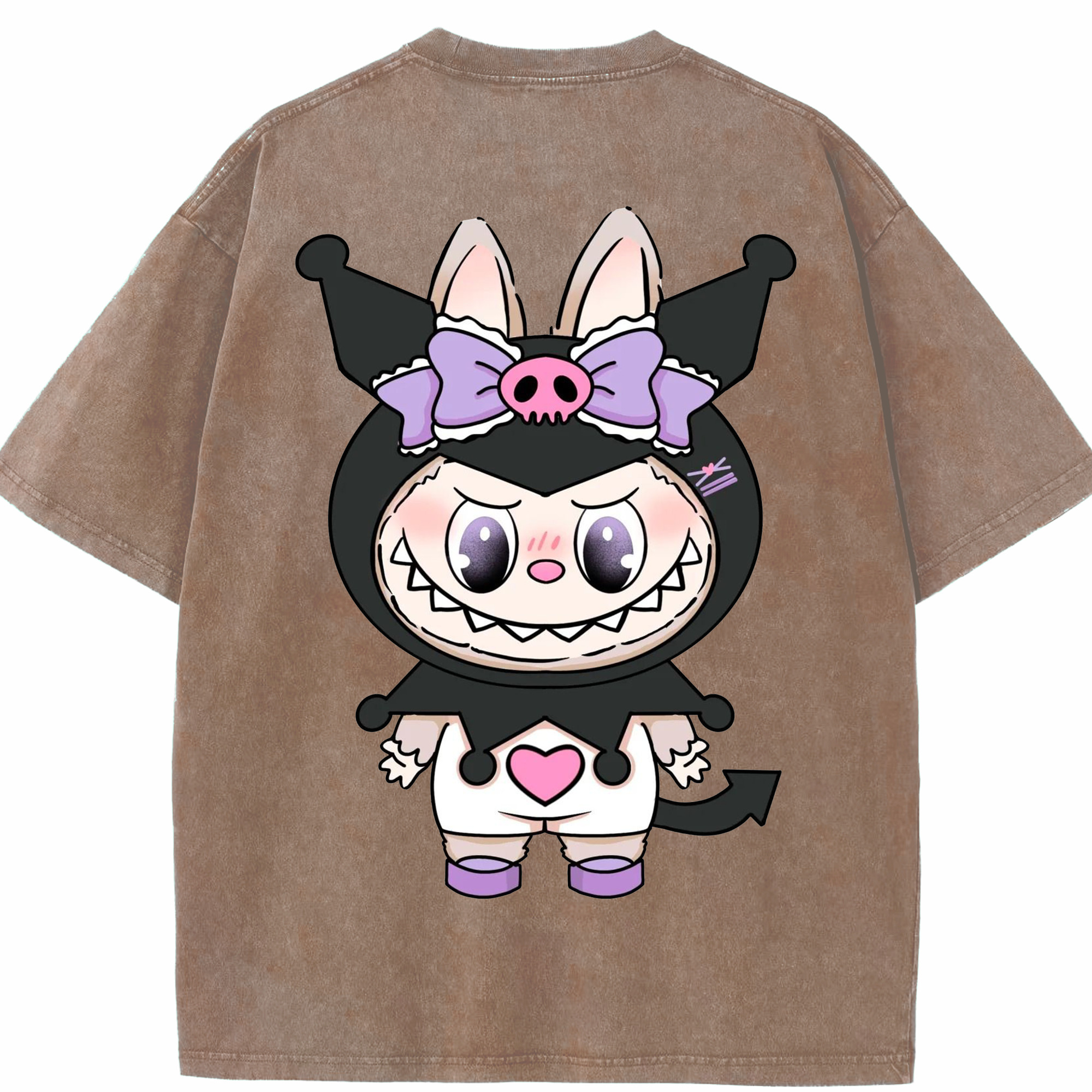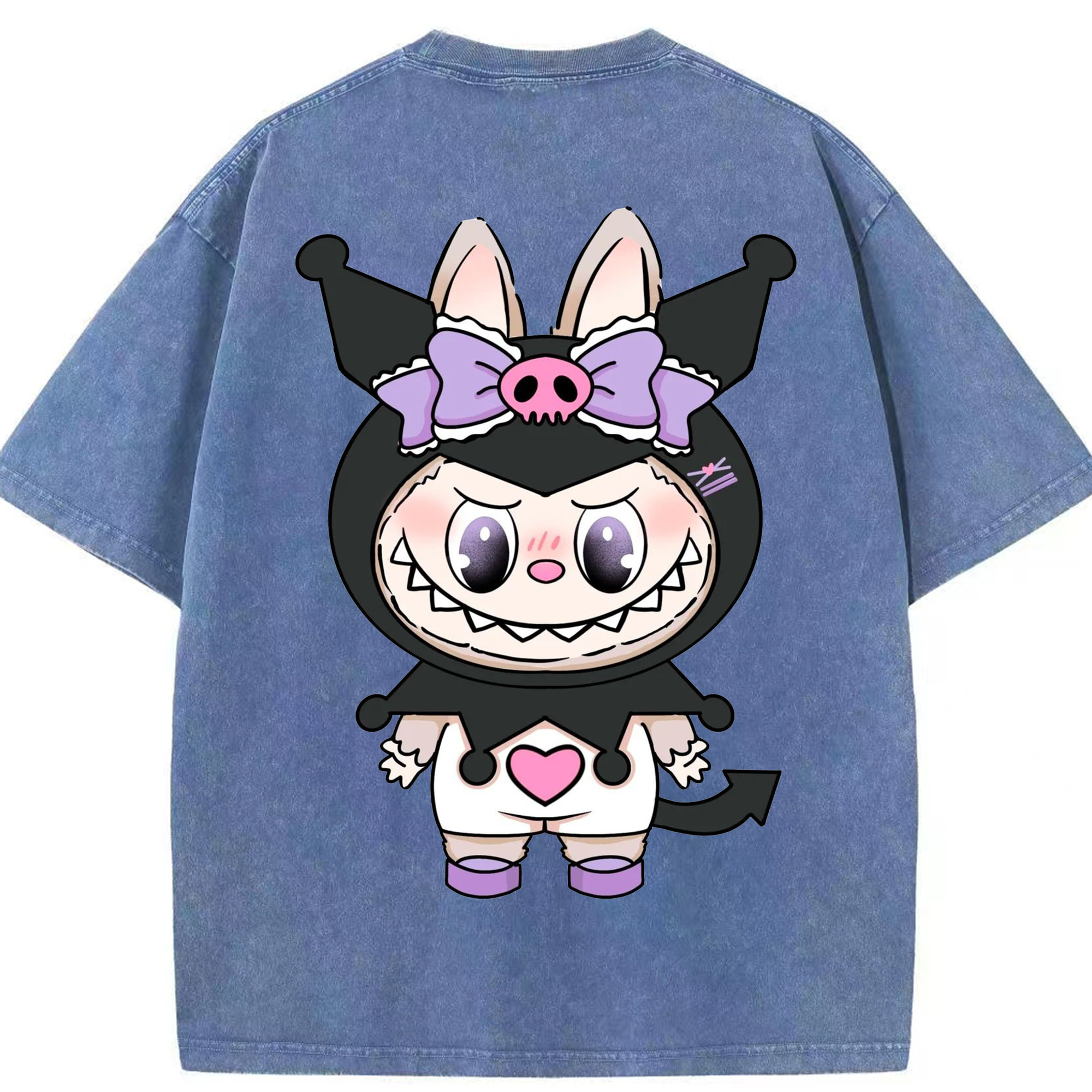 サンリオクロミ&LABUBU ラブブ - 綿100% ヴィンテージ風 半袖Tシャツ ・ フロントプリント ・ 柔らか肌触り ・ 通気性 快適 ・ スポーツ カジュアル 外出用