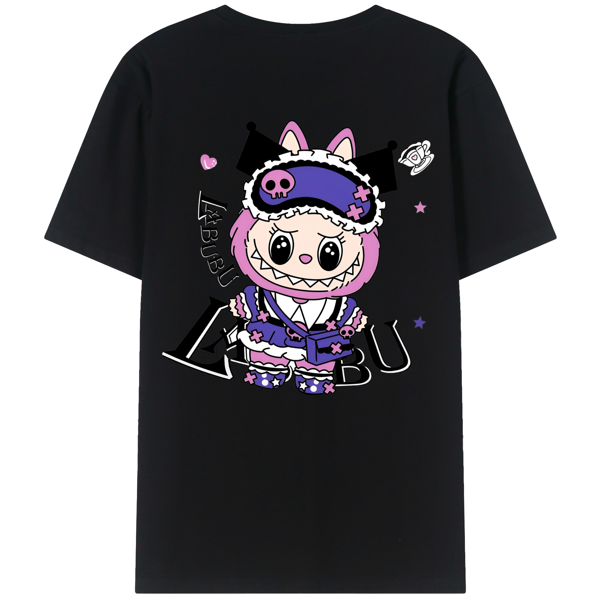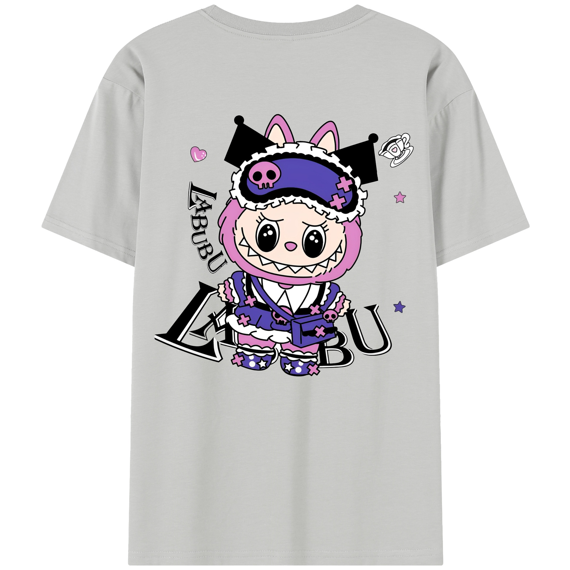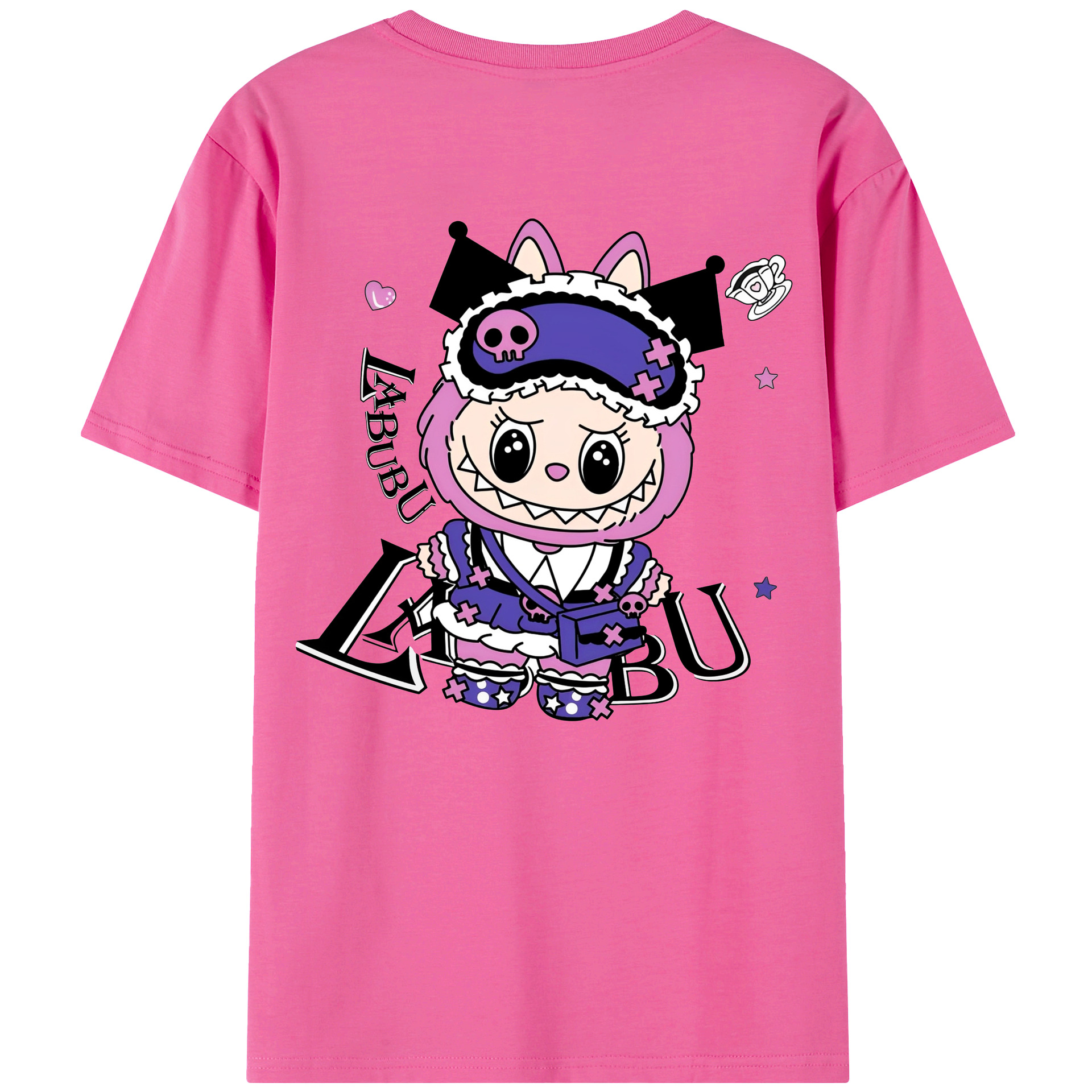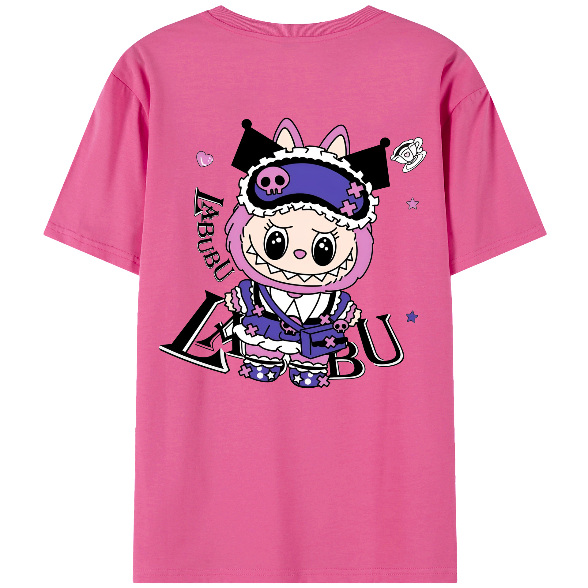 サンリオクロミ&LABUBU ラブブ - レディース半袖Tシャツ ・ 綿100% ・ バックプリント ・ 強化クルーネック ・ 二重折り袖口 ・ 快適 通気性 ・ フィットネス カジュアル 旅行用