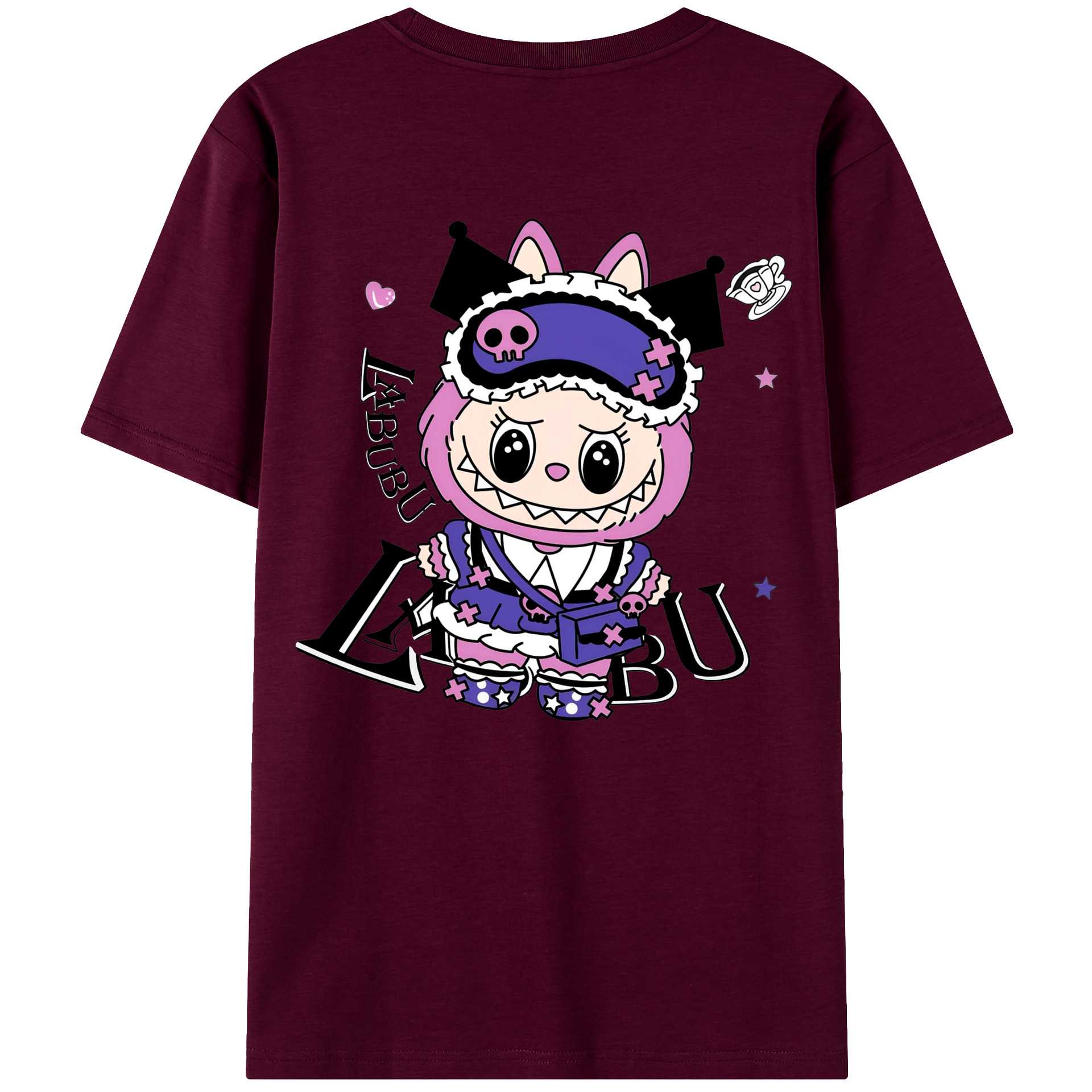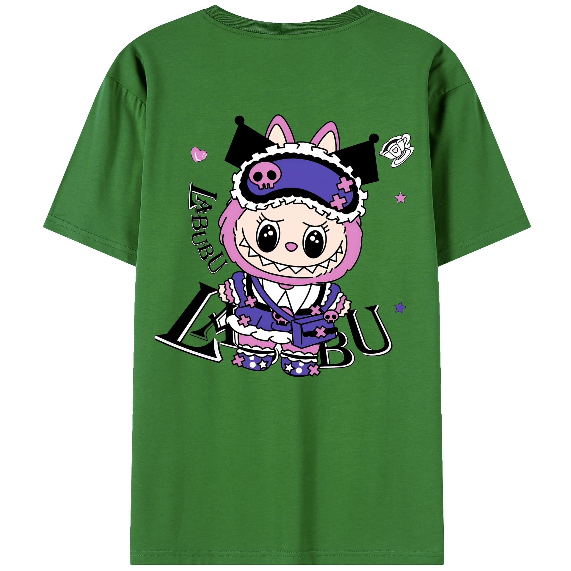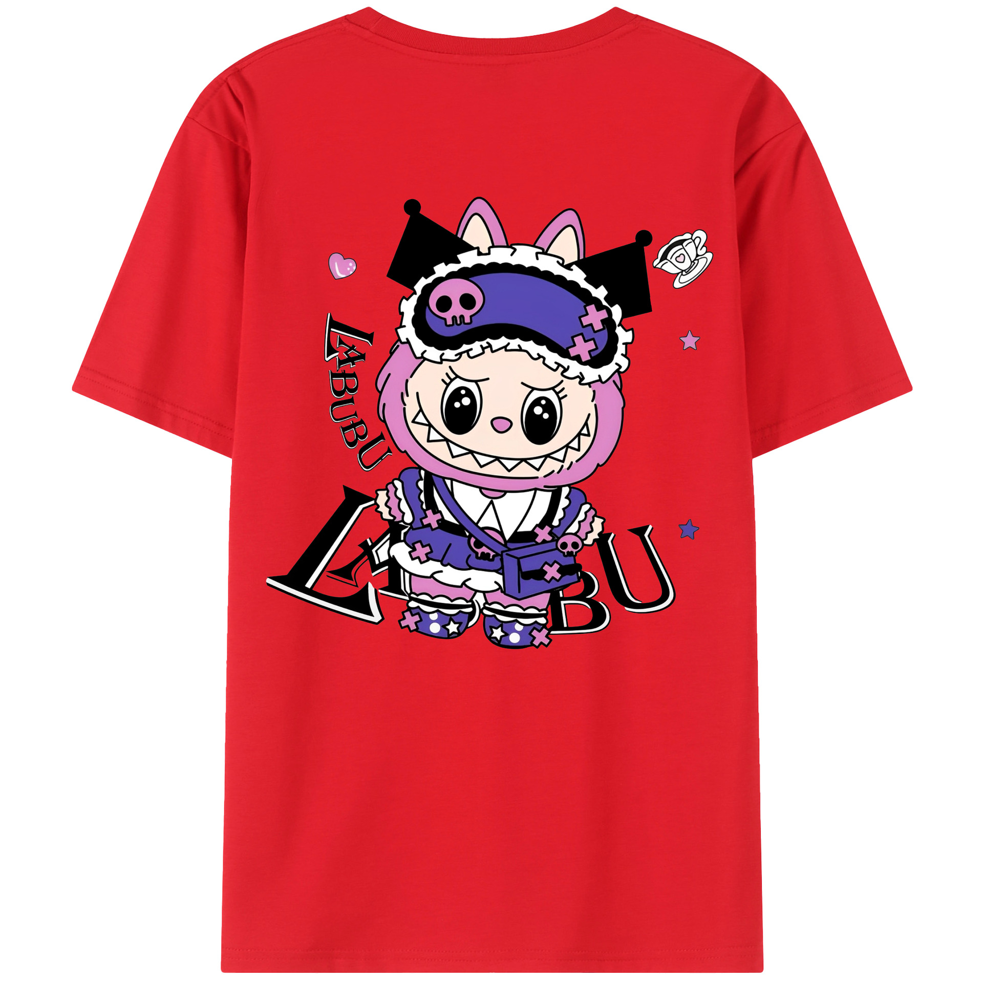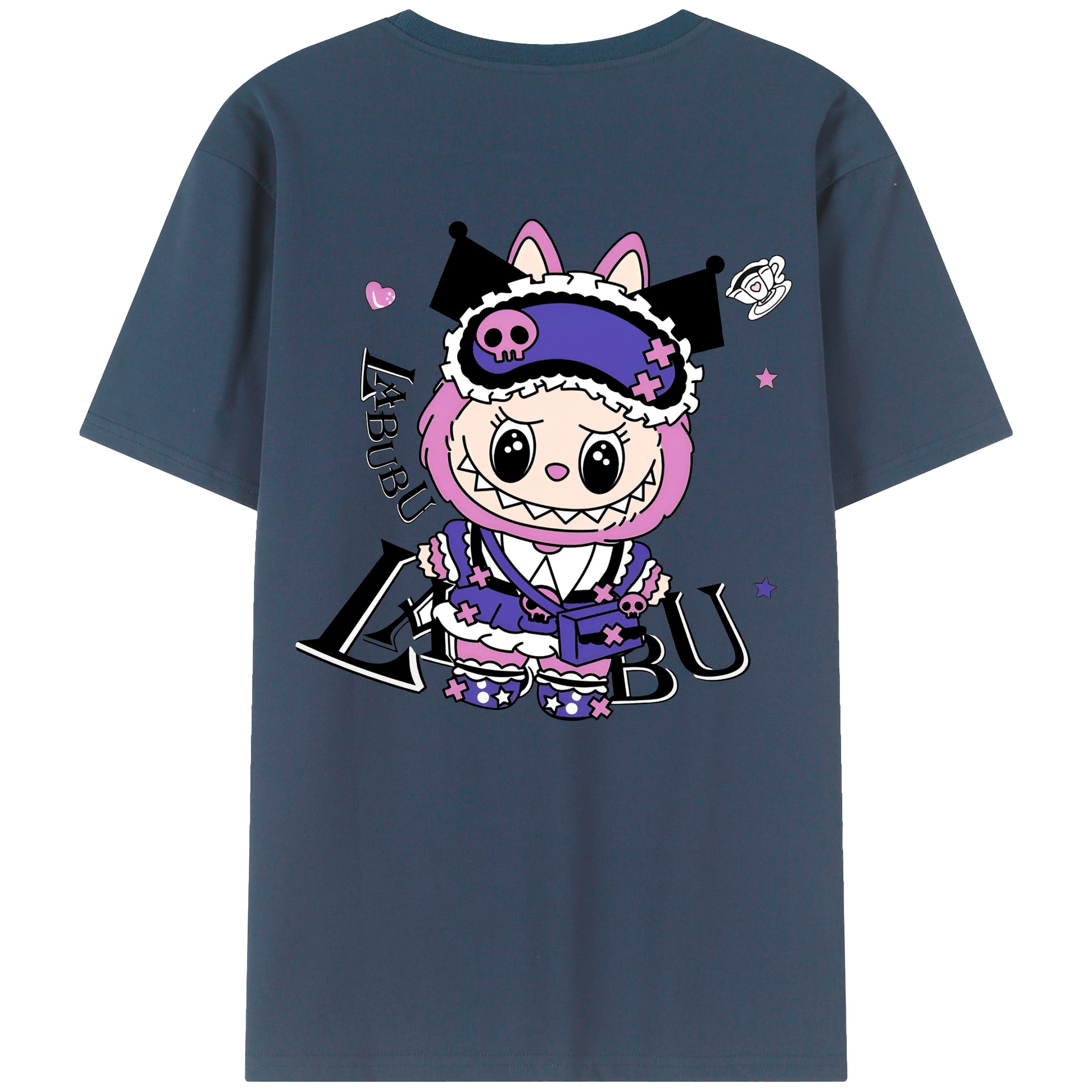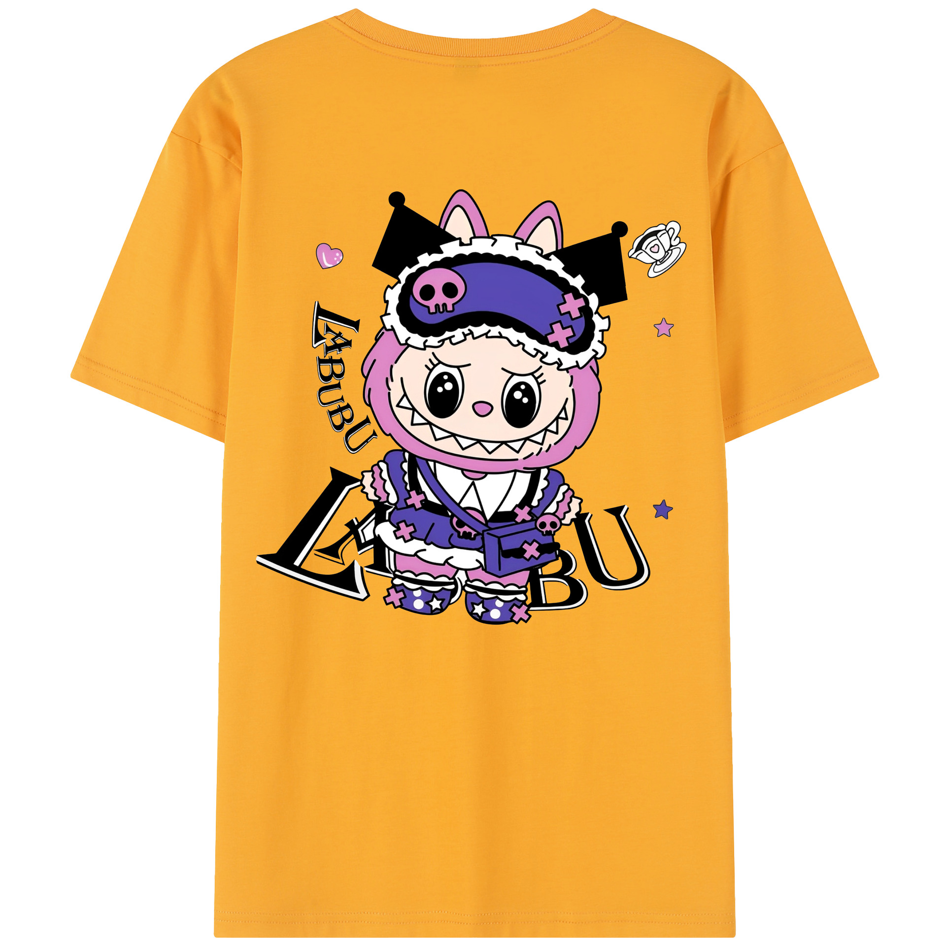 サンリオクロミ&LABUBU ラブブ - レディース半袖Tシャツ ・ 綿100% ・ バックプリント ・ 強化クルーネック ・ 二重折り袖口 ・ 快適 通気性 ・ フィットネス カジュアル 旅行用