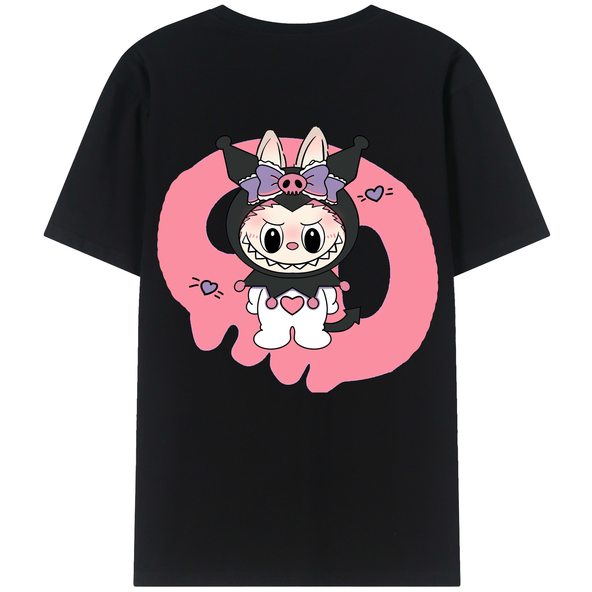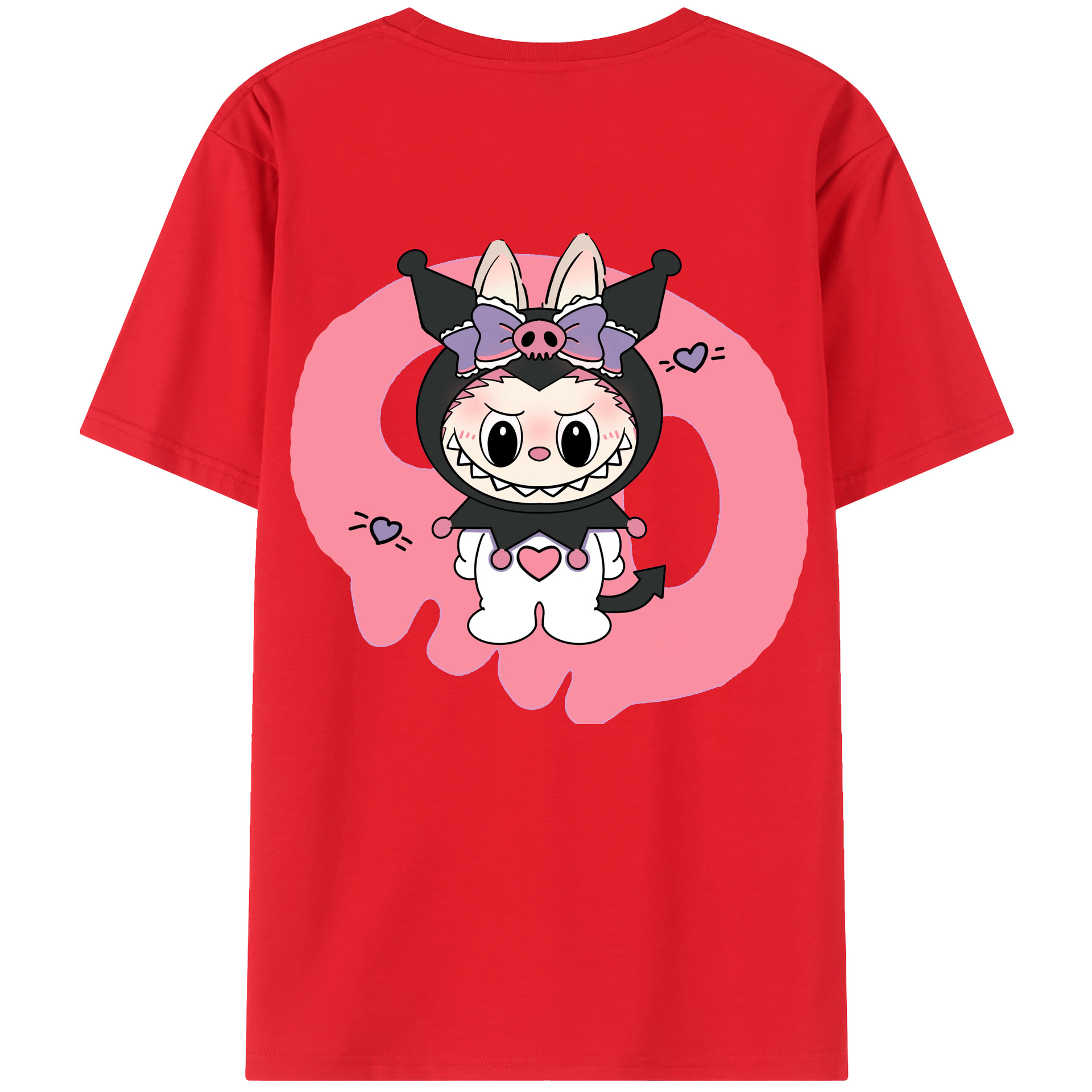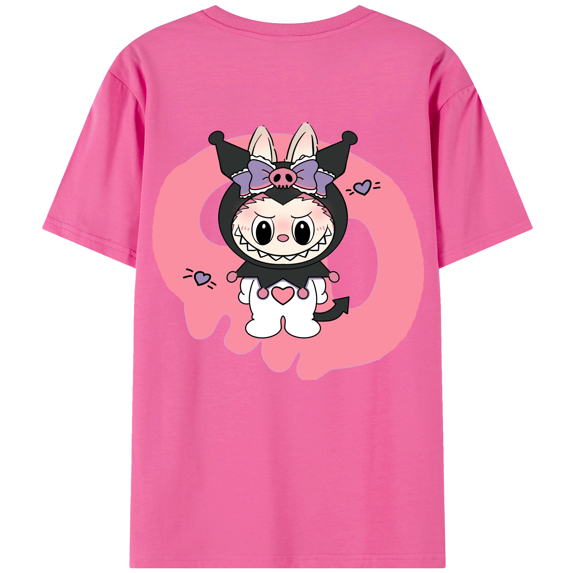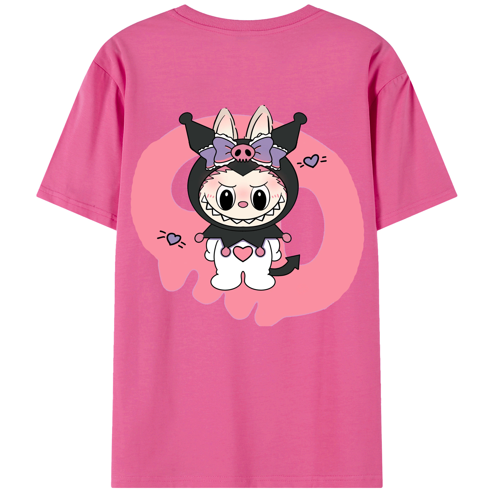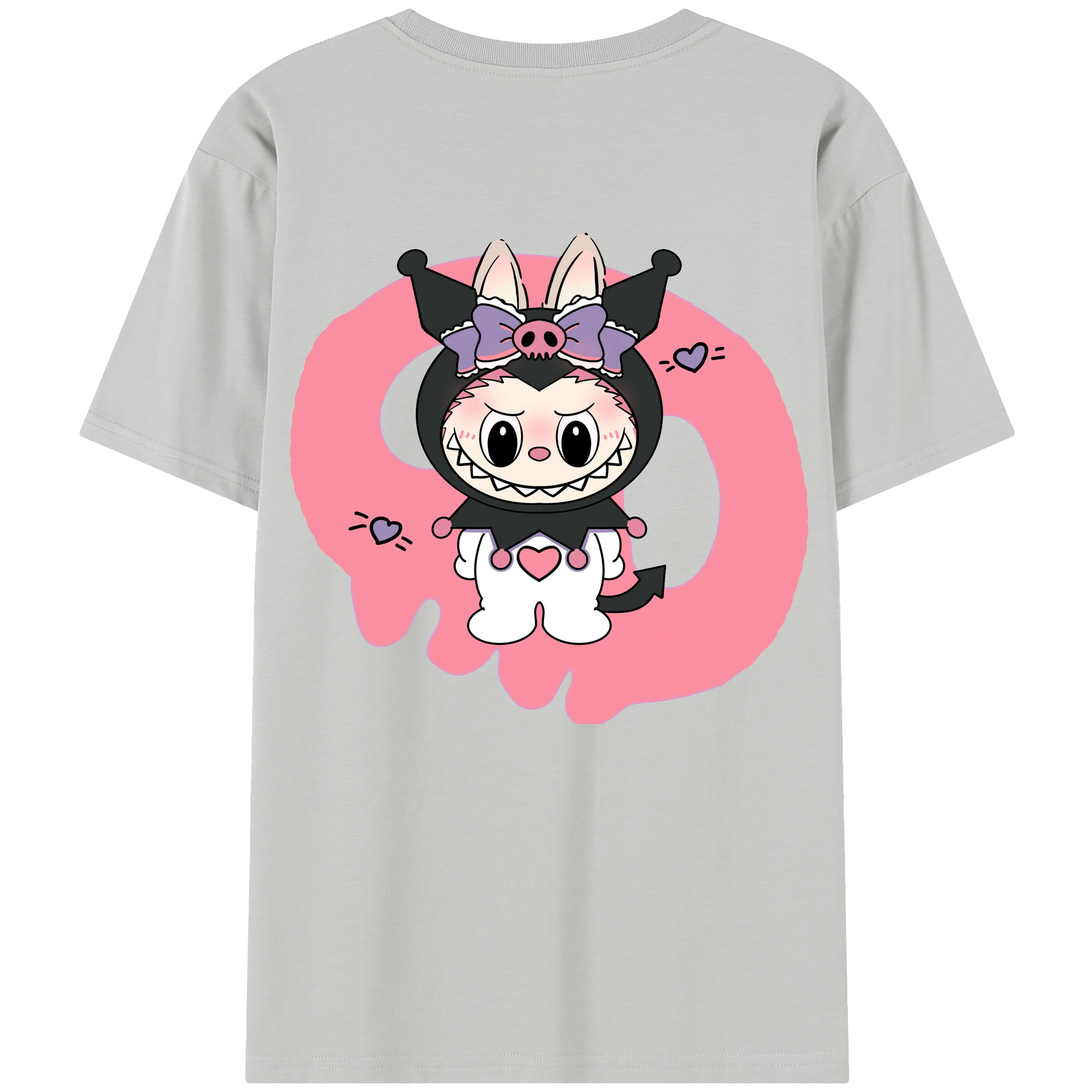 サンリオクロミ&LABUBU ラブブ - レディース半袖Tシャツ ・ 綿100% ・ バックプリント ・ 強化クルーネック ・ 二重折り袖口 ・ 快適 通気性 ・ フィットネス カジュアル 旅行用