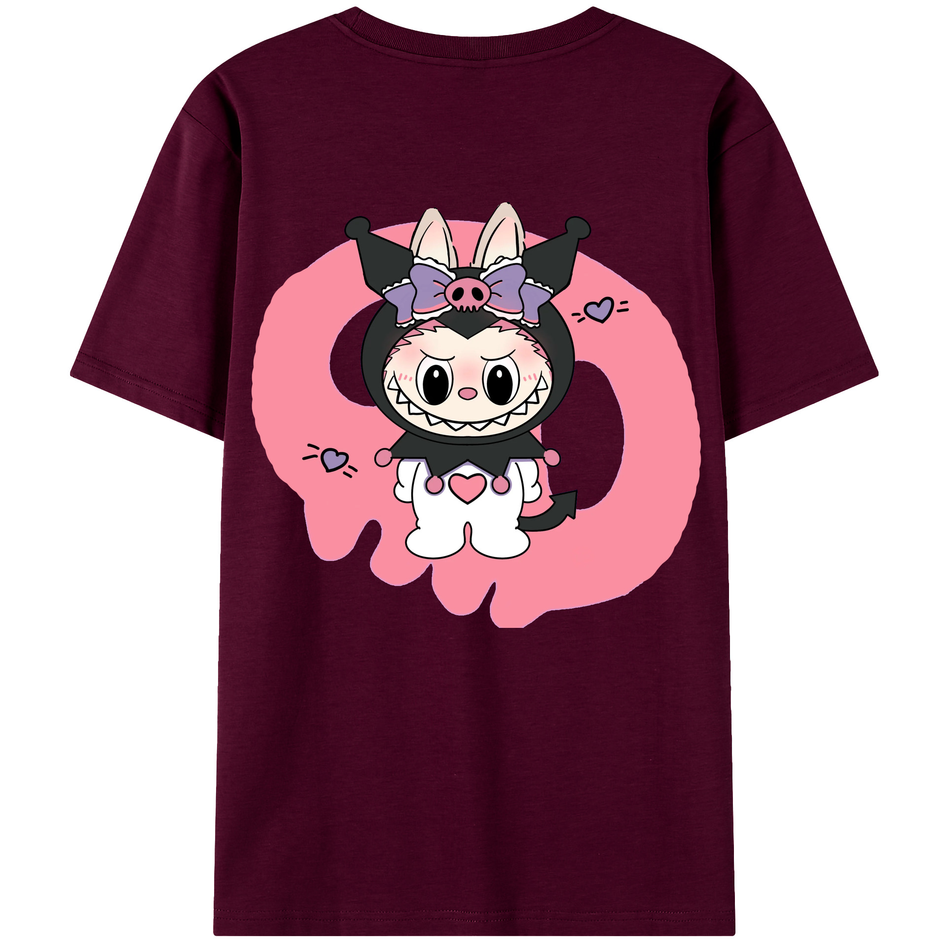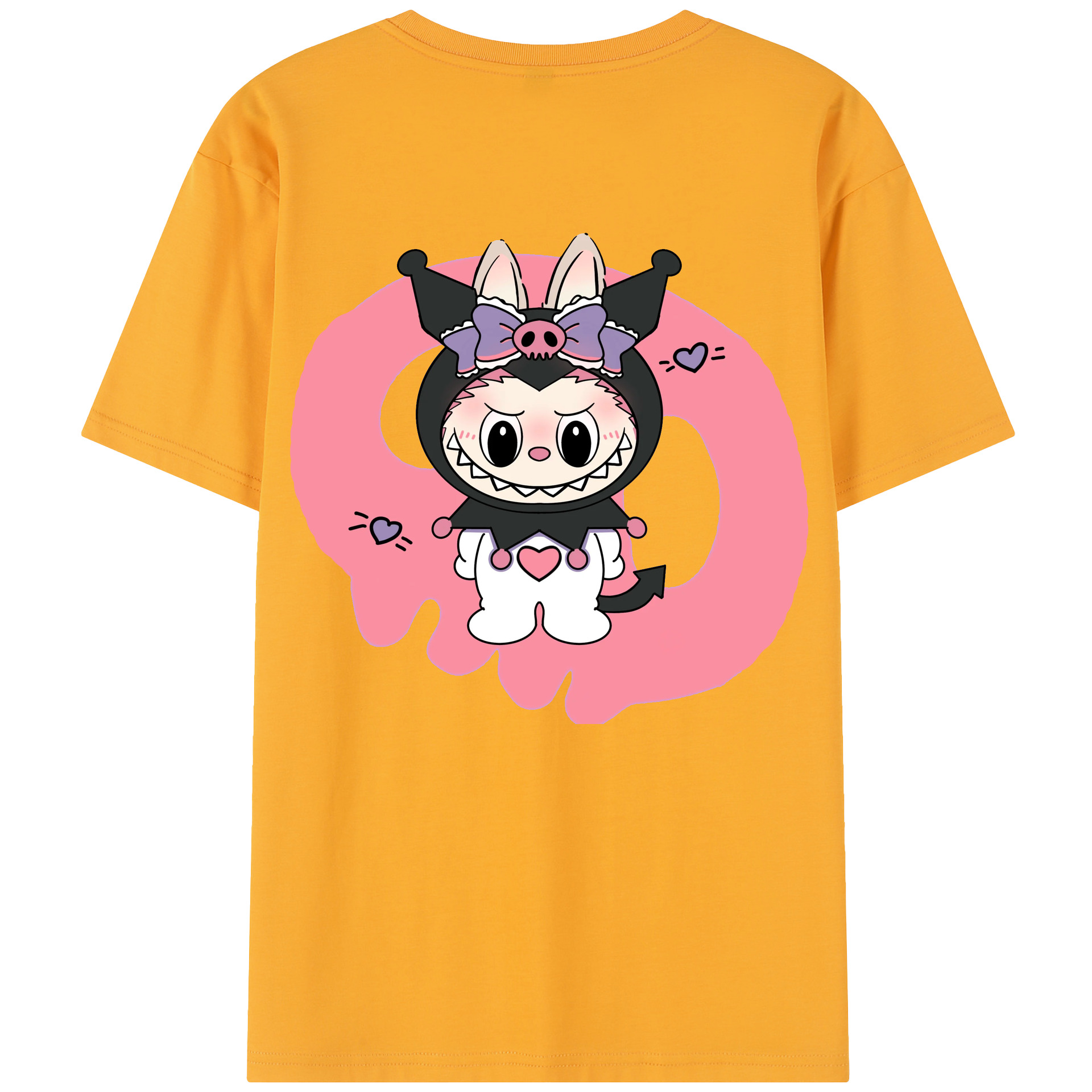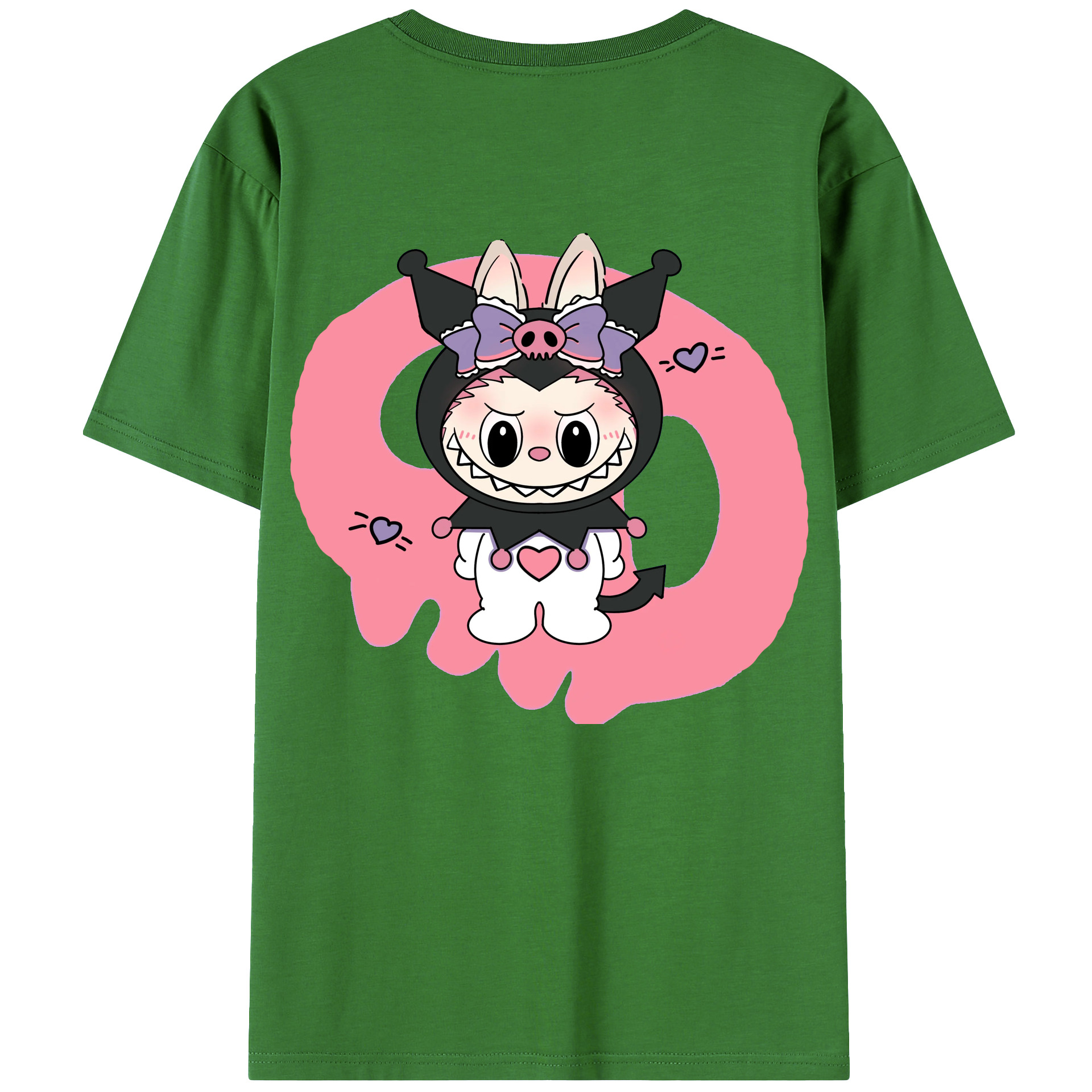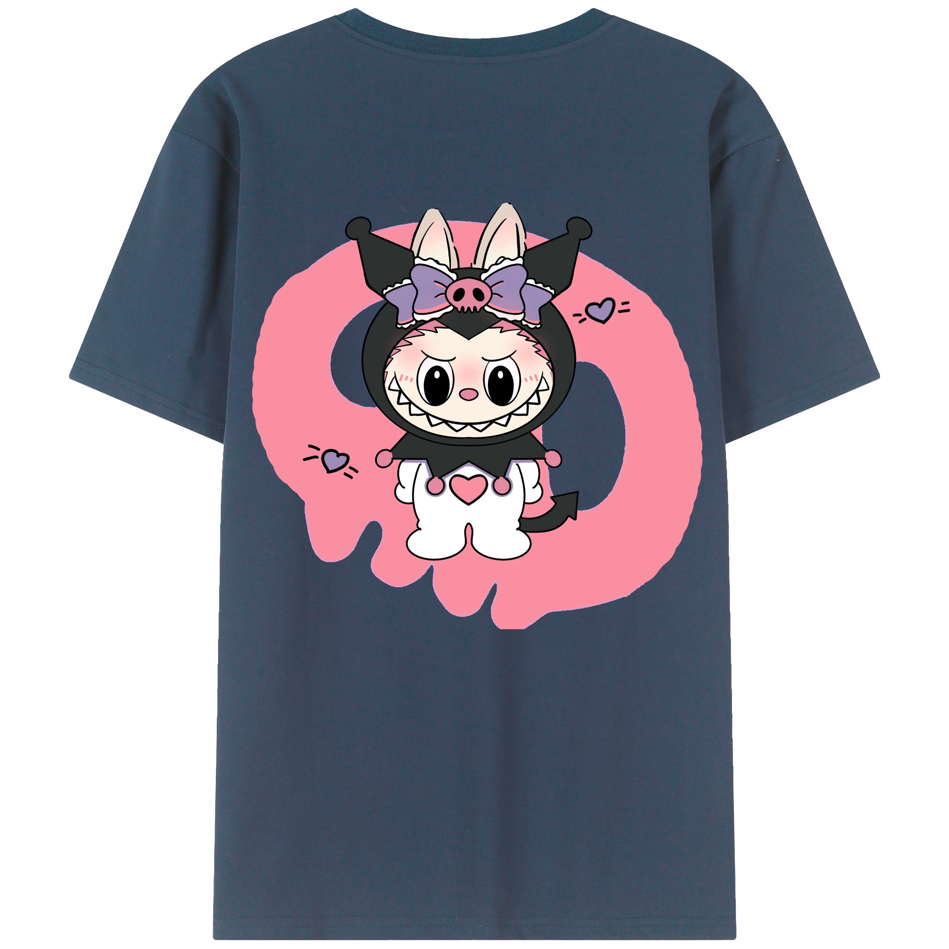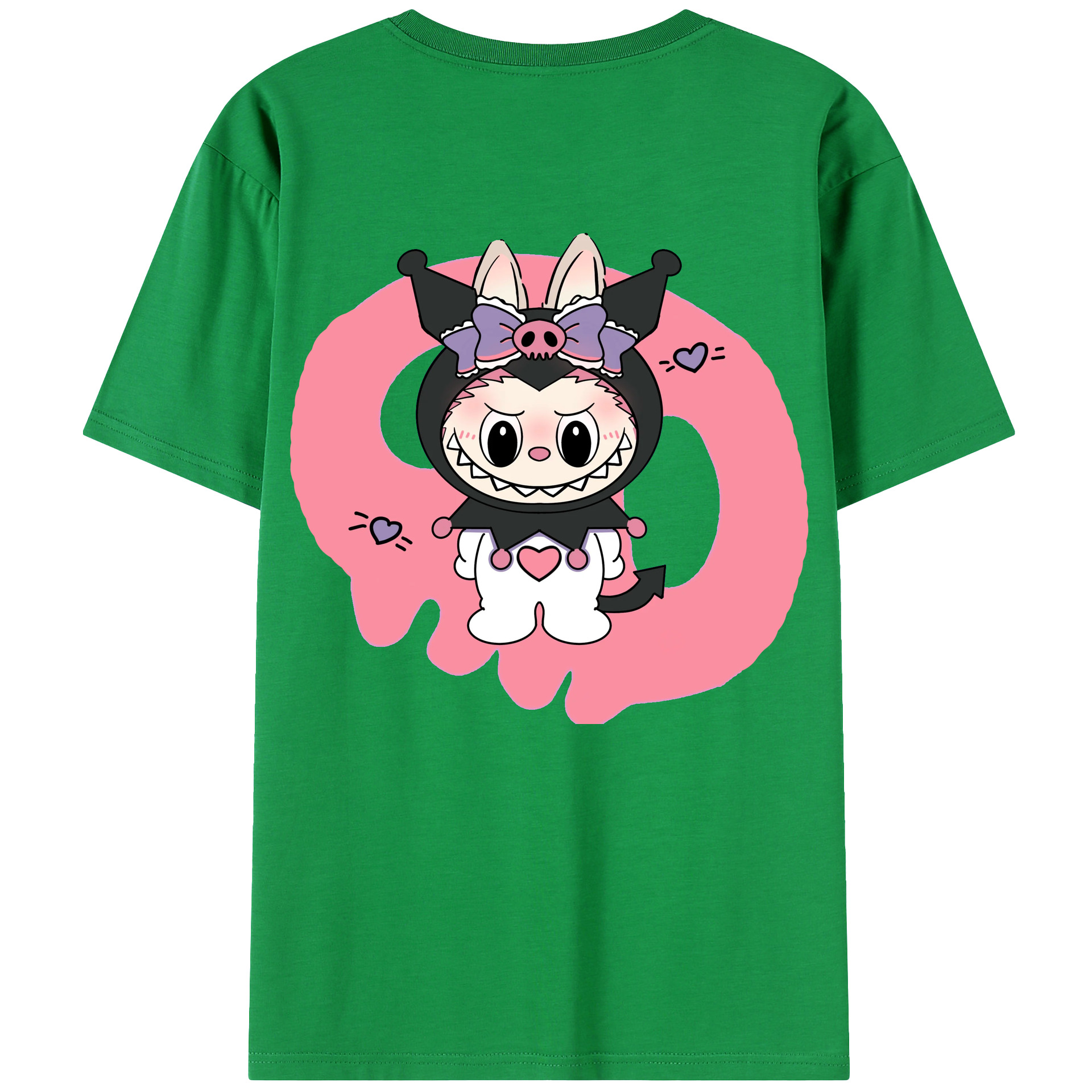サンリオクロミ&LABUBU ラブブ - レディース半袖Tシャツ ・ 綿100% ・ バックプリント ・ 強化クルーネック ・ 二重折り袖口 ・ 快適 通気性 ・ フィットネス カジュアル 旅行用