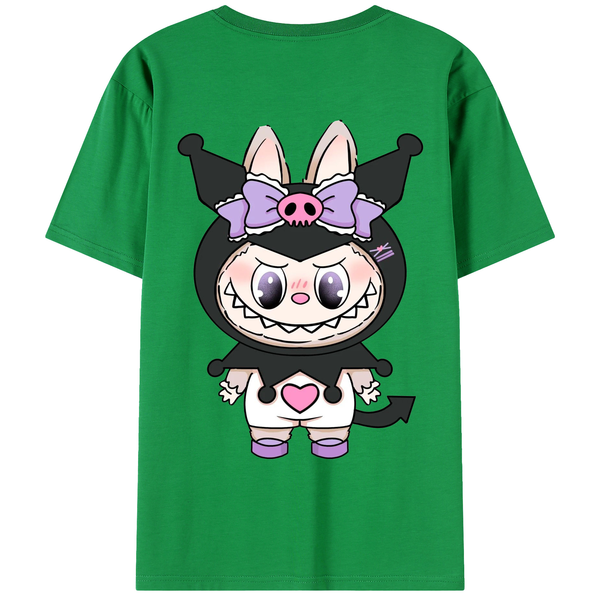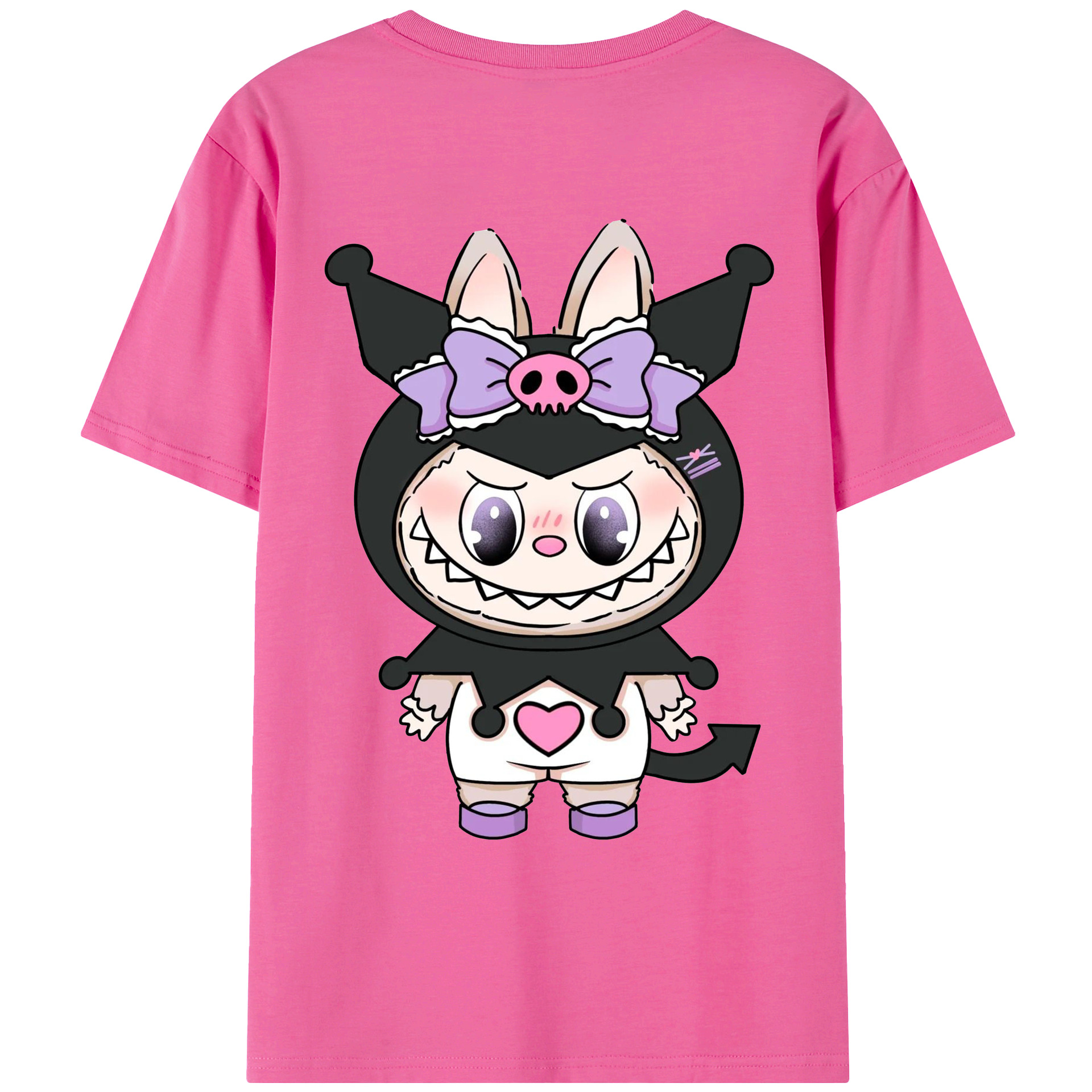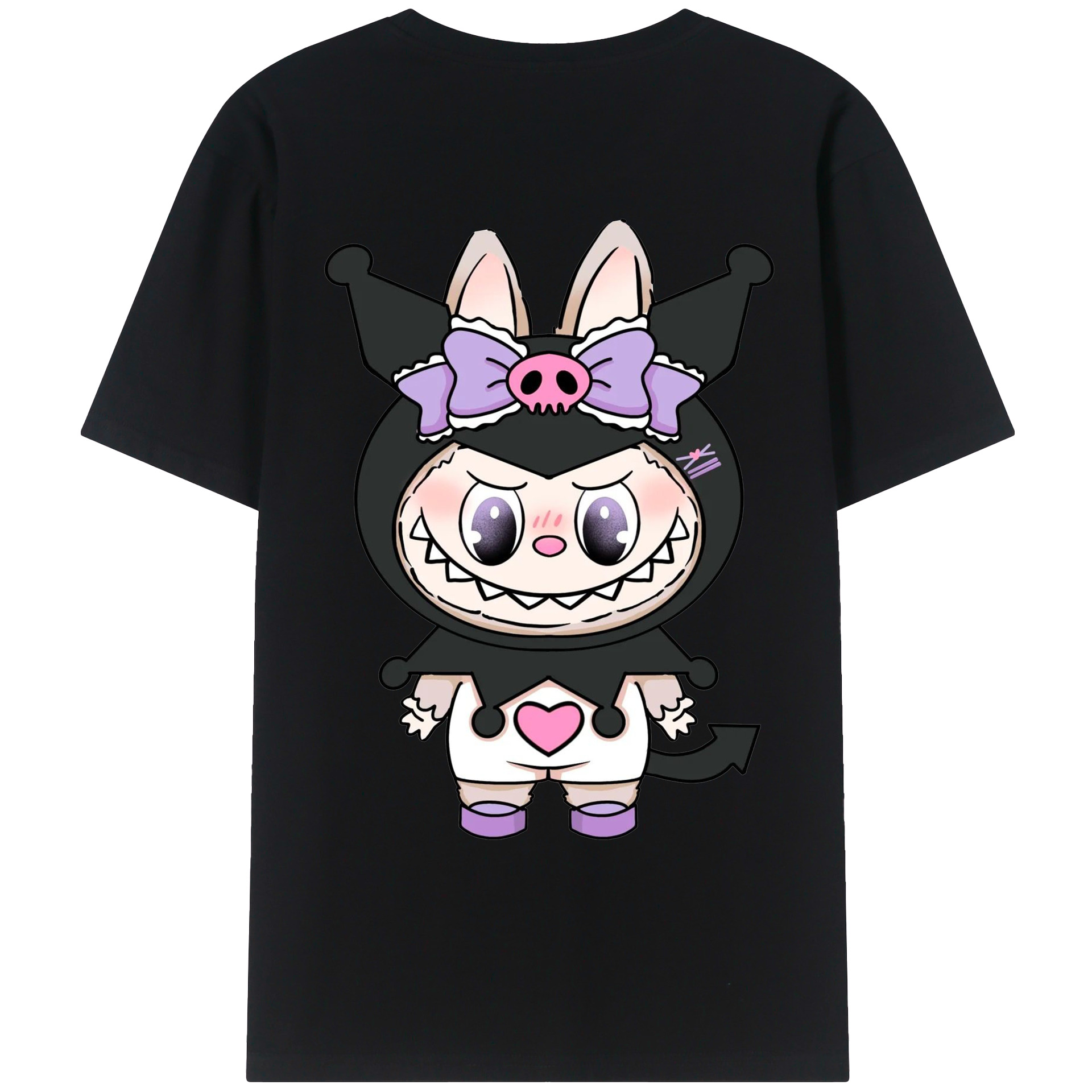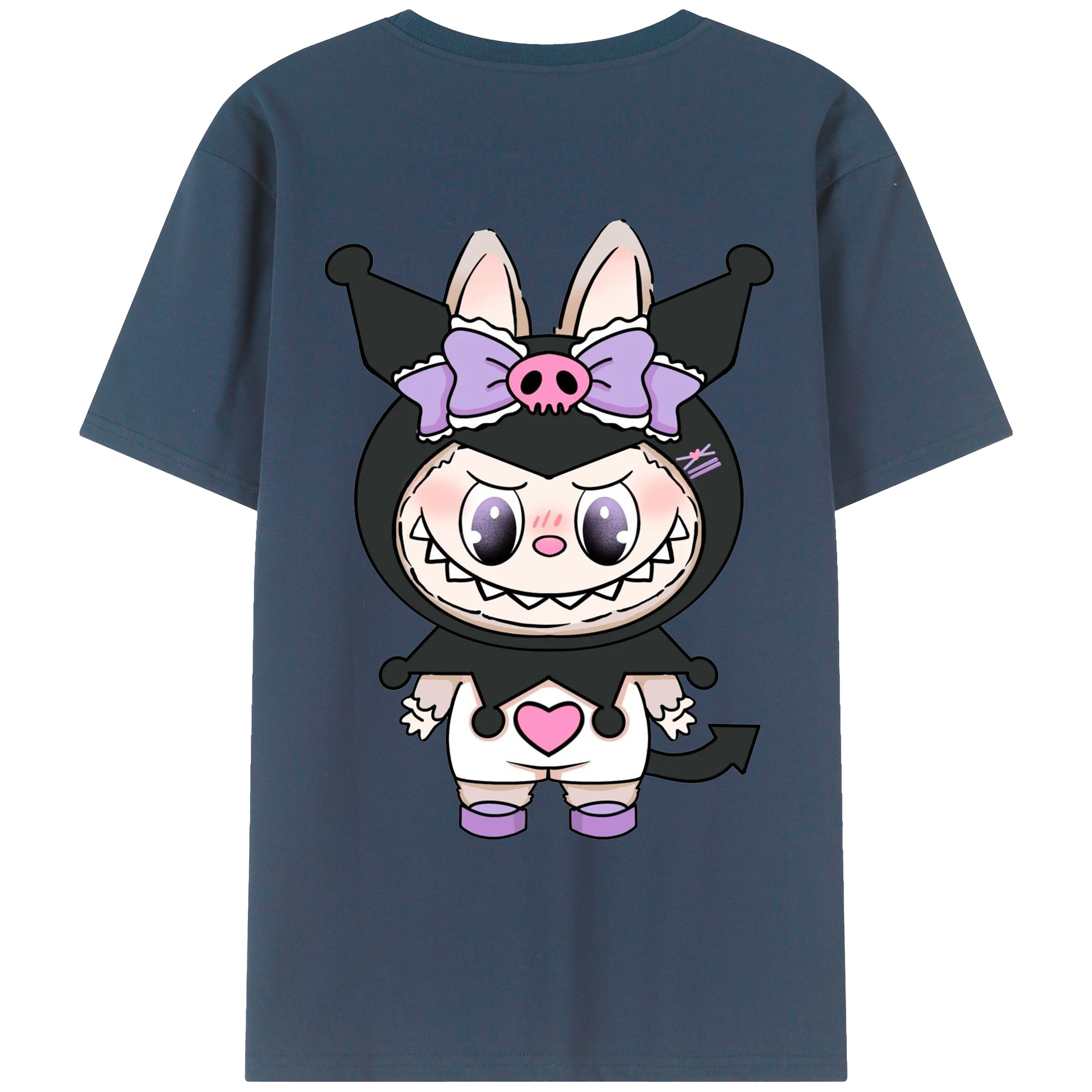 サンリオクロミ&LABUBU ラブブ - レディース半袖Tシャツ ・ 綿100% ・ バックプリント ・ 強化クルーネック ・ 二重折り袖口 ・ 快適 通気性 ・ フィットネス カジュアル 旅行用