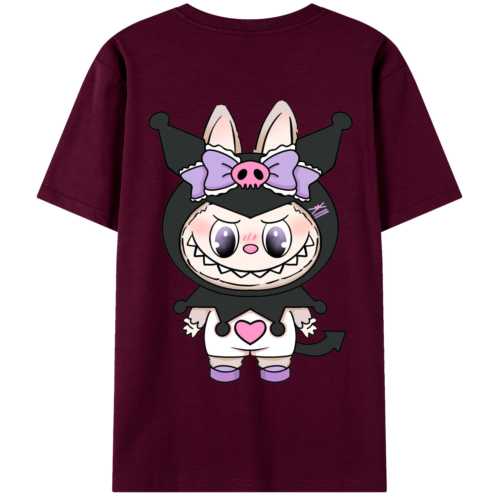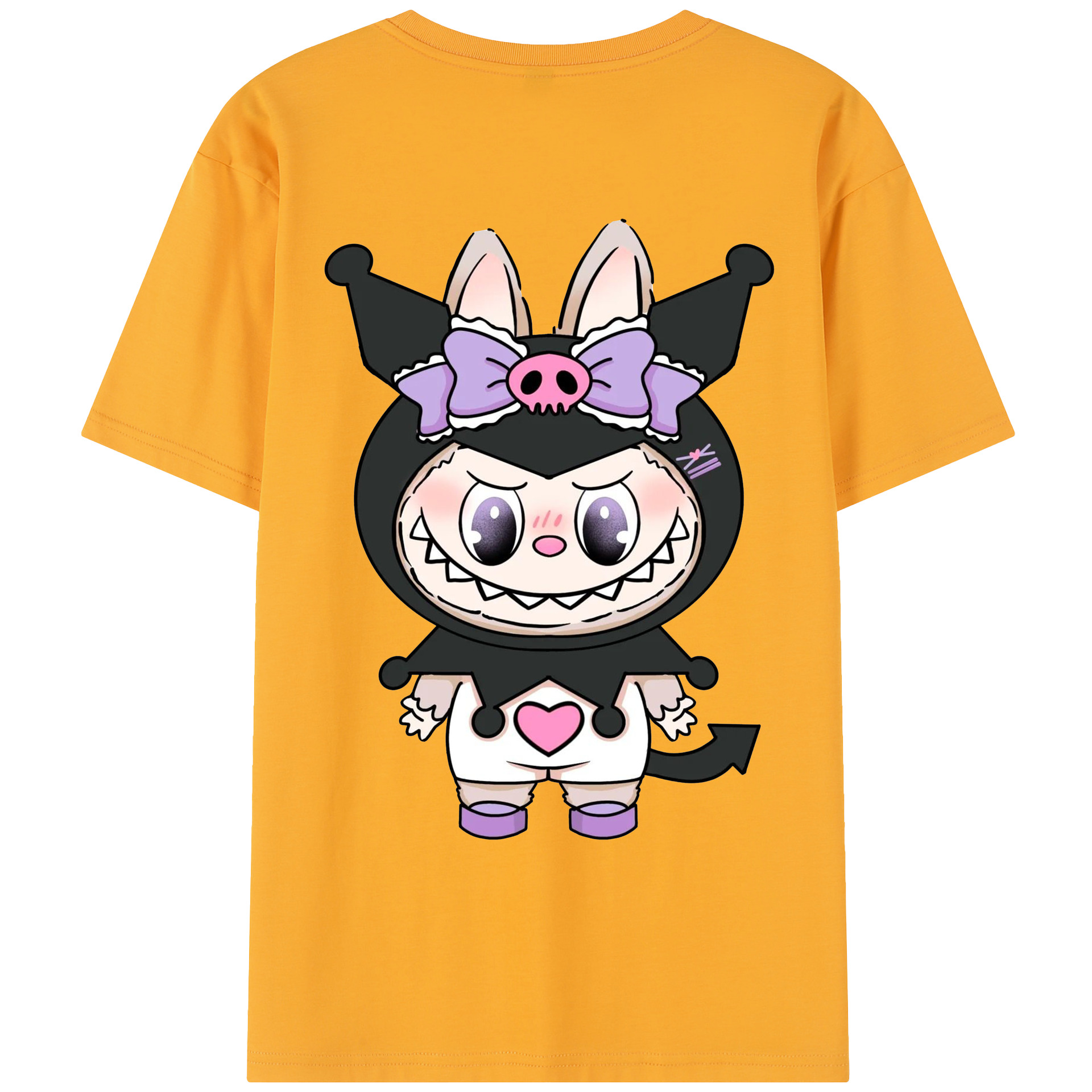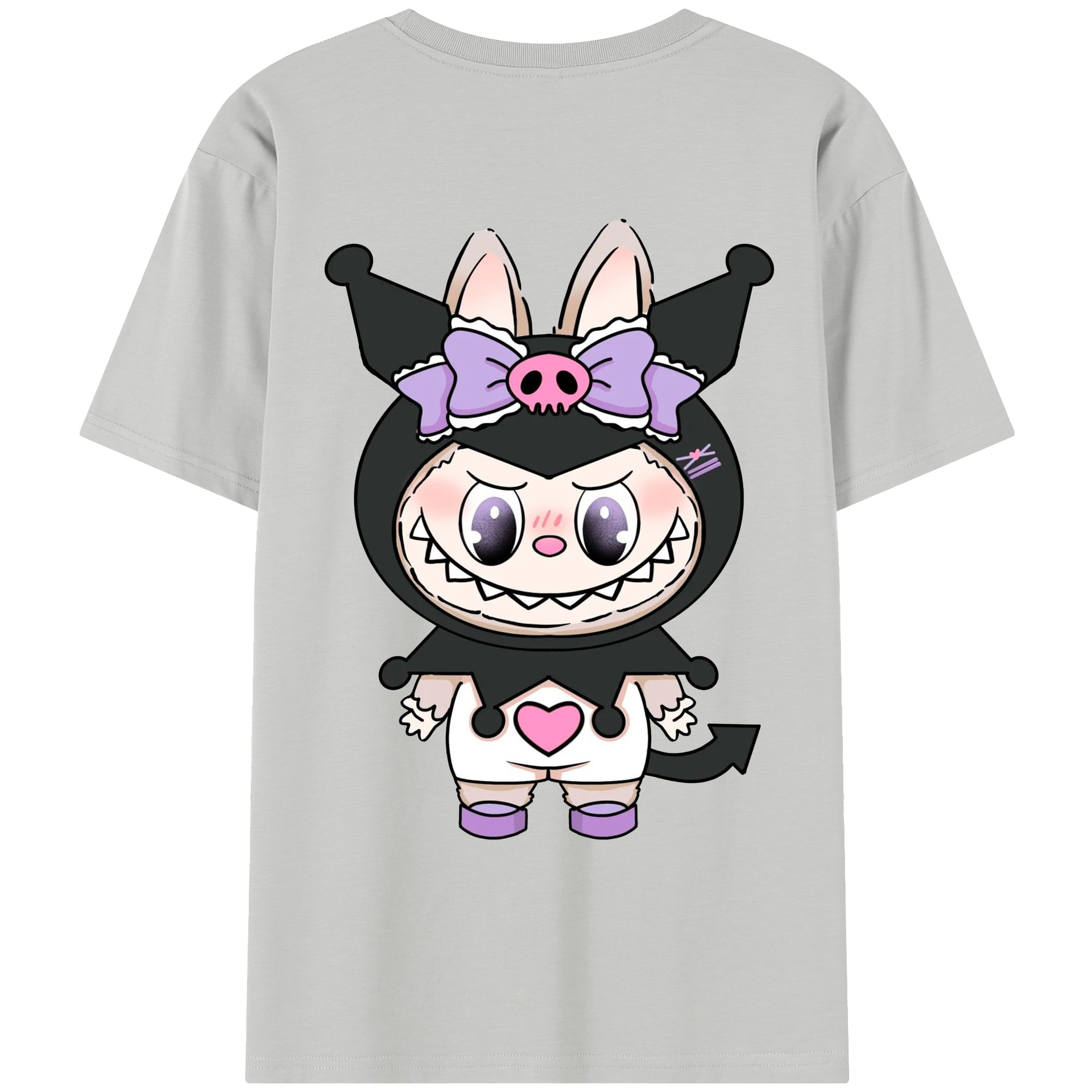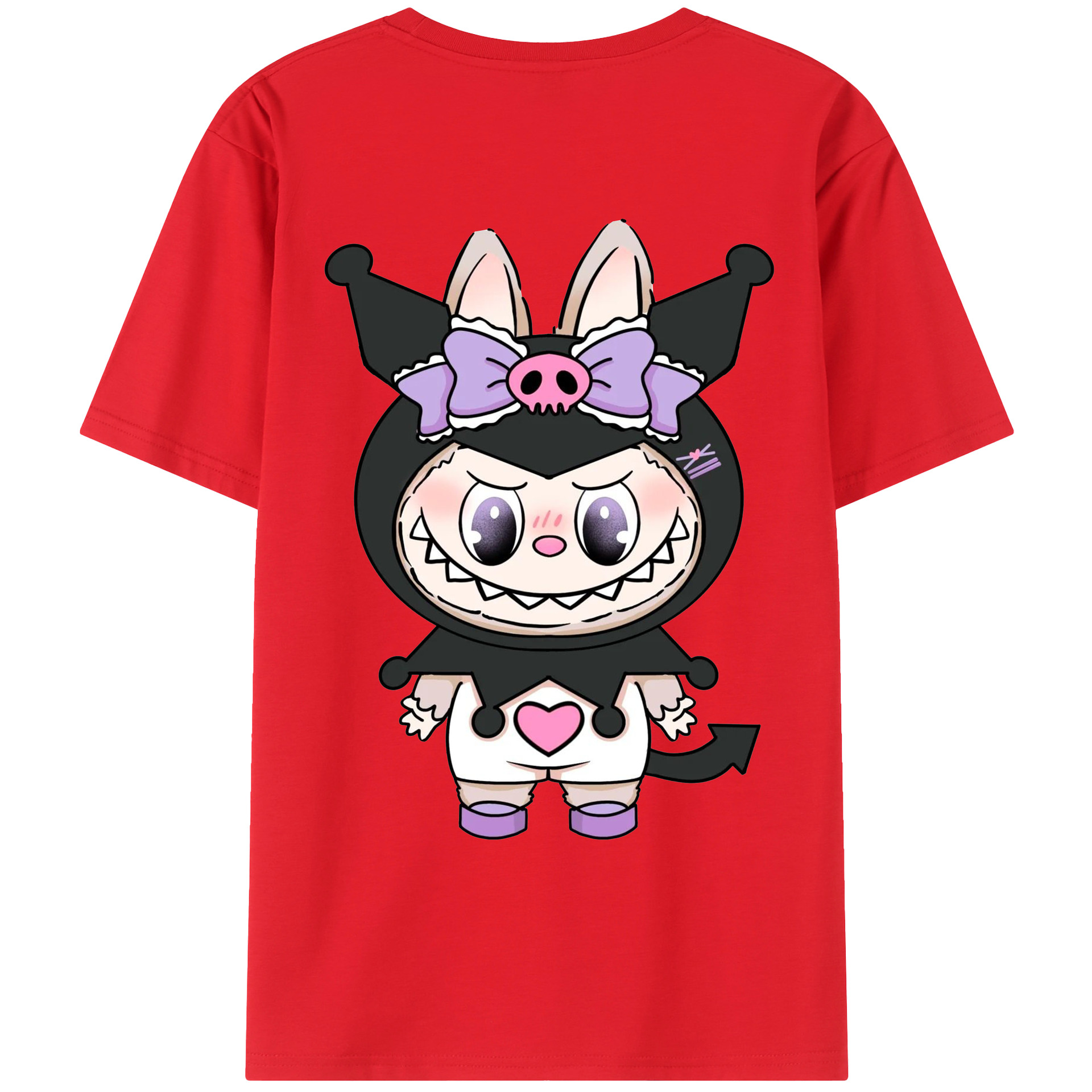サンリオクロミ&LABUBU ラブブ - レディース半袖Tシャツ ・ 綿100% ・ バックプリント ・ 強化クルーネック ・ 二重折り袖口 ・ 快適 通気性 ・ フィットネス カジュアル 旅行用