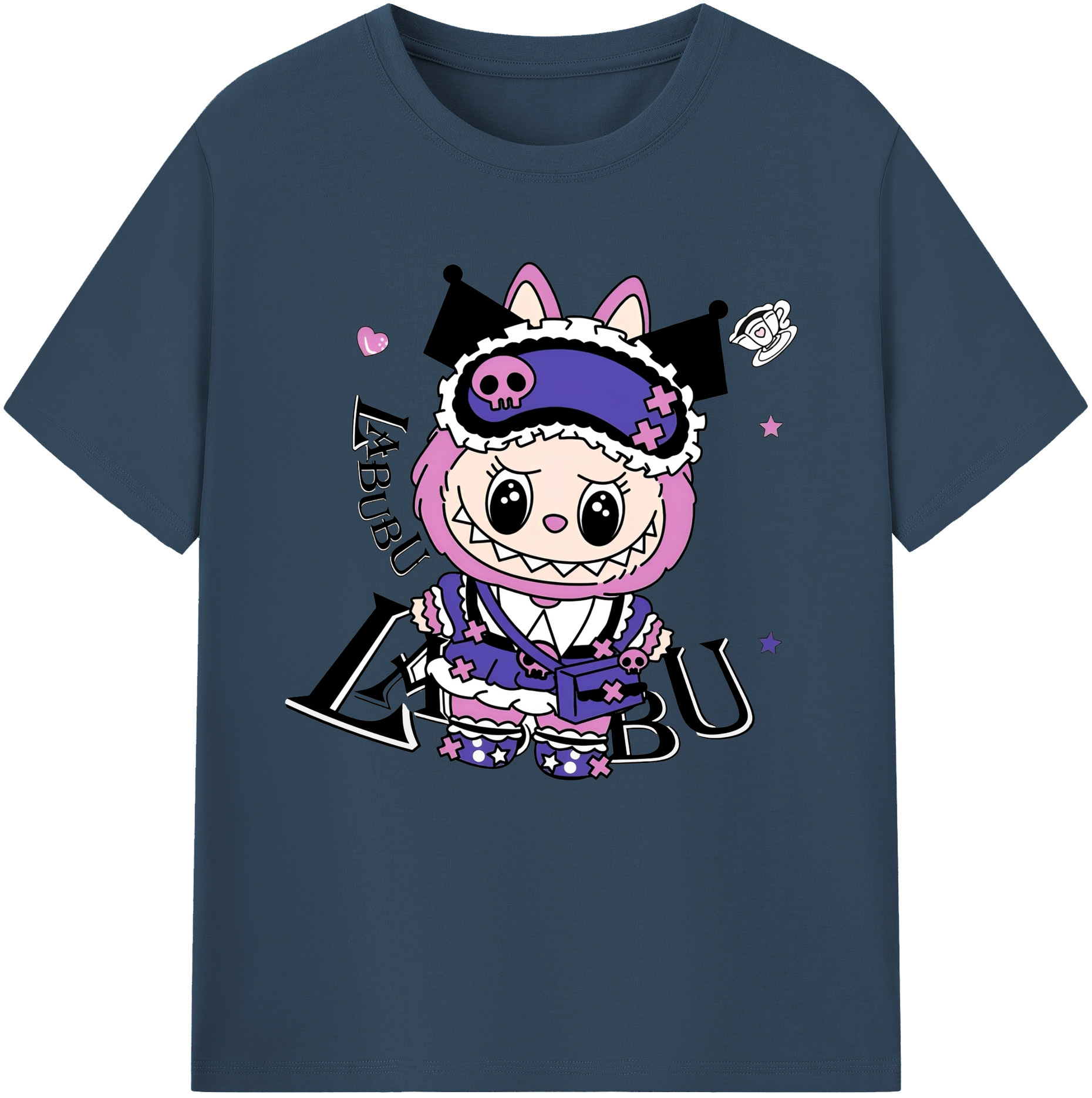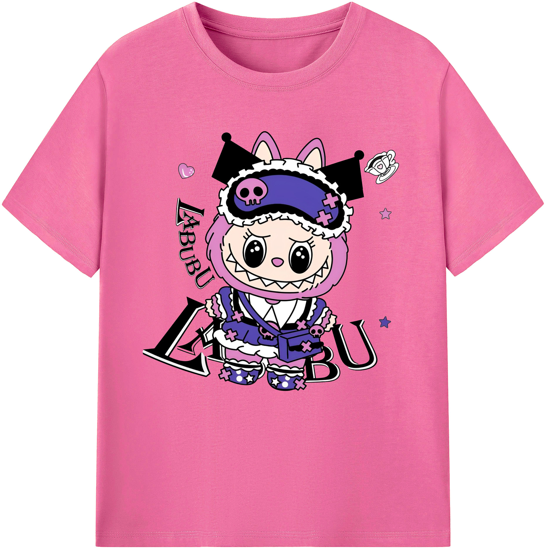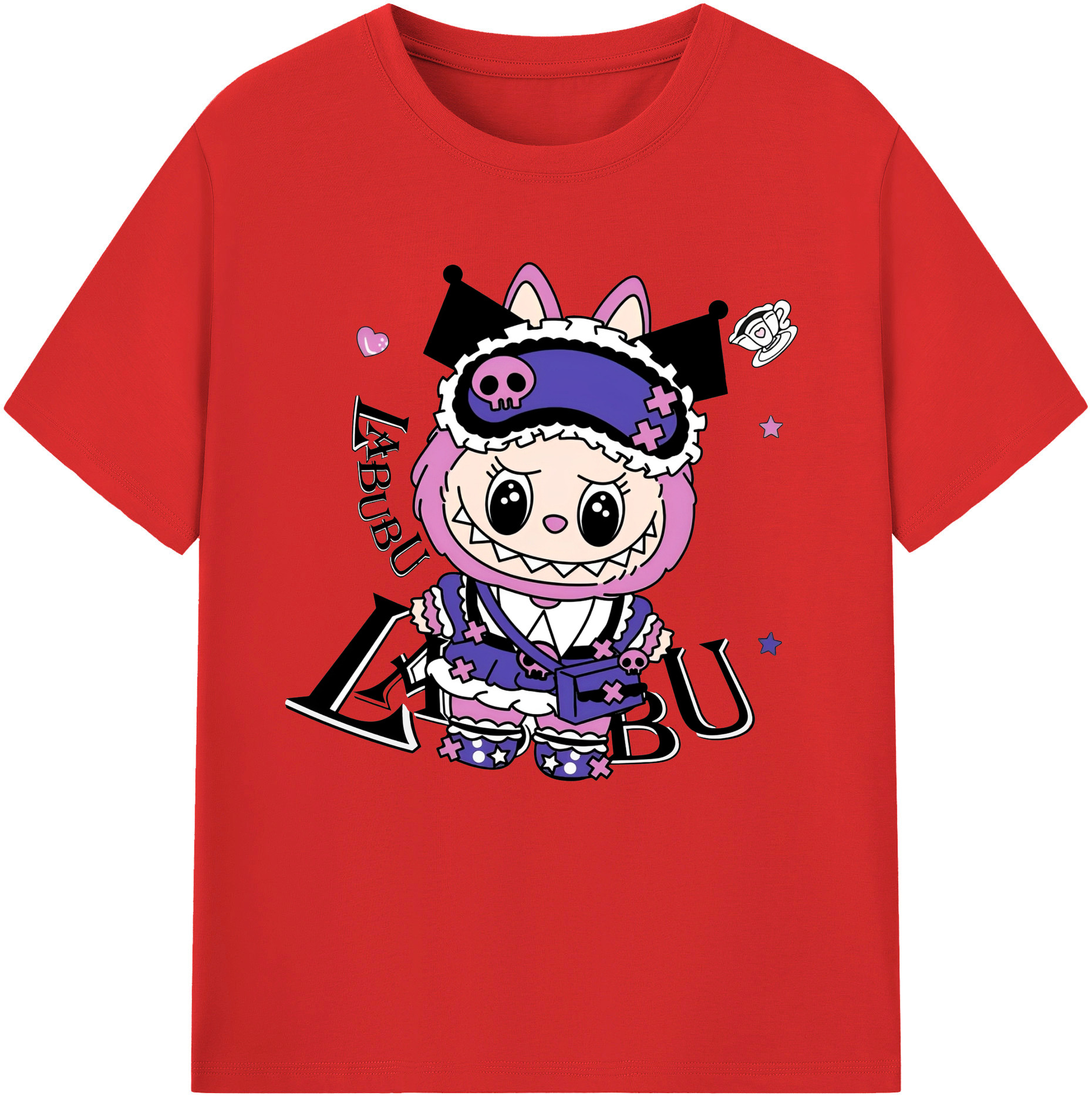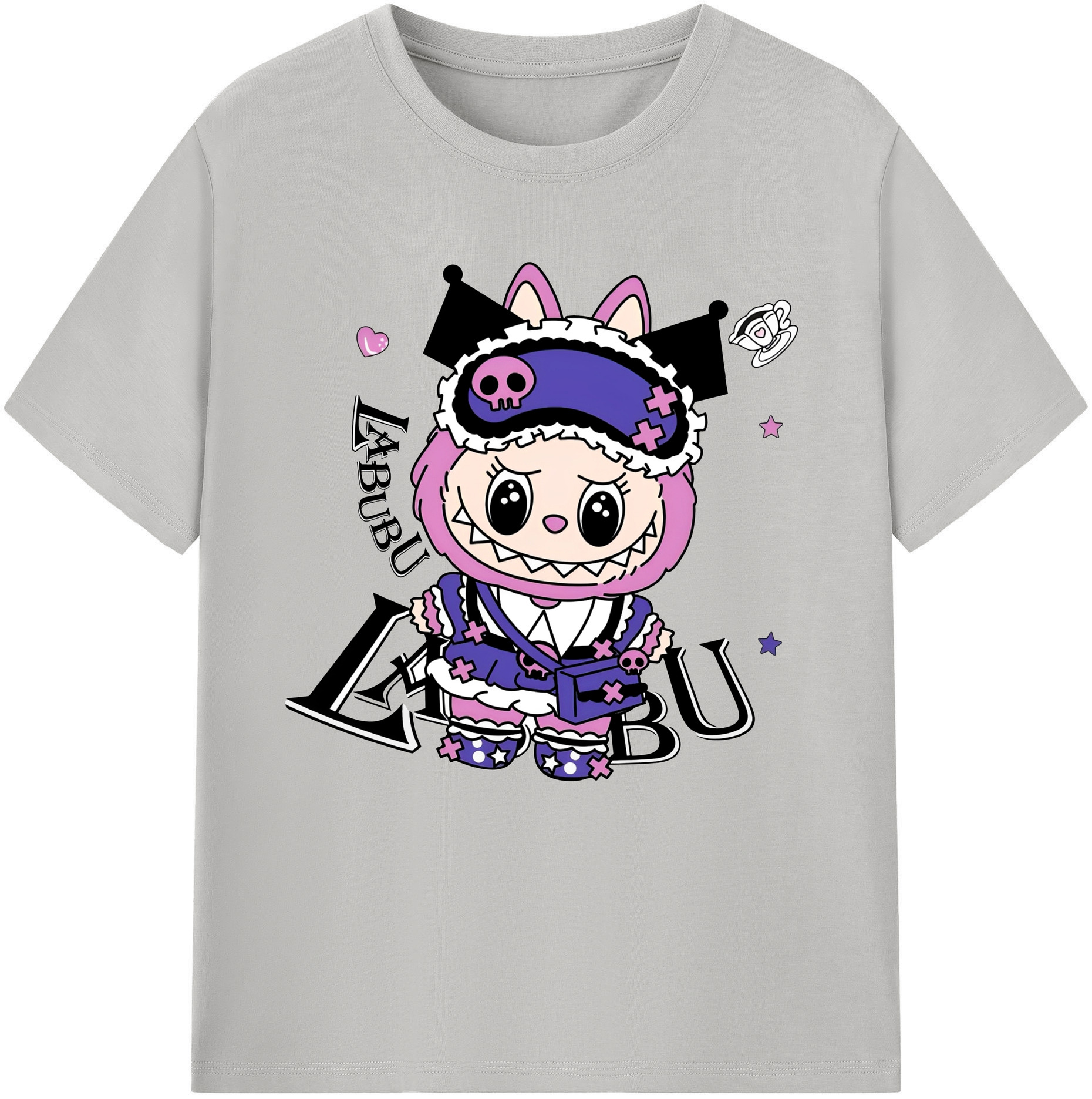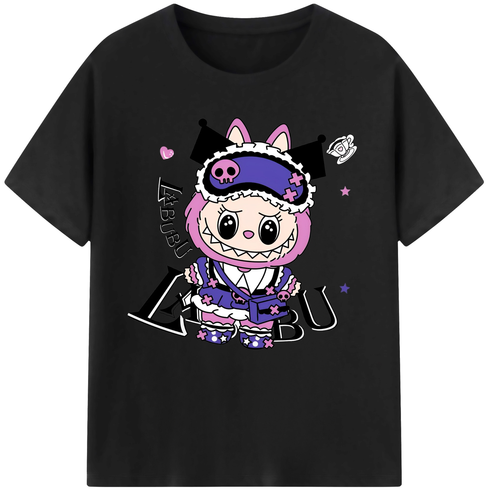サンリオクロミ&LABUBU ラブブ - レディースカジュアルプリントTシャツ ・ 綿100% ・ クルーネック ・ フロントプリント ・ 柔らかく快適 ・ フィットネス カジュアル 旅行用
