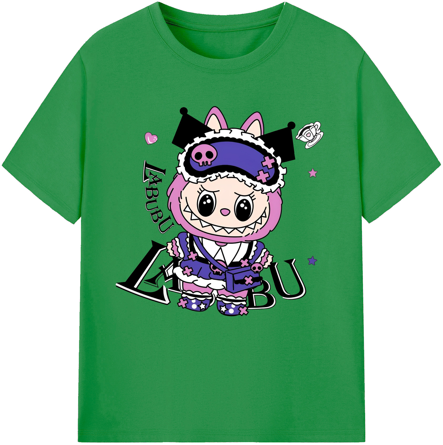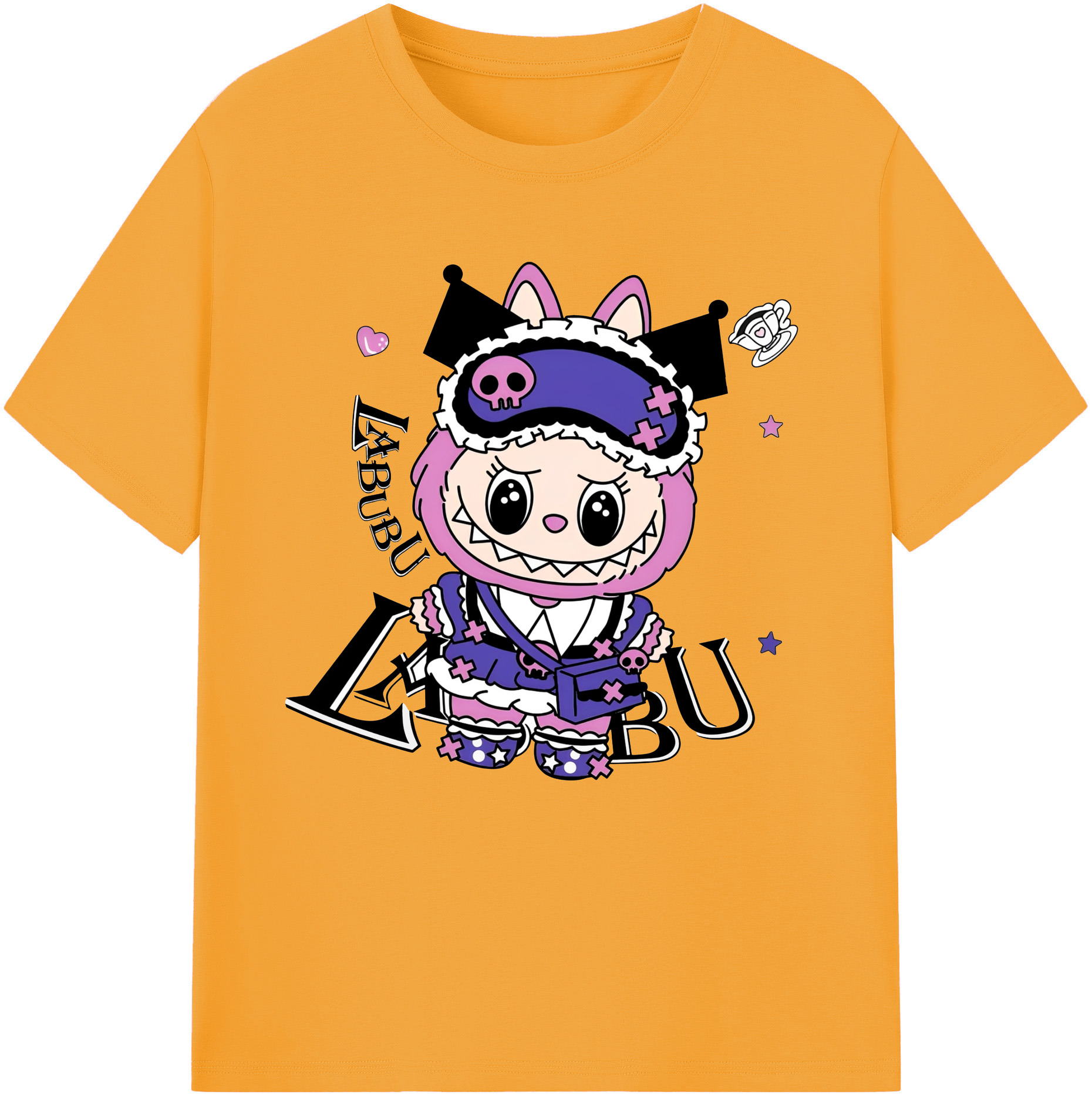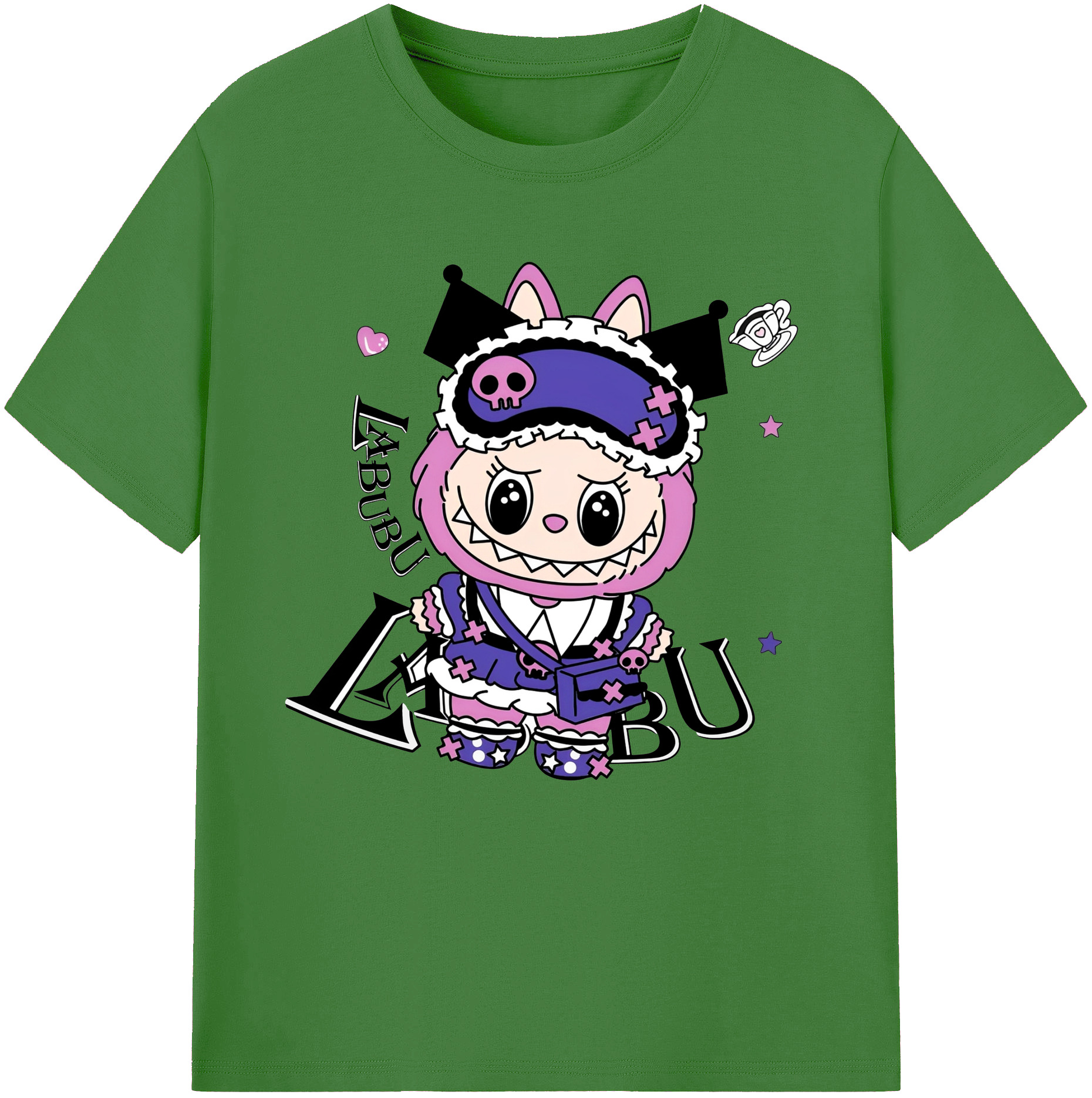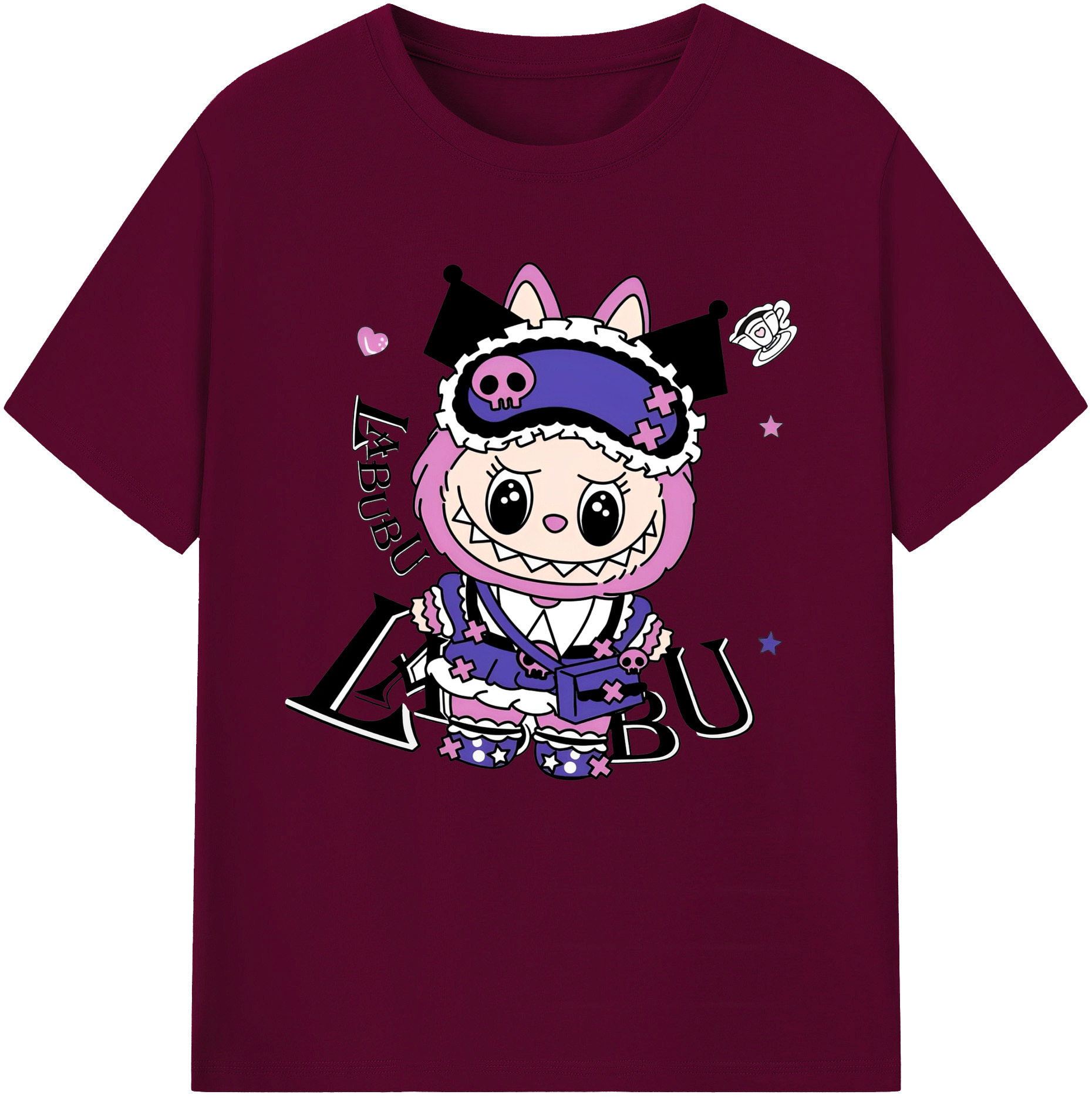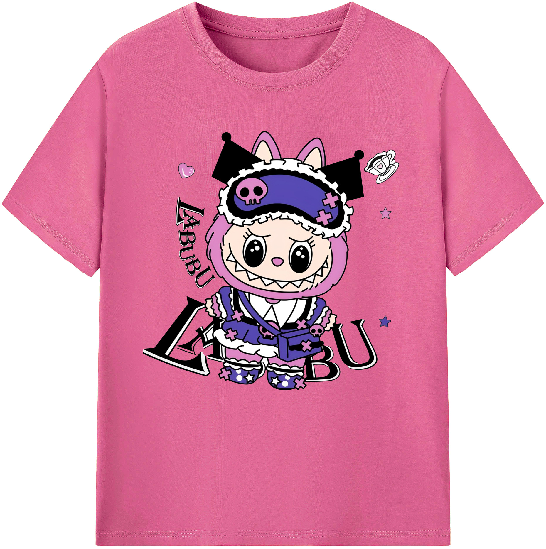 サンリオクロミ&LABUBU ラブブ - レディースカジュアルプリントTシャツ ・ 綿100% ・ クルーネック ・ フロントプリント ・ 柔らかく快適 ・ フィットネス カジュアル 旅行用