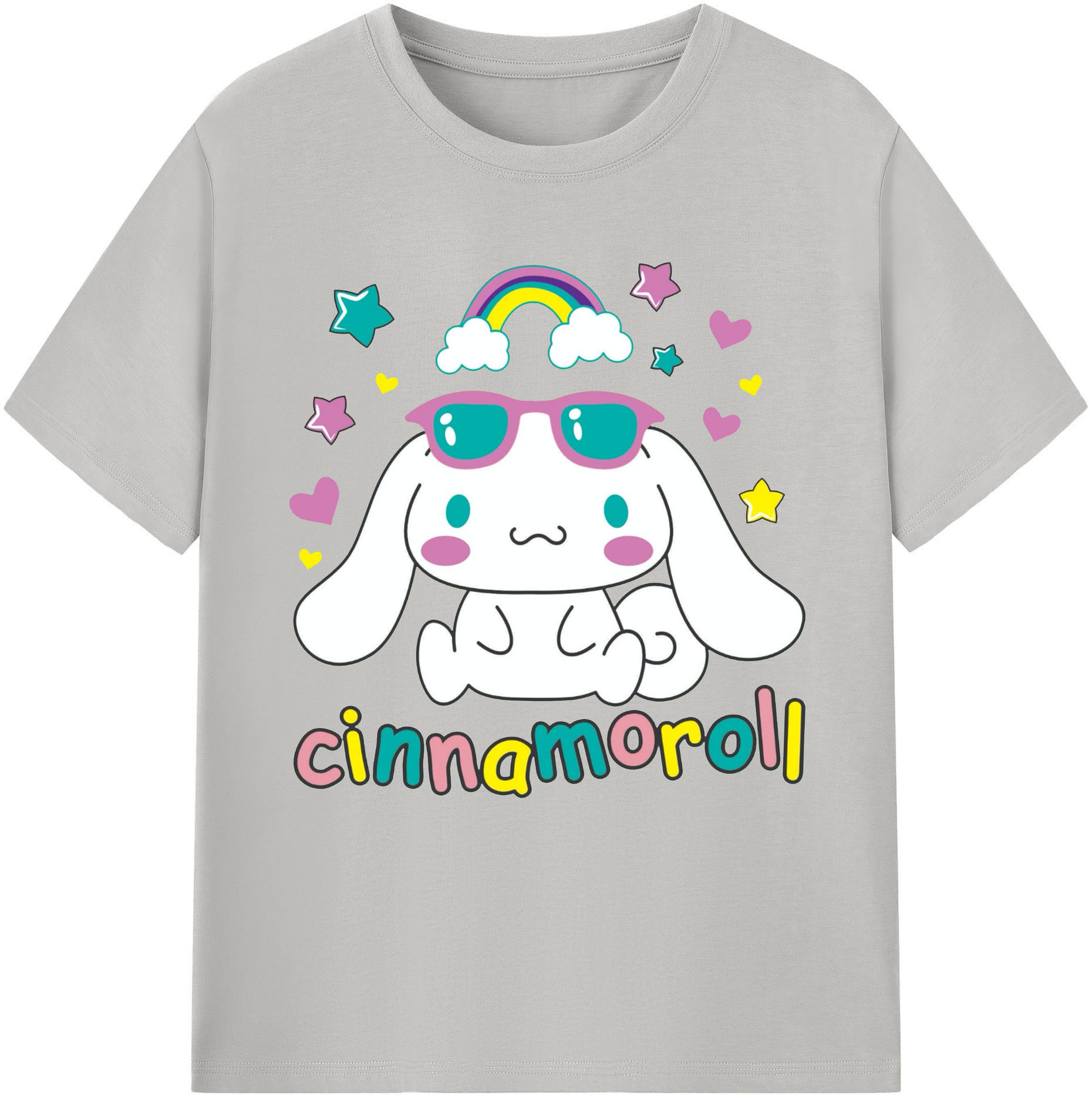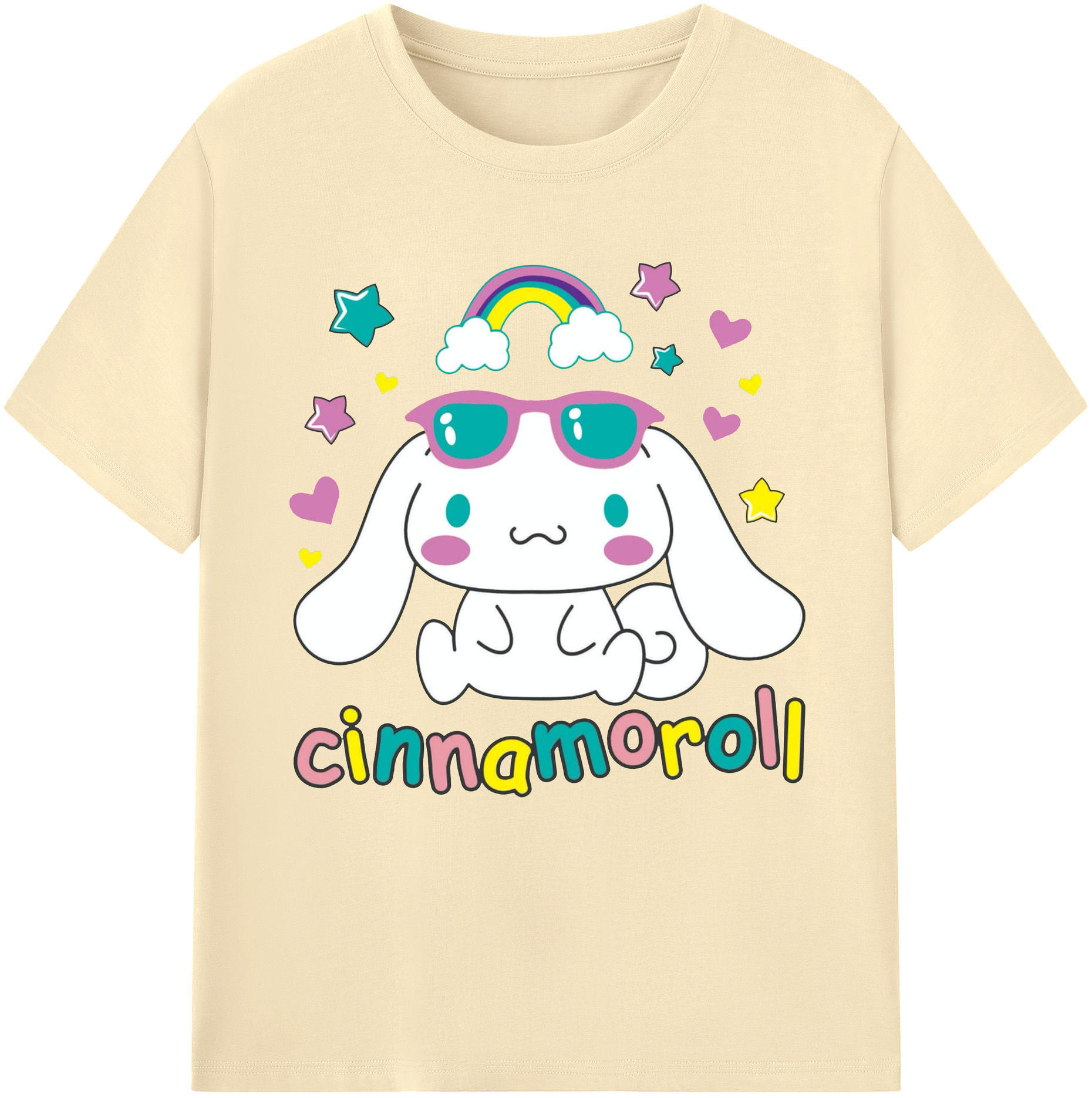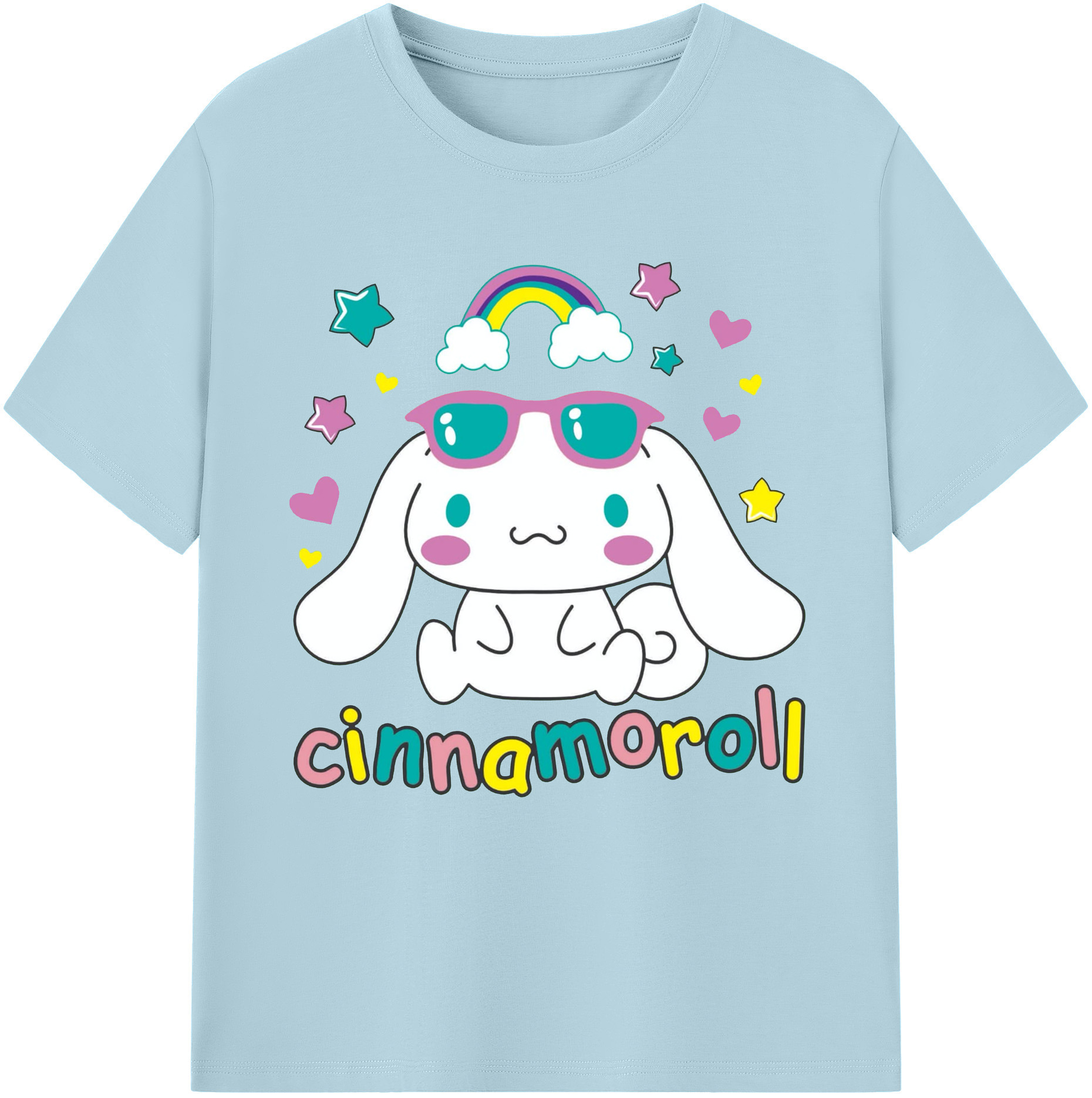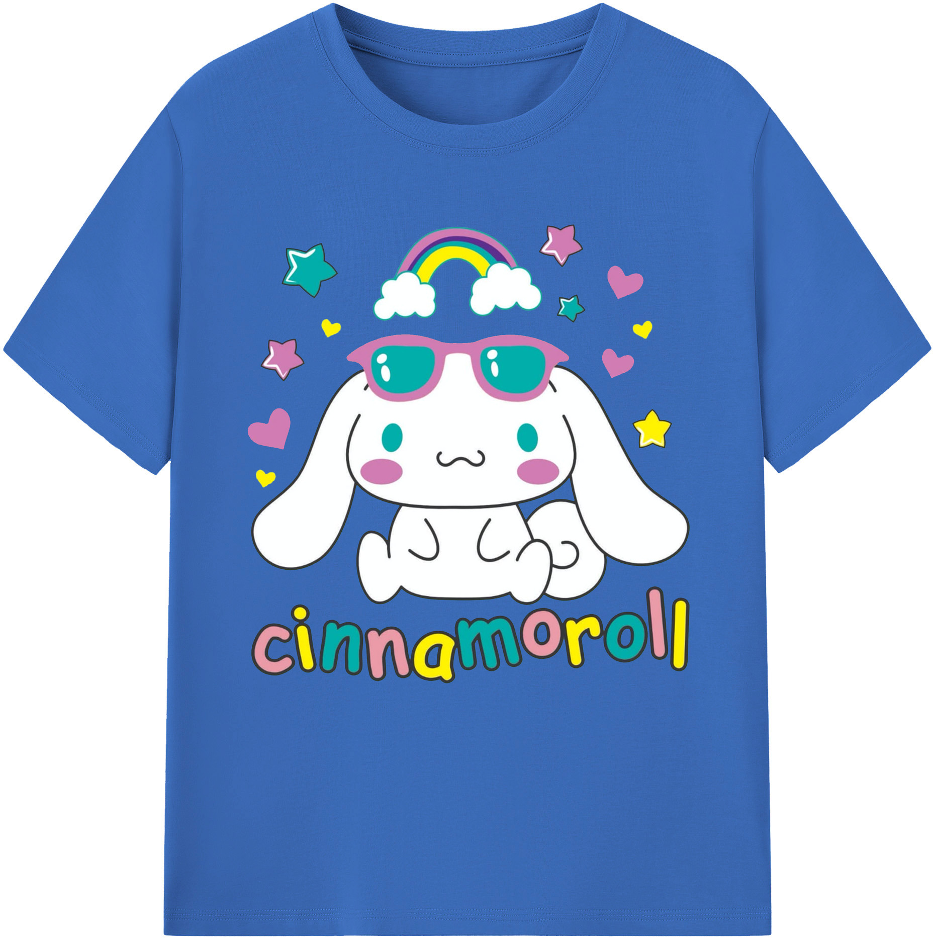 おもしろいシナモロール - 綿100% 半袖Tシャツ ・ フロントプリント ・ 快適 通気性 ・ 日常使い 散歩 スポーツ用