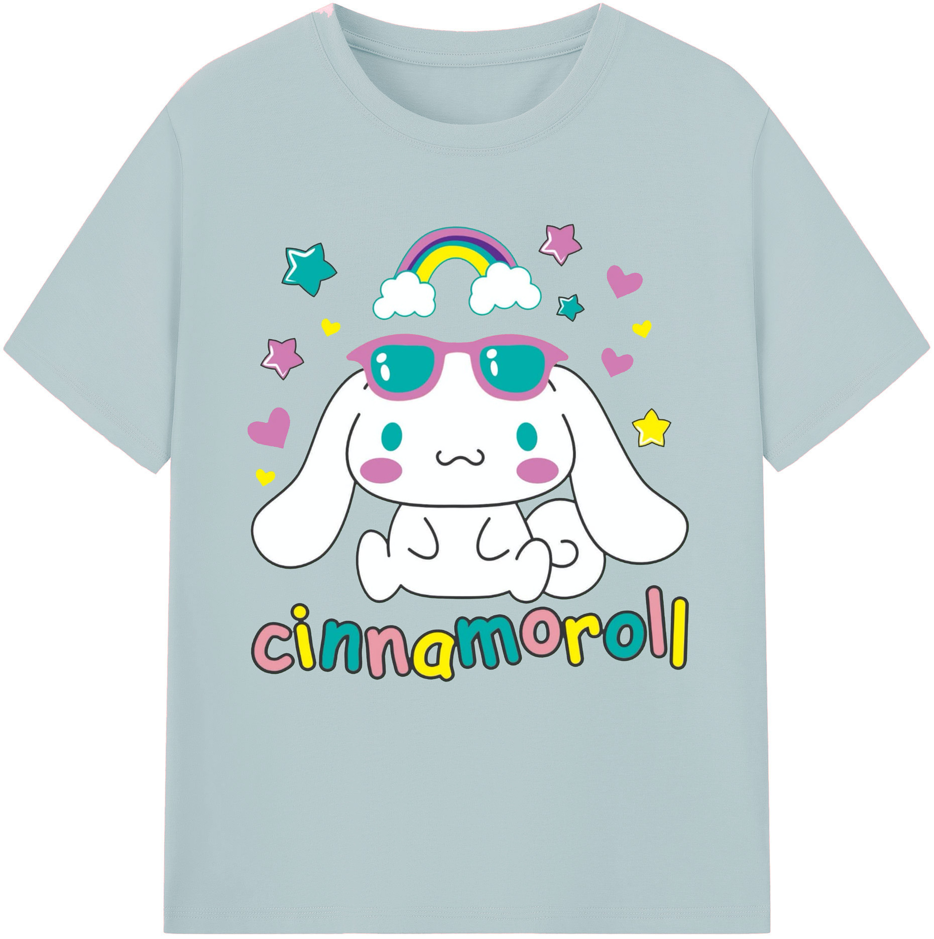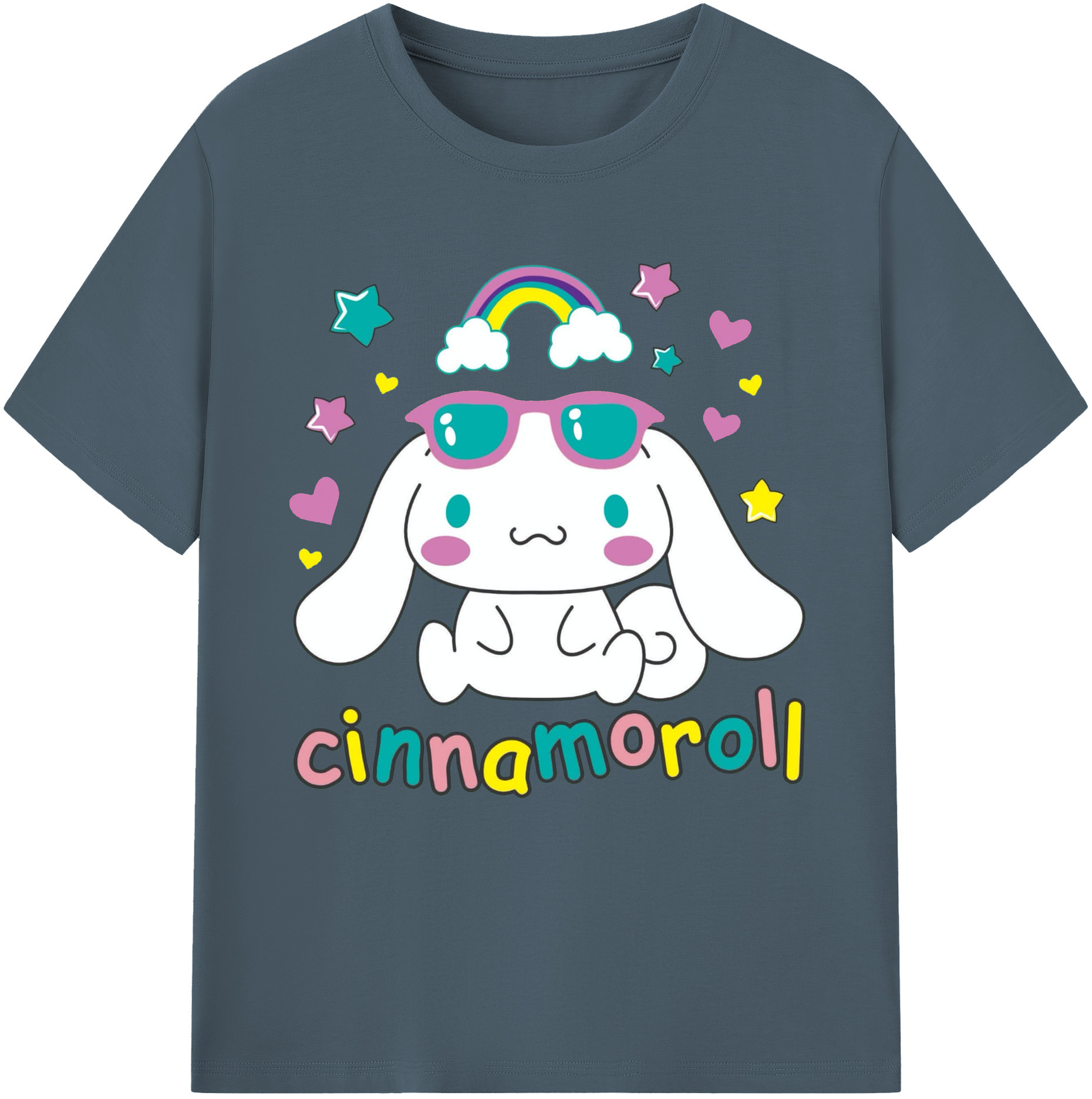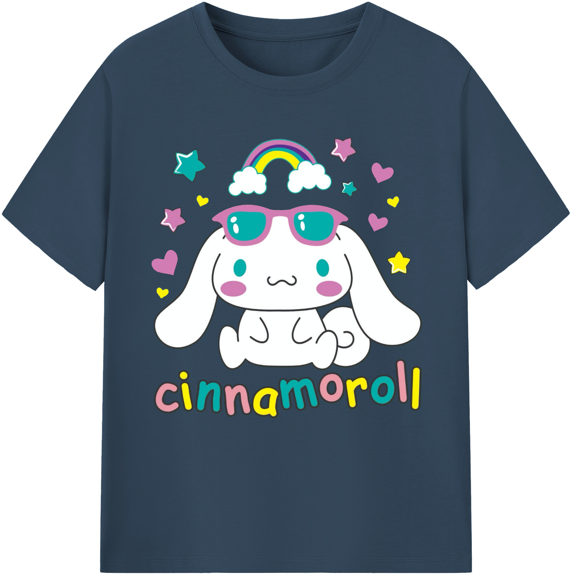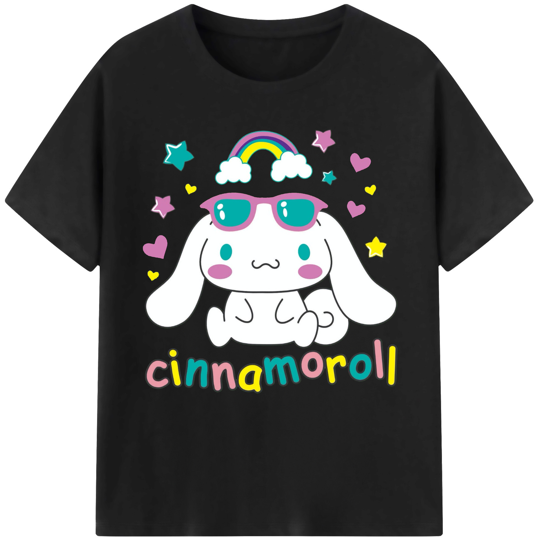おもしろいシナモロール - 綿100% 半袖Tシャツ ・ フロントプリント ・ 快適 通気性 ・ 日常使い 散歩 スポーツ用