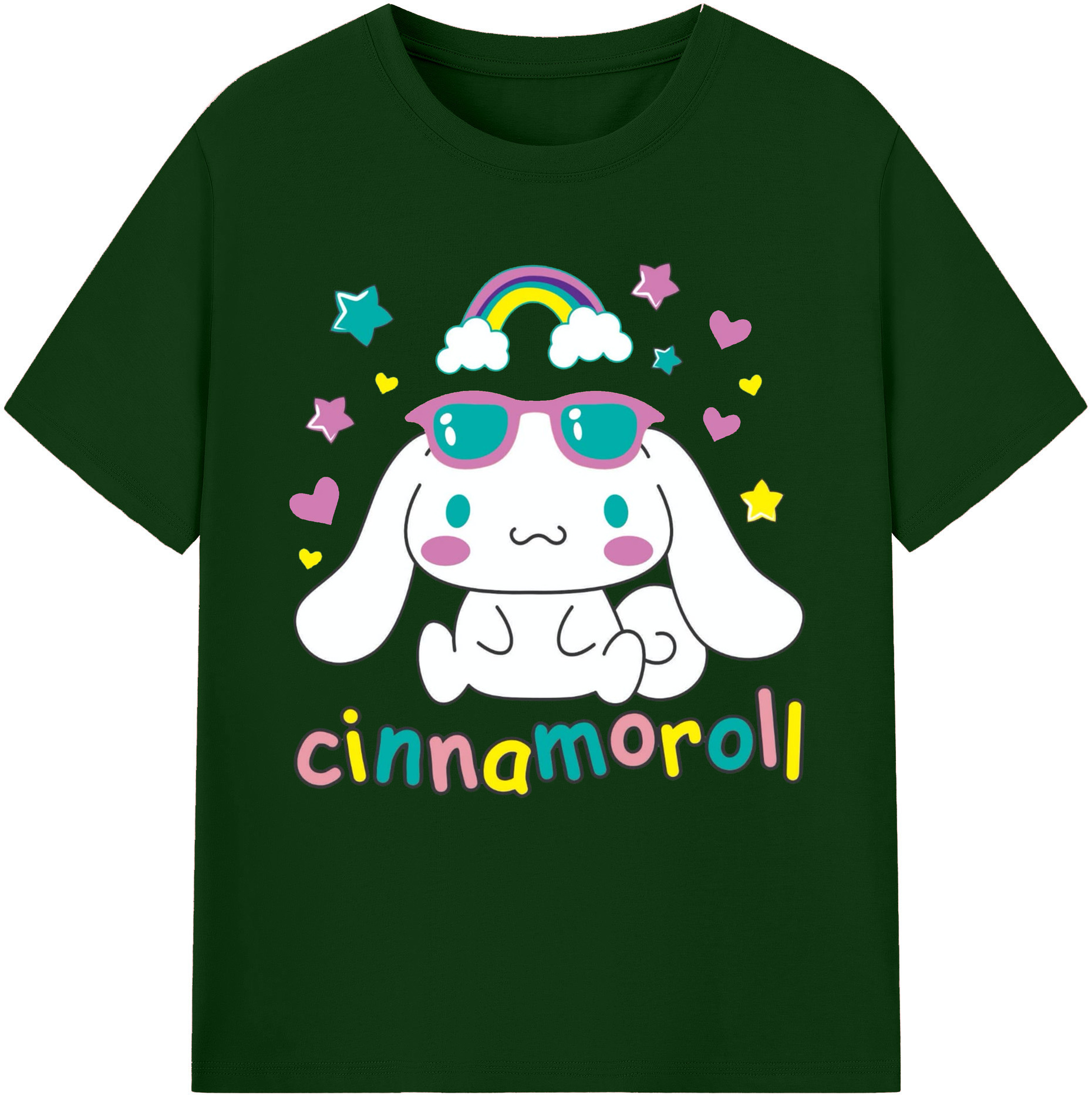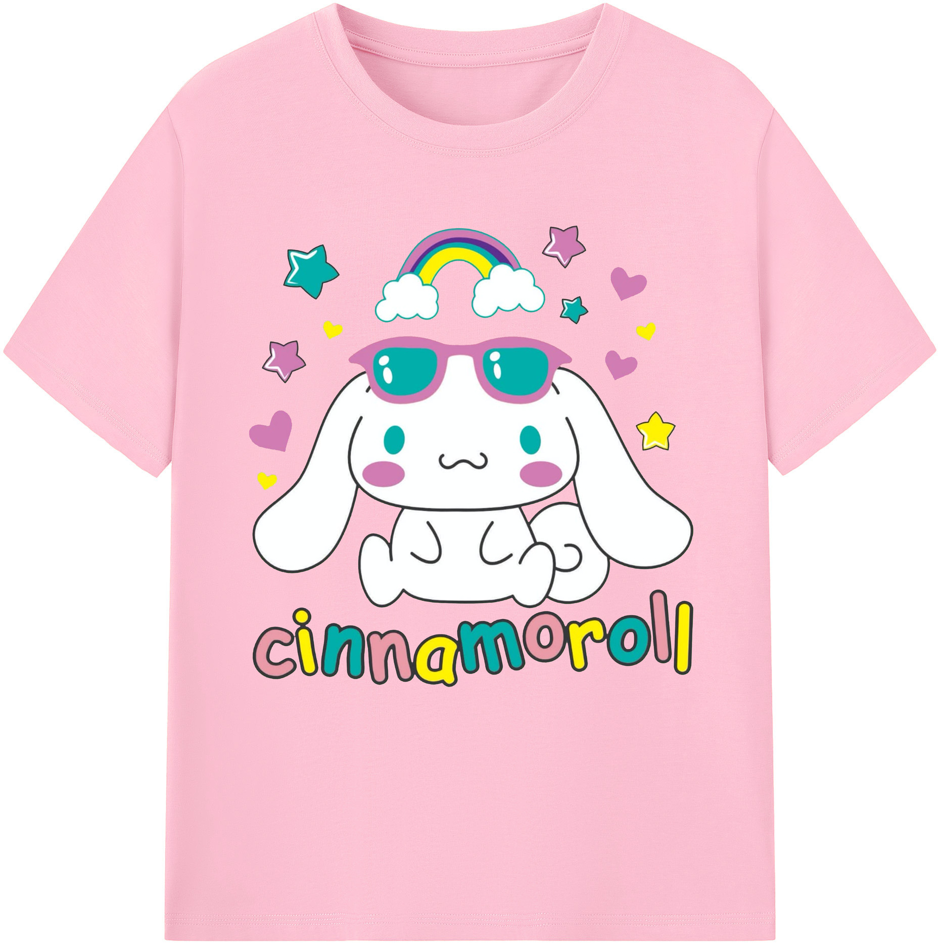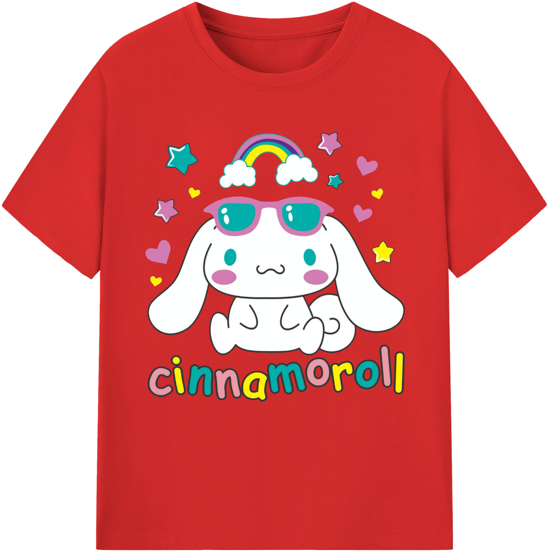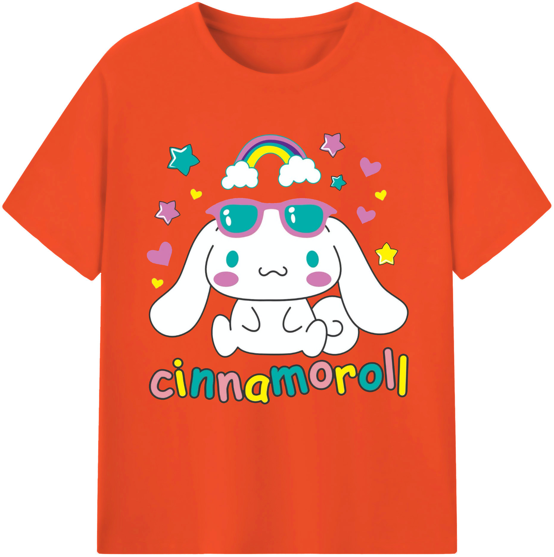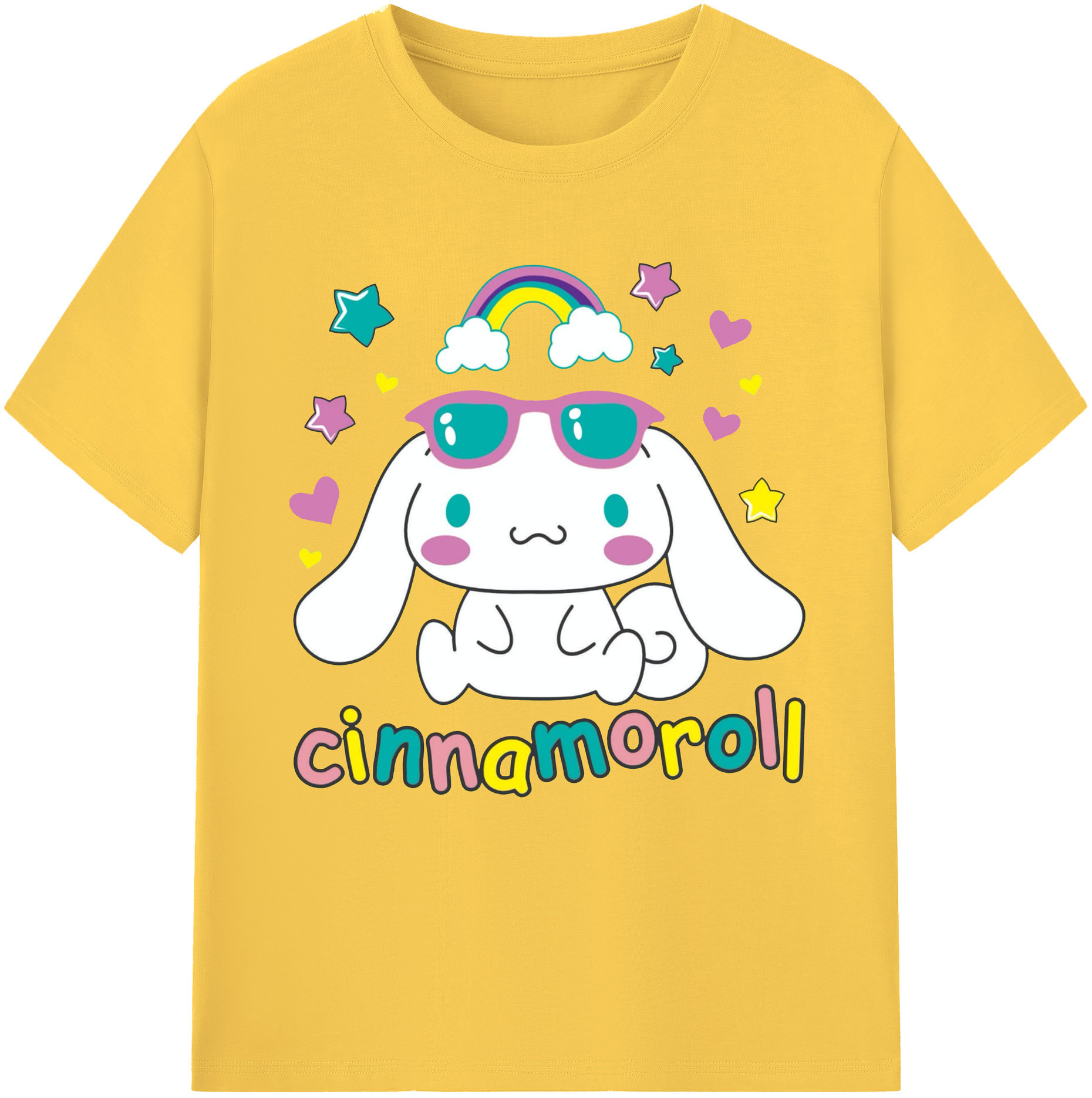 おもしろいシナモロール - 綿100% 半袖Tシャツ ・ フロントプリント ・ 快適 通気性 ・ 日常使い 散歩 スポーツ用