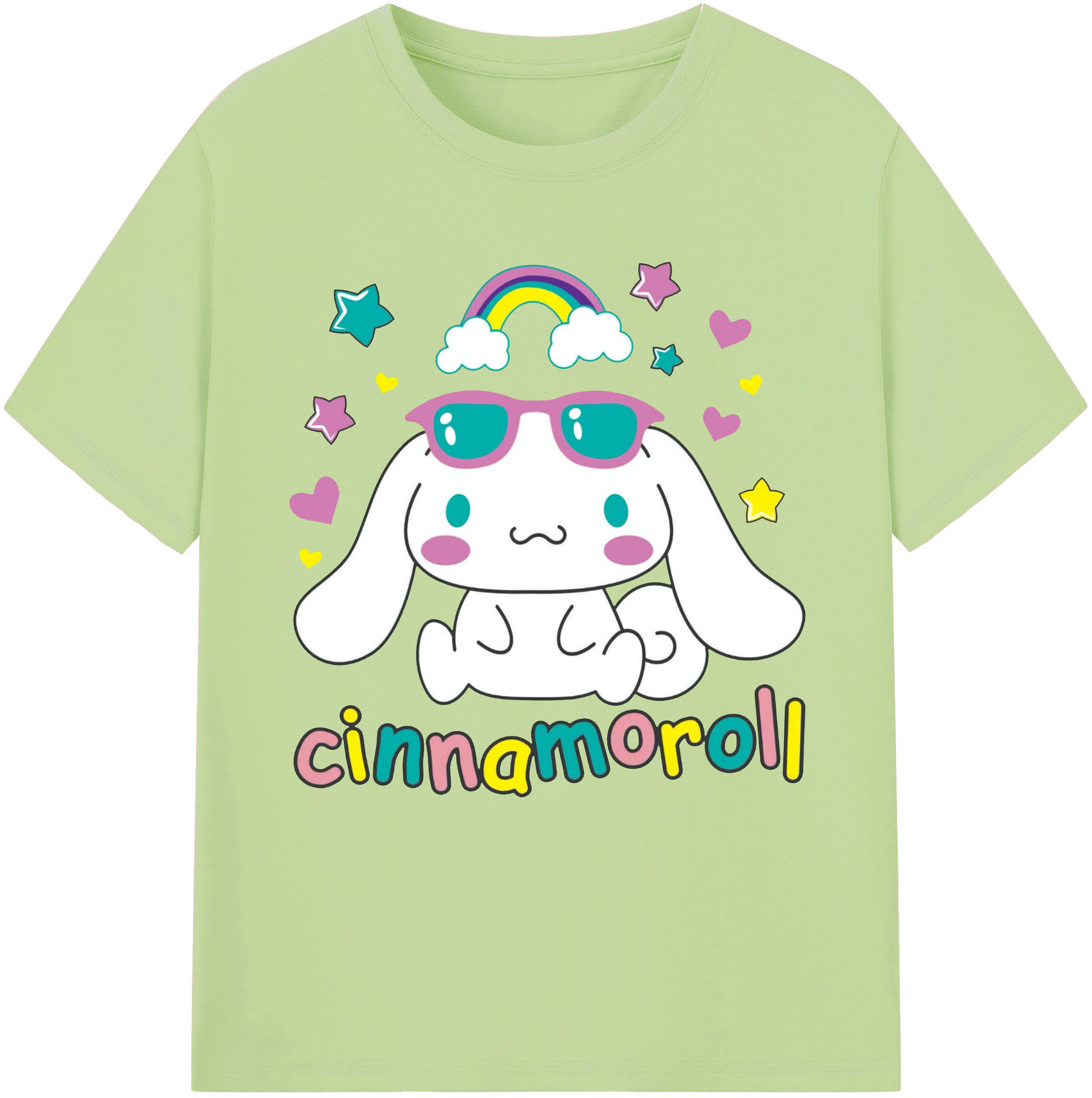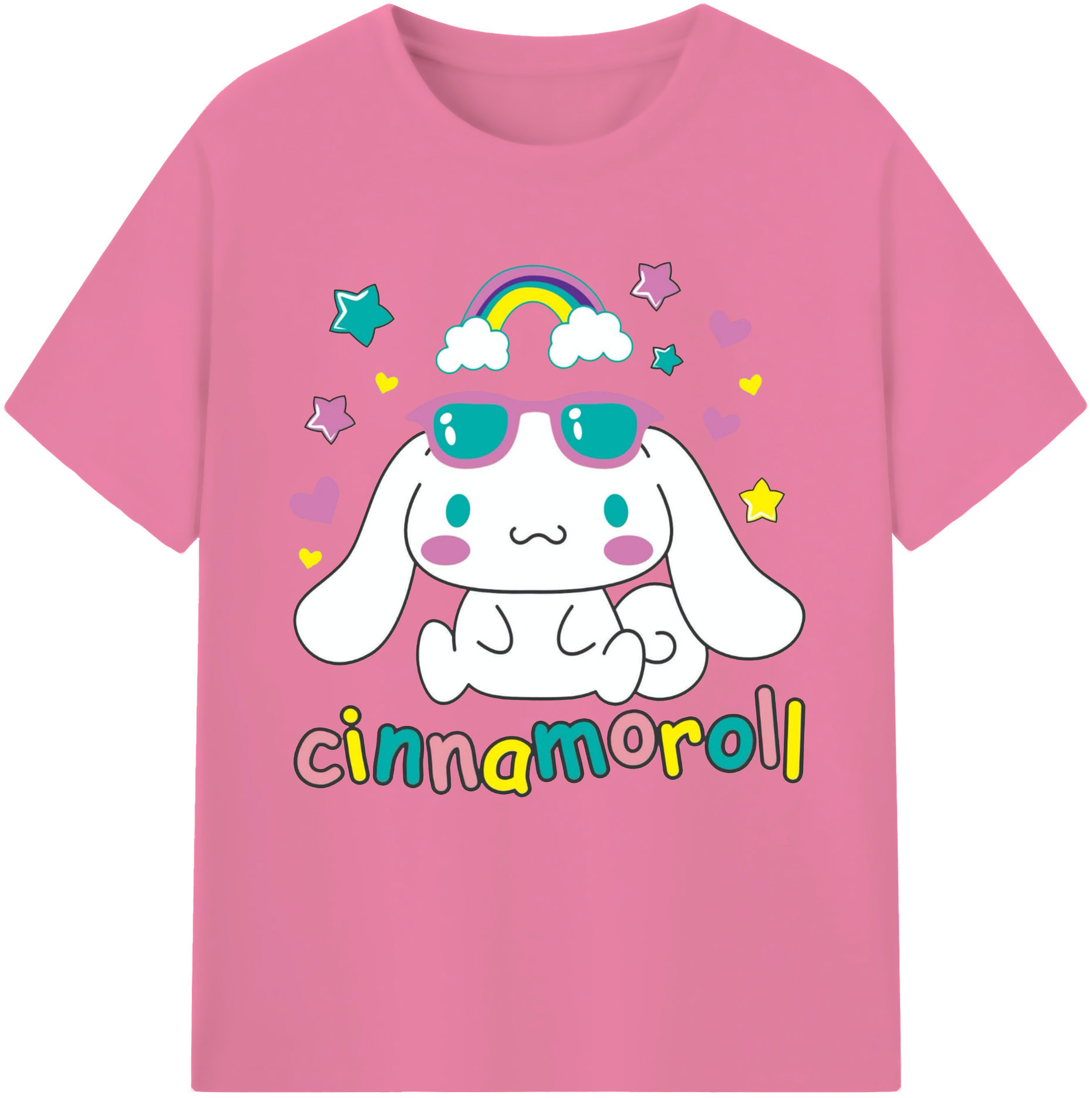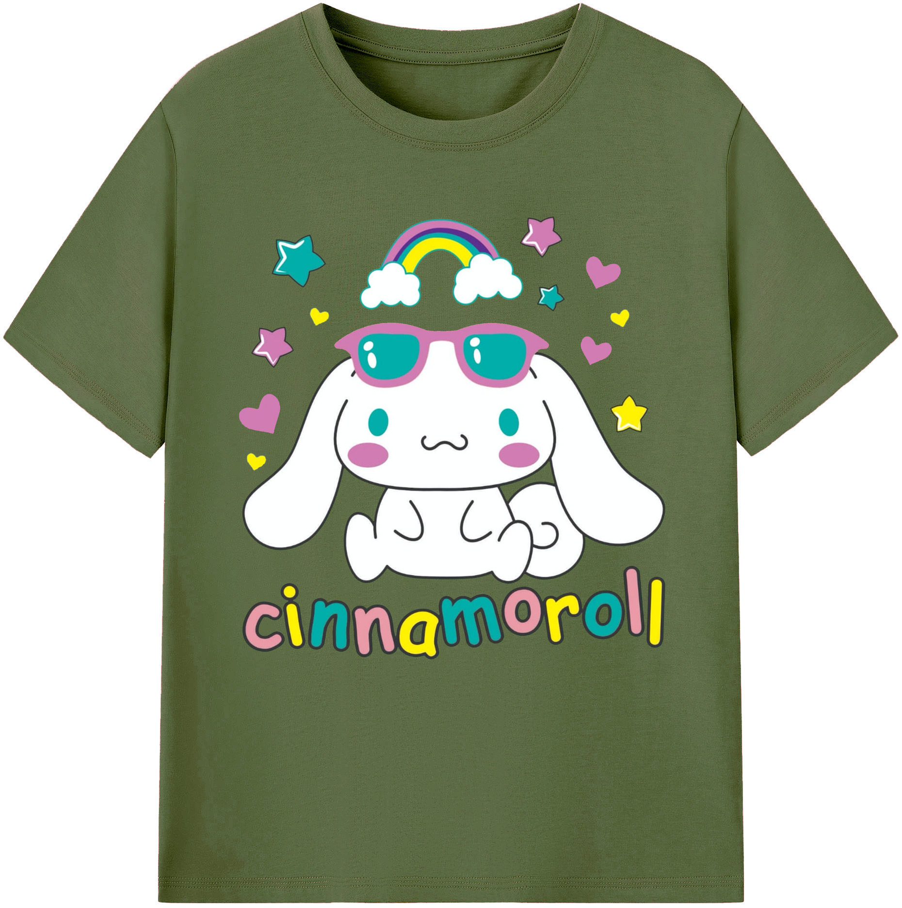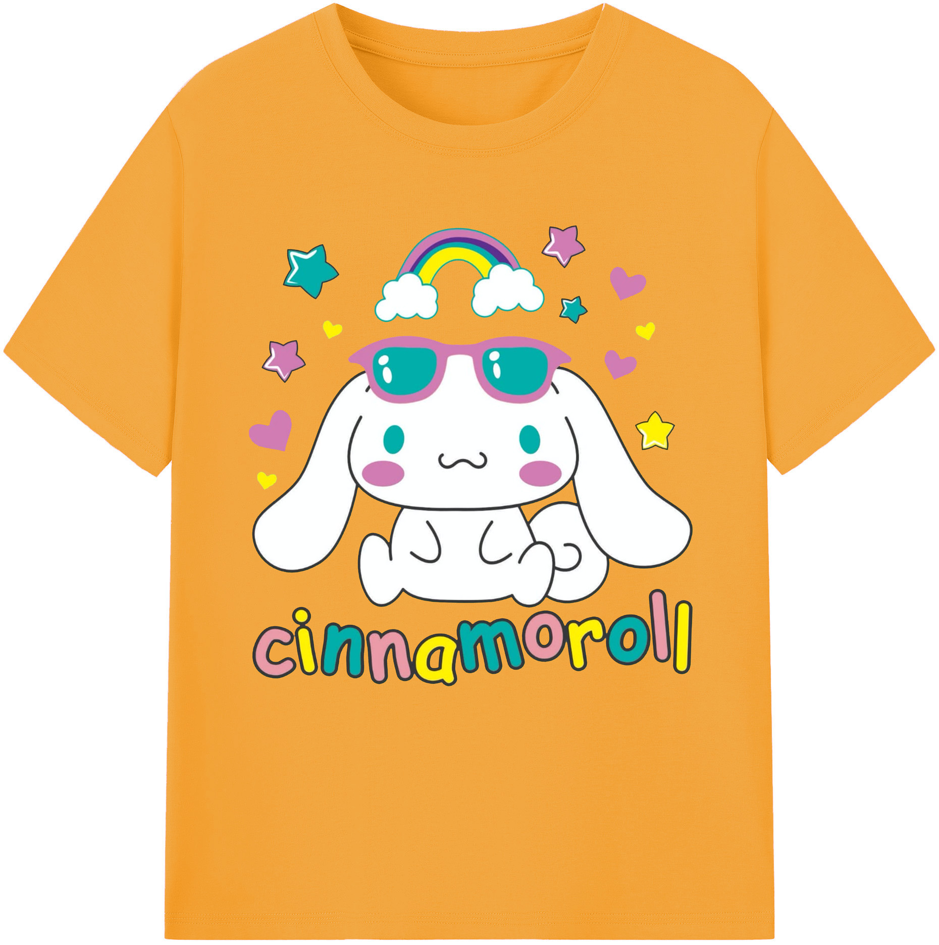 おもしろいシナモロール - 綿100% 半袖Tシャツ ・ フロントプリント ・ 快適 通気性 ・ 日常使い 散歩 スポーツ用