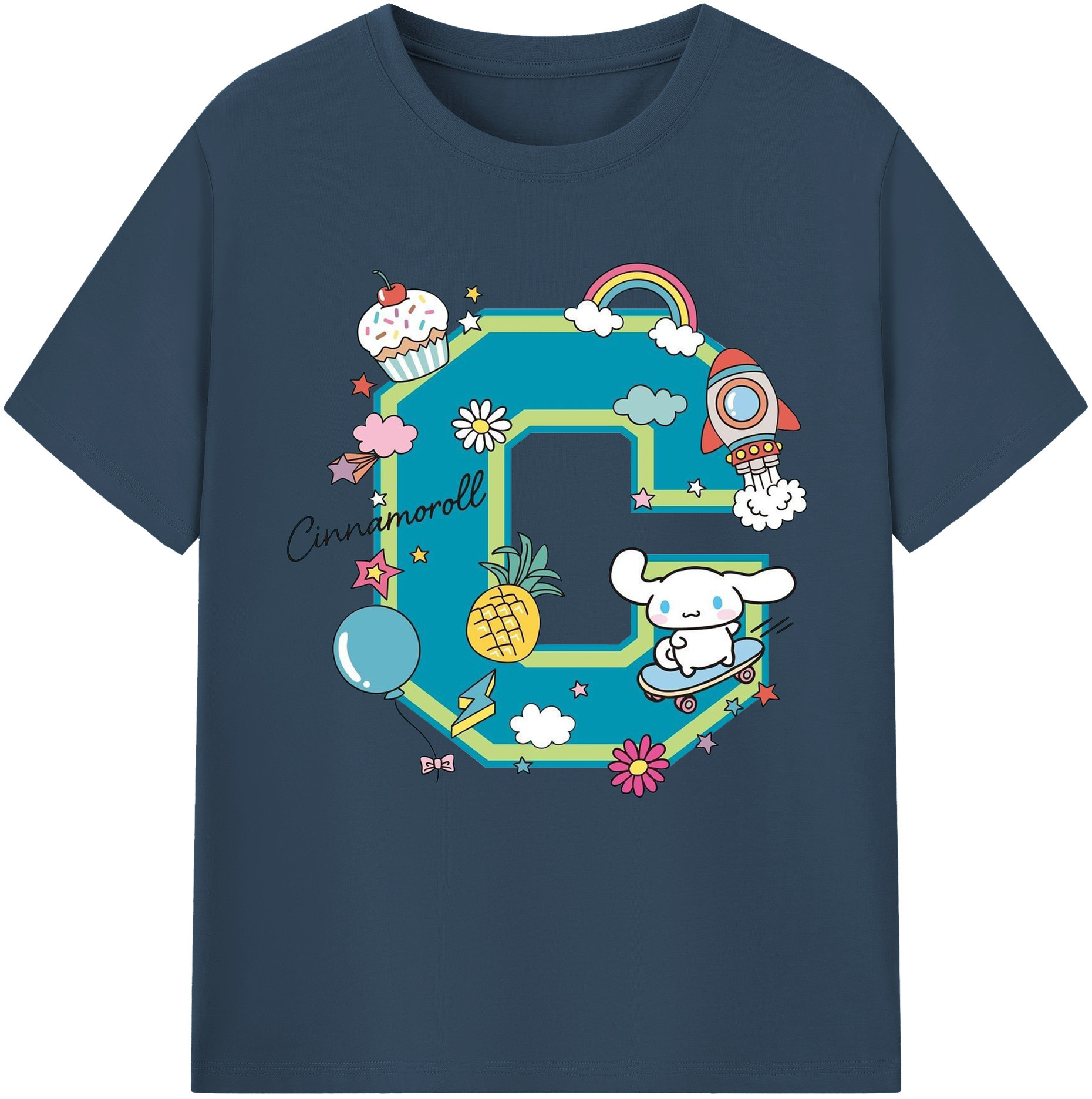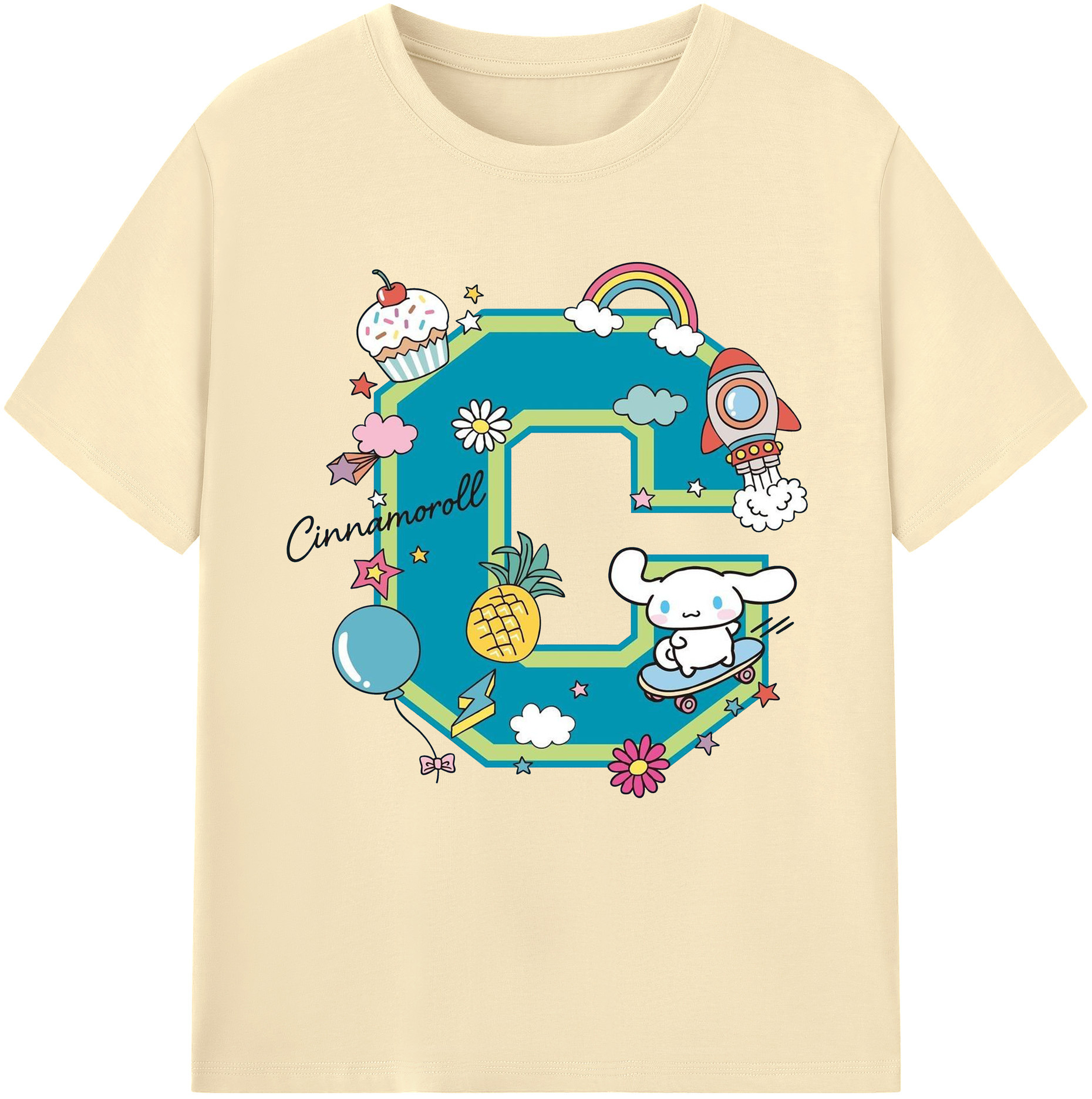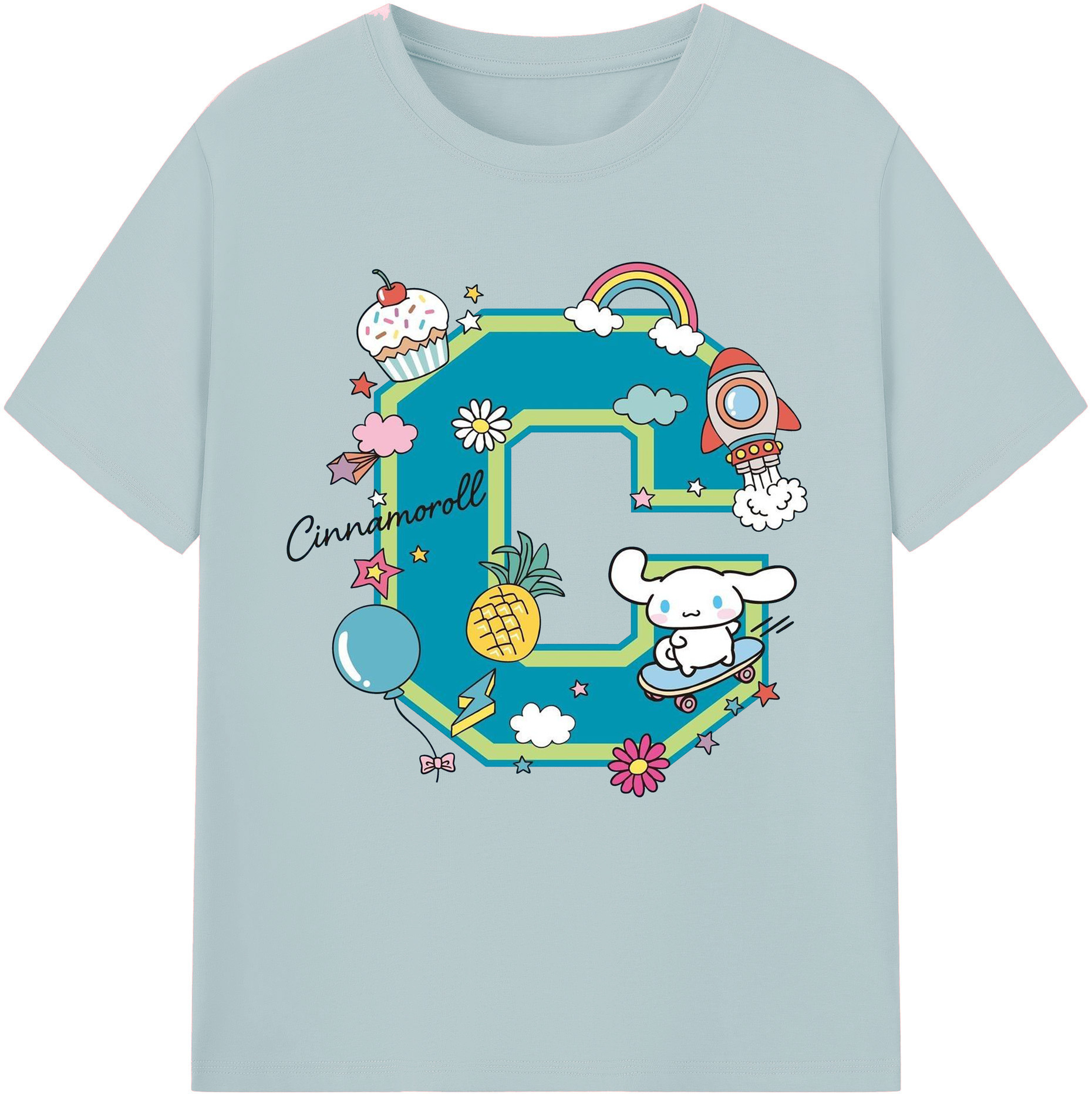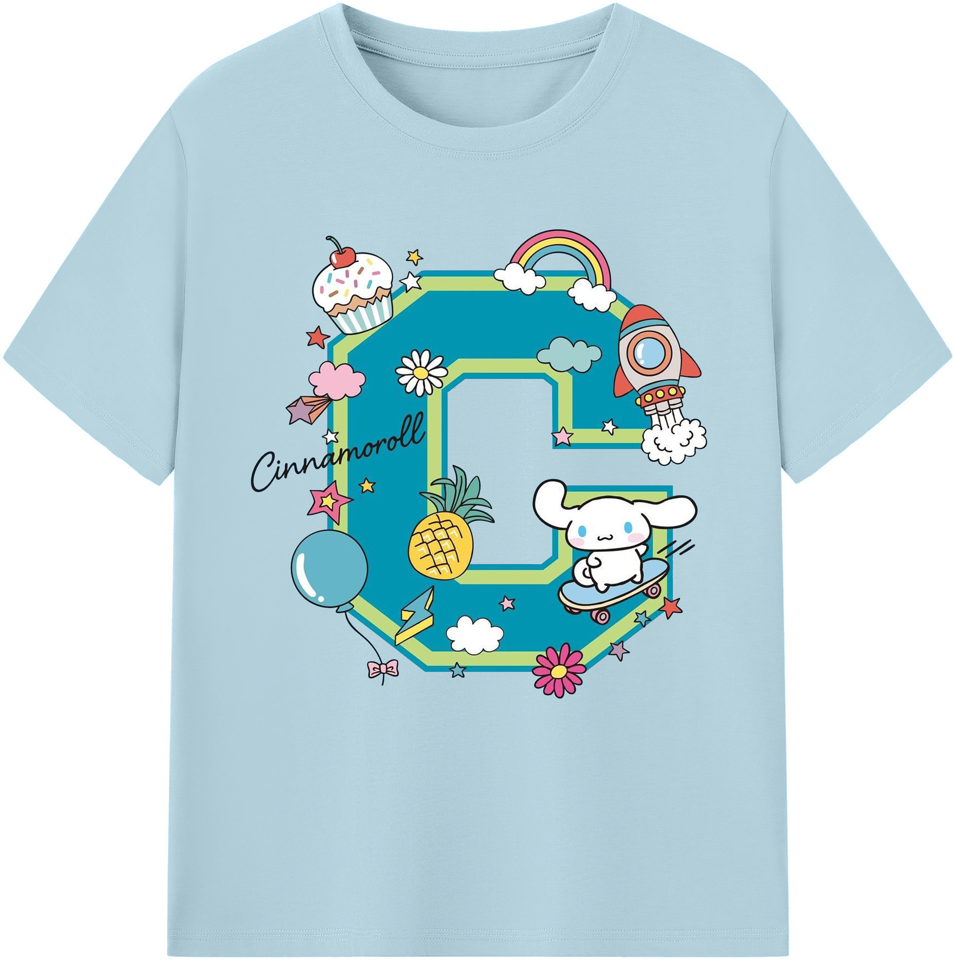 サンリオシナモロール - 綿100% ヴィンテージ風 半袖Tシャツ ・ フロントプリント ・ 柔らか肌触り ・ 通気性 快適 ・ スポーツ カジュアル 外出用