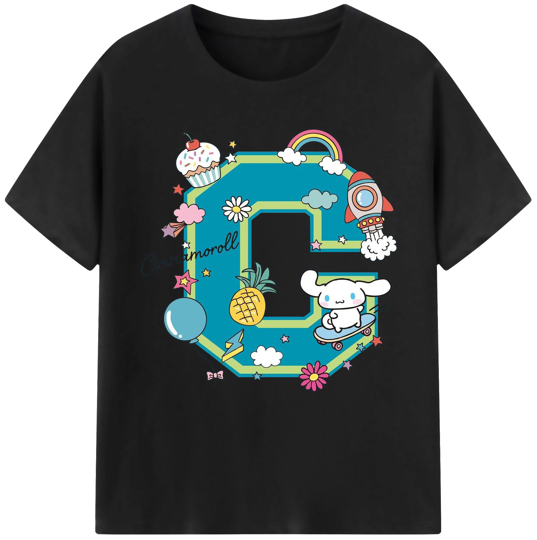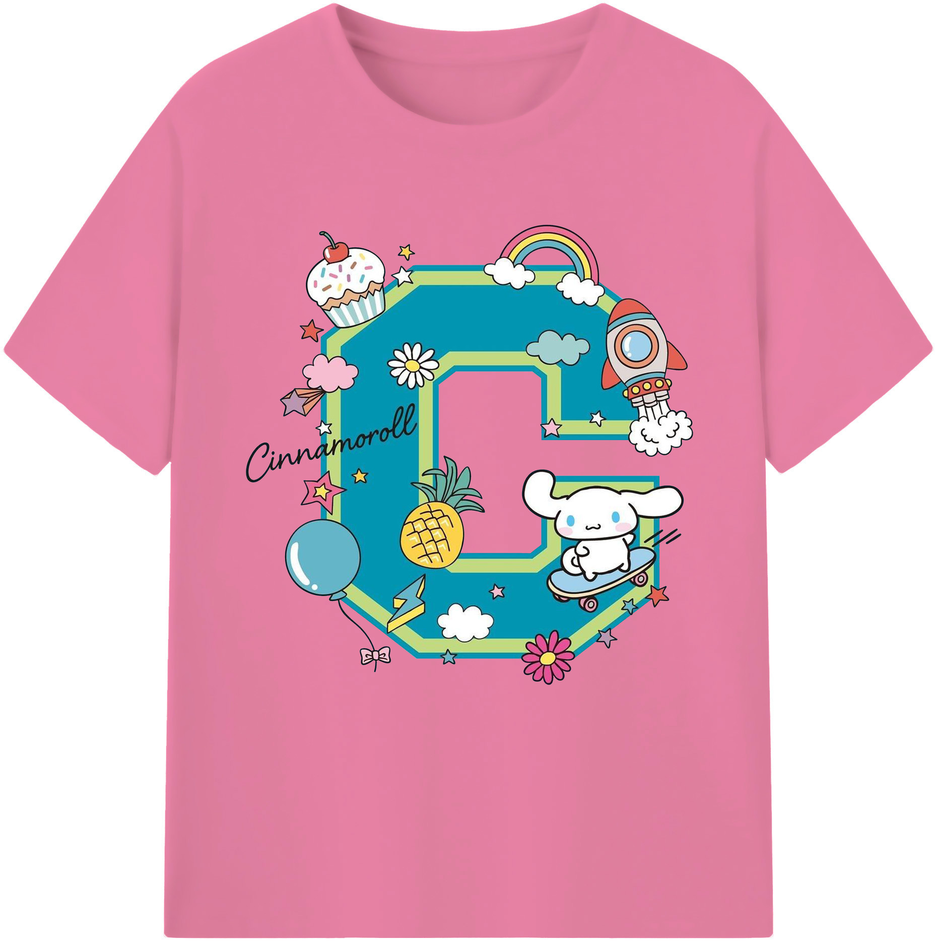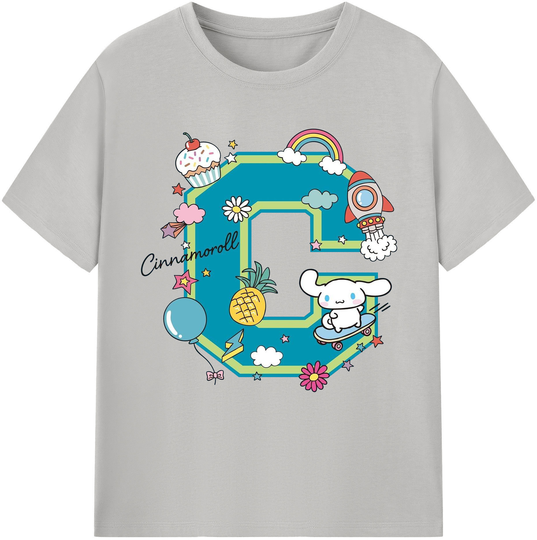 サンリオシナモロール - 綿100% ヴィンテージ風 半袖Tシャツ ・ フロントプリント ・ 柔らか肌触り ・ 通気性 快適 ・ スポーツ カジュアル 外出用
