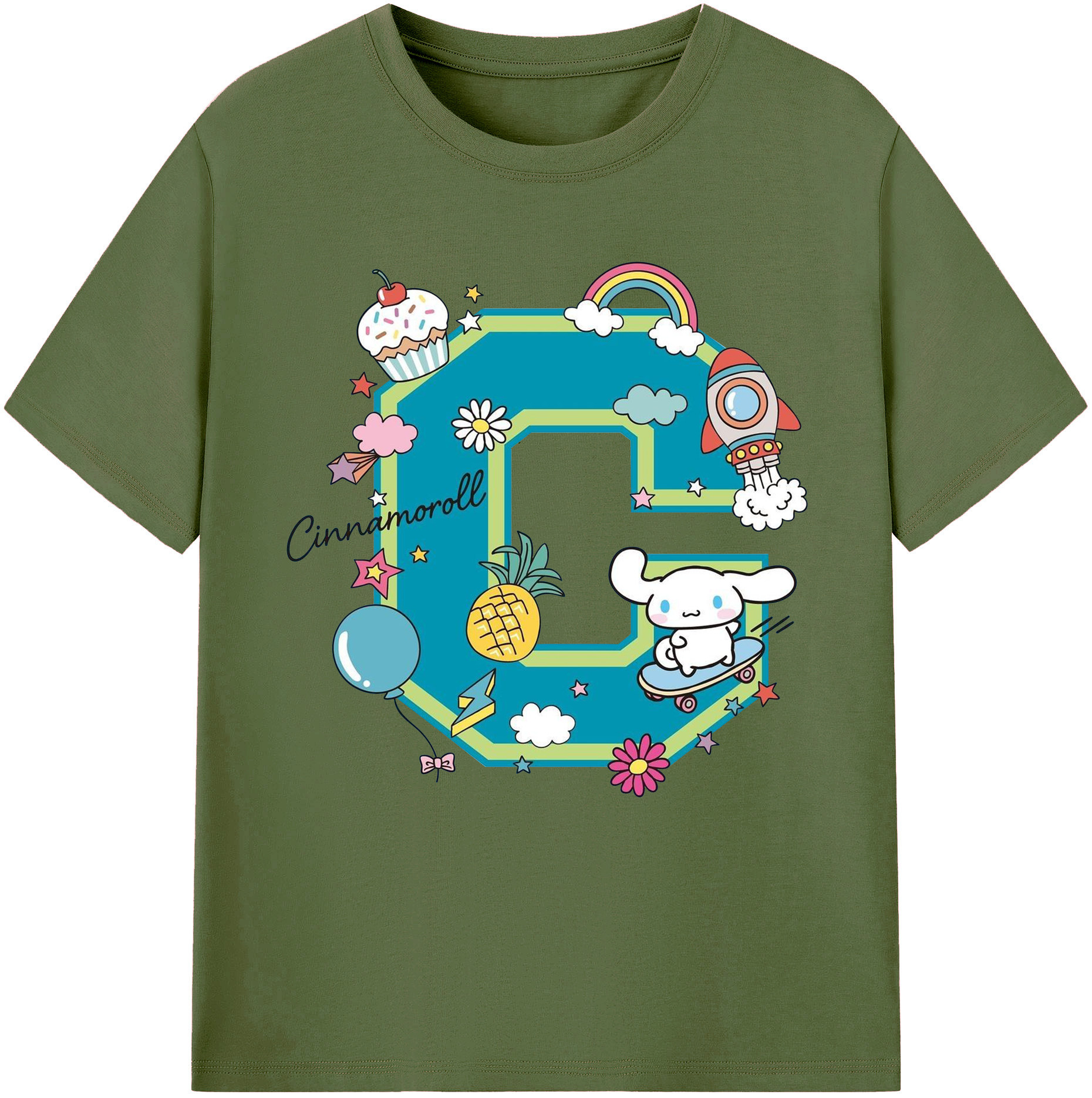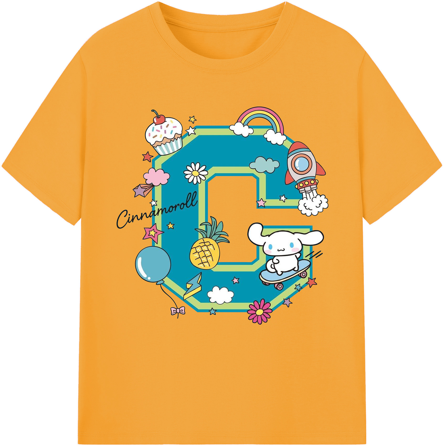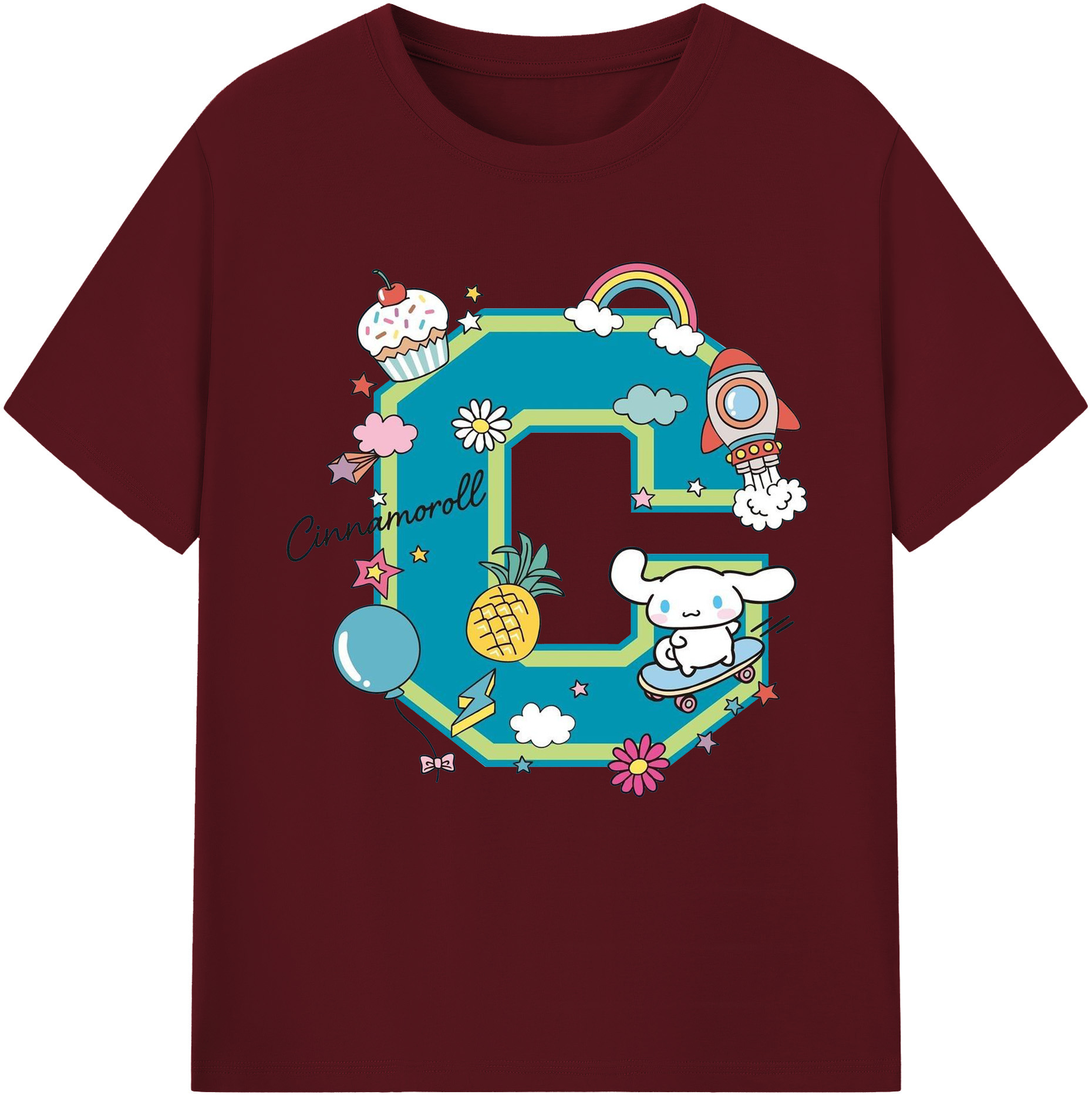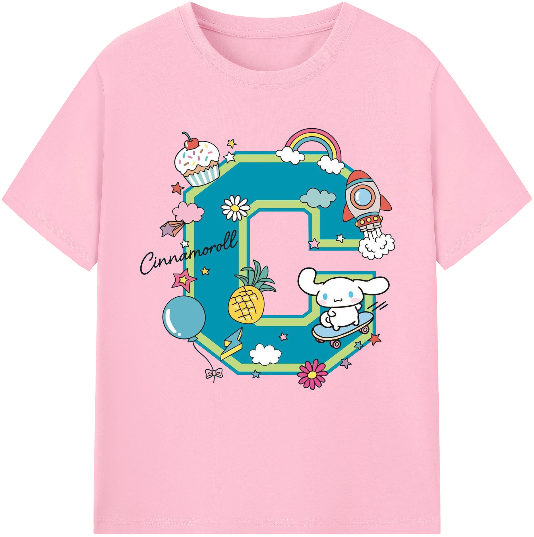 サンリオシナモロール - 綿100% ヴィンテージ風 半袖Tシャツ ・ フロントプリント ・ 柔らか肌触り ・ 通気性 快適 ・ スポーツ カジュアル 外出用