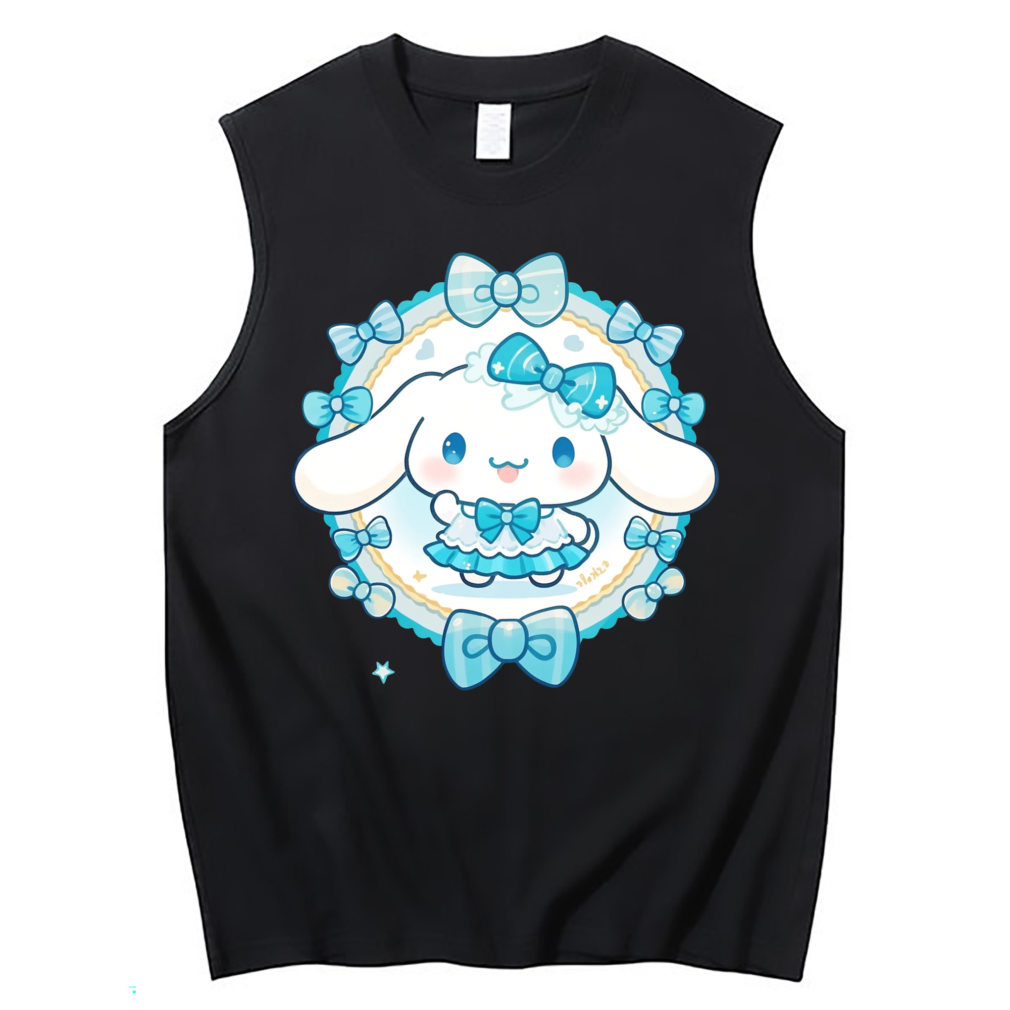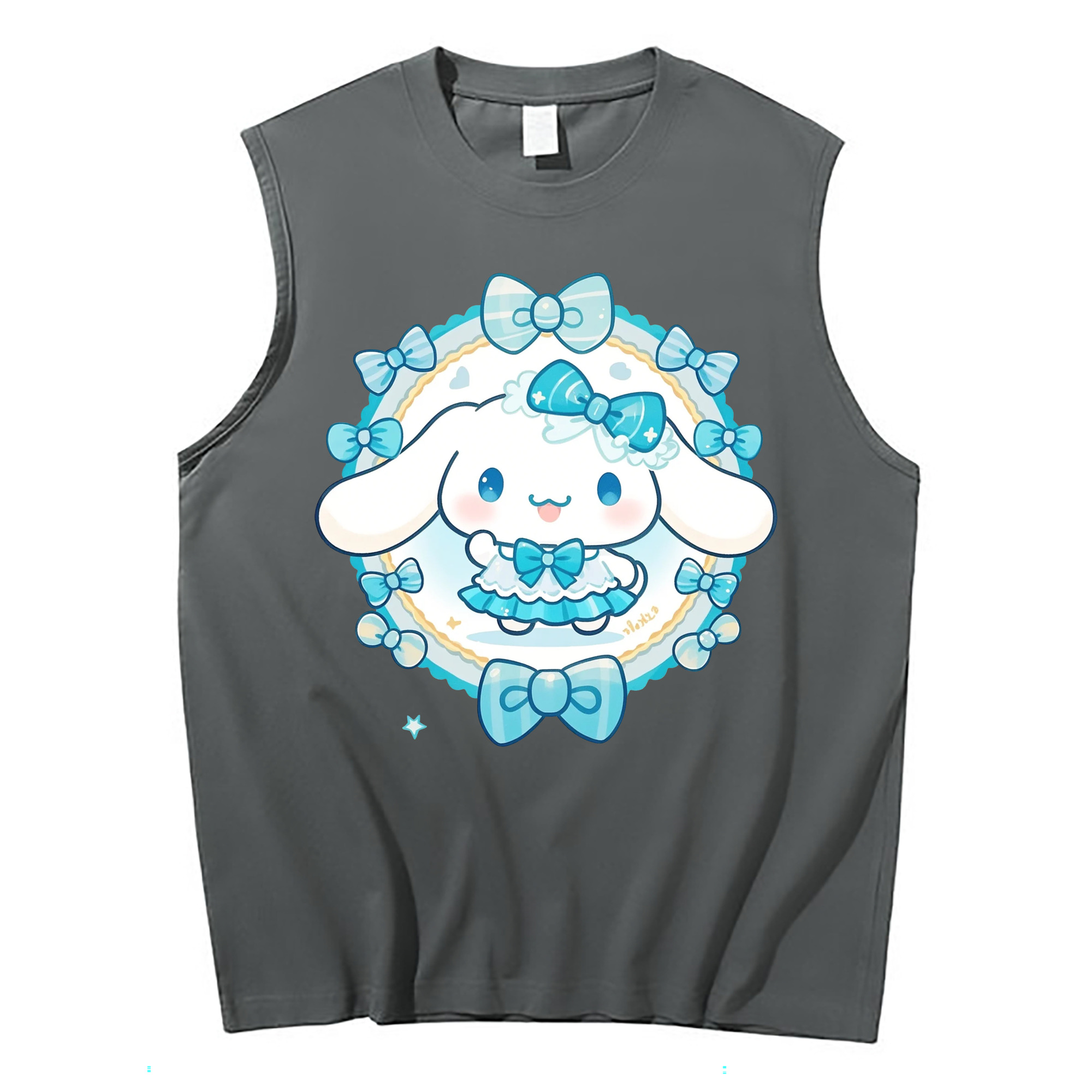 サンリオシナモロール - コットン100% タンクトップ ・ フロントプリント ・ タイトフィット ・ 快適 通気性 ・ スポーツ カジュアル 散歩用