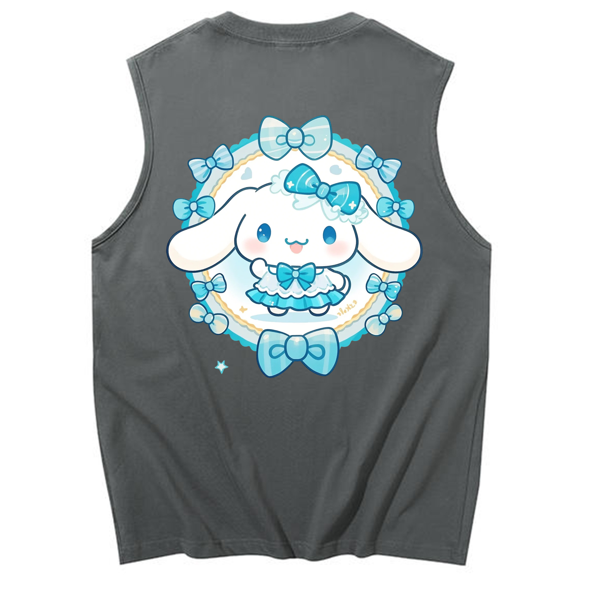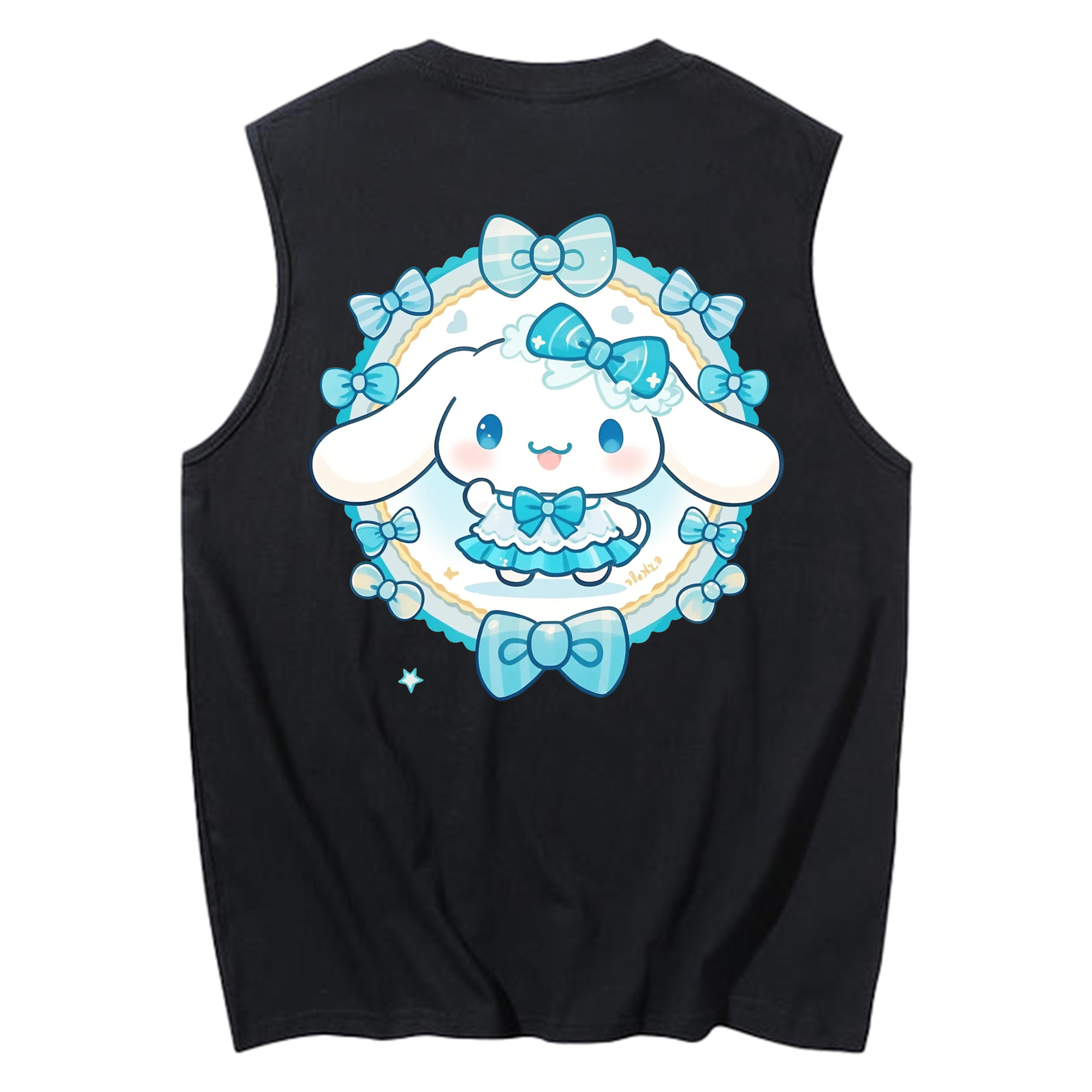サンリオシナモロール - コットン100% タンクトップ ・ 背面プリント ・ タイトシルエット ・ 快適 通気性 ・ スポーツ カジュアル 散歩用