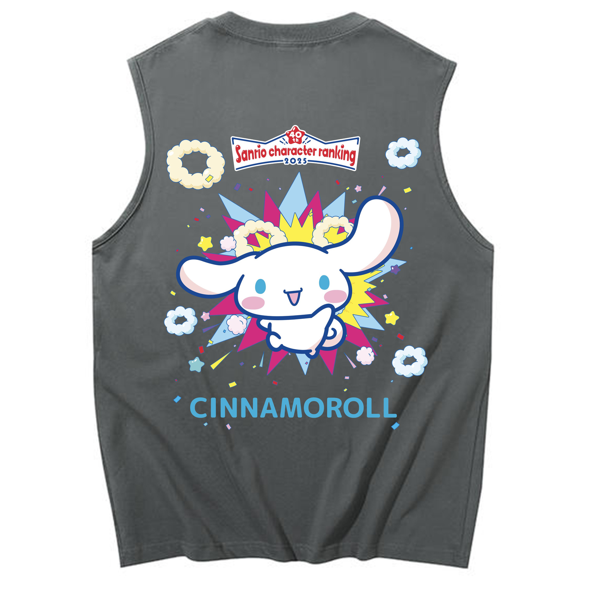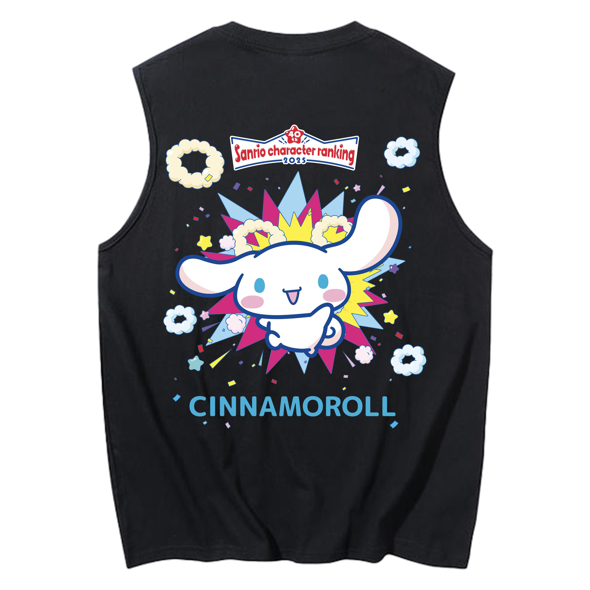 サンリオシナモロール - コットン100% タンクトップ ・ 背面プリント ・ タイトシルエット ・ 快適 通気性 ・ スポーツ カジュアル 散歩用