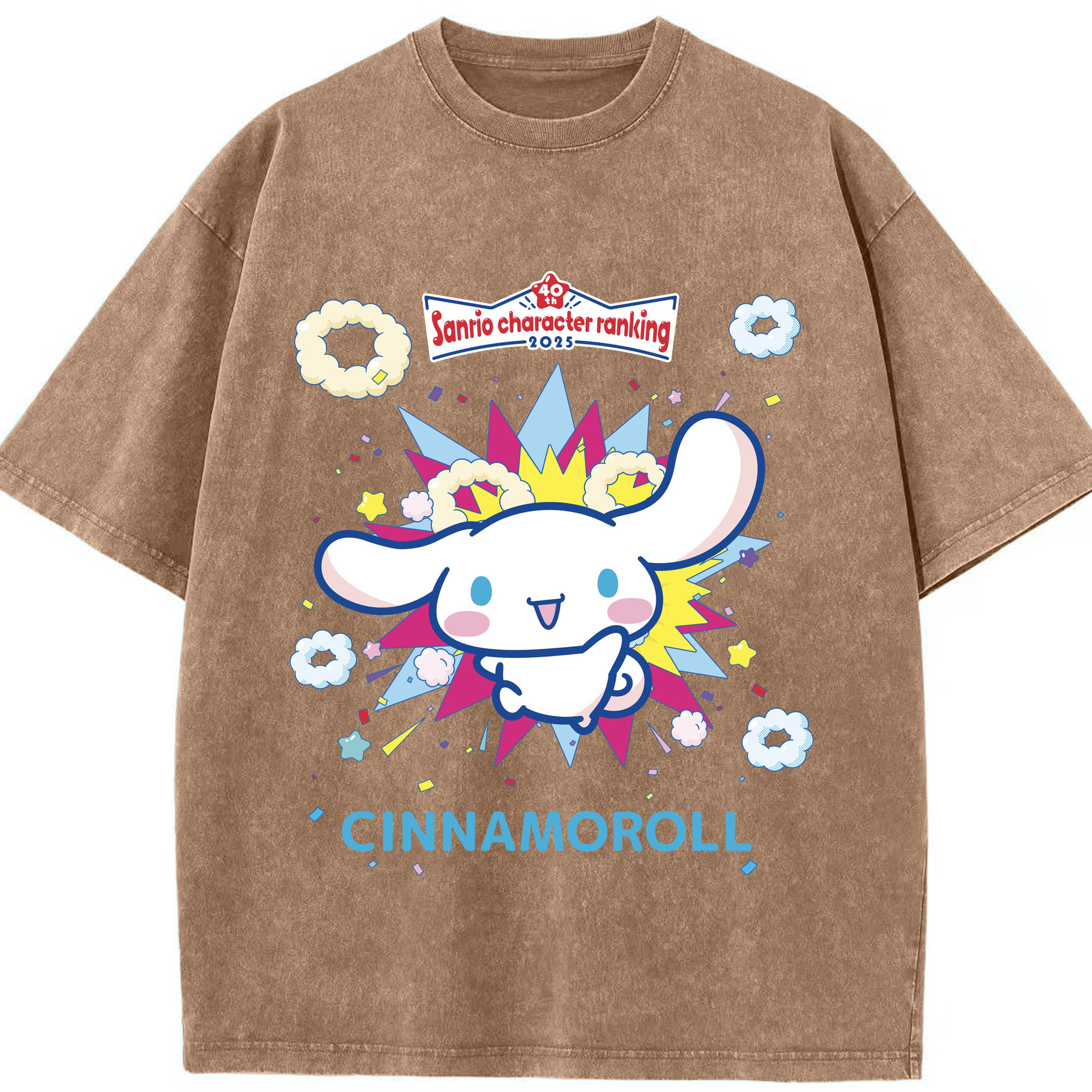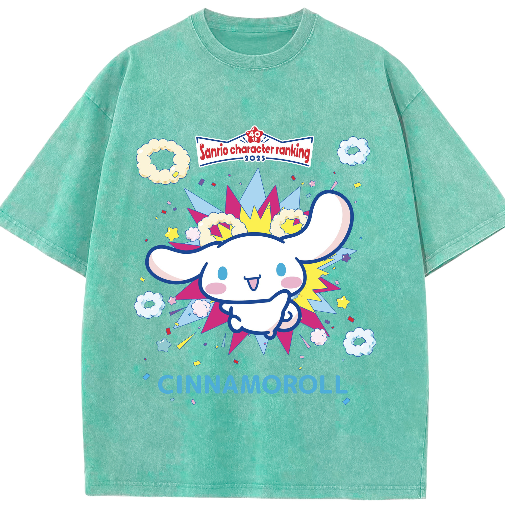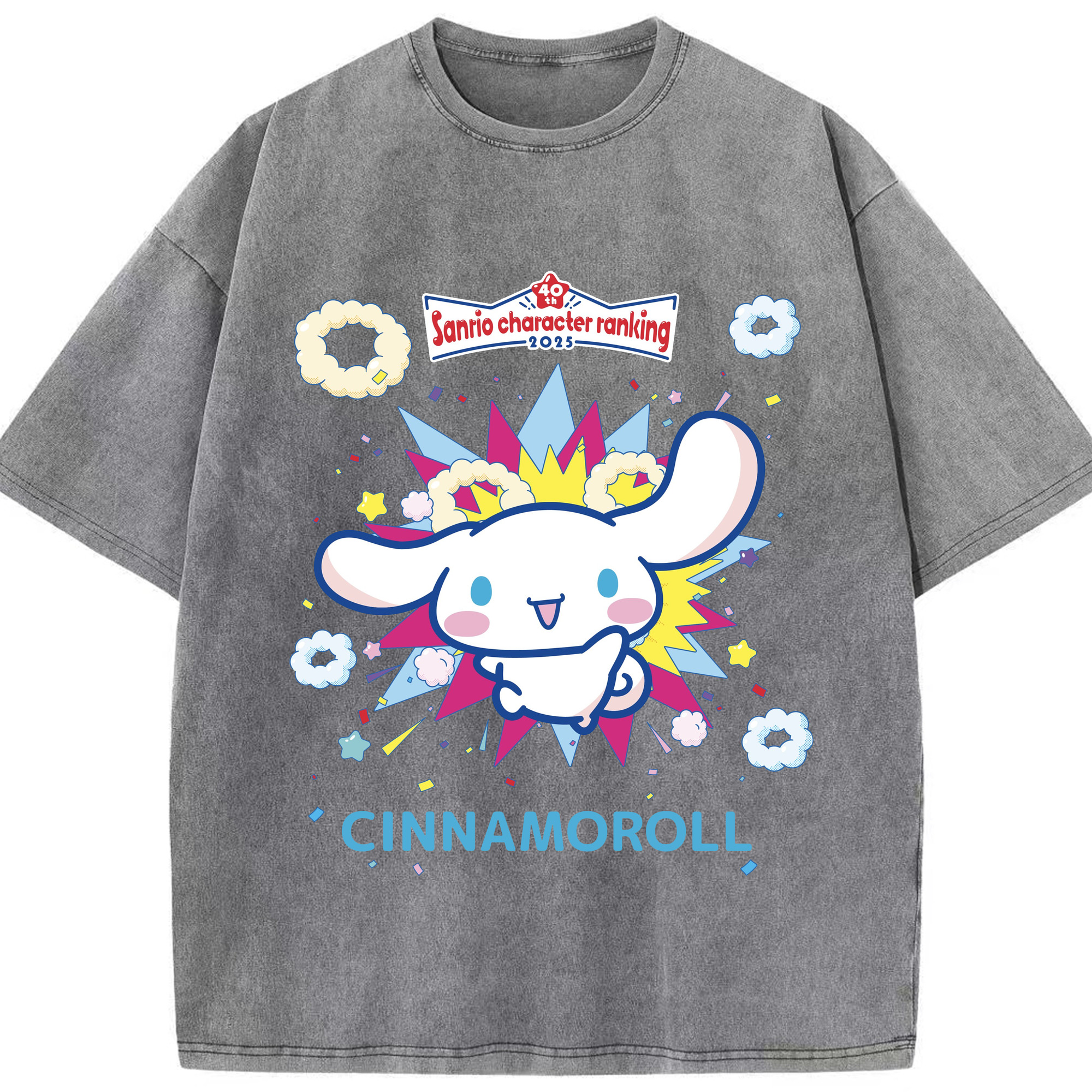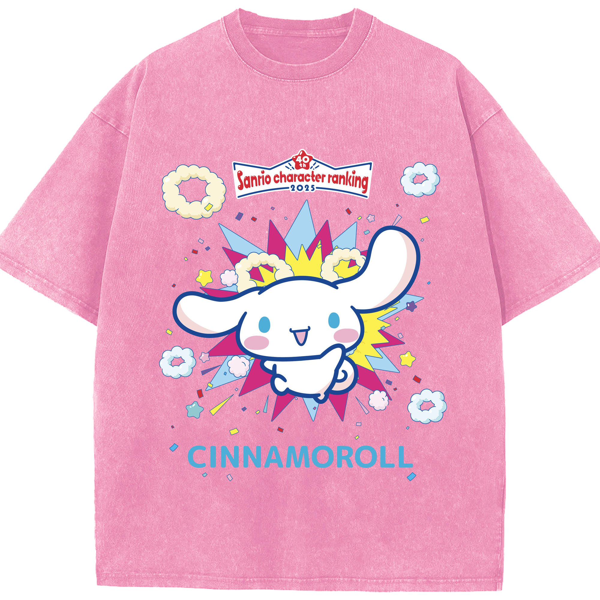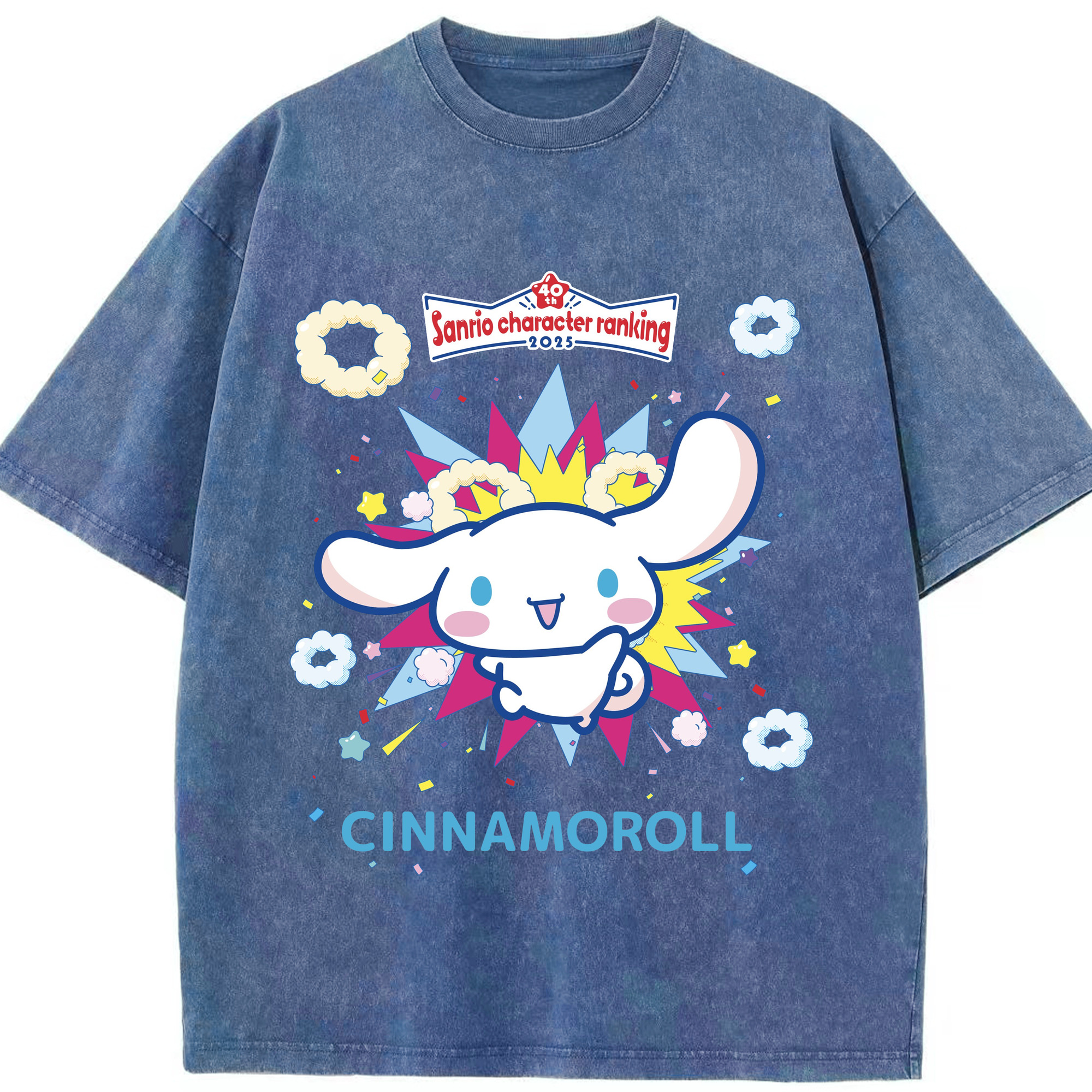 サンリオシナモロール - 綿100% ヴィンテージ風 半袖Tシャツ ・ フロントプリント ・ 柔らか肌触り ・ 通気性 快適 ・ スポーツ カジュアル 外出用