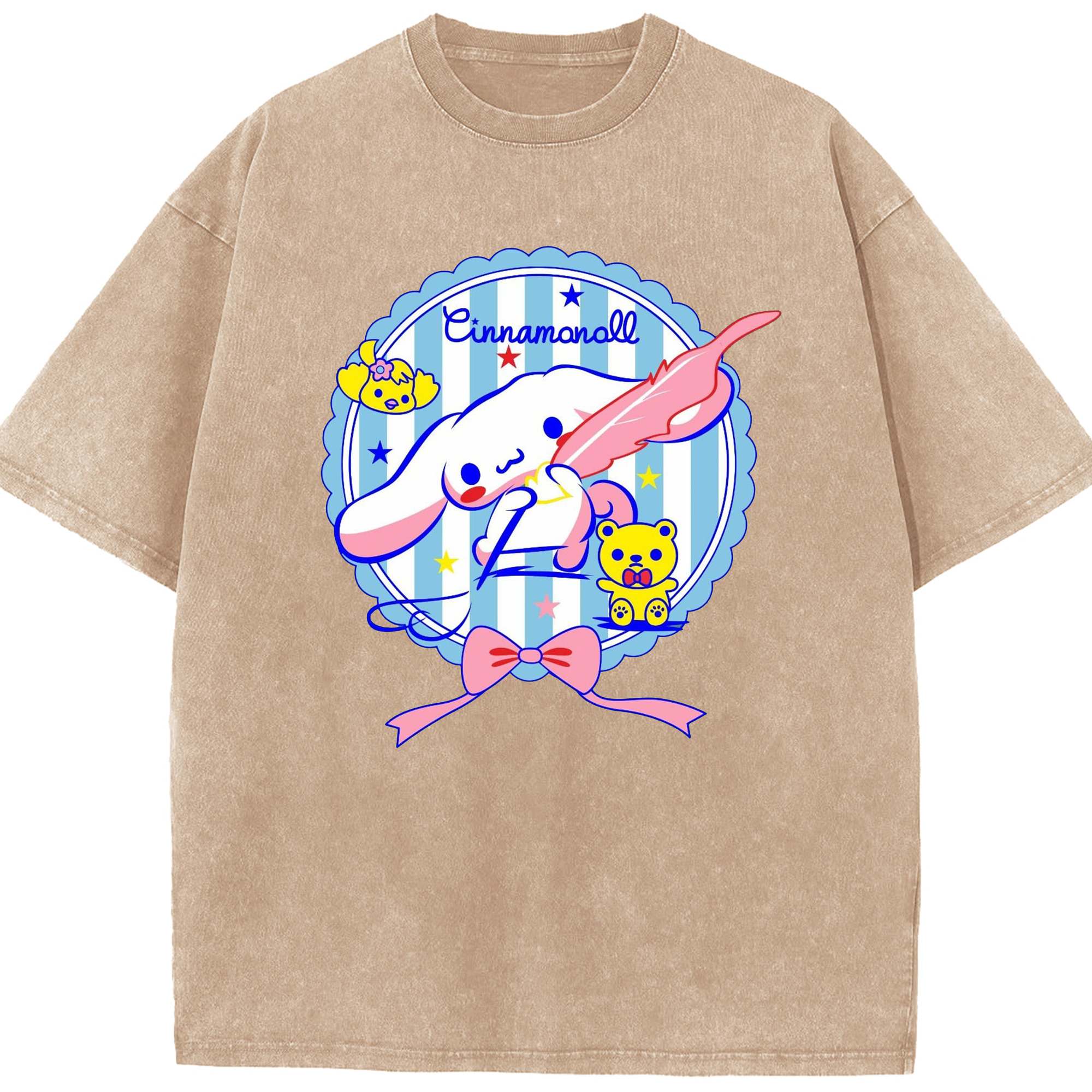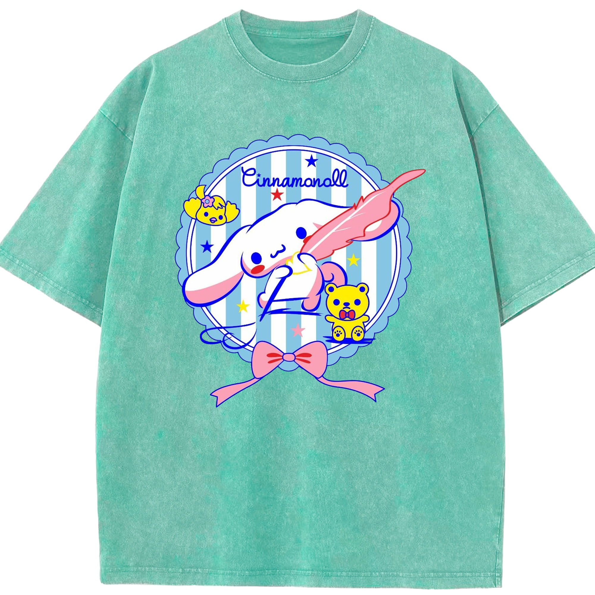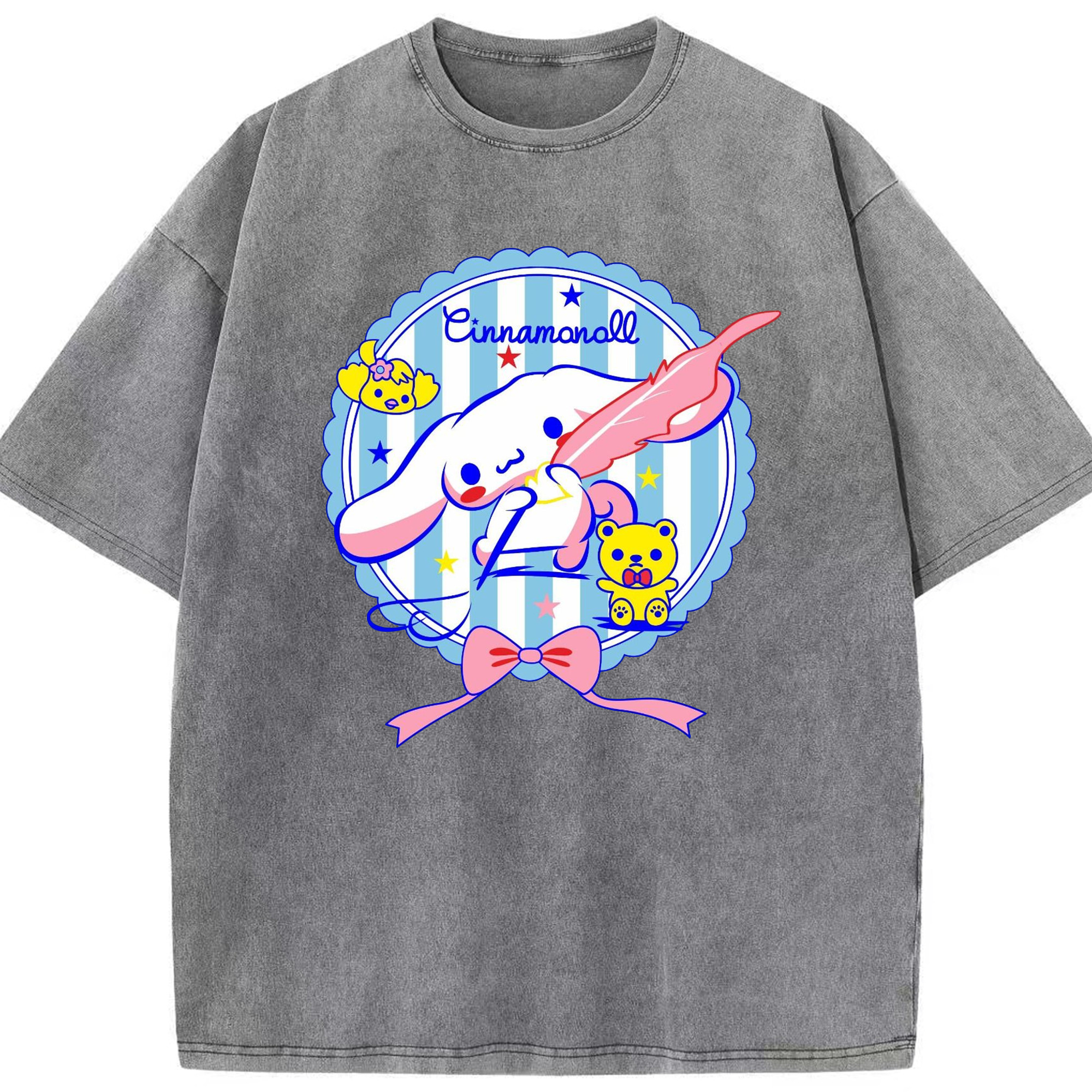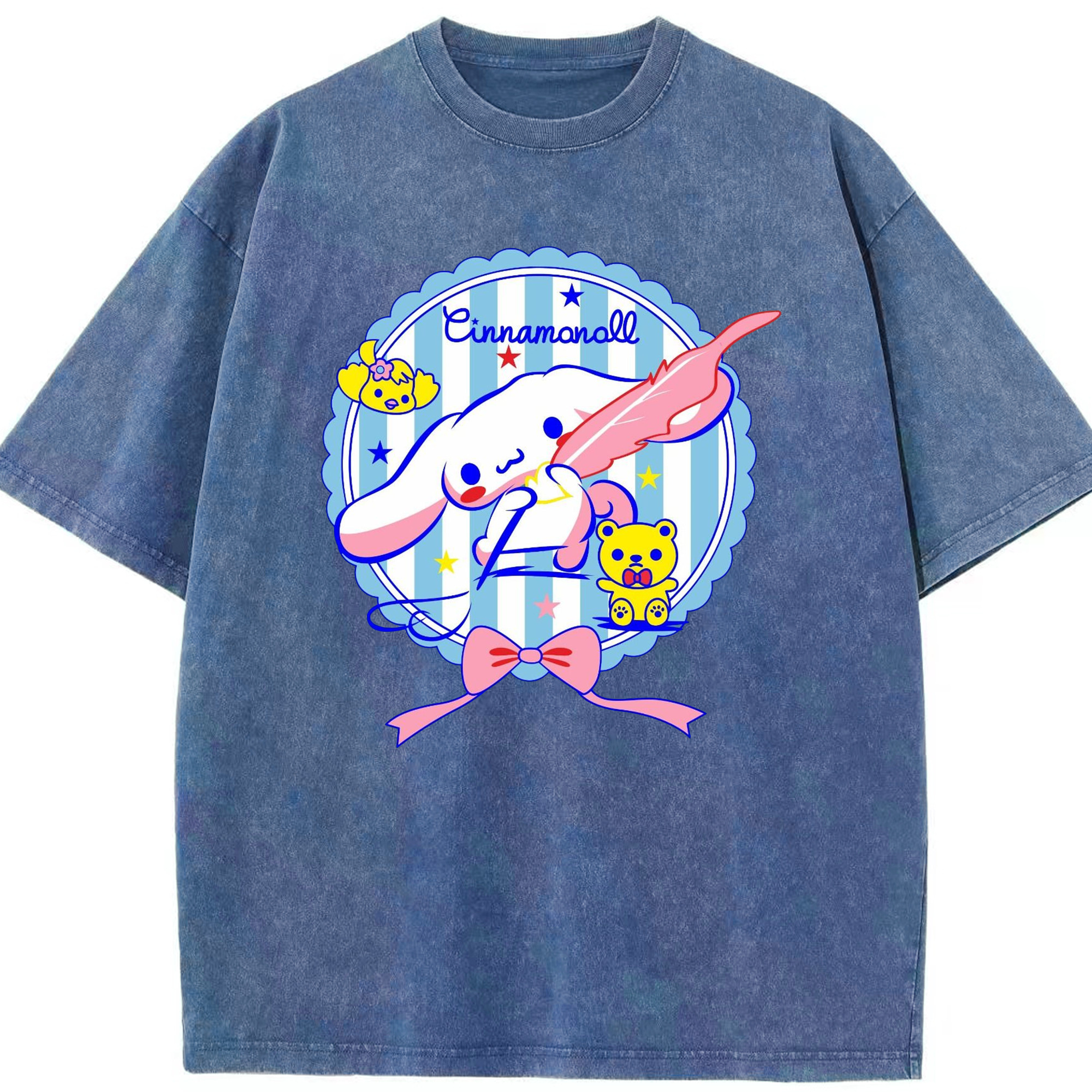 サンリオシナモロール - 綿100% ヴィンテージ風 半袖Tシャツ ・ フロントプリント ・ 柔らか肌触り ・ 通気性 快適 ・ スポーツ カジュアル 外出用