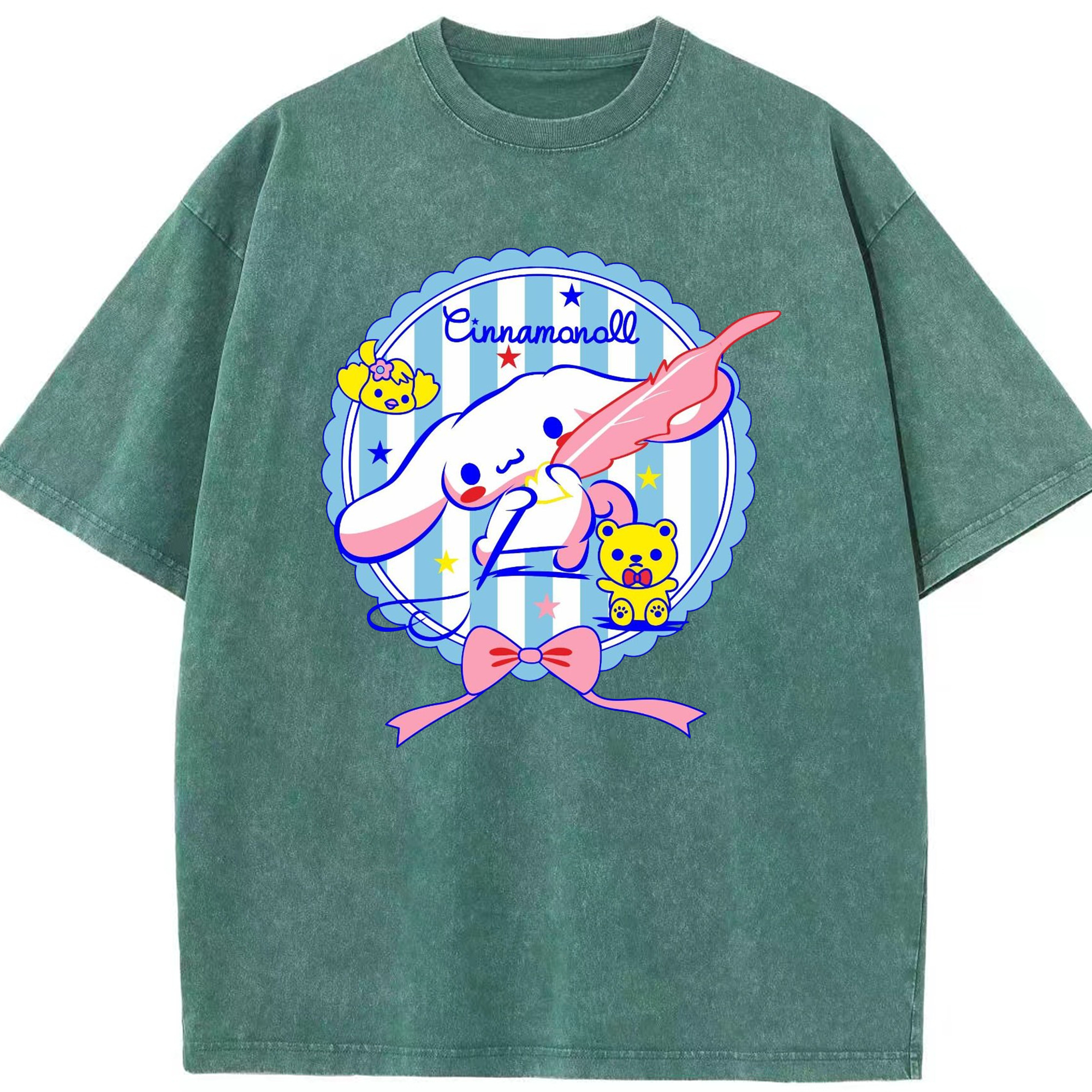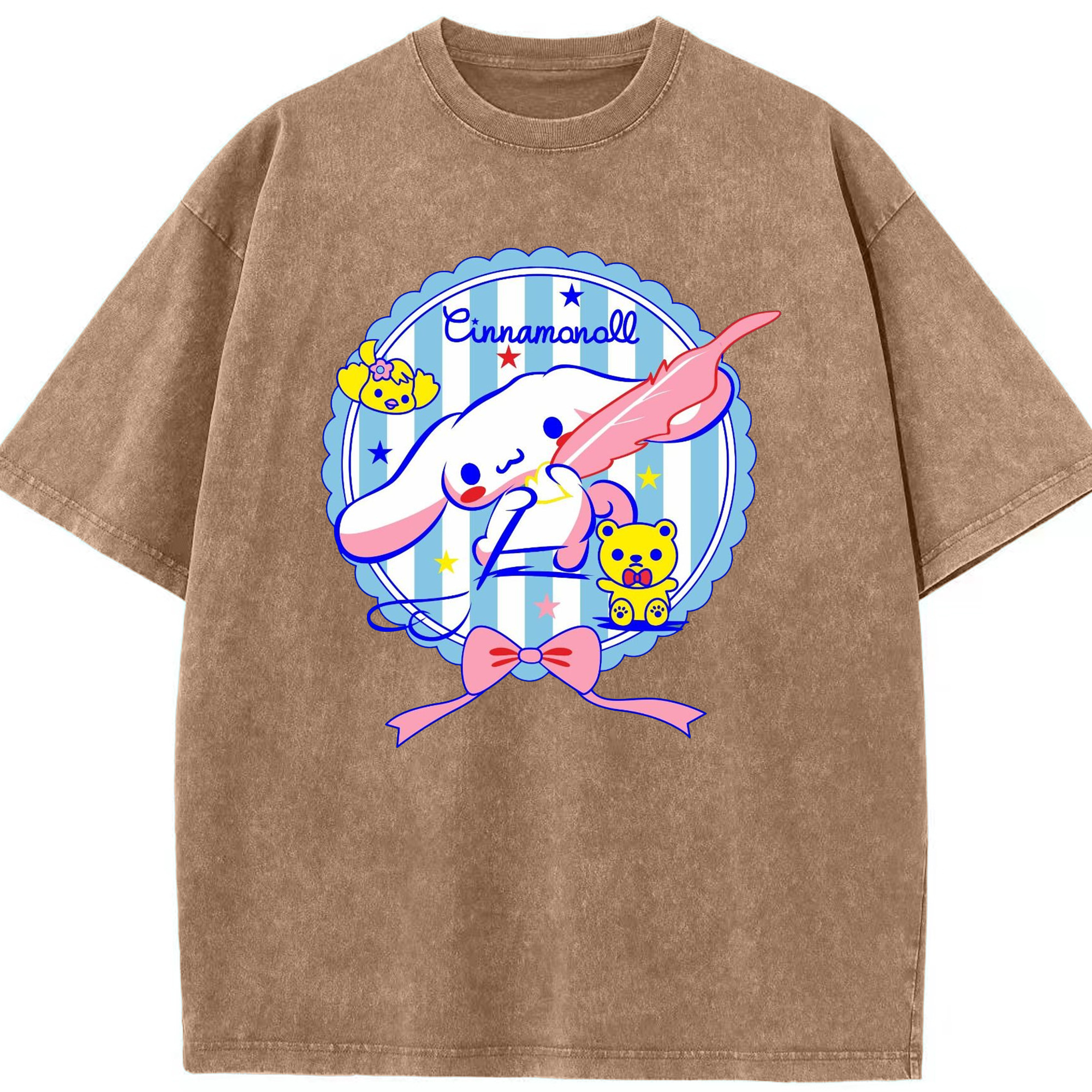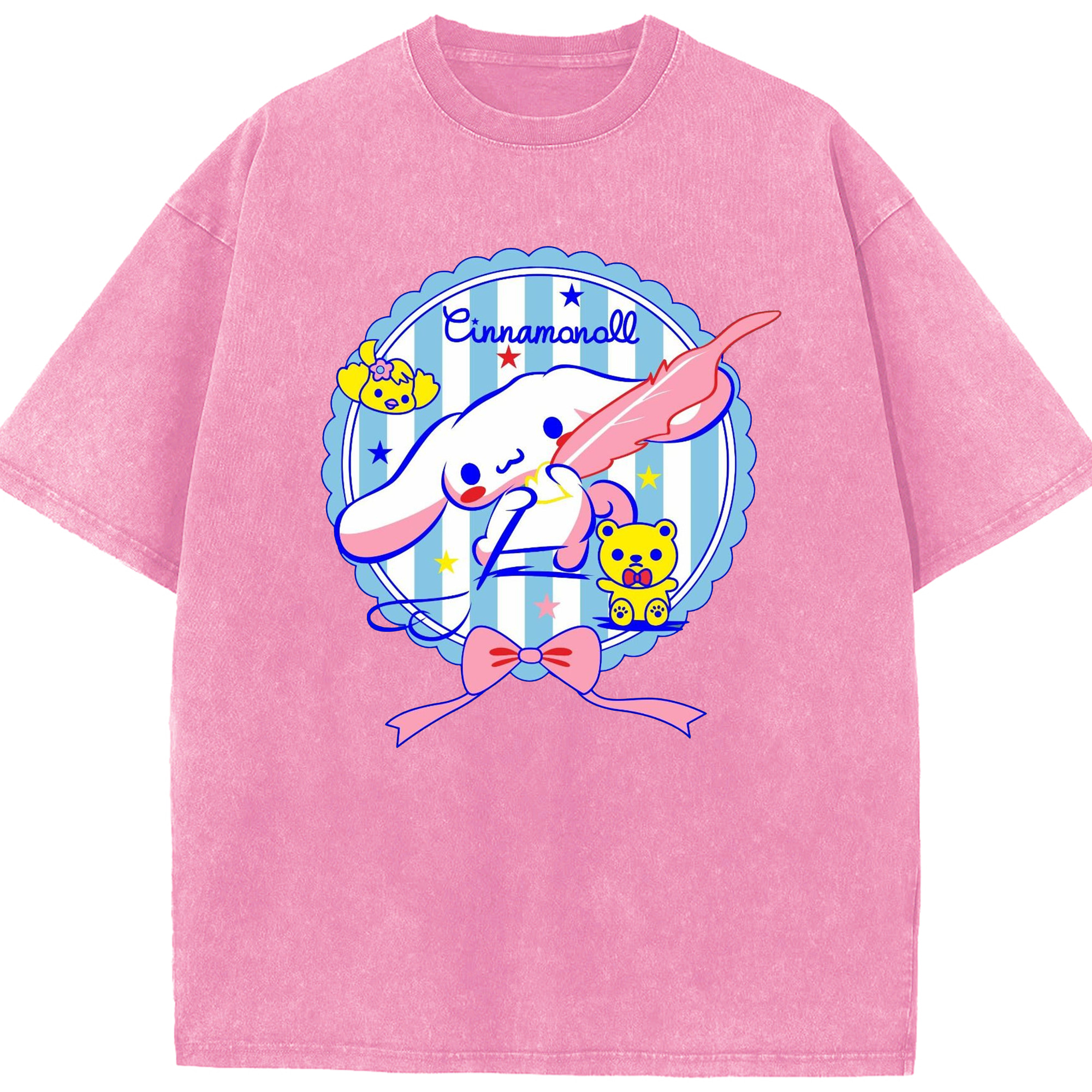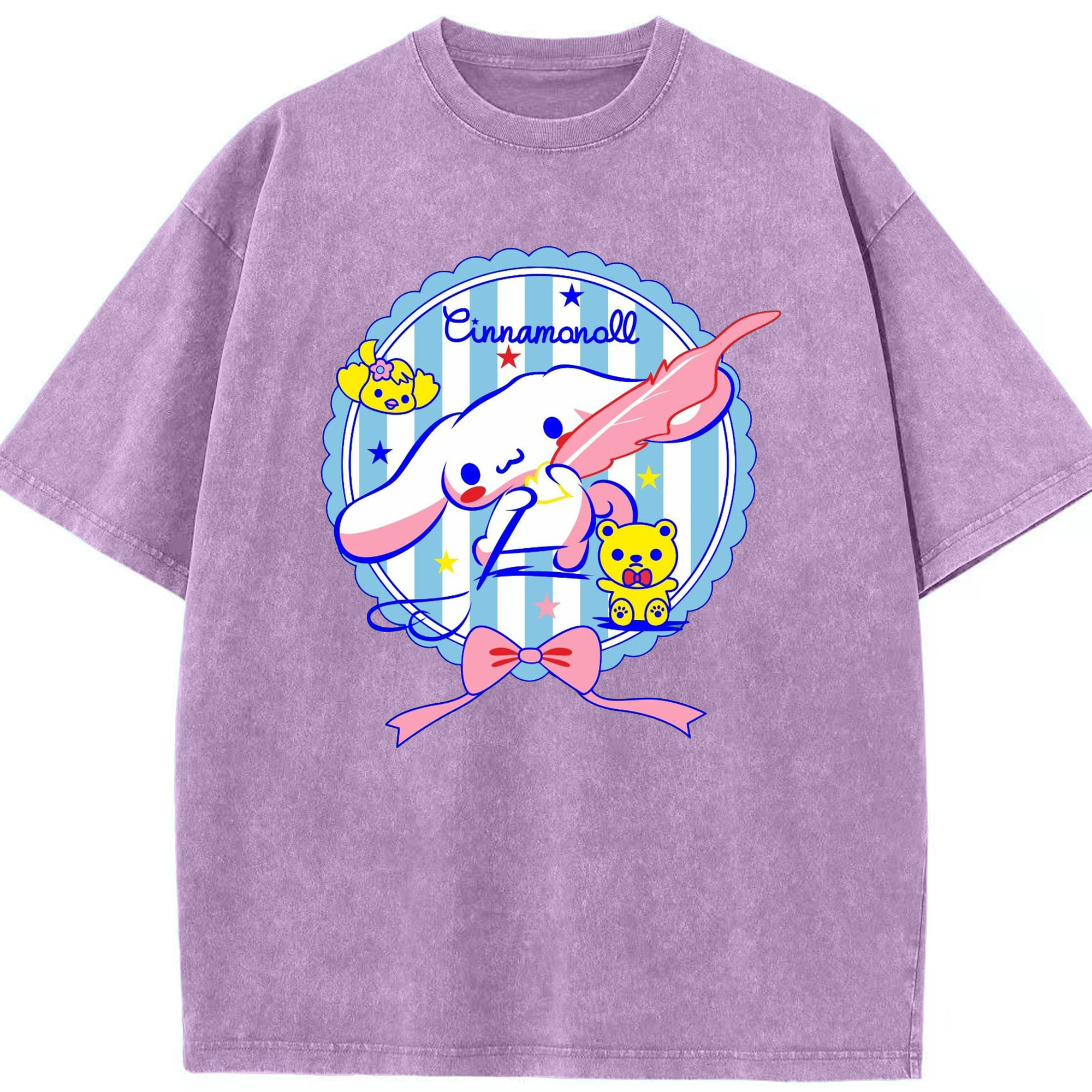 サンリオシナモロール - 綿100% ヴィンテージ風 半袖Tシャツ ・ フロントプリント ・ 柔らか肌触り ・ 通気性 快適 ・ スポーツ カジュアル 外出用