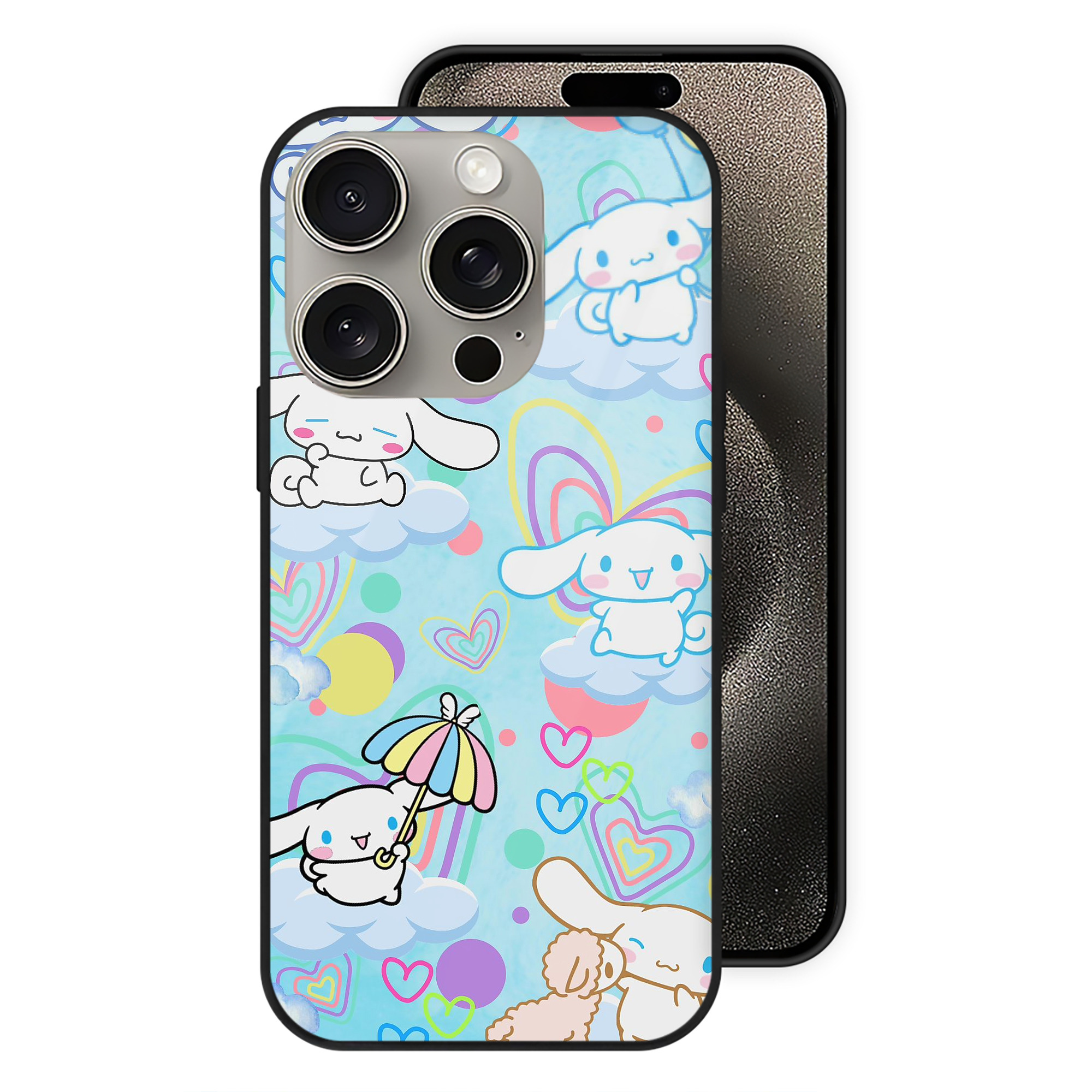 サンリオシナモロール - IPhone15Pro対応 ・ スマホケース ・ 背面ガラス ・ TPU+強化ガラス ・ 耐衝撃 ・ 黄変防止 ・ ワイヤレス充電対応 ・ 3D立体ボタン