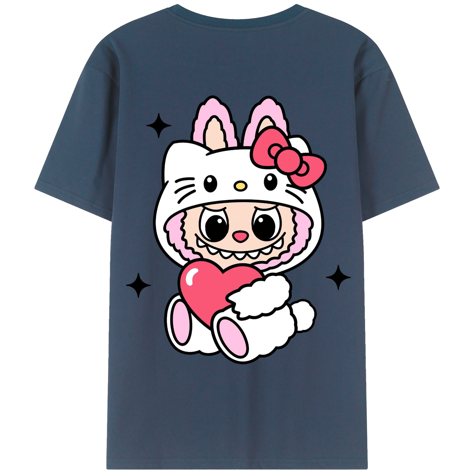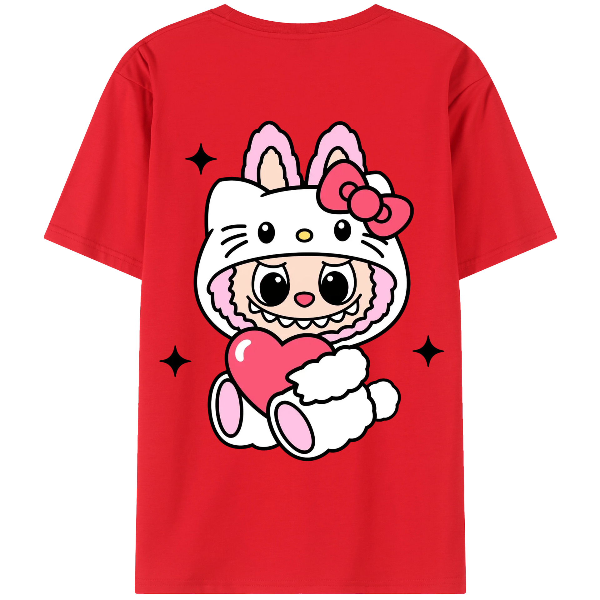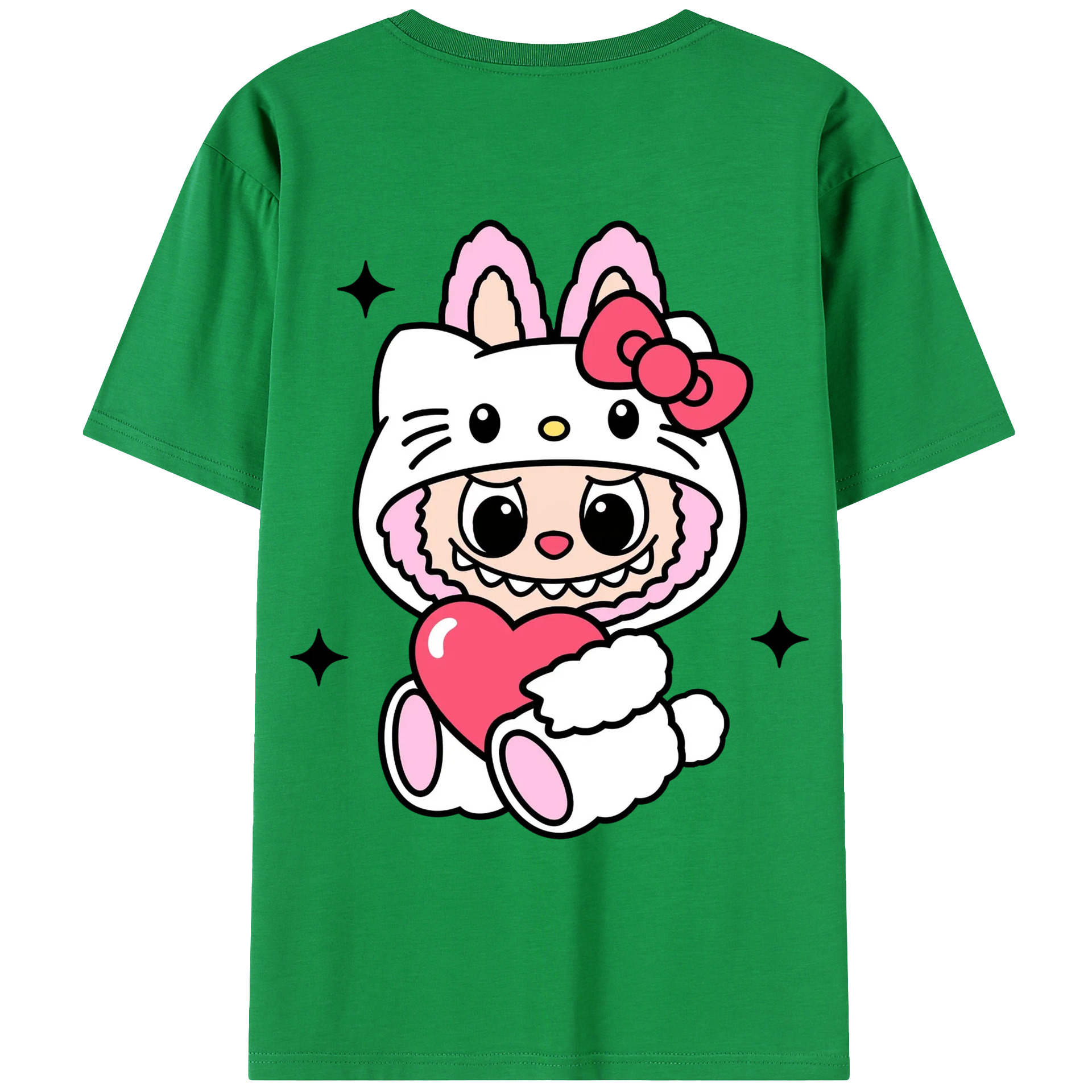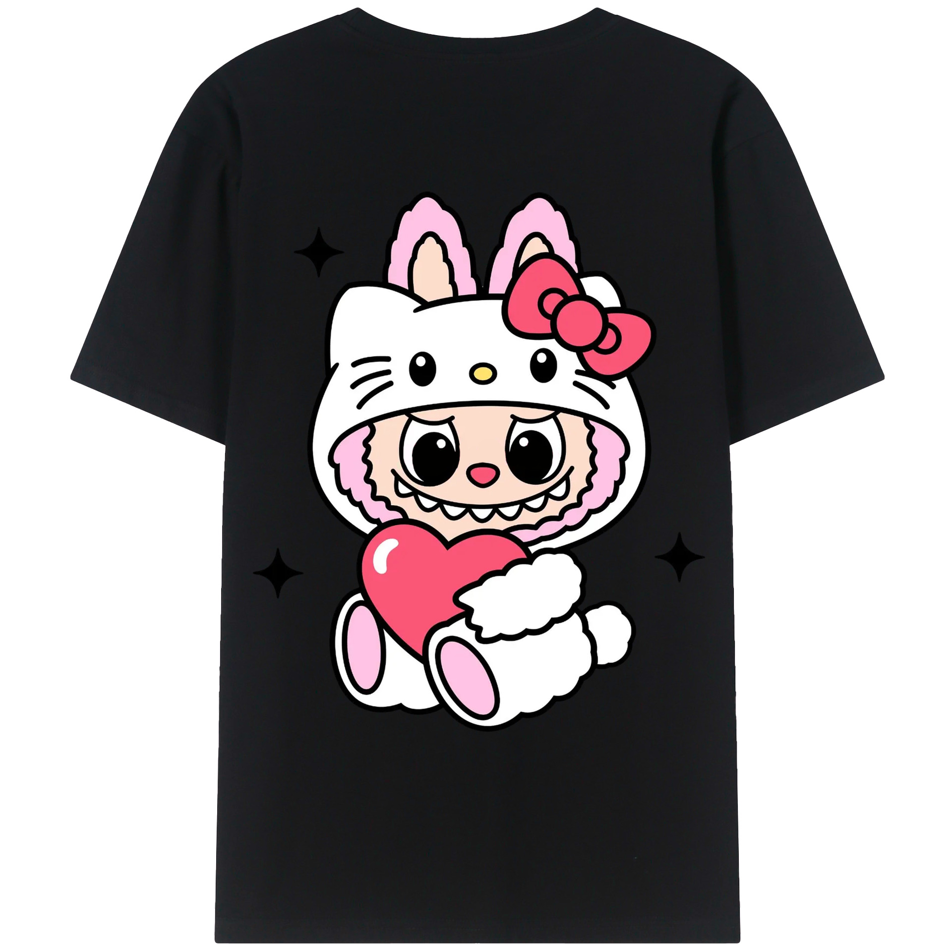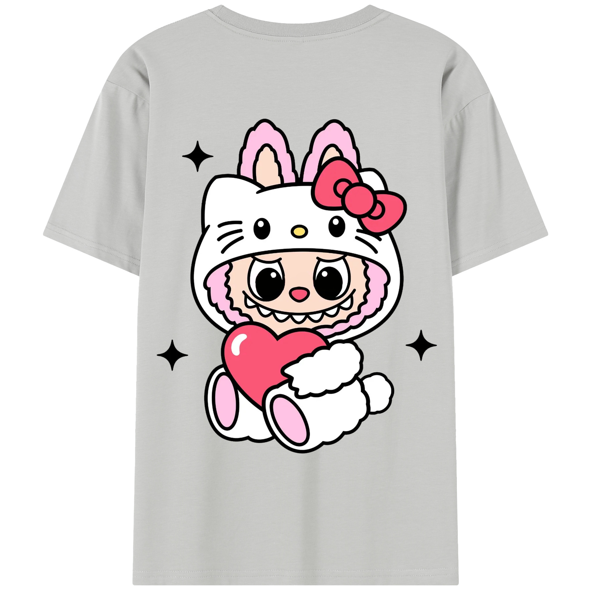 サンリオハローキティ&LABUBU ラブブ - 綿100% ヴィンテージ風 半袖Tシャツ ・ 背面プリント ・ 柔らか肌触り ・ 通気性 快適 ・ スポーツ カジュアル 外出用