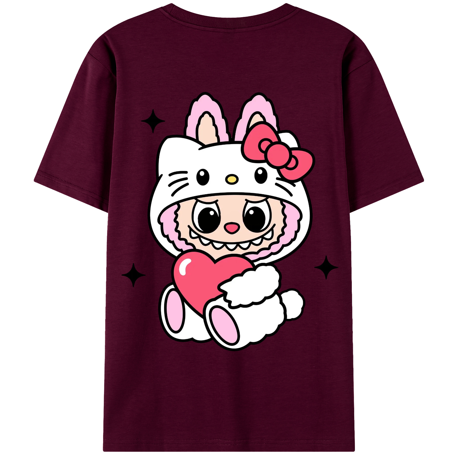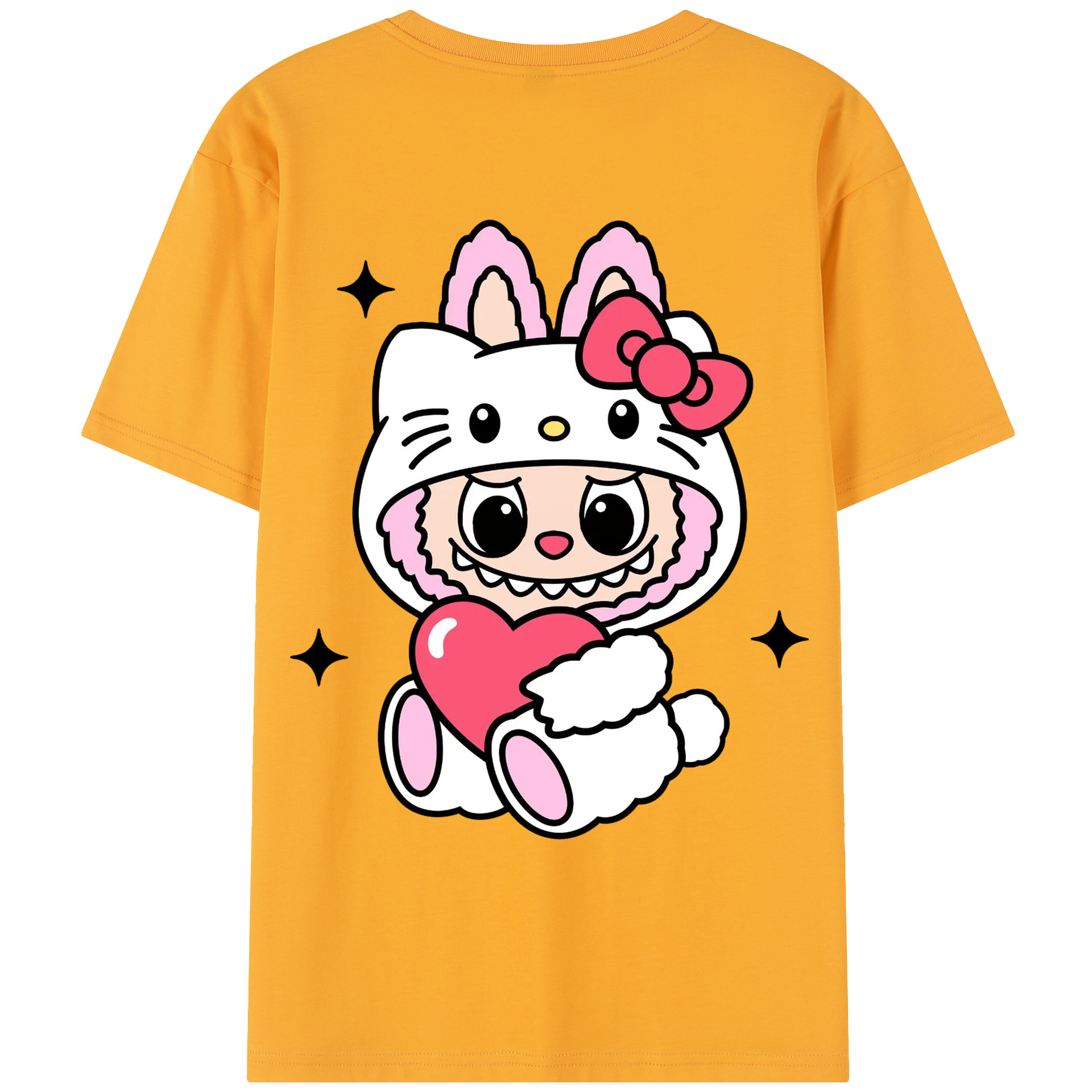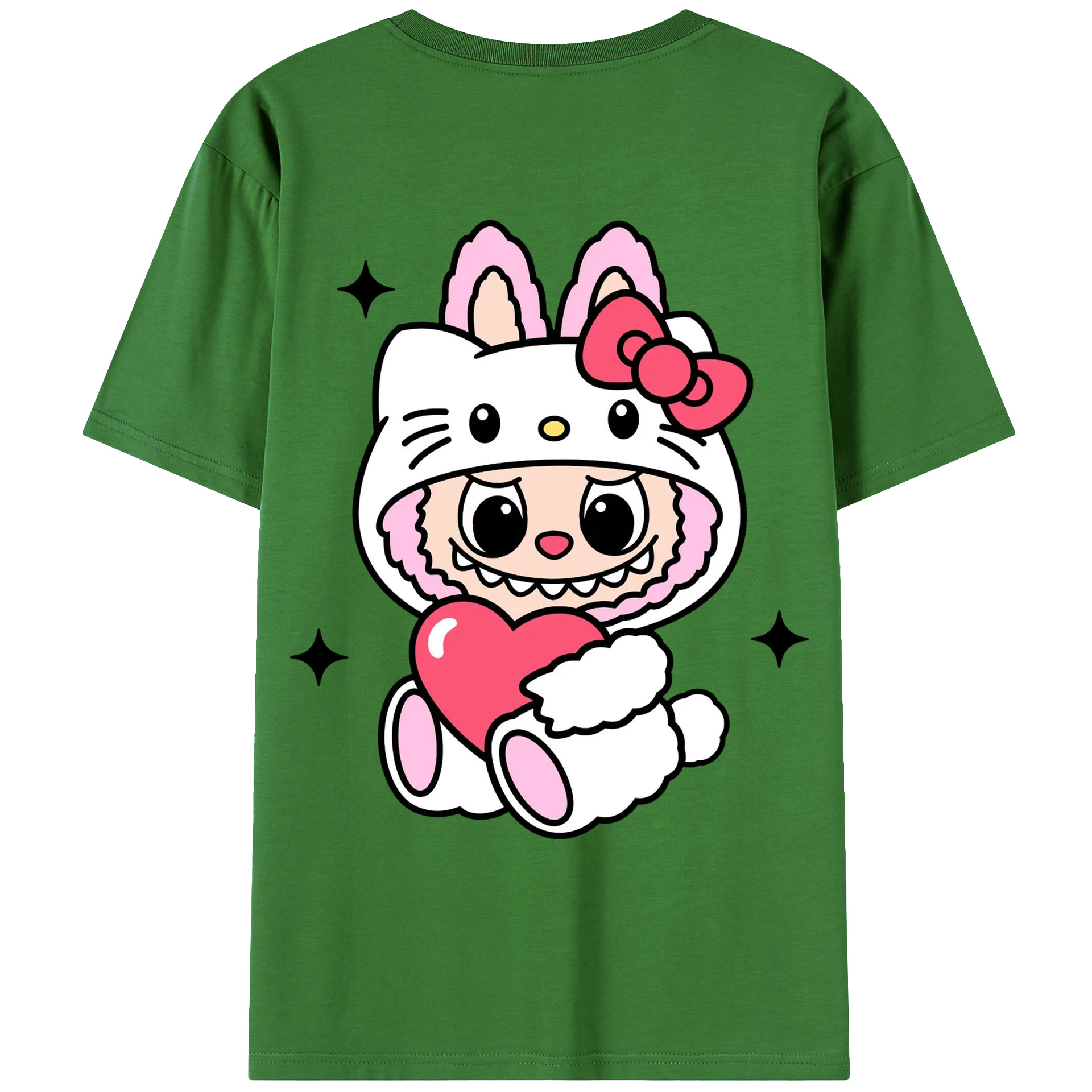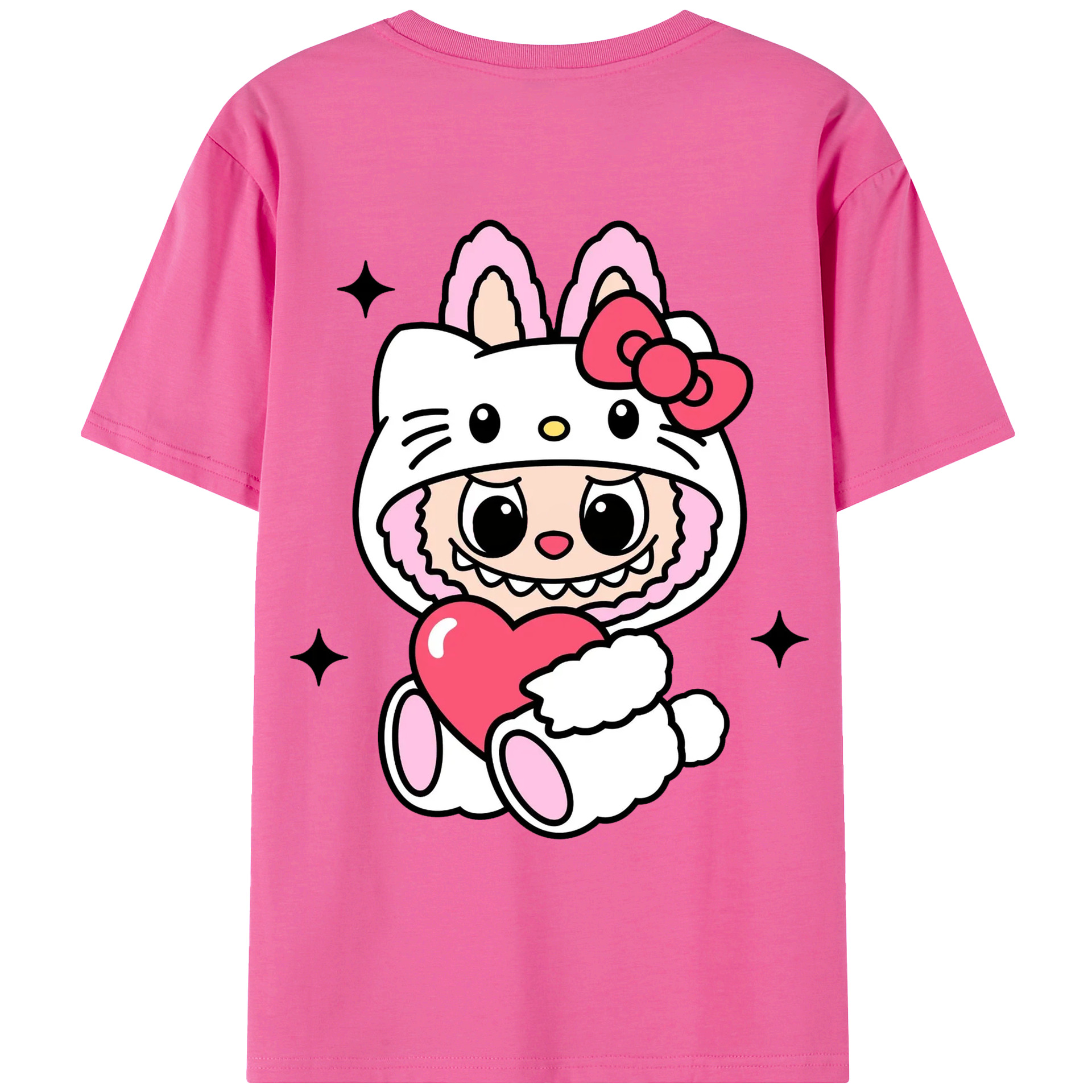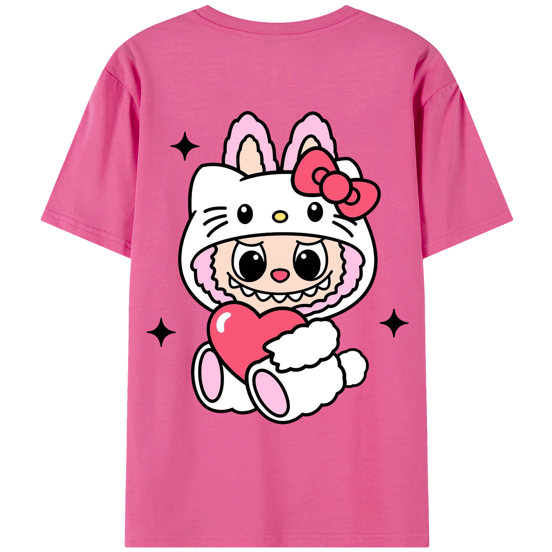 サンリオハローキティ&LABUBU ラブブ - 綿100% ヴィンテージ風 半袖Tシャツ ・ 背面プリント ・ 柔らか肌触り ・ 通気性 快適 ・ スポーツ カジュアル 外出用
